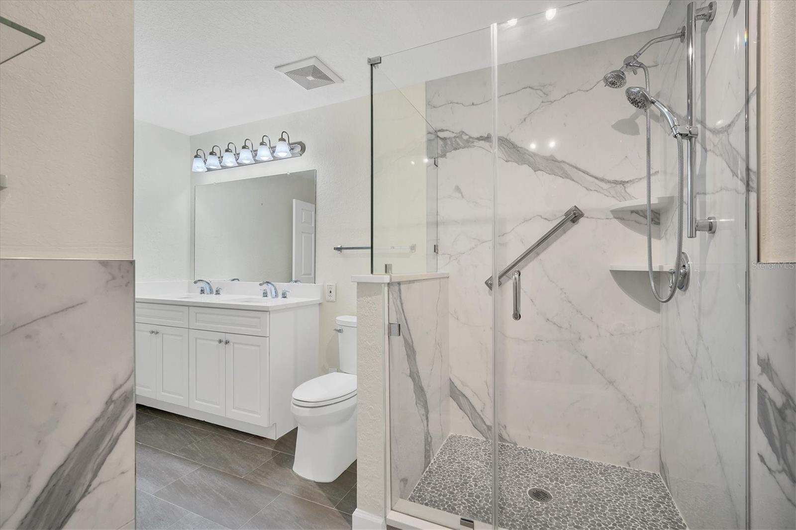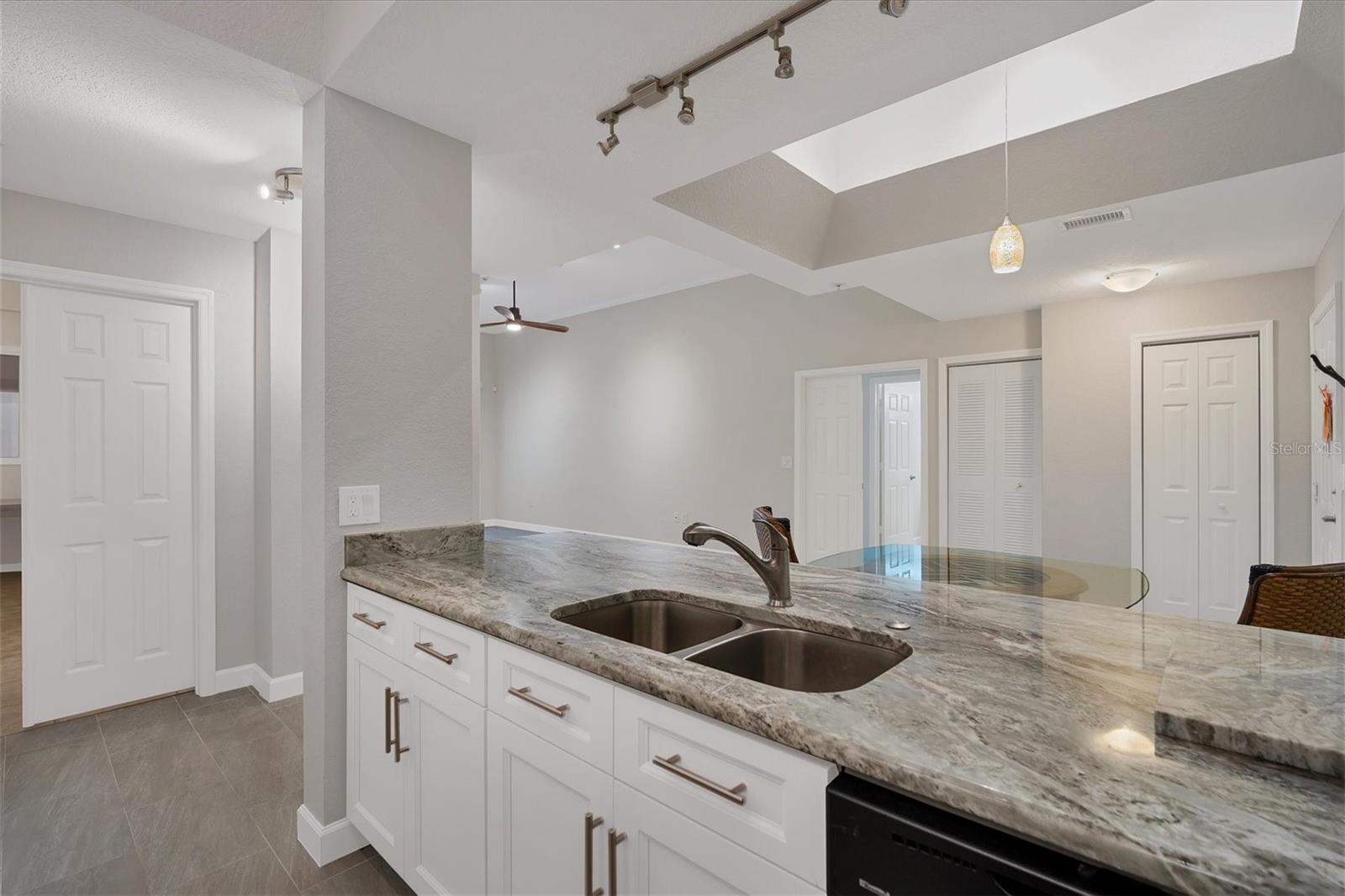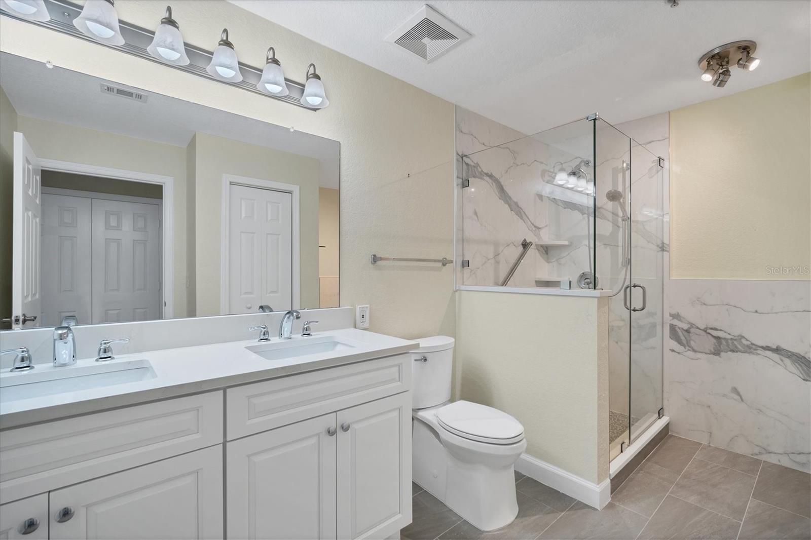 One or more photo(s) has been virtually staged. PRICE REDUCTION! Come check out your new home today! This is one of the largest and spacious condo in Broadway Promenade. Unique second entry that leads directly to the outside sidewalk across the street from the city's newest Bay Park. The surrounding area boasts easy access to all area beaches, a variety of shops and entertainment. Significant and tasteful upgrades include renovated kitchen with new cabinets, hardware, and granite counters. Stainless steel appliances. Laundry room with washer and dryer. New sinks, counters, toilets, and hardware in both bathrooms; New floor to ceiling tile in shower in owner's suite bathroom and tub surround in small bathroom; Frameless glass doors. New porcelain 12"x18" tile floors in all but 2 rooms with new molding throughout. Fully enclosed balcony with PGT Hurricane glass and electric blinds. Track lighting and fans in each room with dimmers and sensor switches. New hot water heater and programmable thermostat Unit totally repainted in last 2 years.Community features of the building include 24hr concierge; spacious community reception area, heated pool, spa and grilling area. The Association offers guest suites, fitness center, billiards room, a fully stocked library. There is an active social committee with lots of activities and events for residents. Don't miss out on this opportunity to own a one-of-a-kind unit in this highly desirable downtown location. Some photos have been virtually staged.