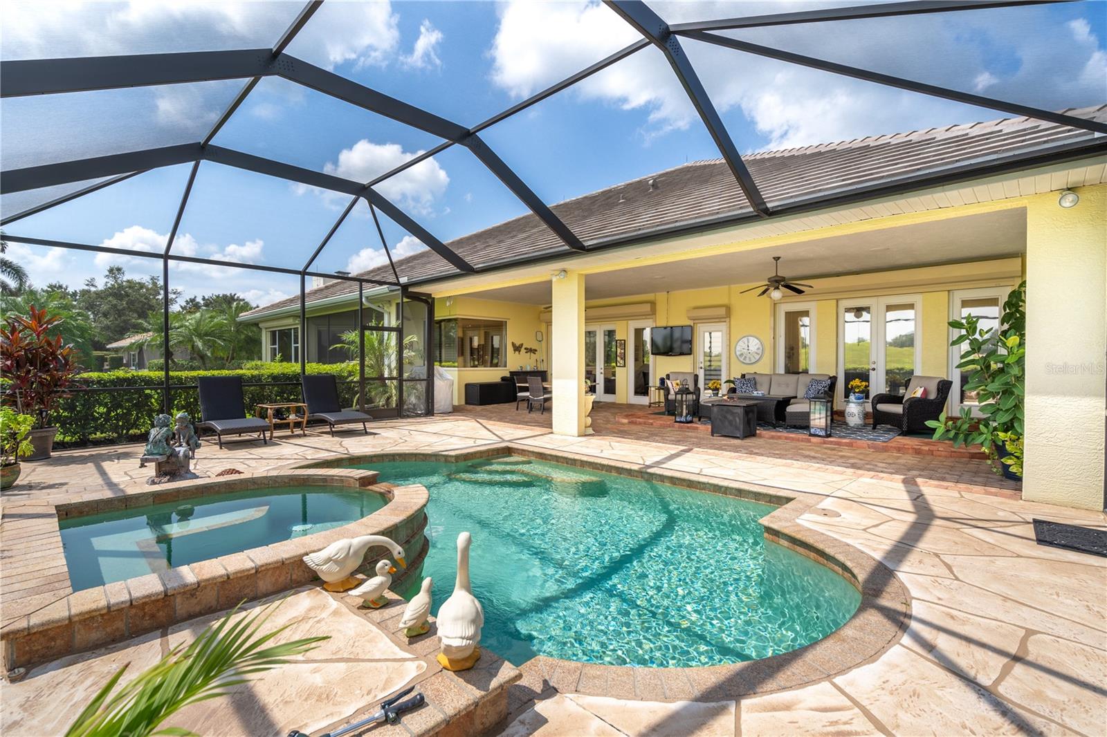 ***SIGNIFICANT PRICE REDUCTION***SELLER MOTIVATED AND WILL CONSIDER ALL OFFERS!! This property is a FORTRESS with AUTOMATED STEEL HURRICANE SHUTTERS, brand NEW TILE ROOF and gutters w/leaf guards, BEAUTIFUL new custom paved driveway, upgraded Kitchen and Baths. This one-of-a-kind completely updated home is a MUST SEE!!A GOLF AND NATURE LOVERS Dream! This gated, deed restricted community of the well sought after Preserve at Misty Creek is a rare find!This STUNNING, serene home on the 8th hole of the Misty Creek Golf Course is built with EXQUISITE appointments throughout. IMPECCABLY MAINTAINED and updated home complimented by ARCITECTURAL DETAIL with arched 8' walkways, high ceilings and 18' porcelain tile awarding a spacious feel. This elegant home w/ a Tuscan vibe has a LUXURIOUS oversized Master Bedroom with his and hers walk-in closets containing custom built-ins, recently installed gorgeous wide-plank engineered wood floors and FRENCH DOORS leading to Lanai and ENTERTAINING AREA **Updated Master Bath with walk-in shower, separate tub and 2 new granite vanities **SOUNDPROOF split level family room with marble gas fireplace, high volume ceilings, wood plantain shutters, crown moldings, built in ceiling speakers and much more! Beautifully remodeled kitchen including GRANITE counter tops, custom wood cabinetry, new 2023 stainless steel refrigerator and wine fridge, built-in desk.**WALK-IN PANTRY** and breakfast nook overlooking lanai and 8th hole of Misty Creek Golf Course.Formal living room with newly installed wide-plank wood floors and FRENCH DOORS that open to private Lanai and pool area. Pool bath with direct access to lanai.Large formal dining room with arched detail and 12' high ceilings make this home the place for parties and family gatherings. Stunning Formal Study with built-in maple bookshelves easily converted to 4th bedroom. Two additional spacious guest bedrooms with new PLANTAIN SHUTTERS and a shared, full bath with walk-in shower.With over 3400 square feet of living area, an elegant and spacious floor plan and stunning LUSH TROPICAL LANDSCAPING with nighttime up-lighting - this is a DREAM COME TRUE for entertainer, chef or family looking to create magic moments!!Beautifully paved driveway leading to an over-sized 3 car garage with ability to accommodate small watercraft, plenty of storage space and door leading to side yard. **Home alarm system **New LG Washer/Dryer**New ceramic tile roof and gutters May 2022, New Refrigerator, New Wine Fridge. Irrigation system, Central Vacuum system, Reverse Osmosis Water System.** AUTOMATED STEEL HURRICANE SHUTTERS w/backup power** INTEGRATED SOUND SYSTEM in family room, living room, Master bedroom and lanai **Roof lightning ground rods. New HVAC still under warranty.OUTDOOR OASIS enhanced by an automated and heated pool and spa, a new paved pool deck, oversized newly screened and refurbished lanai with dining platform for large gatherings.**PUTTING GREEN on deck!** installed television and 3 ceiling fans, integrated sound system.**West facing home reducing exposure to direct sunlight. ** Misty Creek Preserve has healthy reserve fund and no pending assessments.**House has the Angel #8888- meaning INFINITE POSSIBILITY, the power of POSITIVE change, ABUNDANCE coming your way, breaking of negative cycles and taking a more active approach to getting the things you want in life!! You will fall in love with this home in The Preserve at Misty Creek!