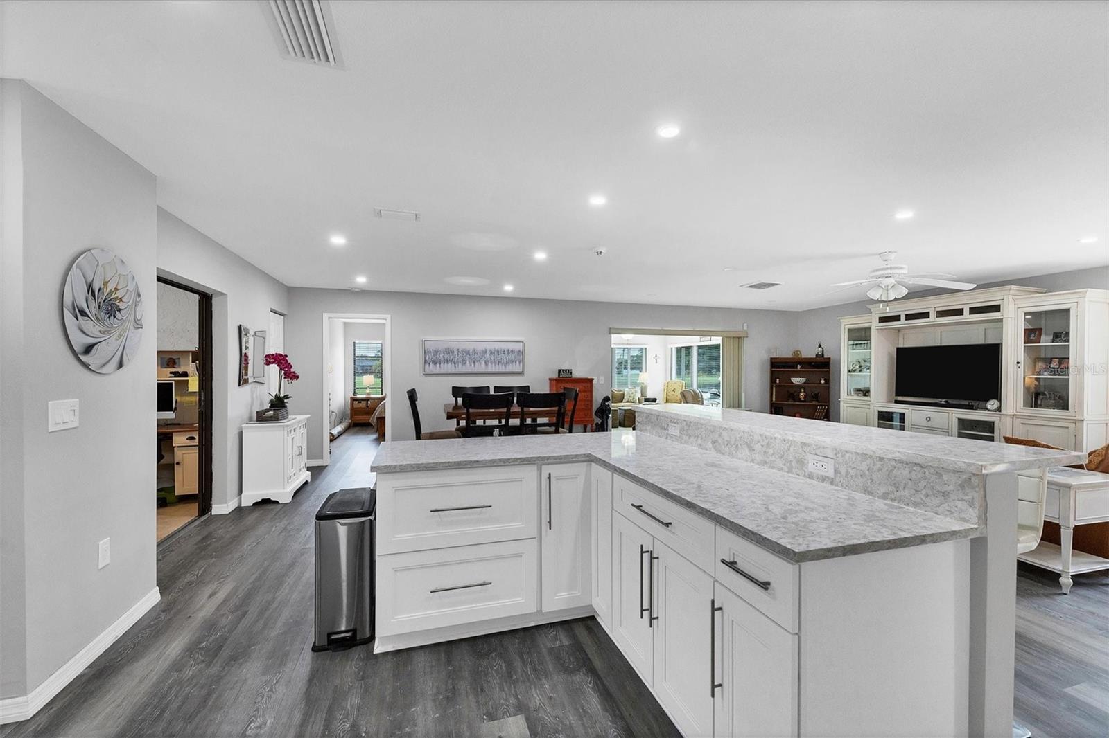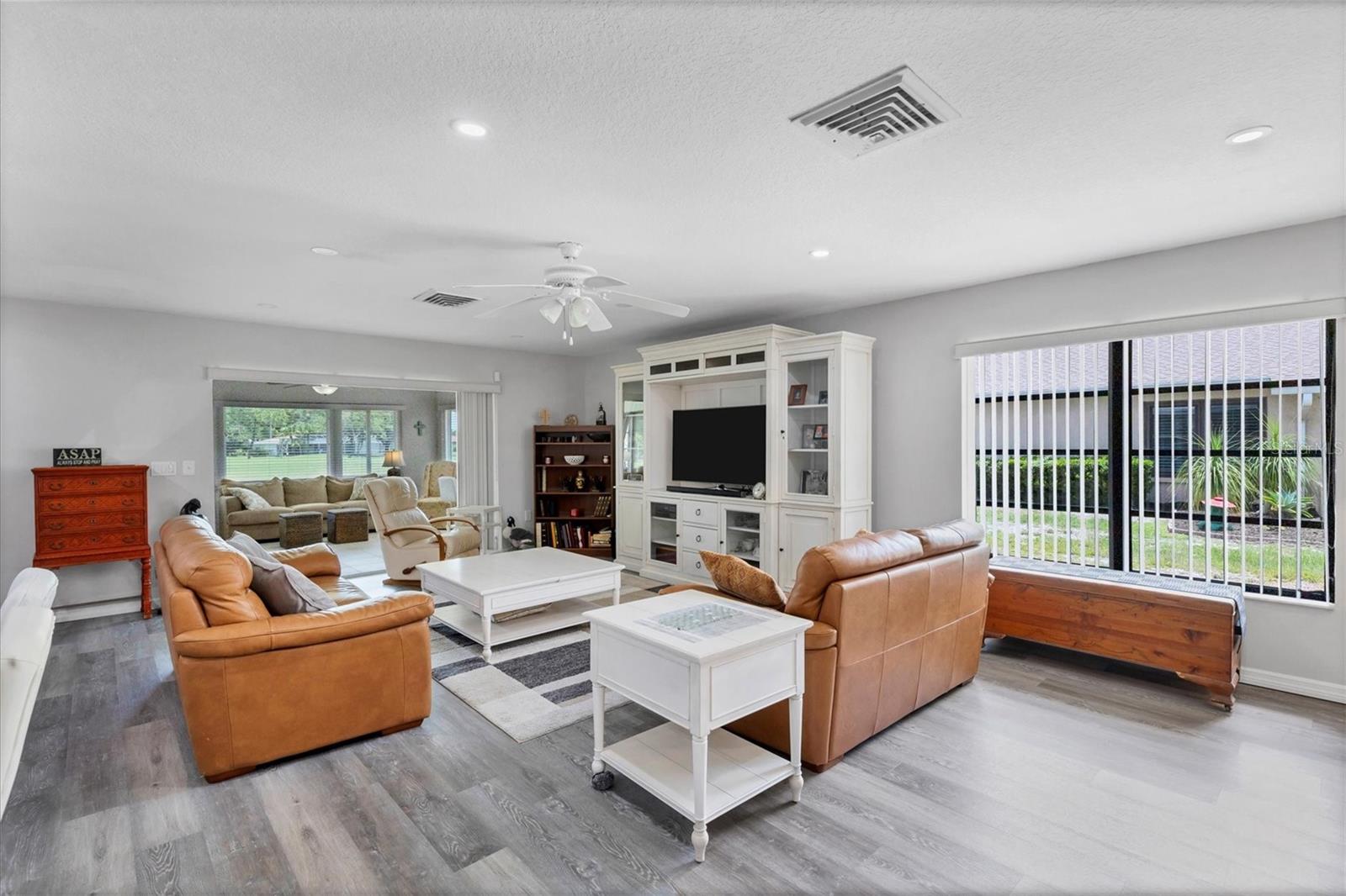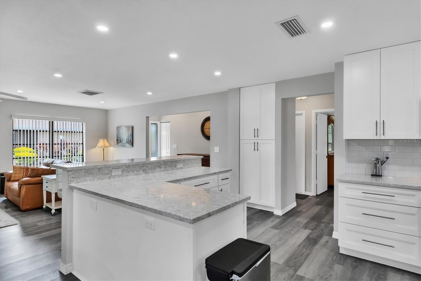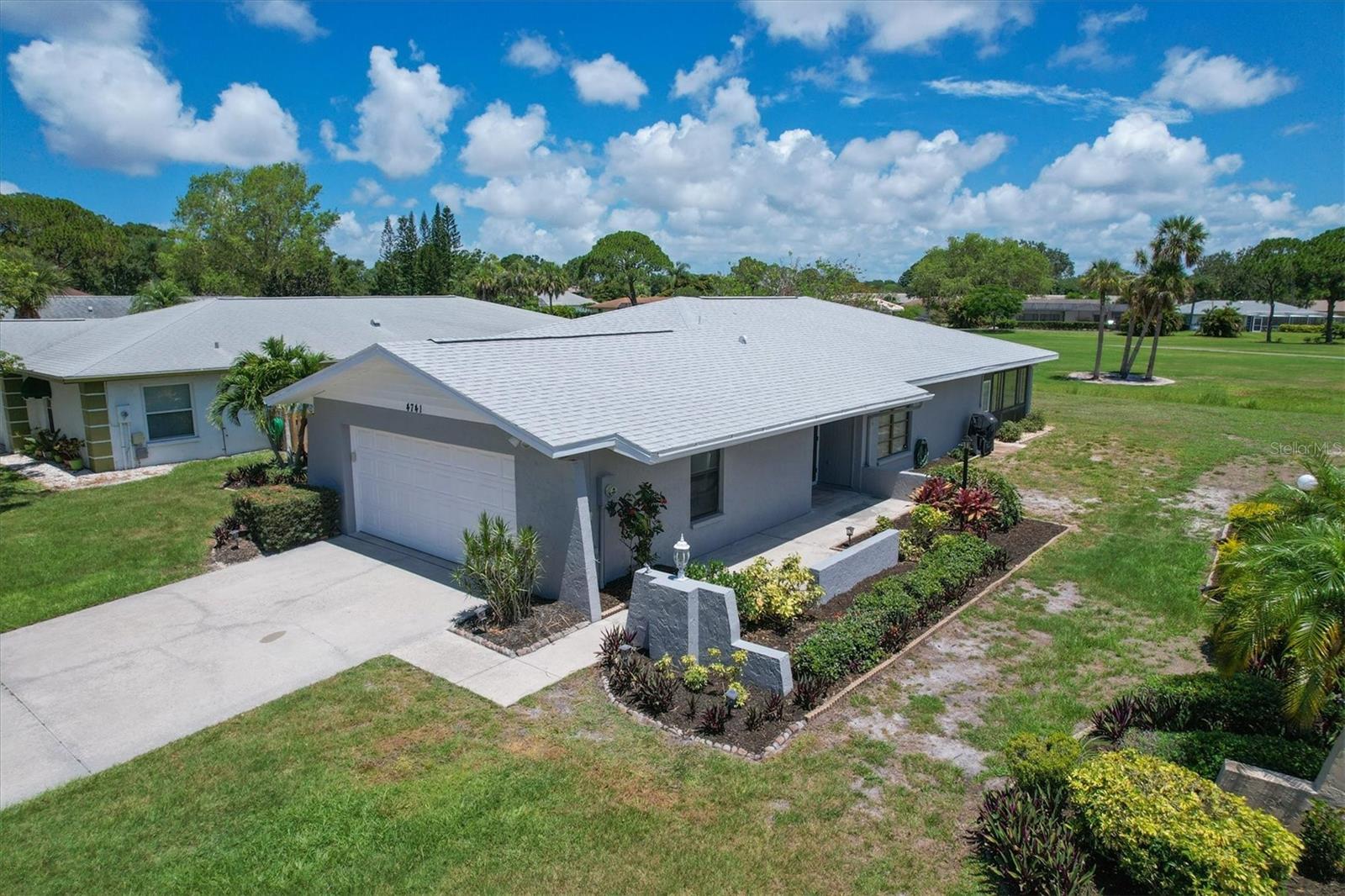 Single family home 2 bedroom, 2 bath PLUS OFFICE/DEN, 2 car garage and an enclosed Florida room giving the home approximately 2000 square feet under air. Located on the golf course in The Meadows, it has been completely renovated and is move-in ready. NEW ROOF 2022, newer water heater 2019, complete kitchen renovation with new cabinets and gleaming Quartz counters, new appliances, an amazing breakfast bar and food prep area as well as a convenient pantry with pull out drawers. Popcorn ceiling has been removed, fresh paint throughout the interior, new gutters installed in 2021, the exterior painted 2023, new sod and landscaping, new recessed lighting in living room and kitchen, new luxury vinyl tile throughout, tile and hurricane windows in the Florida room, the bathrooms were updated a couple of years ago including the plumbing. The split bedroom plan offers privacy for both bedrooms and has the primary retreat overlooking the beautiful golf course with an ensuite bathroom with dual sinks, walk-in shower, and a large walk-in closet. Ceiling fans located throughout the home offer extra comfort to cool you down during the summer months. The OPEN FLOORPLAN is perfect for entertaining and there is plenty of room for a pool if you so desire. The Meadows' Renaissance Access Card Program provides all homeowners and yearly tenants access to amenities such as fitness center, JR Olympic pool, dog park, basketball court, dining, pickleball courts, playground, fishing, 14 miles of walking/running/biking trails, without extra fees. Membership to The Meadows Country Club is optional and affordable for use of the 17 Har Tru tennis courts and 3 golf courses (2 public, 1 private). The unbeatable Meadows location offers easy access to beaches, Downtown Sarasota, University Town Center, Downtown Lakewood Ranch, I-75, Nathan Benderson aquatic Center, Mote Marine Aquarium and the white sandy beaches and gulf waters. The Village Shops located within the Meadows provides a convenience store, restaurants, pre-school, and Sunday Farmer's Market during the months of October through April. The Meadows is very pet-friendly so bring your fur-baby too.