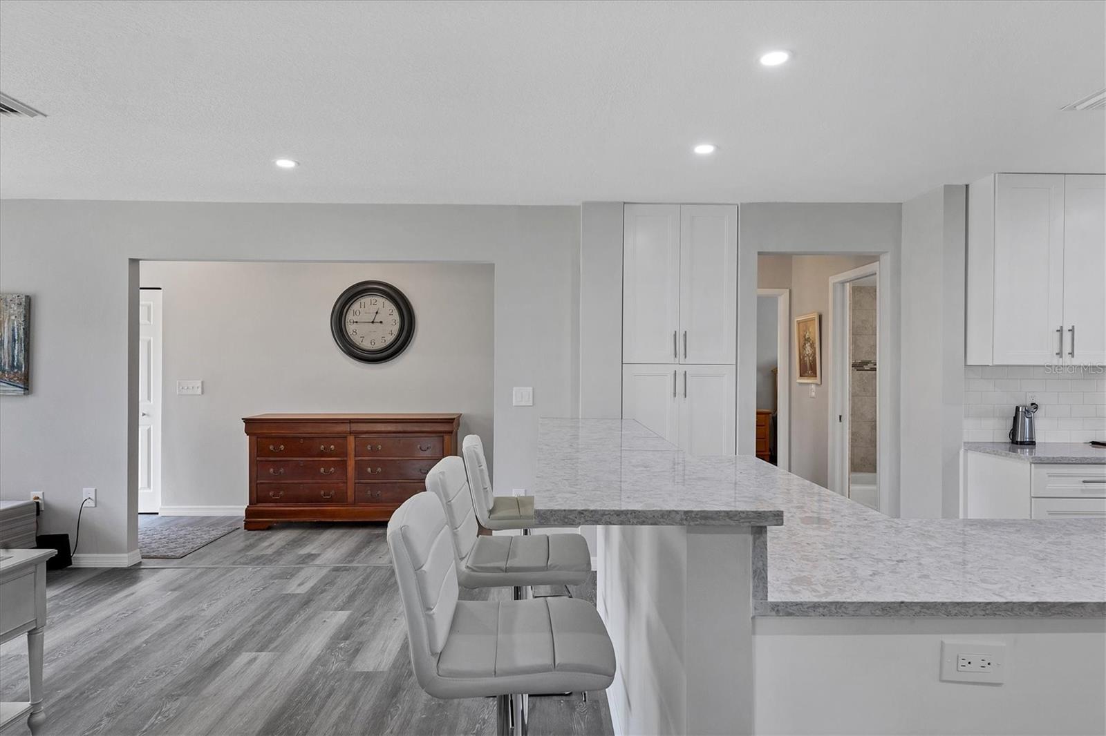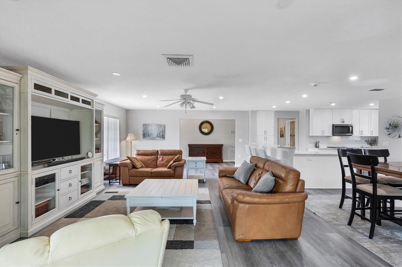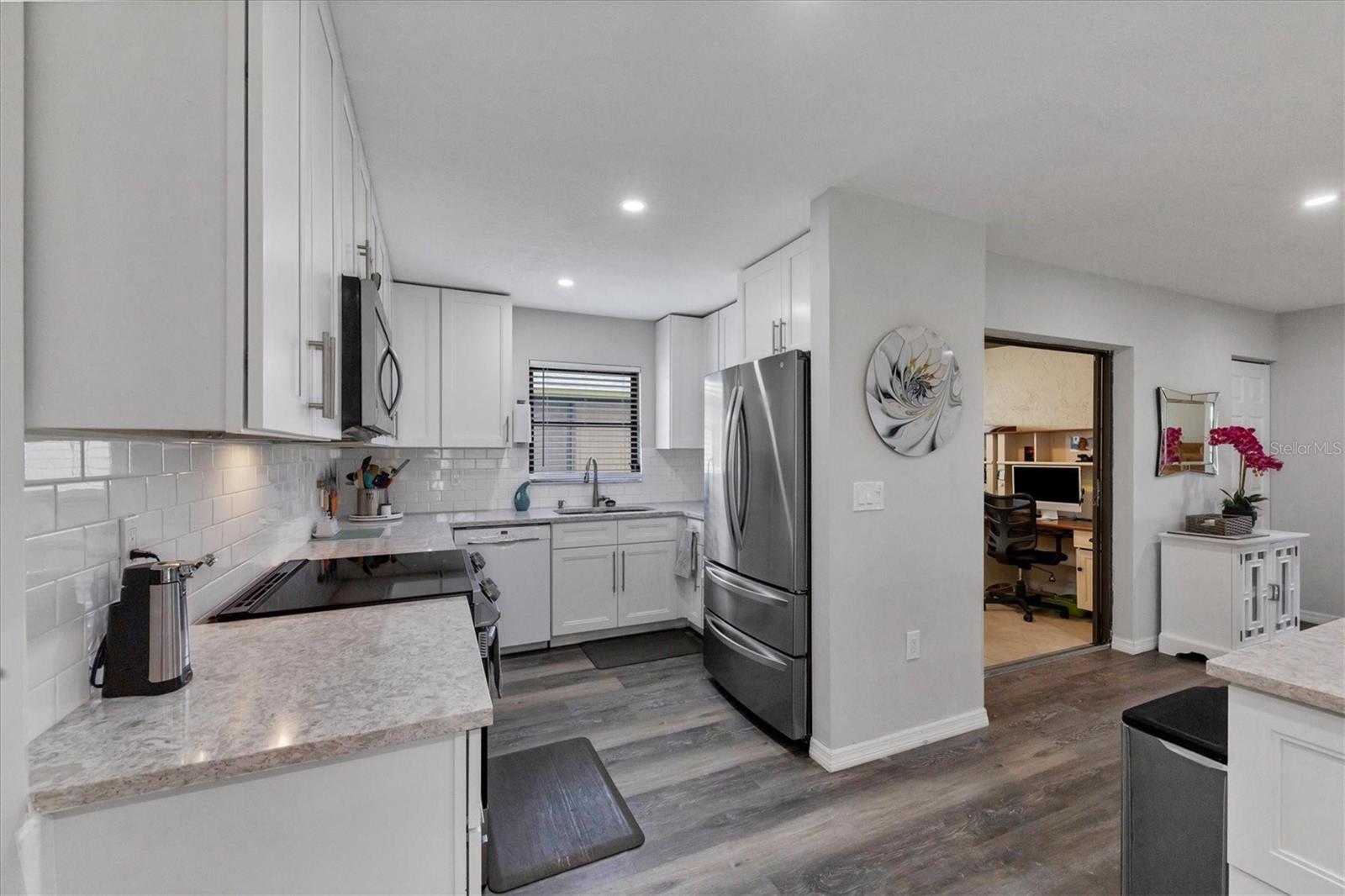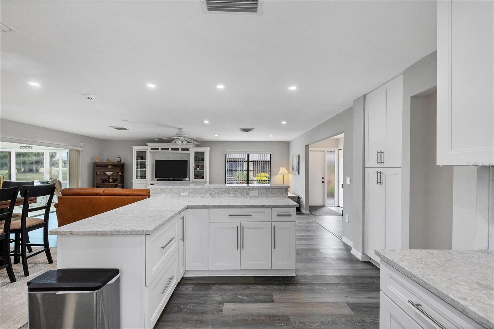 Single family home 2 bedroom, 2 bath PLUS OFFICE/DEN, 2 car garage and an enclosed Florida room giving the home approximately 2000 square feet under air. Located on the golf course in The Meadows, it has been completely renovated and is move-in ready. NEW ROOF 2022, newer water heater 2019, complete kitchen renovation with new cabinets and gleaming Quartz counters, new appliances, an amazing breakfast bar and food prep area as well as a convenient pantry with pull out drawers. Popcorn ceiling has been removed, fresh paint throughout the interior, new gutters installed in 2021, the exterior painted 2023, new sod and landscaping, new recessed lighting in living room and kitchen, new luxury vinyl tile throughout, tile and hurricane windows in the Florida room, the bathrooms were updated a couple of years ago including the plumbing. The split bedroom plan offers privacy for both bedrooms and has the primary retreat overlooking the beautiful golf course with an ensuite bathroom with dual sinks, walk-in shower, and a large walk-in closet. Ceiling fans located throughout the home offer extra comfort to cool you down during the summer months. The OPEN FLOORPLAN is perfect for entertaining and there is plenty of room for a pool if you so desire. The Meadows' Renaissance Access Card Program provides all homeowners and yearly tenants access to amenities such as fitness center, JR Olympic pool, dog park, basketball court, dining, pickleball courts, playground, fishing, 14 miles of walking/running/biking trails, without extra fees. Membership to The Meadows Country Club is optional and affordable for use of the 17 Har Tru tennis courts and 3 golf courses (2 public, 1 private). The unbeatable Meadows location offers easy access to beaches, Downtown Sarasota, University Town Center, Downtown Lakewood Ranch, I-75, Nathan Benderson aquatic Center, Mote Marine Aquarium and the white sandy beaches and gulf waters. The Village Shops located within the Meadows provides a convenience store, restaurants, pre-school, and Sunday Farmer's Market during the months of October through April. The Meadows is very pet-friendly so bring your fur-baby too.