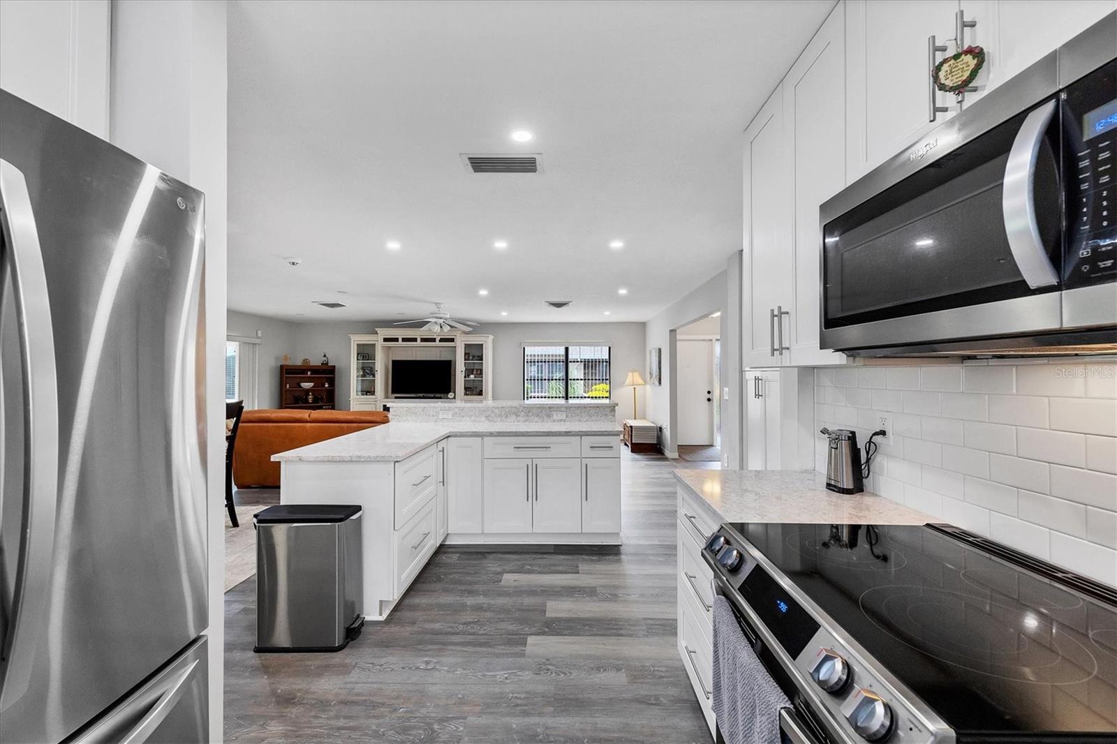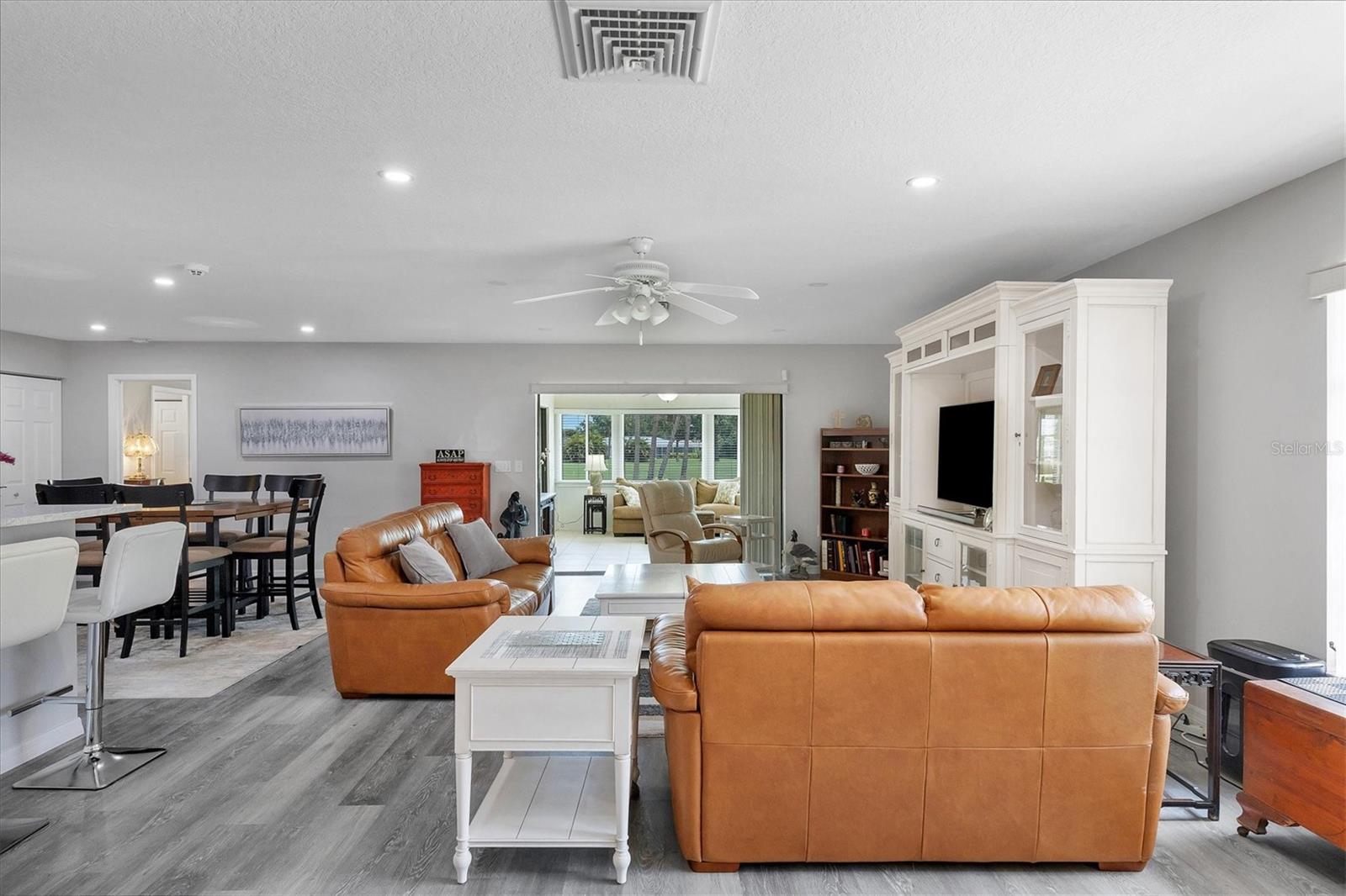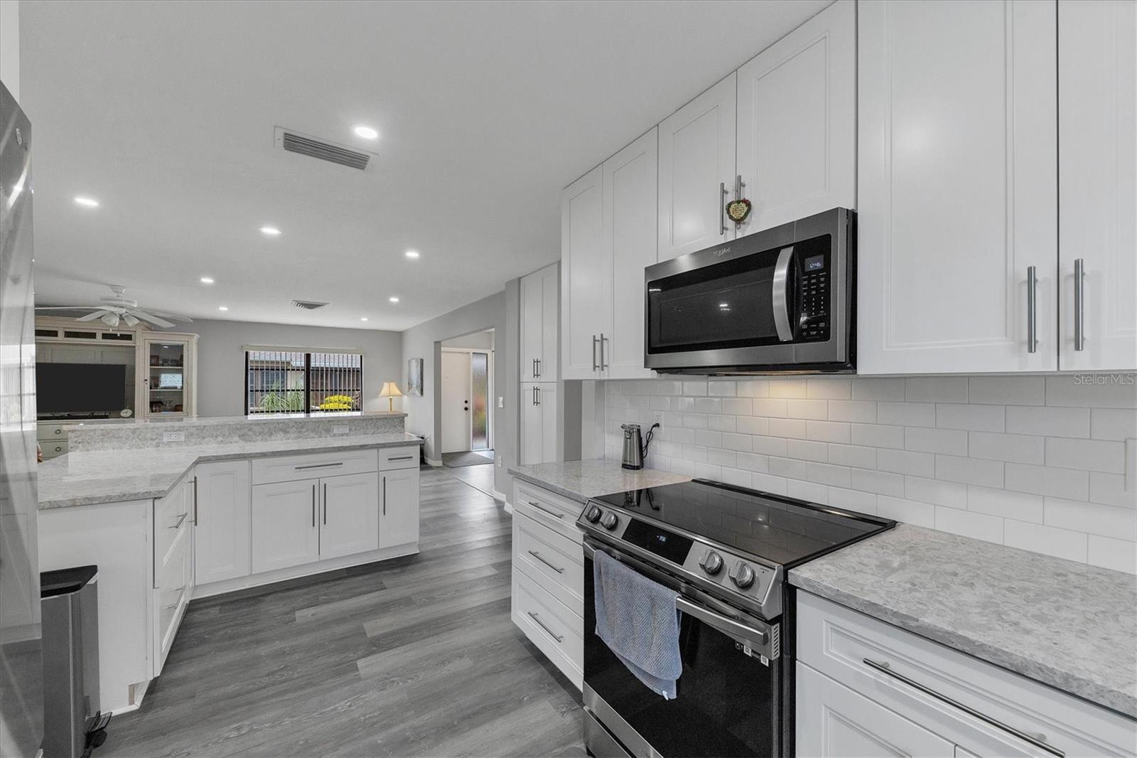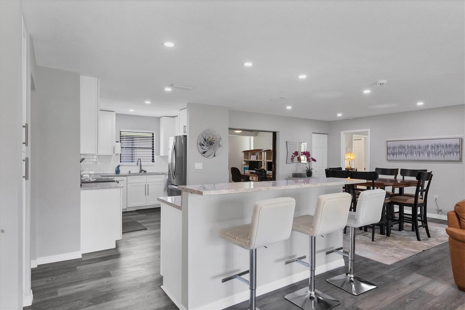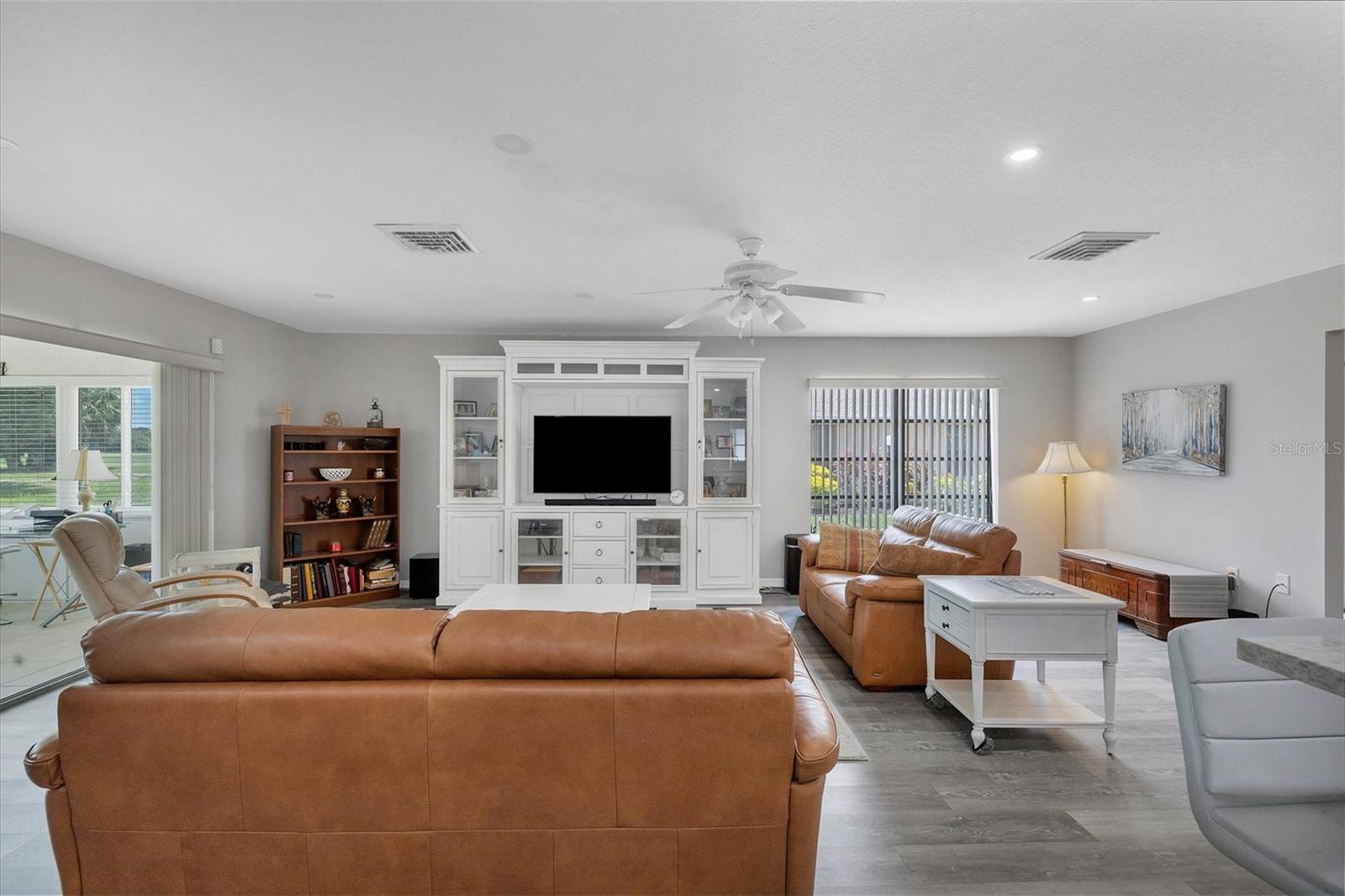 Single family home 2 bedroom, 2 bath PLUS OFFICE/DEN, 2 car garage and an enclosed Florida room giving the home approximately 2000 square feet under air. Located on the golf course in The Meadows, it has been completely renovated and is move-in ready. NEW ROOF 2022, newer water heater 2019, complete kitchen renovation with new cabinets and gleaming Quartz counters, new appliances, an amazing breakfast bar and food prep area as well as a convenient pantry with pull out drawers. Popcorn ceiling has been removed, fresh paint throughout the interior, new gutters installed in 2021, the exterior painted 2023, new sod and landscaping, new recessed lighting in living room and kitchen, new luxury vinyl tile throughout, tile and hurricane windows in the Florida room, the bathrooms were updated a couple of years ago including the plumbing. The split bedroom plan offers privacy for both bedrooms and has the primary retreat overlooking the beautiful golf course with an ensuite bathroom with dual sinks, walk-in shower, and a large walk-in closet. Ceiling fans located throughout the home offer extra comfort to cool you down during the summer months. The OPEN FLOORPLAN is perfect for entertaining and there is plenty of room for a pool if you so desire. The Meadows' Renaissance Access Card Program provides all homeowners and yearly tenants access to amenities such as fitness center, JR Olympic pool, dog park, basketball court, dining, pickleball courts, playground, fishing, 14 miles of walking/running/biking trails, without extra fees. Membership to The Meadows Country Club is optional and affordable for use of the 17 Har Tru tennis courts and 3 golf courses (2 public, 1 private). The unbeatable Meadows location offers easy access to beaches, Downtown Sarasota, University Town Center, Downtown Lakewood Ranch, I-75, Nathan Benderson aquatic Center, Mote Marine Aquarium and the white sandy beaches and gulf waters. The Village Shops located within the Meadows provides a convenience store, restaurants, pre-school, and Sunday Farmer's Market during the months of October through April. The Meadows is very pet-friendly so bring your fur-baby too.