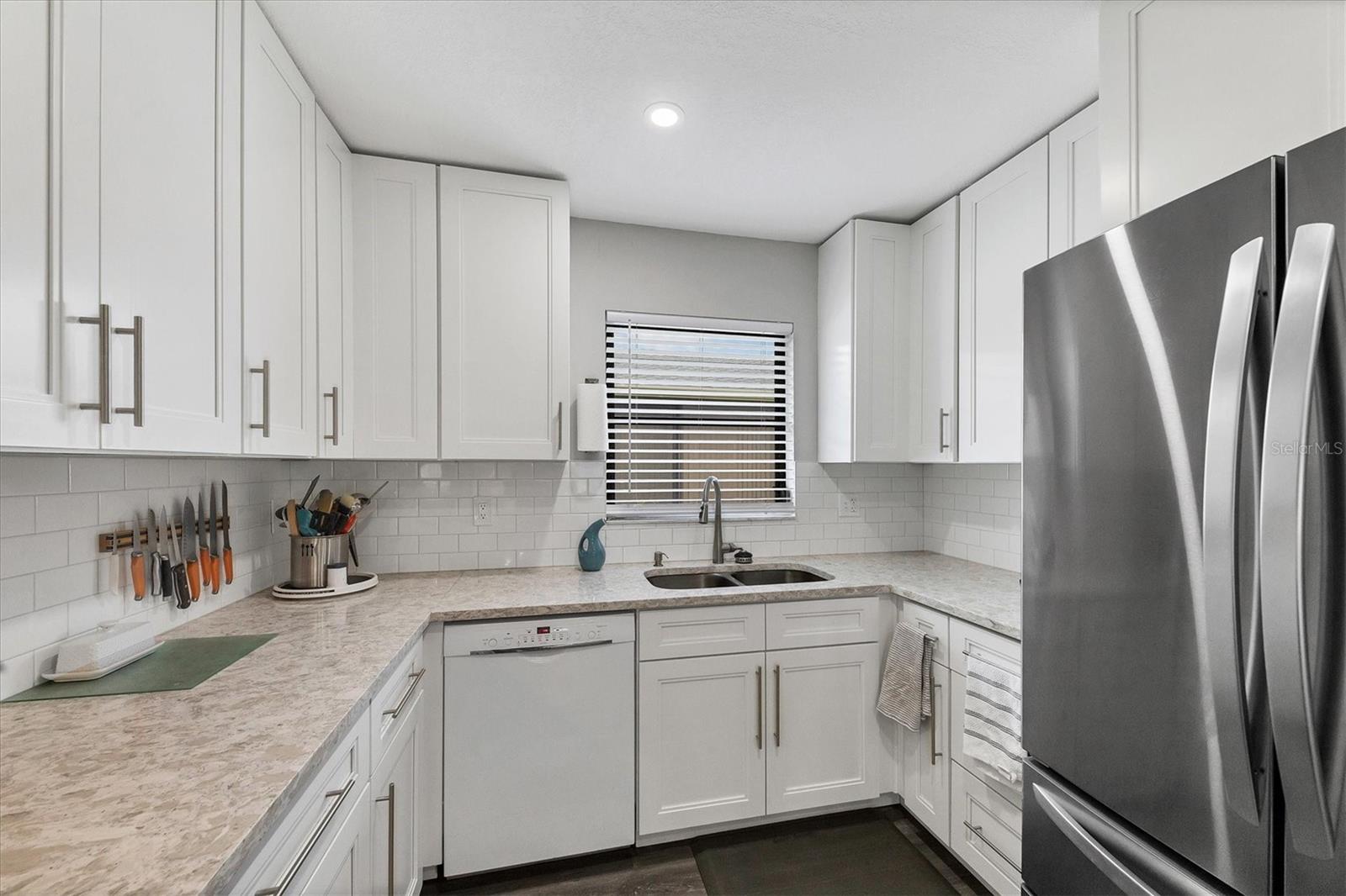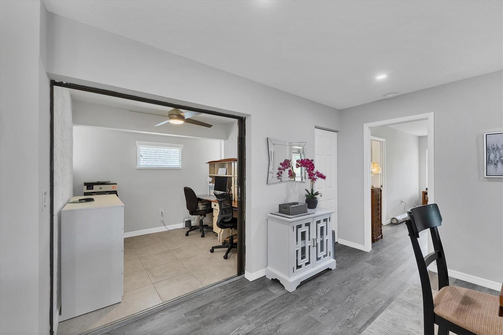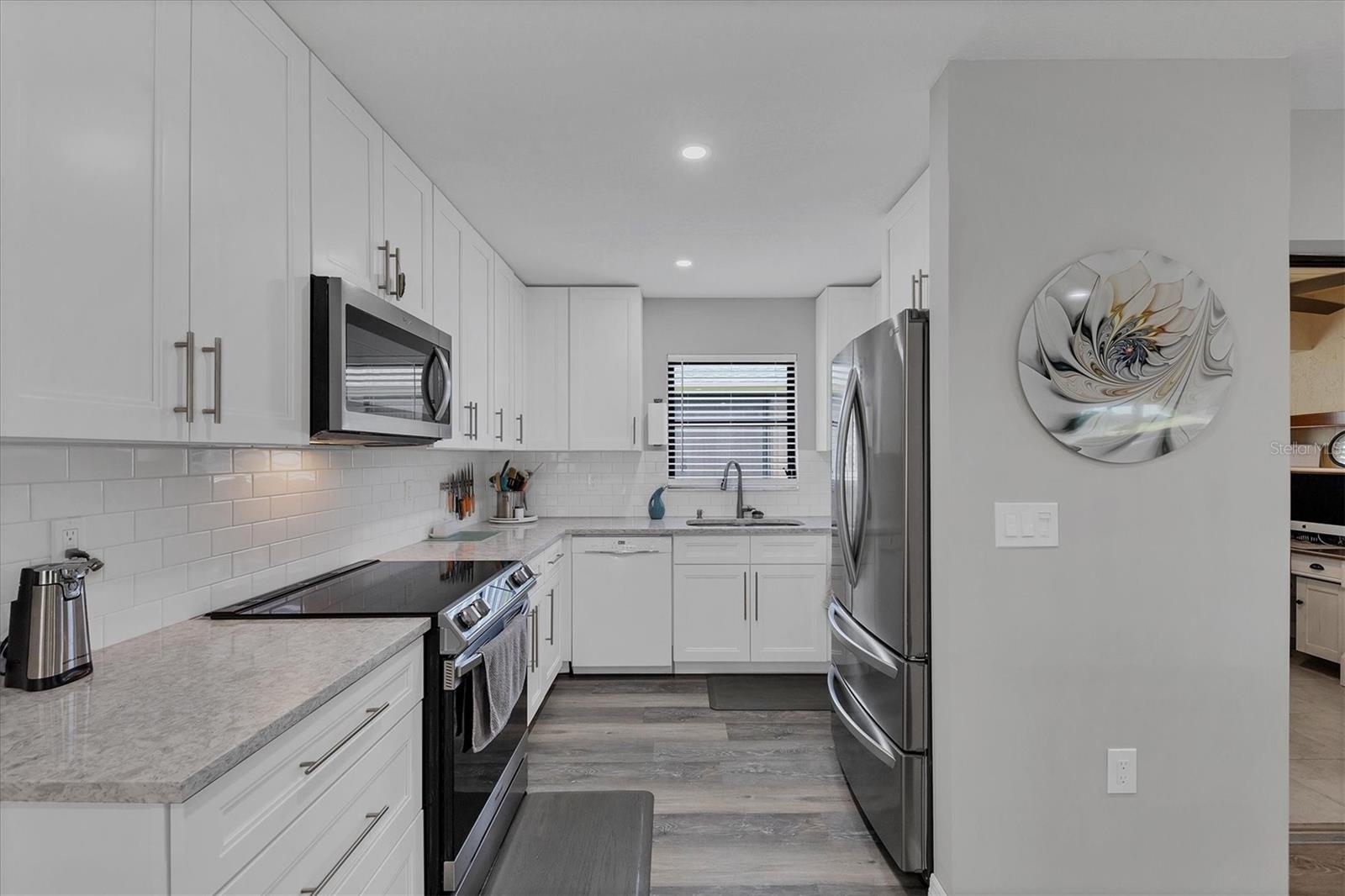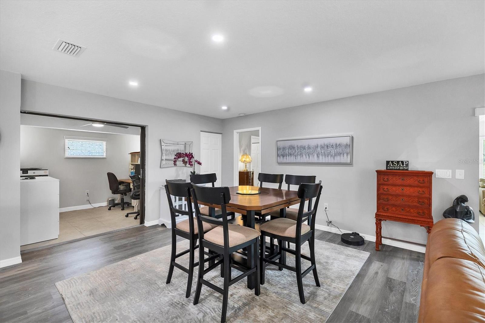 Single family home 2 bedroom, 2 bath PLUS OFFICE/DEN, 2 car garage and an enclosed Florida room giving the home approximately 2000 square feet under air. Located on the golf course in The Meadows, it has been completely renovated and is move-in ready. NEW ROOF 2022, newer water heater 2019, complete kitchen renovation with new cabinets and gleaming Quartz counters, new appliances, an amazing breakfast bar and food prep area as well as a convenient pantry with pull out drawers. Popcorn ceiling has been removed, fresh paint throughout the interior, new gutters installed in 2021, the exterior painted 2023, new sod and landscaping, new recessed lighting in living room and kitchen, new luxury vinyl tile throughout, tile and hurricane windows in the Florida room, the bathrooms were updated a couple of years ago including the plumbing. The split bedroom plan offers privacy for both bedrooms and has the primary retreat overlooking the beautiful golf course with an ensuite bathroom with dual sinks, walk-in shower, and a large walk-in closet. Ceiling fans located throughout the home offer extra comfort to cool you down during the summer months. The OPEN FLOORPLAN is perfect for entertaining and there is plenty of room for a pool if you so desire. The Meadows' Renaissance Access Card Program provides all homeowners and yearly tenants access to amenities such as fitness center, JR Olympic pool, dog park, basketball court, dining, pickleball courts, playground, fishing, 14 miles of walking/running/biking trails, without extra fees. Membership to The Meadows Country Club is optional and affordable for use of the 17 Har Tru tennis courts and 3 golf courses (2 public, 1 private). The unbeatable Meadows location offers easy access to beaches, Downtown Sarasota, University Town Center, Downtown Lakewood Ranch, I-75, Nathan Benderson aquatic Center, Mote Marine Aquarium and the white sandy beaches and gulf waters. The Village Shops located within the Meadows provides a convenience store, restaurants, pre-school, and Sunday Farmer's Market during the months of October through April. The Meadows is very pet-friendly so bring your fur-baby too.