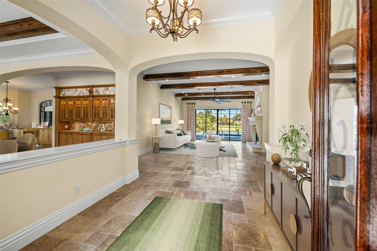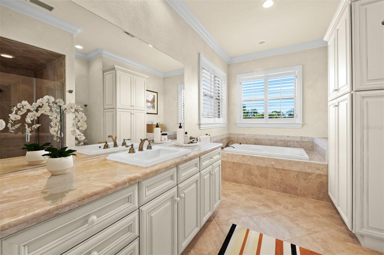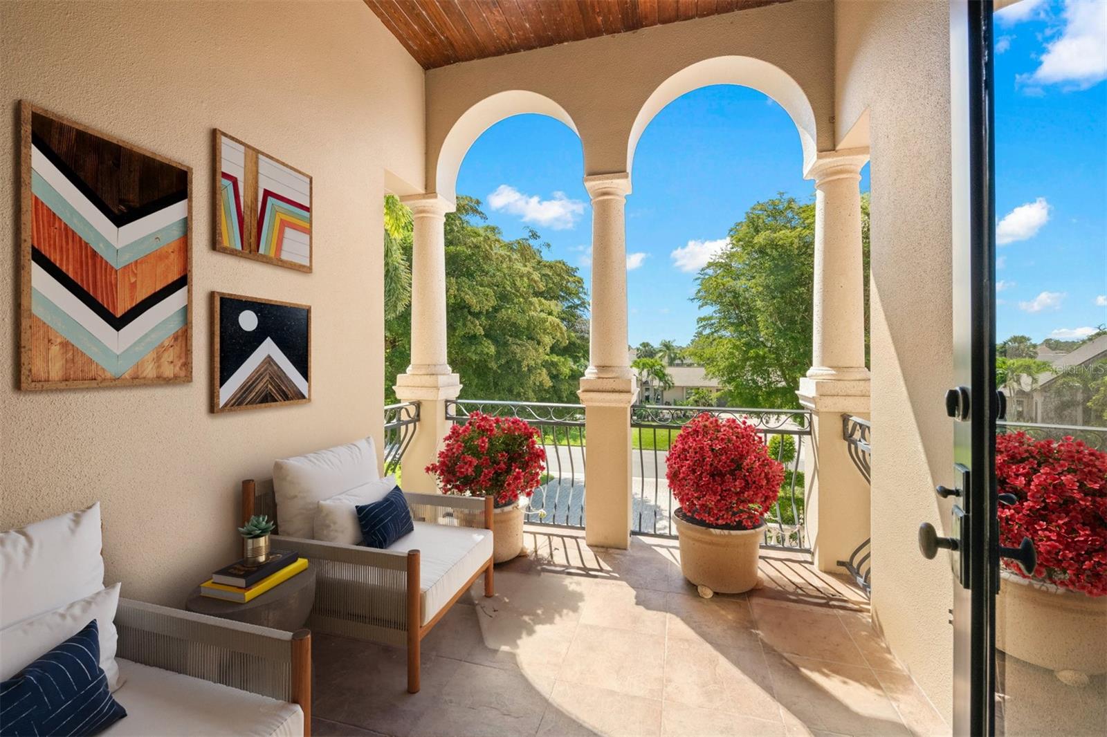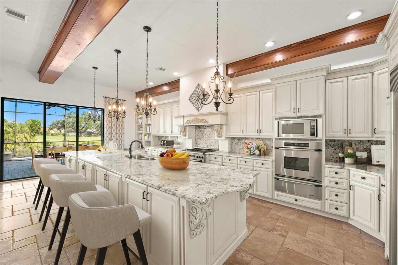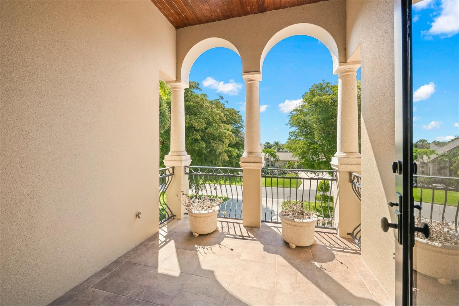 One or more photo(s) has been virtually staged. If you are interested in Prestancia TPC and it's world class golf courses, take a look here at this 5,800 square foot home in The Country Club of Sarasota. This luxury home is a .2 mile walk or golf cart ride away from the clubhouse at Prestancia which is closer than most of the homes in Prestancia. This wonderful home would list at $2,500,000 if in Prestancia. The HOA is also much lower in the Country Club of Sarasota than in Prestancia. You don't need to be be a resident to join the Prestancia Golf Club as a golf or social member. You enter this beautiful well built home through iron detailed double doors and a gracious foyer, with a large adjacent Dining Room where your gaze through the Living Room past the fireplace to the inviting 36' swimming pool! Built to the highest standards by The Island Building Company. This Tuscan Revival offer 4 large bedroom and 4.5 baths home is customized throughout for upscale living. The chef's kitchen has an enormous 17' Long granite Island, over 30' of cabinets, a desk area, breakfast area with built-in cabinets and a window seat, and Sub-Zero, Bosch and Dacor Appliances. A comfortable Family Room is attached to the kitchen. A temperature control wine cellar that formerly held 3,000 bottles (shelving has been removed) is located next to the walk in pantry. Wood ceiling beams continue the Tuscan feel through many areas of the home. The first floor also includes a guest sweet with pool access as well as a very large office with with a built in desk and book shelves wrapping half the room. This office is so spacious the owner had it double as a pool hall. The second floor which can be accessed by the wood panel stair or the elevator has 3 large bedrooms all on-suites including the master. The 2nd level also included a seating area, the laundry room, a storage room and a balcony. Storm shutters and a generator add piece of mind. This perfect location has easy access to shopping, dining beaches and downtown Sarasota. The well established community of The Country Club of Sarasota also offers a 24/7 manned gate for your security.