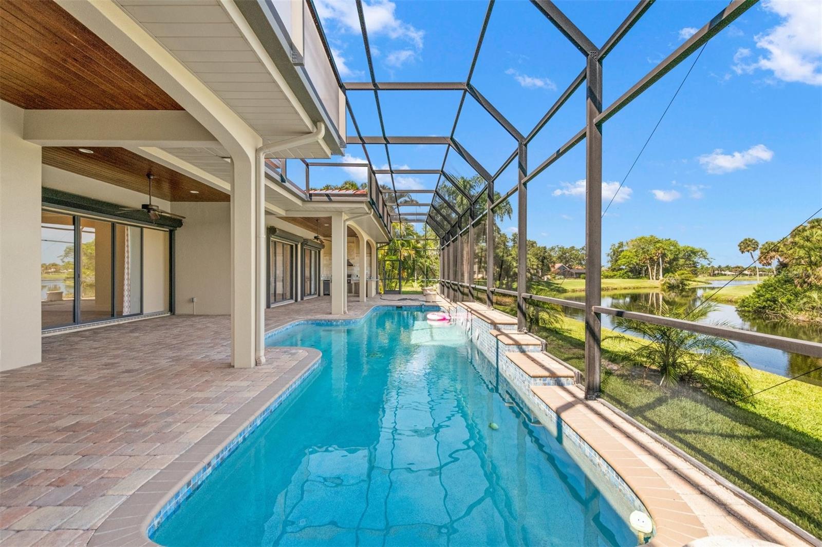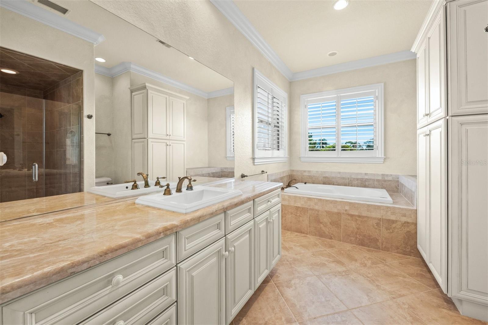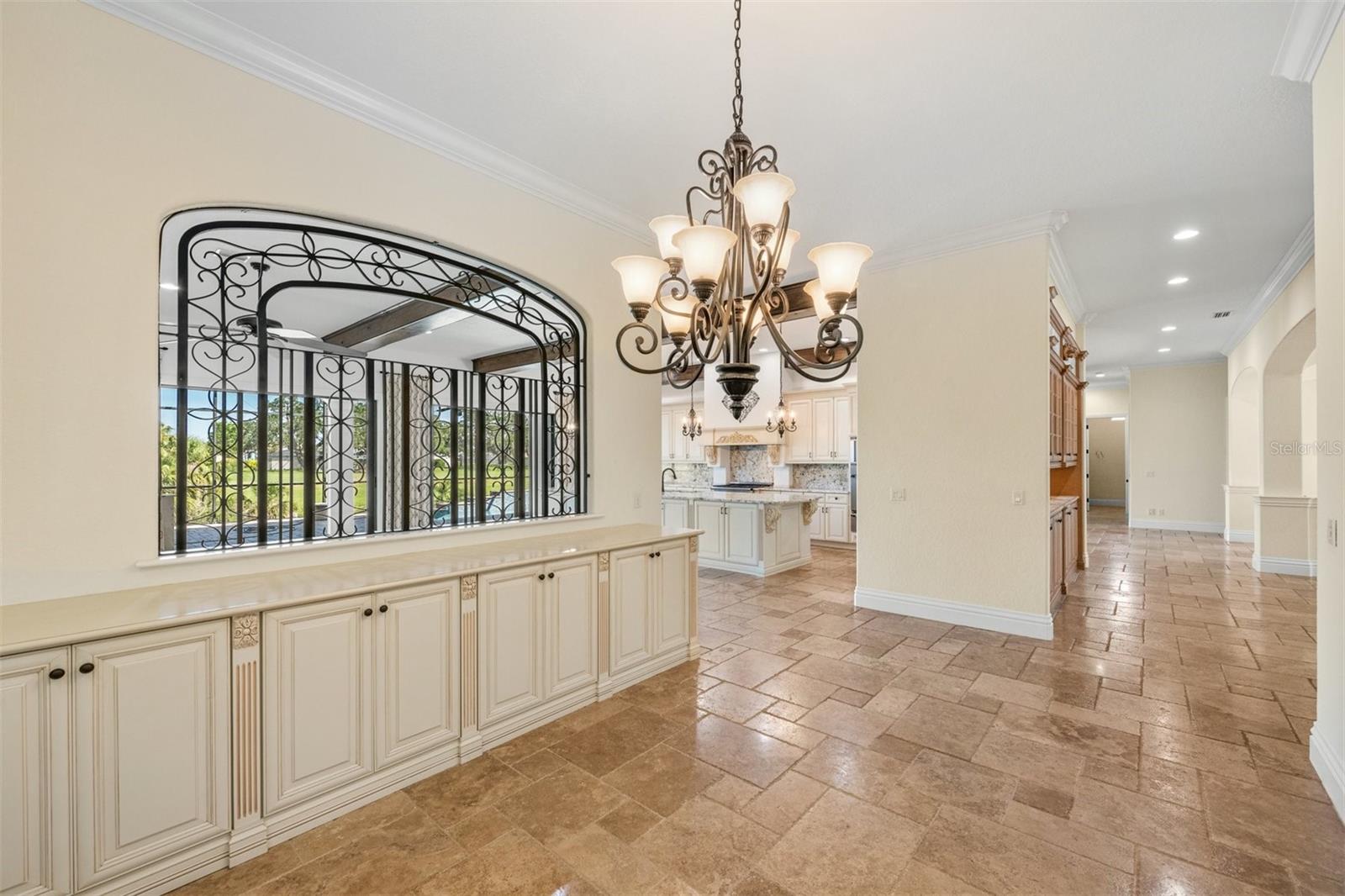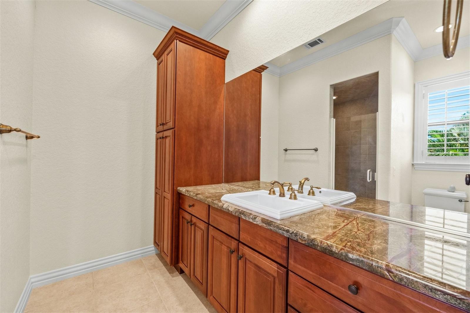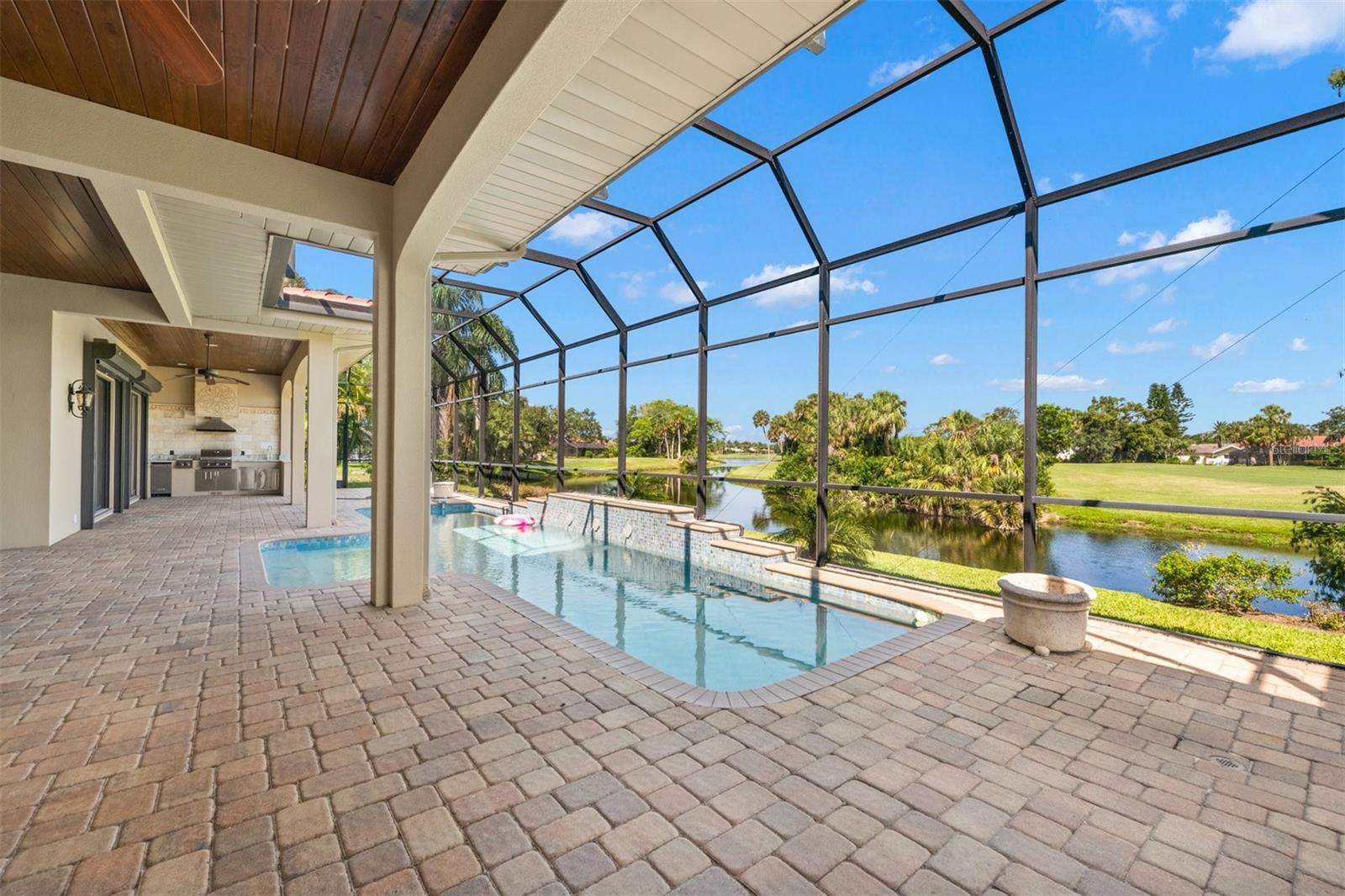 One or more photo(s) has been virtually staged. If you are interested in Prestancia TPC and it's world class golf courses, take a look here at this 5,800 square foot home in The Country Club of Sarasota. This luxury home is a .2 mile walk or golf cart ride away from the clubhouse at Prestancia which is closer than most of the homes in Prestancia. This wonderful home would list at $2,500,000 if in Prestancia. The HOA is also much lower in the Country Club of Sarasota than in Prestancia. You don't need to be be a resident to join the Prestancia Golf Club as a golf or social member. You enter this beautiful well built home through iron detailed double doors and a gracious foyer, with a large adjacent Dining Room where your gaze through the Living Room past the fireplace to the inviting 36' swimming pool! Built to the highest standards by The Island Building Company. This Tuscan Revival offer 4 large bedroom and 4.5 baths home is customized throughout for upscale living. The chef's kitchen has an enormous 17' Long granite Island, over 30' of cabinets, a desk area, breakfast area with built-in cabinets and a window seat, and Sub-Zero, Bosch and Dacor Appliances. A comfortable Family Room is attached to the kitchen. A temperature control wine cellar that formerly held 3,000 bottles (shelving has been removed) is located next to the walk in pantry. Wood ceiling beams continue the Tuscan feel through many areas of the home. The first floor also includes a guest sweet with pool access as well as a very large office with with a built in desk and book shelves wrapping half the room. This office is so spacious the owner had it double as a pool hall. The second floor which can be accessed by the wood panel stair or the elevator has 3 large bedrooms all on-suites including the master. The 2nd level also included a seating area, the laundry room, a storage room and a balcony. Storm shutters and a generator add piece of mind. This perfect location has easy access to shopping, dining beaches and downtown Sarasota. The well established community of The Country Club of Sarasota also offers a 24/7 manned gate for your security.