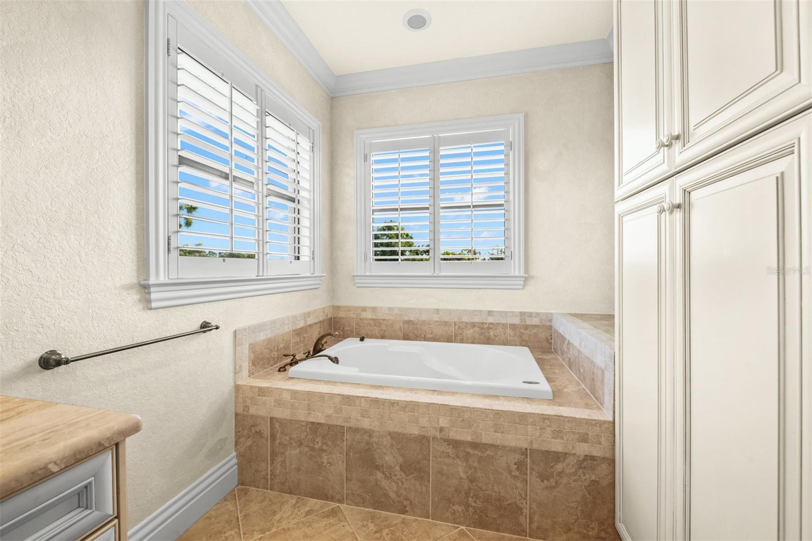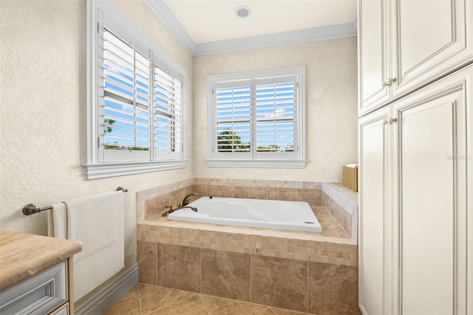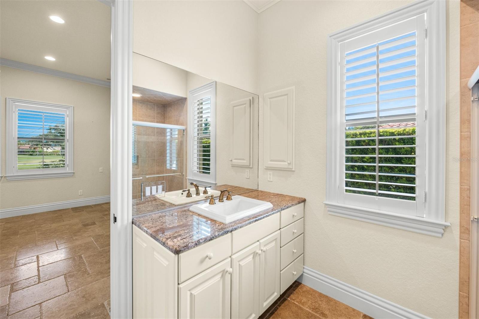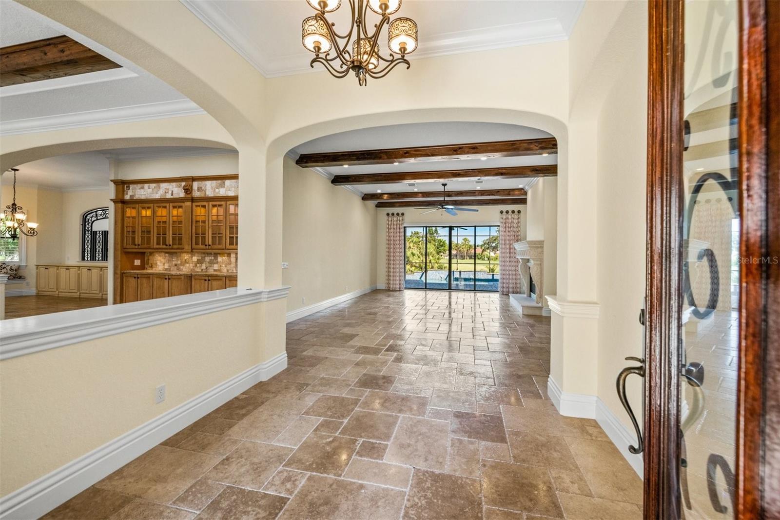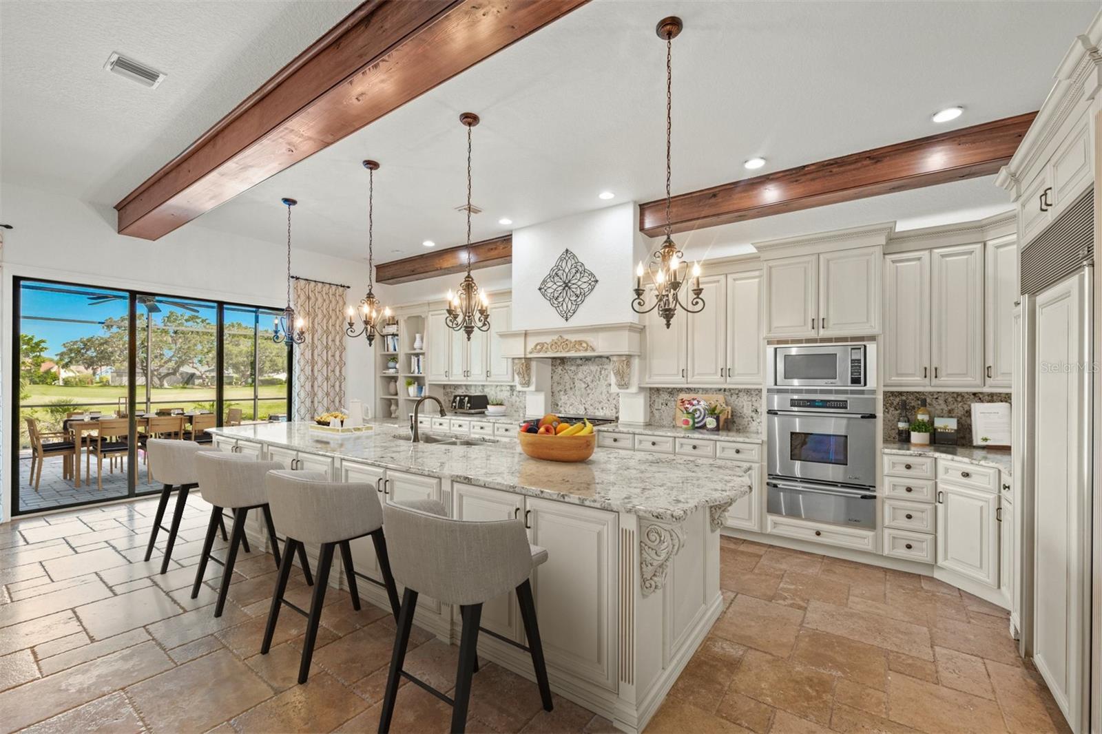 One or more photo(s) has been virtually staged. If you are interested in Prestancia TPC and it's world class golf courses, take a look here at this 5,800 square foot home in The Country Club of Sarasota. This luxury home is a .2 mile walk or golf cart ride away from the clubhouse at Prestancia which is closer than most of the homes in Prestancia. This wonderful home would list at $2,500,000 if in Prestancia. The HOA is also much lower in the Country Club of Sarasota than in Prestancia. You don't need to be be a resident to join the Prestancia Golf Club as a golf or social member. You enter this beautiful well built home through iron detailed double doors and a gracious foyer, with a large adjacent Dining Room where your gaze through the Living Room past the fireplace to the inviting 36' swimming pool! Built to the highest standards by The Island Building Company. This Tuscan Revival offer 4 large bedroom and 4.5 baths home is customized throughout for upscale living. The chef's kitchen has an enormous 17' Long granite Island, over 30' of cabinets, a desk area, breakfast area with built-in cabinets and a window seat, and Sub-Zero, Bosch and Dacor Appliances. A comfortable Family Room is attached to the kitchen. A temperature control wine cellar that formerly held 3,000 bottles (shelving has been removed) is located next to the walk in pantry. Wood ceiling beams continue the Tuscan feel through many areas of the home. The first floor also includes a guest sweet with pool access as well as a very large office with with a built in desk and book shelves wrapping half the room. This office is so spacious the owner had it double as a pool hall. The second floor which can be accessed by the wood panel stair or the elevator has 3 large bedrooms all on-suites including the master. The 2nd level also included a seating area, the laundry room, a storage room and a balcony. Storm shutters and a generator add piece of mind. This perfect location has easy access to shopping, dining beaches and downtown Sarasota. The well established community of The Country Club of Sarasota also offers a 24/7 manned gate for your security.