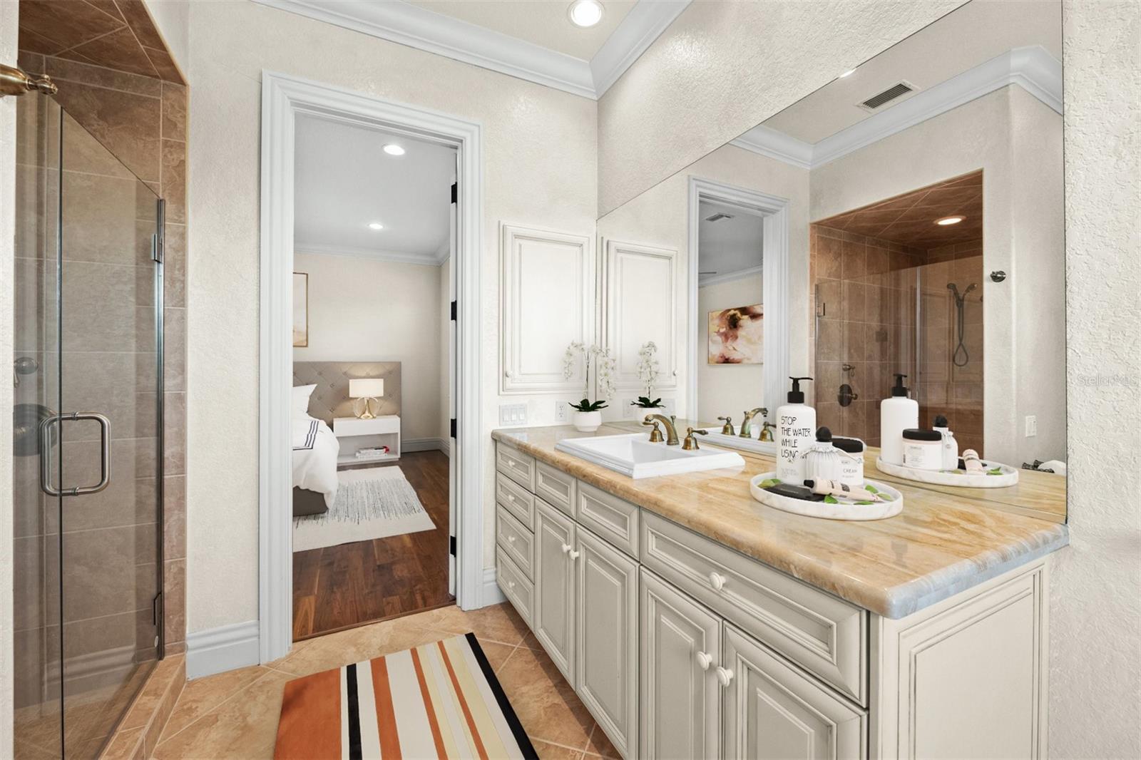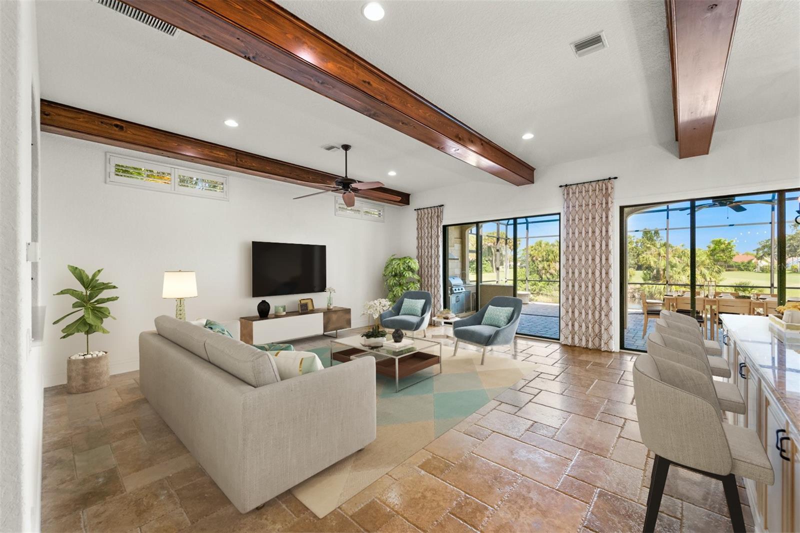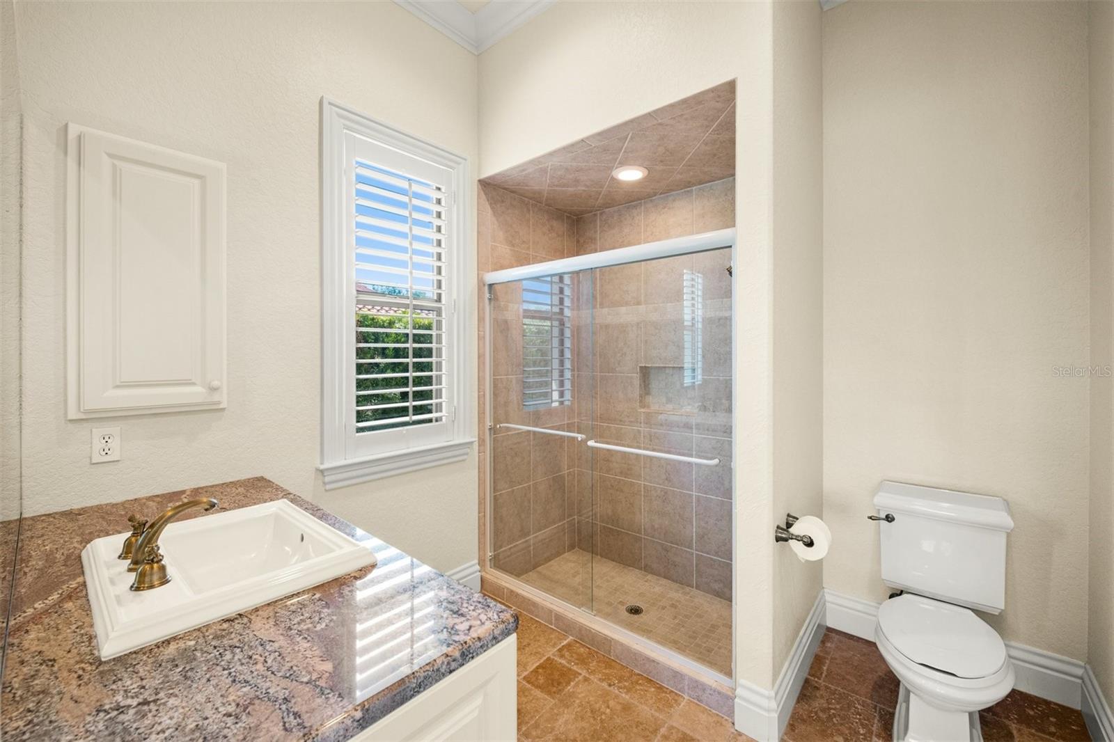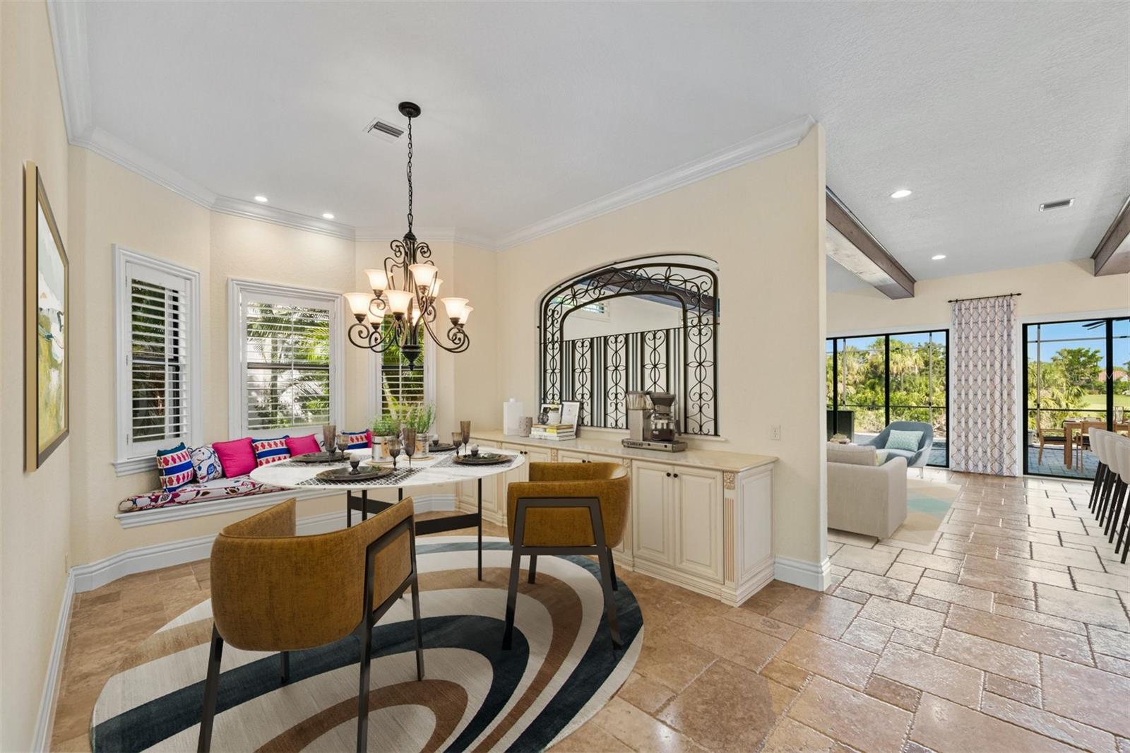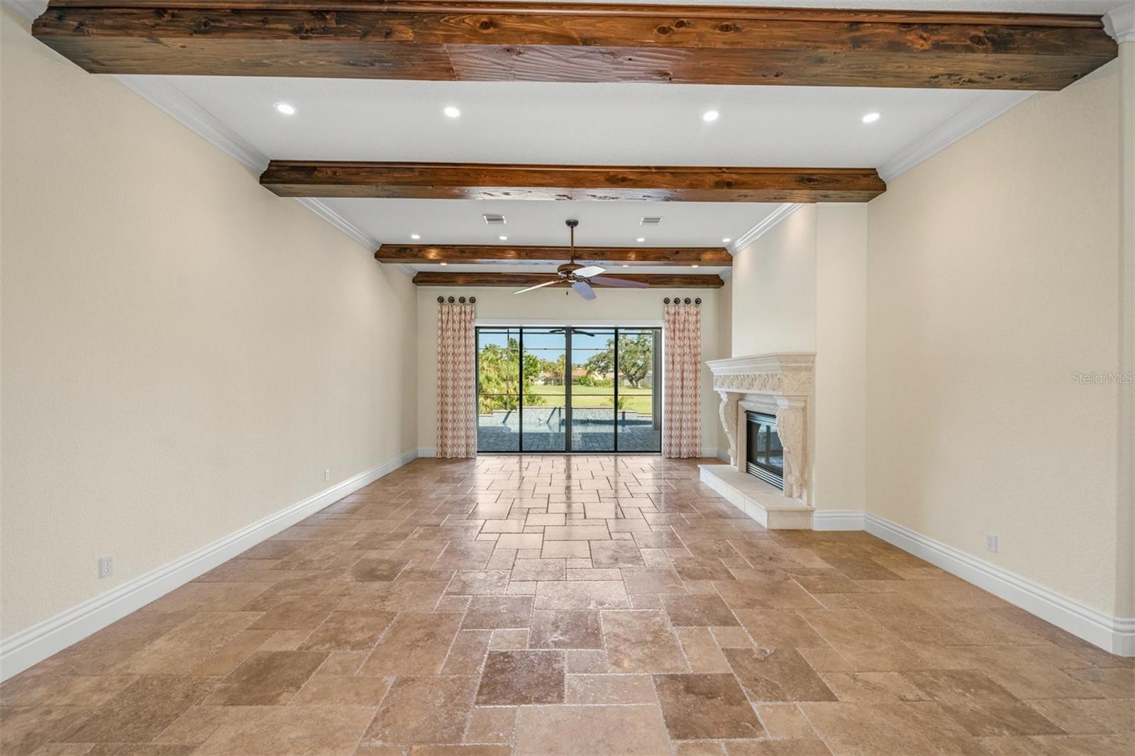 One or more photo(s) has been virtually staged. If you are interested in Prestancia TPC and it's world class golf courses, take a look here at this 5,800 square foot home in The Country Club of Sarasota. This luxury home is a .2 mile walk or golf cart ride away from the clubhouse at Prestancia which is closer than most of the homes in Prestancia. This wonderful home would list at $2,500,000 if in Prestancia. The HOA is also much lower in the Country Club of Sarasota than in Prestancia. You don't need to be be a resident to join the Prestancia Golf Club as a golf or social member. You enter this beautiful well built home through iron detailed double doors and a gracious foyer, with a large adjacent Dining Room where your gaze through the Living Room past the fireplace to the inviting 36' swimming pool! Built to the highest standards by The Island Building Company. This Tuscan Revival offer 4 large bedroom and 4.5 baths home is customized throughout for upscale living. The chef's kitchen has an enormous 17' Long granite Island, over 30' of cabinets, a desk area, breakfast area with built-in cabinets and a window seat, and Sub-Zero, Bosch and Dacor Appliances. A comfortable Family Room is attached to the kitchen. A temperature control wine cellar that formerly held 3,000 bottles (shelving has been removed) is located next to the walk in pantry. Wood ceiling beams continue the Tuscan feel through many areas of the home. The first floor also includes a guest sweet with pool access as well as a very large office with with a built in desk and book shelves wrapping half the room. This office is so spacious the owner had it double as a pool hall. The second floor which can be accessed by the wood panel stair or the elevator has 3 large bedrooms all on-suites including the master. The 2nd level also included a seating area, the laundry room, a storage room and a balcony. Storm shutters and a generator add piece of mind. This perfect location has easy access to shopping, dining beaches and downtown Sarasota. The well established community of The Country Club of Sarasota also offers a 24/7 manned gate for your security.