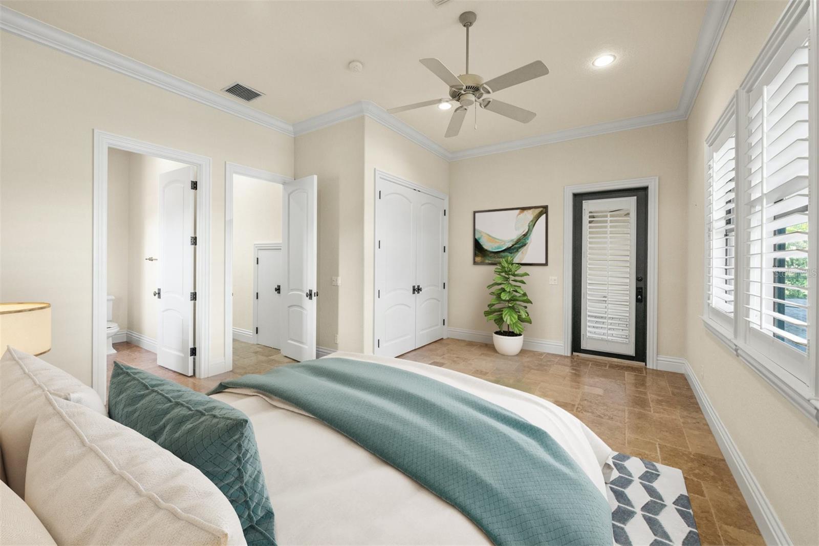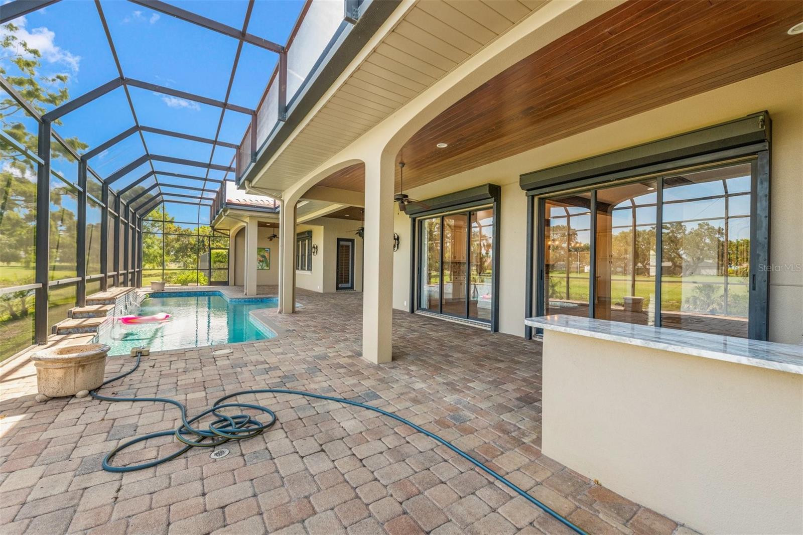 - Exterior: Balcony, Hurricane Shutters, Irrigation System, Outdoor Grill, Outdoor Kitchen, Private Mailbox, Rain Gutters, Sidewalk, Sliding Doors