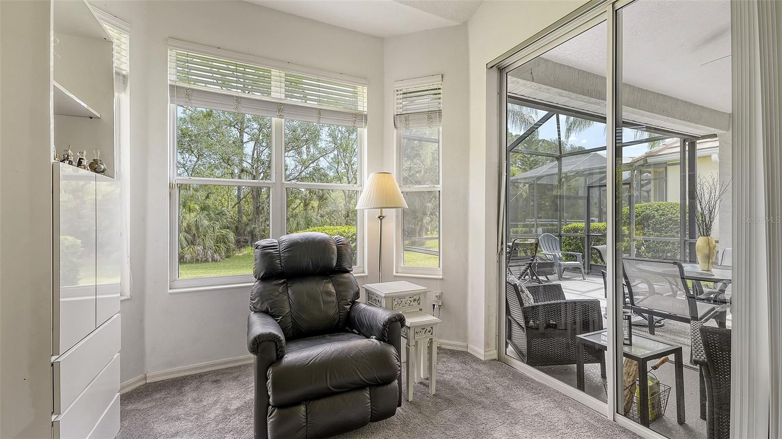 The Lowest Priced Home in LWRGCC!! Live in the premier Lakewood Ranch Country Club Village with the best location on "The Ranch." This well-maintained and architecturally pleasing Neal home is situated on a peaceful preserve featuring a stucco and stacked stone faade, and tile roof. Enter this cozy two-bedroom-plus-den home to vaulted ceilings, plank tile flooring and a contemporary feel throughout. The floor plan flows nicely with the great room open to an expanded lanai allowing natural light to filter into the living spaces. The large dining room offers high ceilings and French doors opening to a side patio. The kitchen offers newer appliances with the convection oven doubling as an air fryer saving you precious counterspace. Sliding doors open from the breakfast nook to the side patio which is perfect for your morning coffee or grilling a delicious meal. The spacious master is a sweet retreat with sitting area, double vanity, soaking tub and large walk-in closet. The guest suite and den are separated for comfort and privacy. This special neighborhood of Spyglass is maintenance-free, servicing your lawn, garden, and sprinkler maintenance. Also enjoy a large community pool and spa for your carefree lifestyle. Separately, Lakewood Ranch Golf and Country Club offers three golf courses, fitness, tennis and pickleball courts, two clubhouses and more with membership. Conveniently located minutes from I-75, The Mall at University Town Center, many fine restaurants and the beautiful beaches Sarasota and Manatee have to offer.