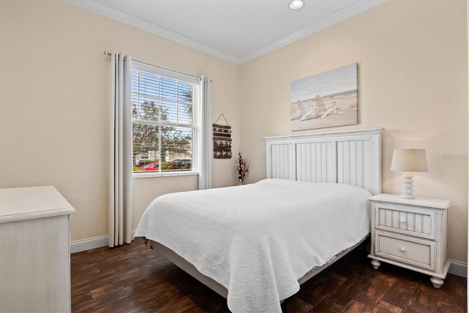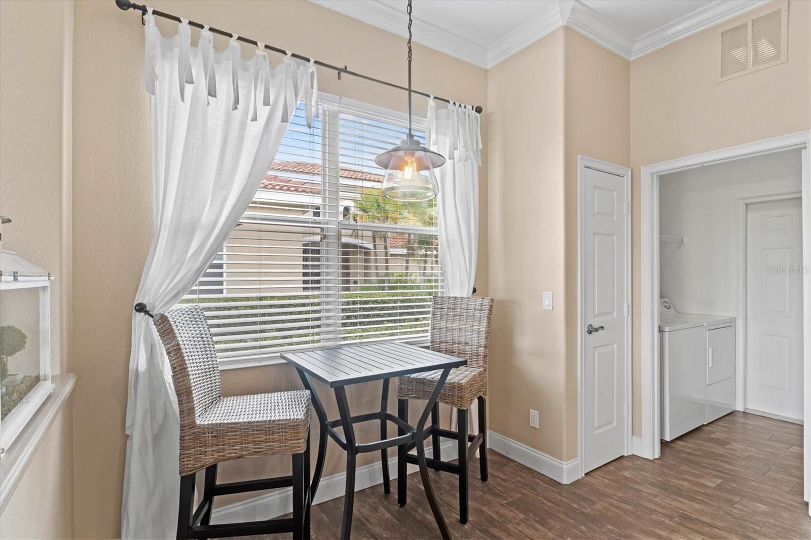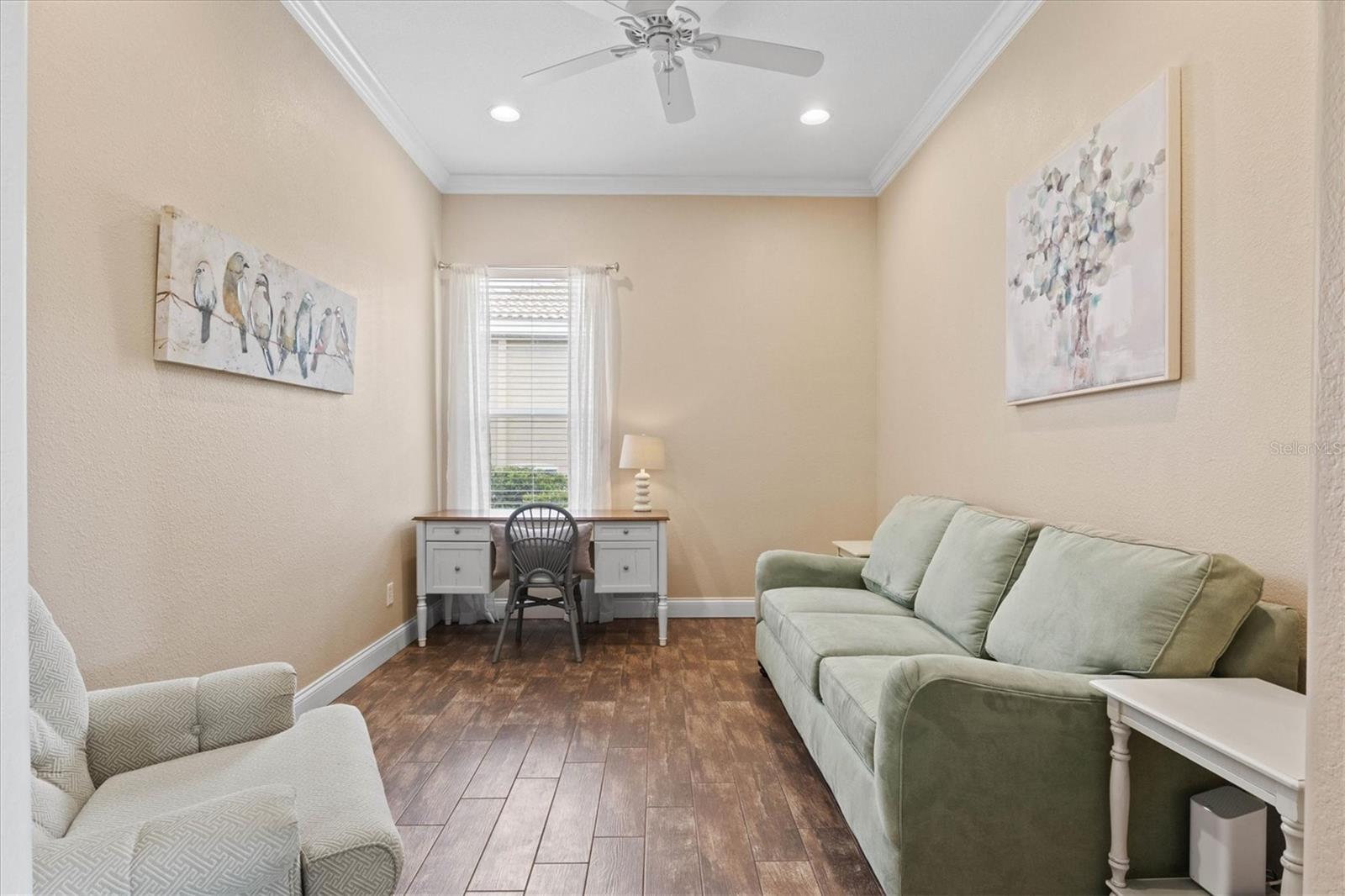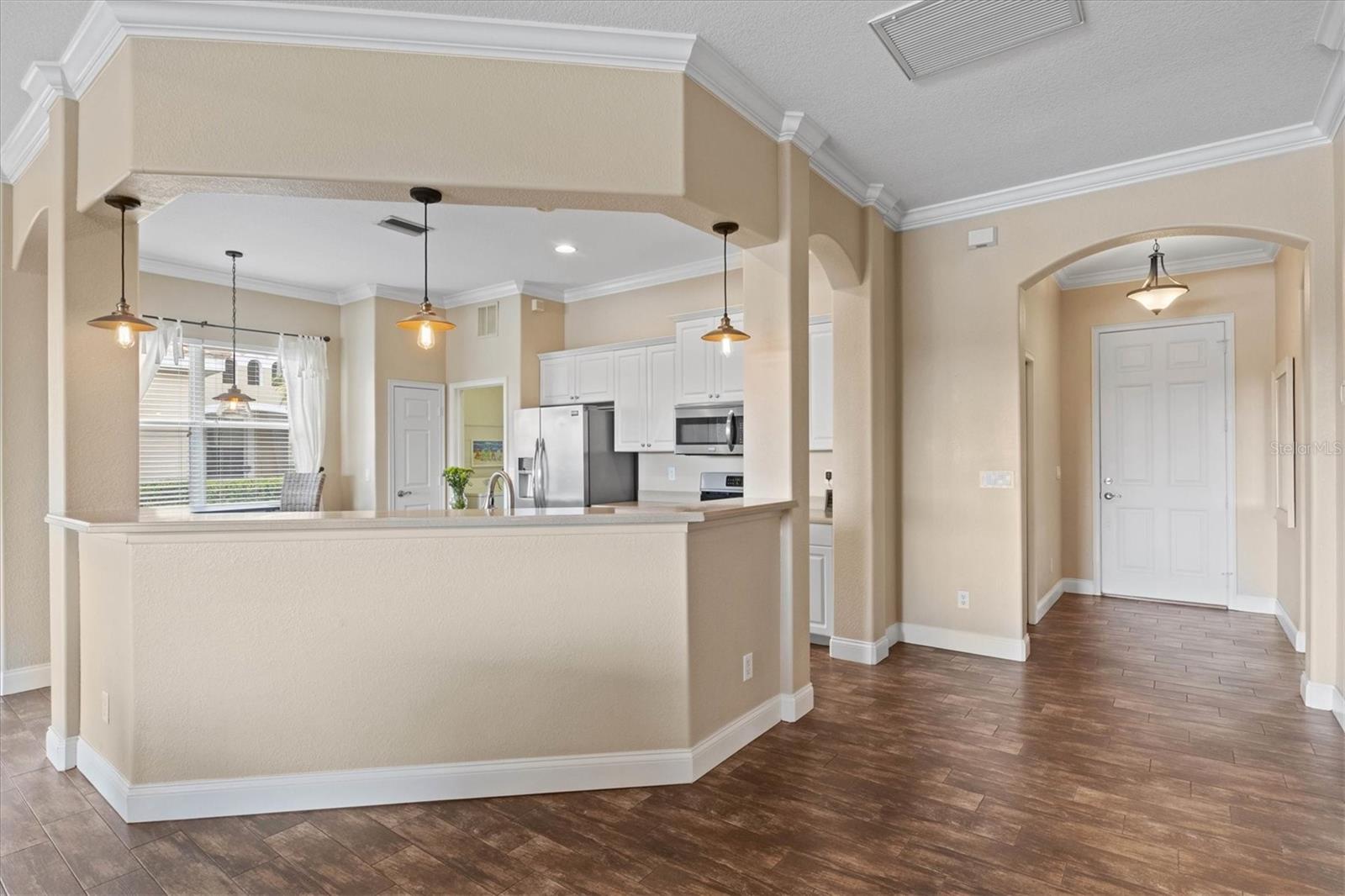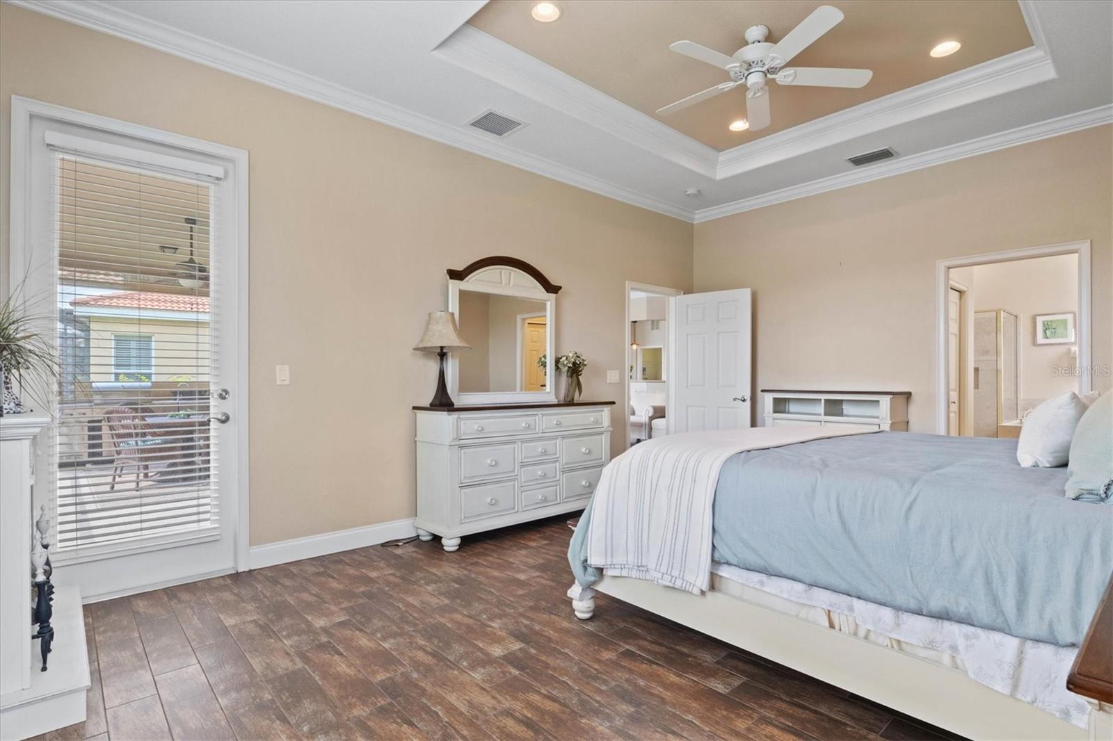 Freshly painted interior main living areas. Enjoy maintenance-free living in this resort style community with 24 hr security and roaming security, social membership is included in Hoa. This bright, elegant open concept home with 12 ft ceilings, outdoor automatic lighting, and a two-car garage, has been beautifully maintained. It is boasting 2 bedrooms, 2 baths and a versatile den which can be transformed to meet your own unique needs and can be used as a home office, a library, or even as an extra guest room. The kitchen features gas range for cooking, solid neutral countertops. There is plenty of counter space, a breakfast bar and a caf-style dining area. The open concept of this home connects the kitchen, living area and dining room. The extra-large primary bedroom offers a private ensuite bathroom, walk-in closet, tray ceilings, water views, and a private exit out to the lanai. The ensuite bathroom has a soaking tub, walk-in shower, and dual vanity sinks. In the evening, open the 18 ft wide tinted patio sliding doors that completely pocket so you can enjoy a seamless indoor/outdoor living with a full outdoor kitchen equipped with a natural gas BBQ, a gas grill cook top, fridge, sink and granite countertops. Some of the noted features and benefits of this home are: porcelain wood-look tile throughout, tray ceilings in the main living area and owner's suite, crown molding, hurricane impact windows, new in 2022 accordian-style hurricane shutters, AC replaced in 2019, a wifi garage door opener, and newer appliances and lighting. The HOA fees include lawn maintenance, 24 hr guard gated entry, cable TV and high-speed fiber internet. This is more than just a home, it's a lifestyle. Located in beautiful North Venice just minutes from gulf beaches, dining and shopping. Savor exquisite dining and events at the River Club overlooking a serene 70-acre nature park along the Myakka River. Also included is the gym, aerobics/yoga studio, or take a dip in the luxury resort-style pool, swim in the separate lap pool, and then have a drink or lunch at the Tiki Hut cabana bar. Tennis enthusiasts will be enthralled by the six court Har-Tru tennis courts, and pro organized tennis program. Pickleball players will love the newly built pickleball courts. This community is within an easy short drive to the new state-of-the-art Sarasota Memorial Hospital. Schedule a tour today.