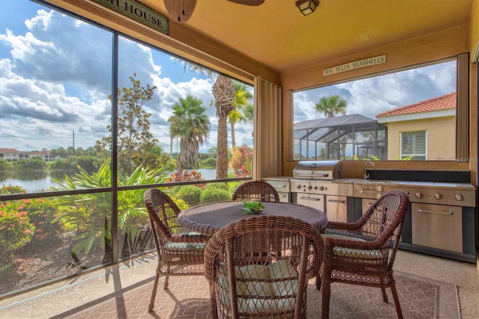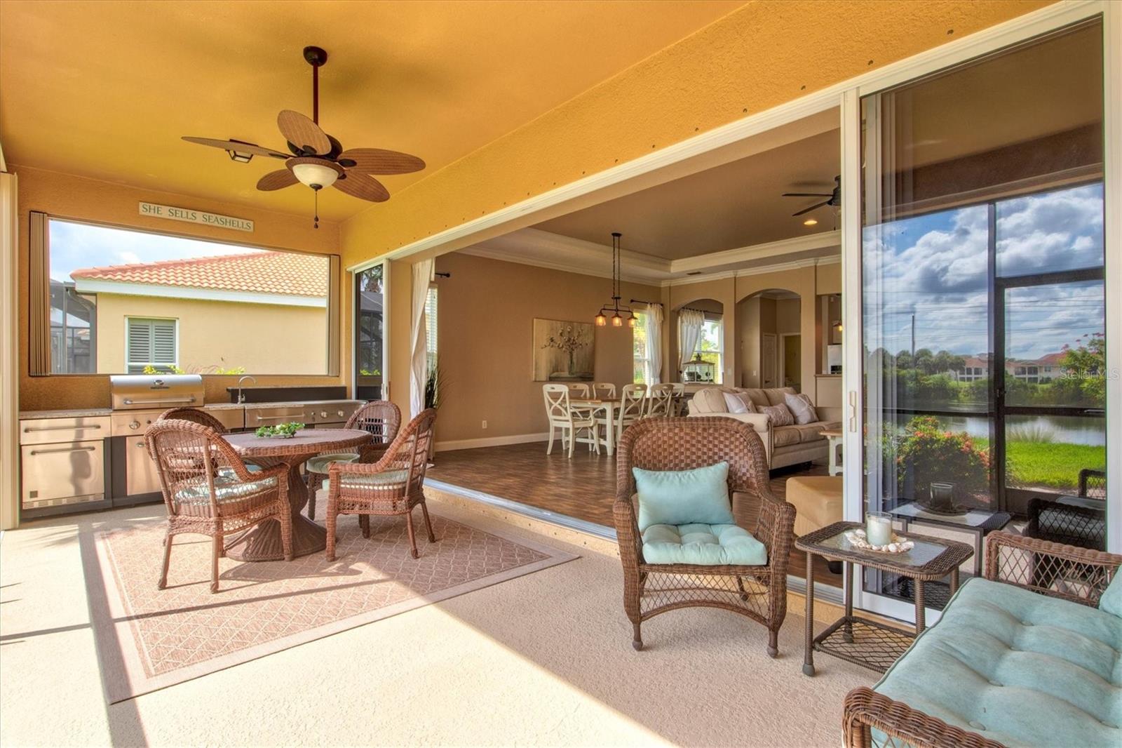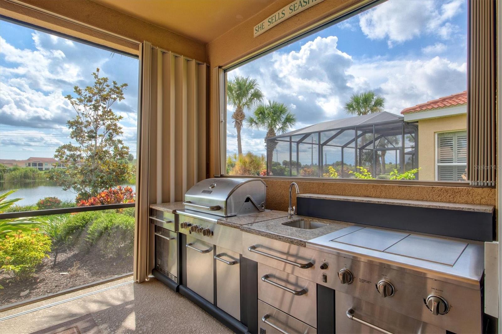 - Exterior: Irrigation System, Lighting, Outdoor Grill, Outdoor Kitchen, Sidewalk, Sliding Doors
