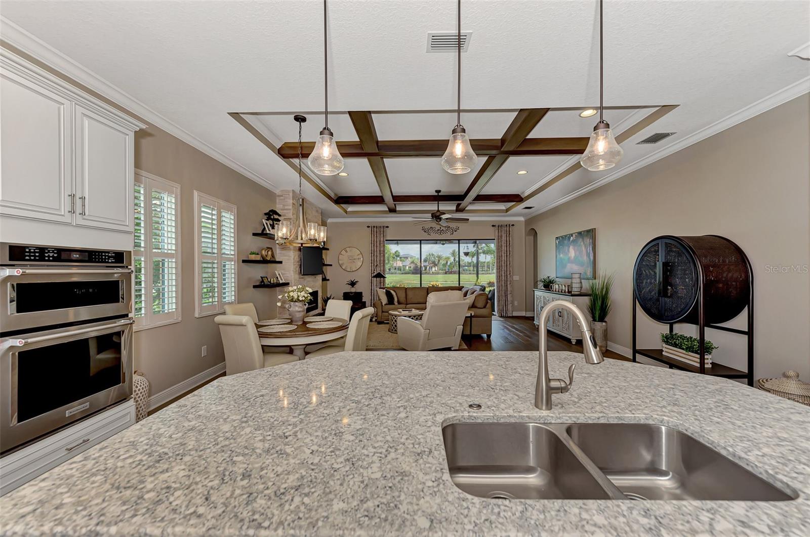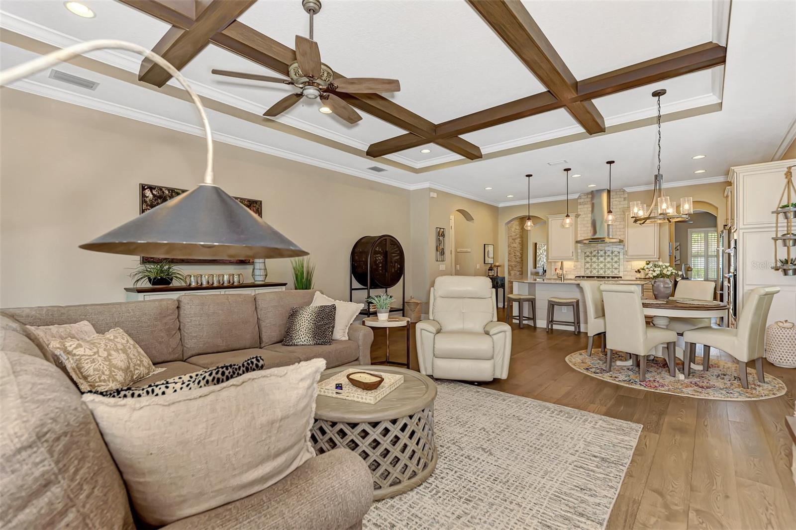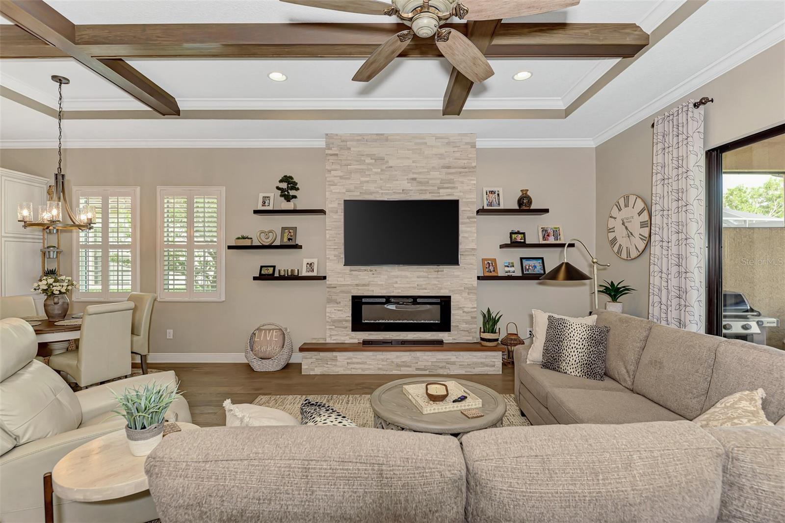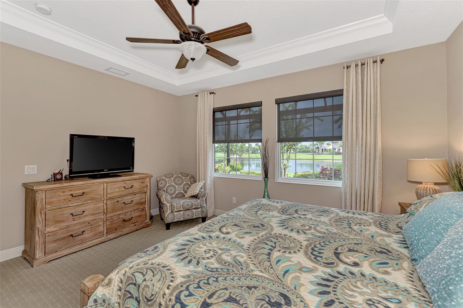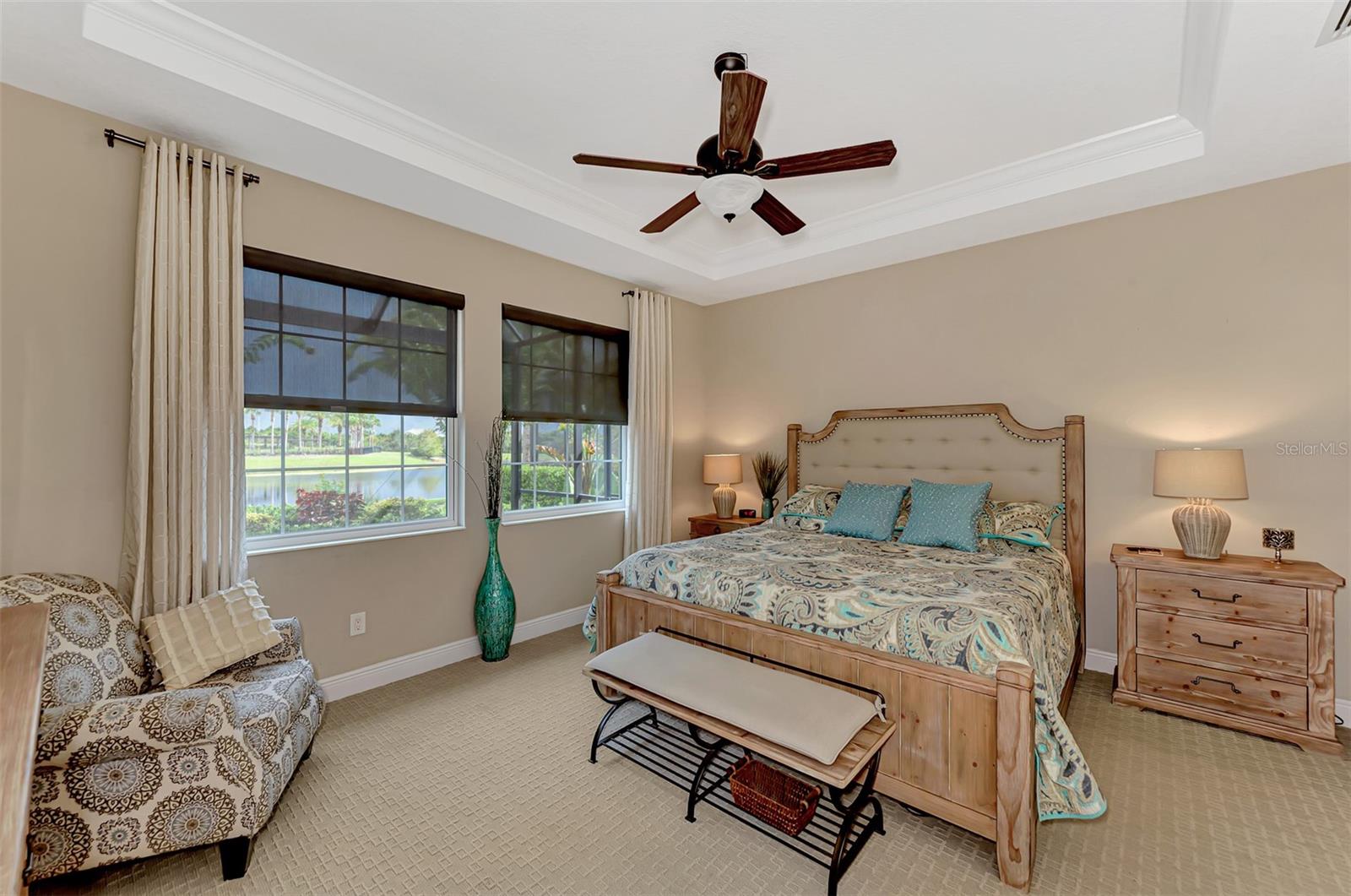 This beautiful WCI, Grand Cayman 2 bedrooms, plus office, 2 1/2 baths home is located in the highly sought after gated community of Country Club East, Lakewood Ranch and shows like a model. The home sits on a stunning professionally landscaped lake view lot, with an extended lanai and plenty of room to add your own custom private pool and spa. The home has upgraded hardwood flooring in the main living area and office, ceramic tile in laundry room and bathrooms and carpet in the bedrooms. Some of the unique upgrades in this home include a custom fireplace with a matching accent wall in the entry foyer, coffered ceilings with wood beams in the great room and crown molding in the great room and master bedroom adding incredible beauty and value. The gourmet kitchen has top of the line Kitchenaide stainless steel appliances including a gas cooktop, built-in wall oven/microwave, side by side refrigerator, quartz countertops and a beautiful custom backsplash. The community has great amenities including The Lodge restaurant, 3 swimming pools, fitness center, multi-purpose room for parties equipped with a full kitchen, flat screen TV, sitting area and a pool table. There are also walking trails, a dog park and 3 golf courses, (golf membership is optional). It's only a short walk to the Retreat pool, fitness center, multipurpose room and the community is maintenance assisted for your convenience. Located minutes away from fine dining, casual dining, fast food restaurants, shopping, UTC Mall, The Players Center for Performing Arts, The Oslo Repertory Theatre, The Polo Club, Premier Sports Complex and Nathan Benderson Park which is considered the ultimate recreational destination offering a wide range of activities, including world-class rowing events, kayaking, stand-up paddle boarding, fishing. Sarasota-Bradenton International Airport is conveniently located making air travel to and from Lakewood Ranch enjoyable. Last but not least Siesta Key Beach and Anna Maria Island two of the finest beaches in the USA makes Lakewood Ranch the perfect place to own your dream home.