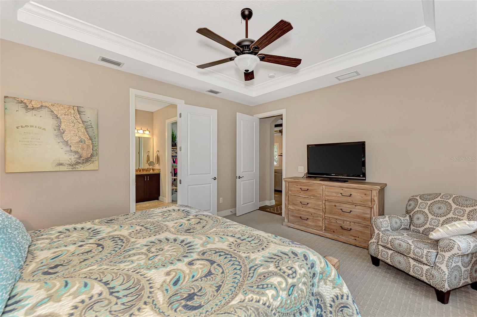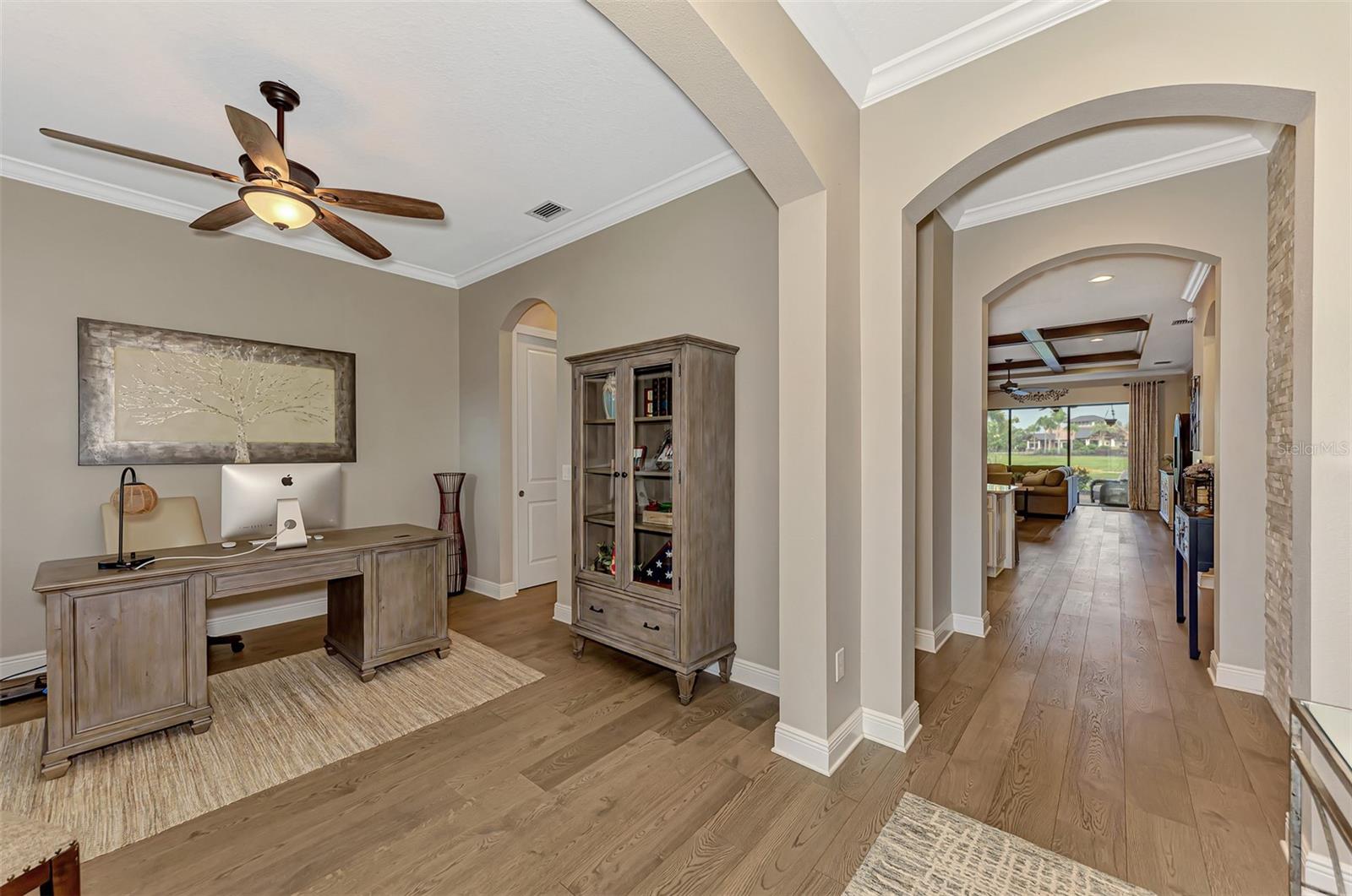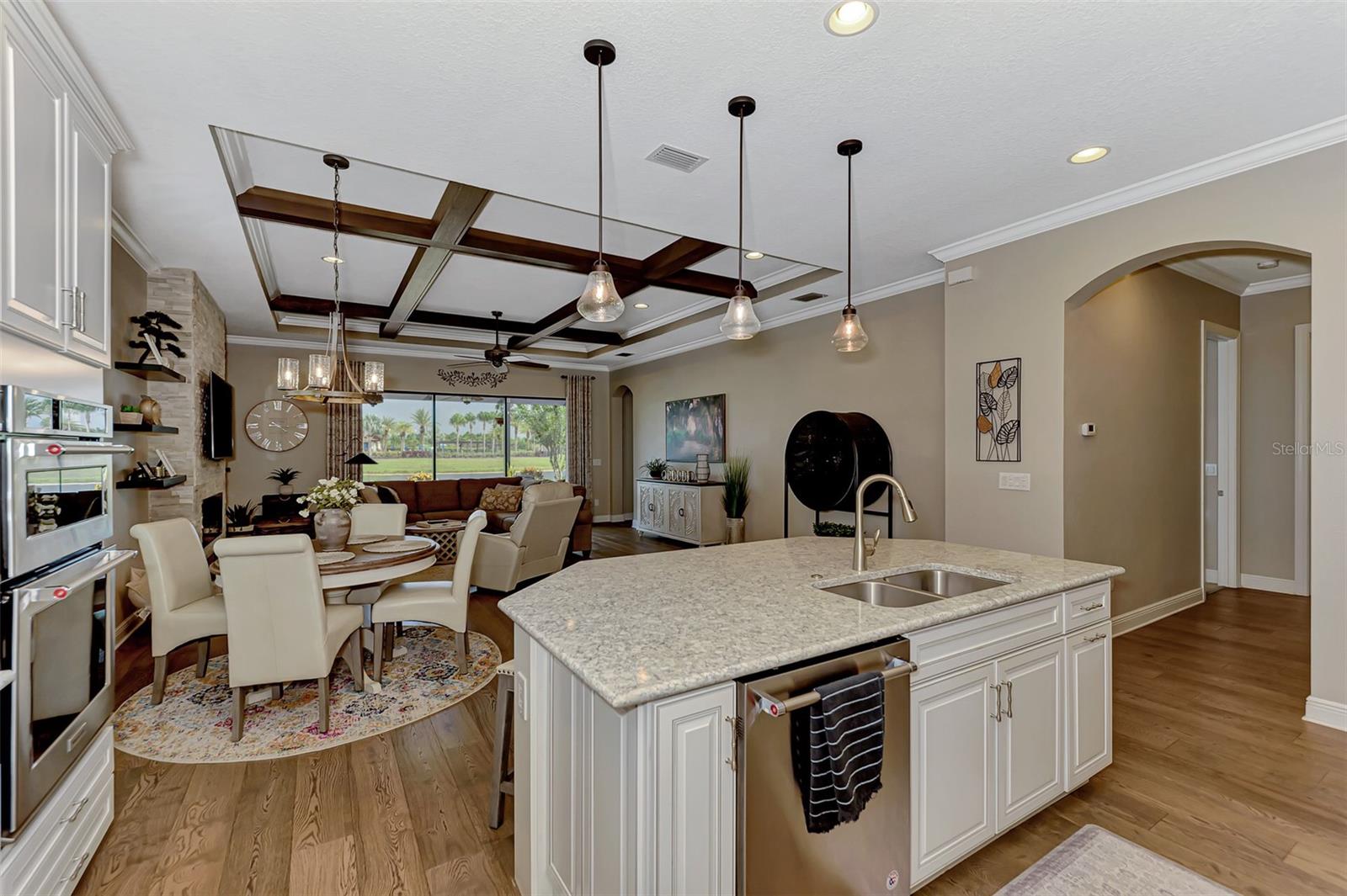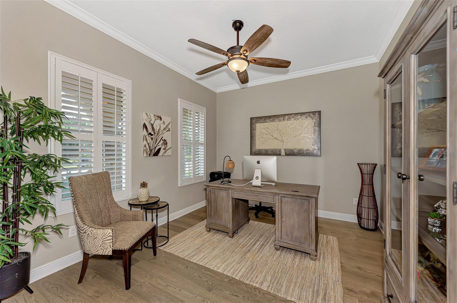 This beautiful WCI, Grand Cayman 2 bedrooms, plus office, 2 1/2 baths home is located in the highly sought after gated community of Country Club East, Lakewood Ranch and shows like a model. The home sits on a stunning professionally landscaped lake view lot, with an extended lanai and plenty of room to add your own custom private pool and spa. The home has upgraded hardwood flooring in the main living area and office, ceramic tile in laundry room and bathrooms and carpet in the bedrooms. Some of the unique upgrades in this home include a custom fireplace with a matching accent wall in the entry foyer, coffered ceilings with wood beams in the great room and crown molding in the great room and master bedroom adding incredible beauty and value. The gourmet kitchen has top of the line Kitchenaide stainless steel appliances including a gas cooktop, built-in wall oven/microwave, side by side refrigerator, quartz countertops and a beautiful custom backsplash. The community has great amenities including The Lodge restaurant, 3 swimming pools, fitness center, multi-purpose room for parties equipped with a full kitchen, flat screen TV, sitting area and a pool table. There are also walking trails, a dog park and 3 golf courses, (golf membership is optional). It's only a short walk to the Retreat pool, fitness center, multipurpose room and the community is maintenance assisted for your convenience. Located minutes away from fine dining, casual dining, fast food restaurants, shopping, UTC Mall, The Players Center for Performing Arts, The Oslo Repertory Theatre, The Polo Club, Premier Sports Complex and Nathan Benderson Park which is considered the ultimate recreational destination offering a wide range of activities, including world-class rowing events, kayaking, stand-up paddle boarding, fishing. Sarasota-Bradenton International Airport is conveniently located making air travel to and from Lakewood Ranch enjoyable. Last but not least Siesta Key Beach and Anna Maria Island two of the finest beaches in the USA makes Lakewood Ranch the perfect place to own your dream home.