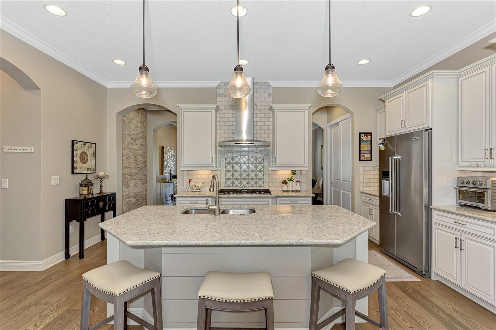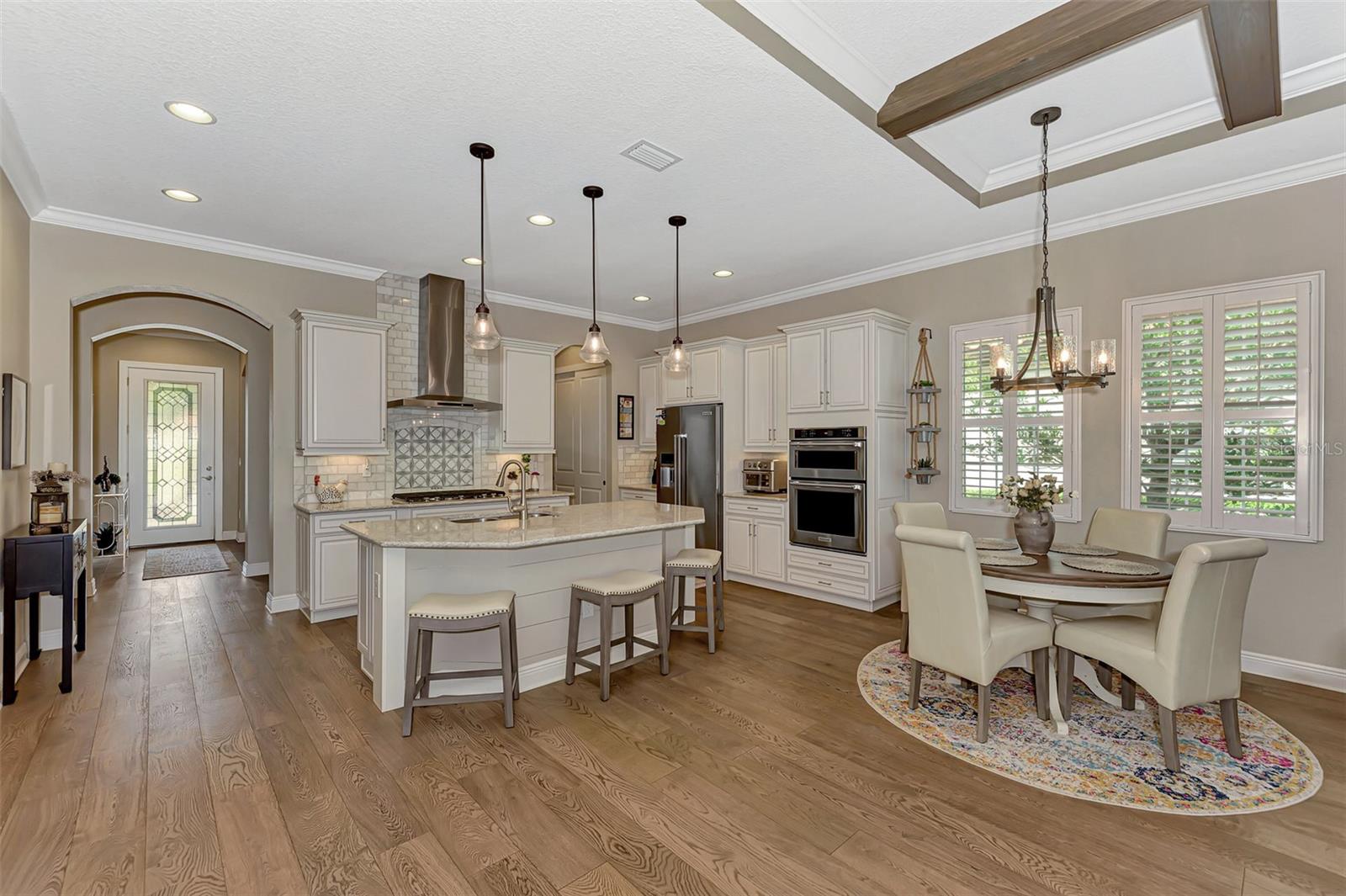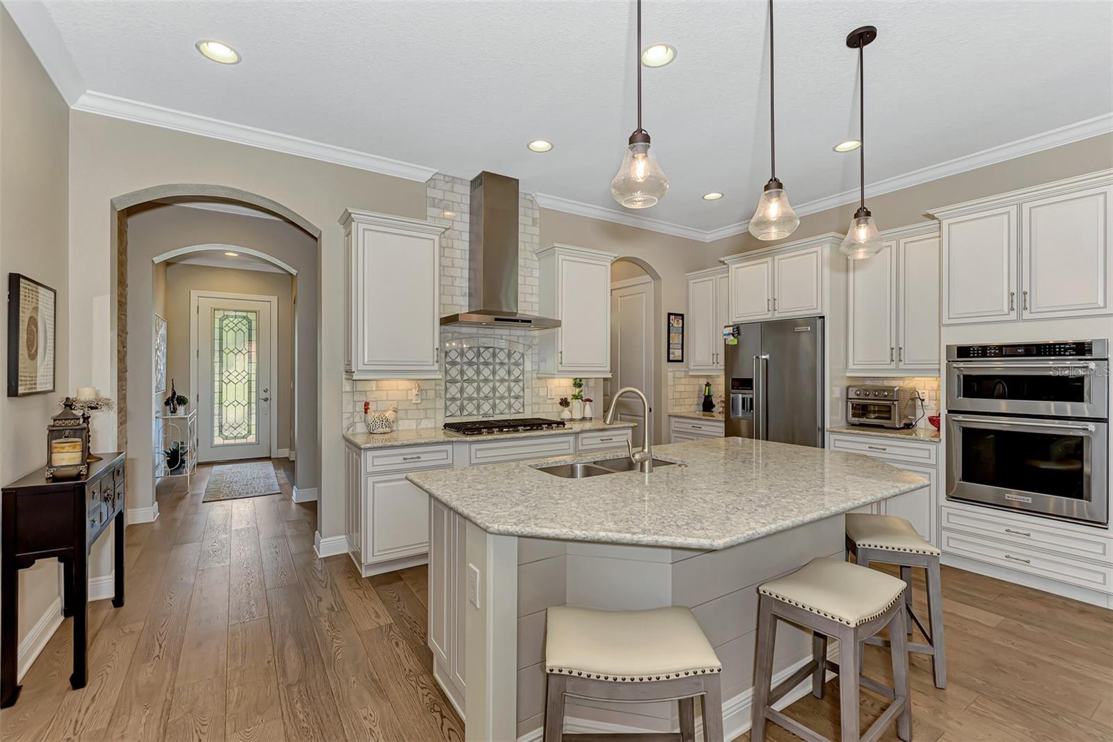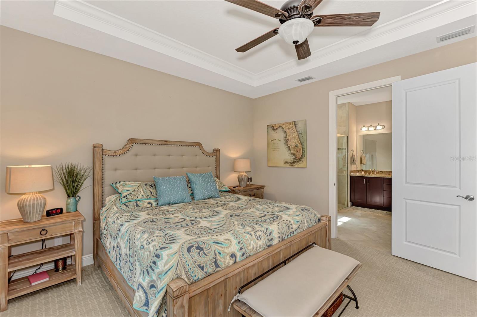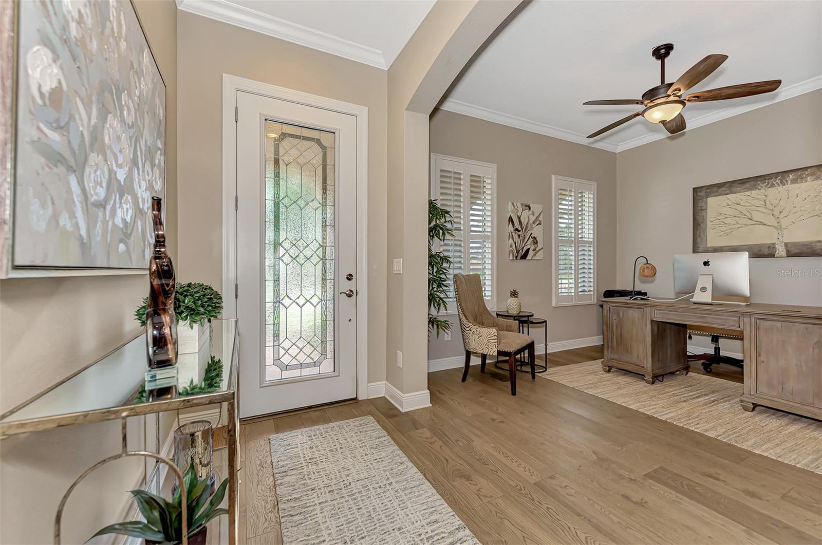 This beautiful WCI, Grand Cayman 2 bedrooms, plus office, 2 1/2 baths home is located in the highly sought after gated community of Country Club East, Lakewood Ranch and shows like a model. The home sits on a stunning professionally landscaped lake view lot, with an extended lanai and plenty of room to add your own custom private pool and spa. The home has upgraded hardwood flooring in the main living area and office, ceramic tile in laundry room and bathrooms and carpet in the bedrooms. Some of the unique upgrades in this home include a custom fireplace with a matching accent wall in the entry foyer, coffered ceilings with wood beams in the great room and crown molding in the great room and master bedroom adding incredible beauty and value. The gourmet kitchen has top of the line Kitchenaide stainless steel appliances including a gas cooktop, built-in wall oven/microwave, side by side refrigerator, quartz countertops and a beautiful custom backsplash. The community has great amenities including The Lodge restaurant, 3 swimming pools, fitness center, multi-purpose room for parties equipped with a full kitchen, flat screen TV, sitting area and a pool table. There are also walking trails, a dog park and 3 golf courses, (golf membership is optional). It's only a short walk to the Retreat pool, fitness center, multipurpose room and the community is maintenance assisted for your convenience. Located minutes away from fine dining, casual dining, fast food restaurants, shopping, UTC Mall, The Players Center for Performing Arts, The Oslo Repertory Theatre, The Polo Club, Premier Sports Complex and Nathan Benderson Park which is considered the ultimate recreational destination offering a wide range of activities, including world-class rowing events, kayaking, stand-up paddle boarding, fishing. Sarasota-Bradenton International Airport is conveniently located making air travel to and from Lakewood Ranch enjoyable. Last but not least Siesta Key Beach and Anna Maria Island two of the finest beaches in the USA makes Lakewood Ranch the perfect place to own your dream home.