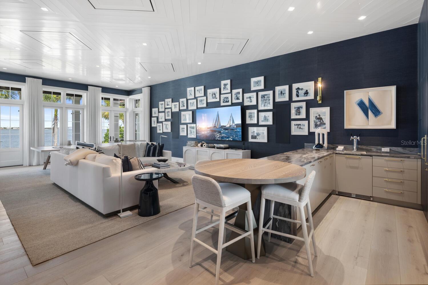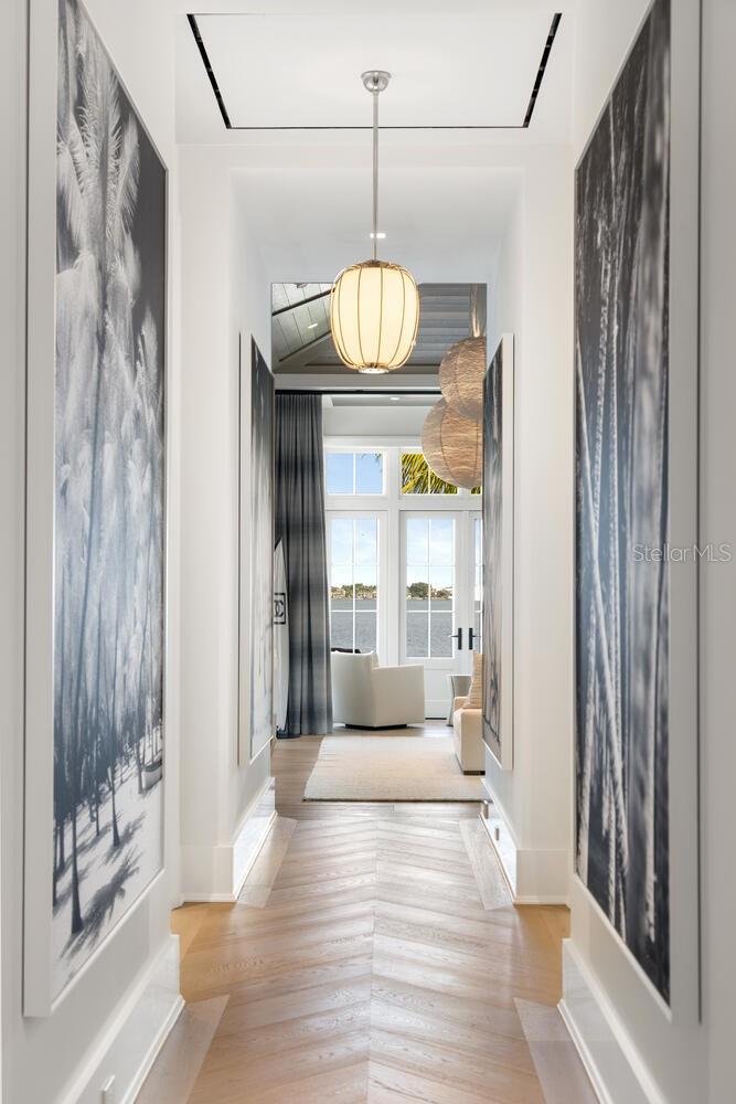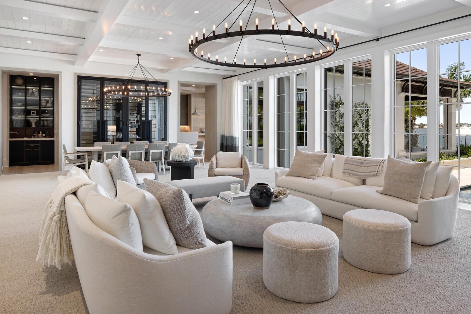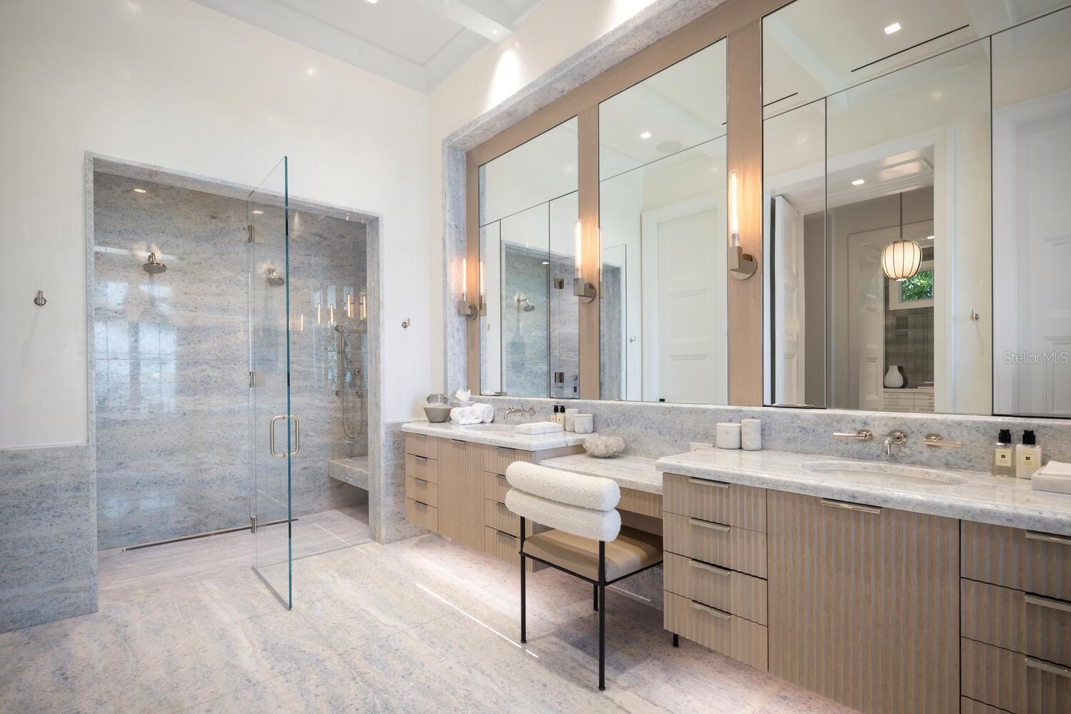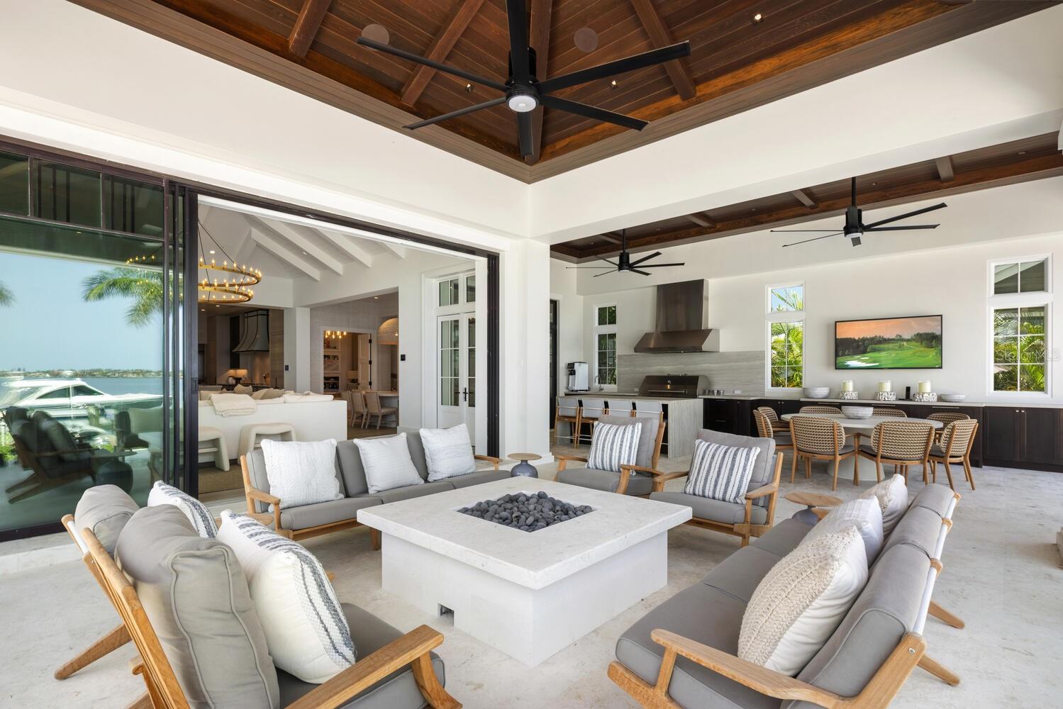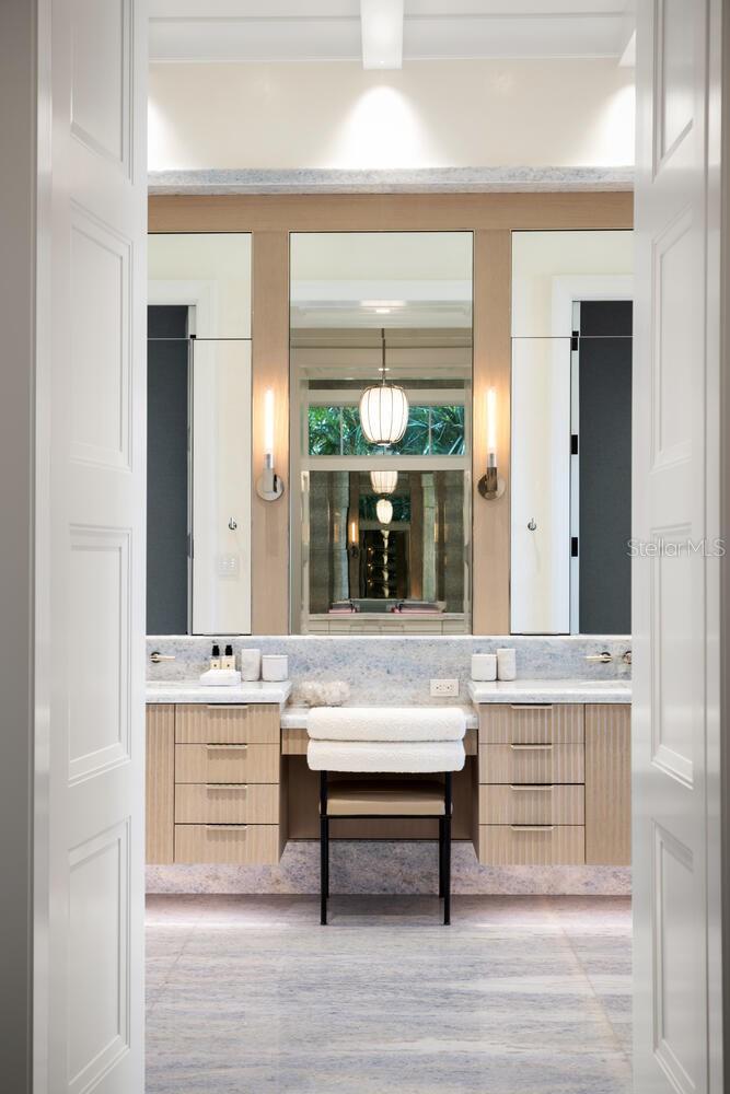 Exceptional in every aspect, this magnificent custom bayfront estate in Sarasota's coveted Harbor Acres Estate Section showcases superb craftsmanship, state-of-the-art technology, breathtaking vistas and fabulous amenities. Situated on nearly one acre with 144 feet of bay frontage, the 11,275-square-foot home boasts sophisticated, comfortable living spaces, primarily on the main floor, and mesmerizing views of Sarasota Bay, the Ringling Bridge and downtown. The modern British West Indies-style residence has 8 en-suite bedrooms and 4 powder bathrooms. Completed in 2022, the home was designed by Stofft Cooney Architects and masterfully built in 2 years by Perrone Construction. The meticulously curated estate is perfect for casual gatherings or large-scale soirees. European White Oak Engineered hardwood flooring flows throughout both levels, where architectural ceilings and enchanting light fixtures abound and multiple terraces offer awe-inspiring views. Wolf Design Group of Atlanta masterfully designed the interior. The kitchen, bar and primary bathroom design by Matthew Quinn of Atlanta-based Design Galleria. The remarkably landscaped grounds were designed by Stephen Hazeltine. The stucco and stone accent home features a raised pile foundation, hurricane impact windows and doors, screened covered porch with motorized bug screens and hurricane shutters, and a whole-house generator. Elba White stone steps ascend to an impressive entry pavilion. Inside, refined living spaces await for the entire family, including a voluminous formal living/dining room with fireplace, quartzite feature wall and floor-to-ceiling windows with captivating water views. The 8,200-SF-plus main level also has a dazzling gourmet kitchen, family room, mudroom, playroom, clubroom, gym, primary suite and expansive guest wing. The kitchen showcases an elegant La Cornue range and hood, Sub-Zero appliances and quartzite countertops, with an adjacent scullery, stylish breakfast nook and family room. An enormous temperature-controlled wine display separates the kitchen and formal dining room. The sizable clubroom is ideal for movie and game nights, with a bar and entertainment areas, plus French doors to a bayfront terrace. Elba White stone tile adorns the extensive outdoor space, which offers a kitchen with a Kalamazoo grill, dining and gathering areas, and an overflow pool with spa, sun shelf and fire bowls with automated lighting. A 27,000-lb. high-speed boat lift and 4,500-lb. dual Jet Ski lift with aluminum-framed platform are convenient for launching your waterway adventures. The primary suite features an opulent bathroom with blue quartzite countertops and flooring, massive closet and dressing room, second walk-in closet, morning bar, study and bayfront terrace. The generous guest wing has three en-suite bedrooms, lounge area, patio and a private outdoor entrance. The nearly 3,100-SF second level has a second primary suite, and three guest suites. A large lounge area with a balcony is perfect for savoring the stunning panoramas. Other notable highlights include a Crestron home automation system, motorized drapery/shades, home theater speaker system in the family room and clubroom, Lutron lighting system, whole house generator and automated mosquito spraying system. This waterfront masterpiece is just south of downtown's dining, shopping and cultural arts, walkable to Southside Village's restaurants and shops, and a short drive to pristine beaches.