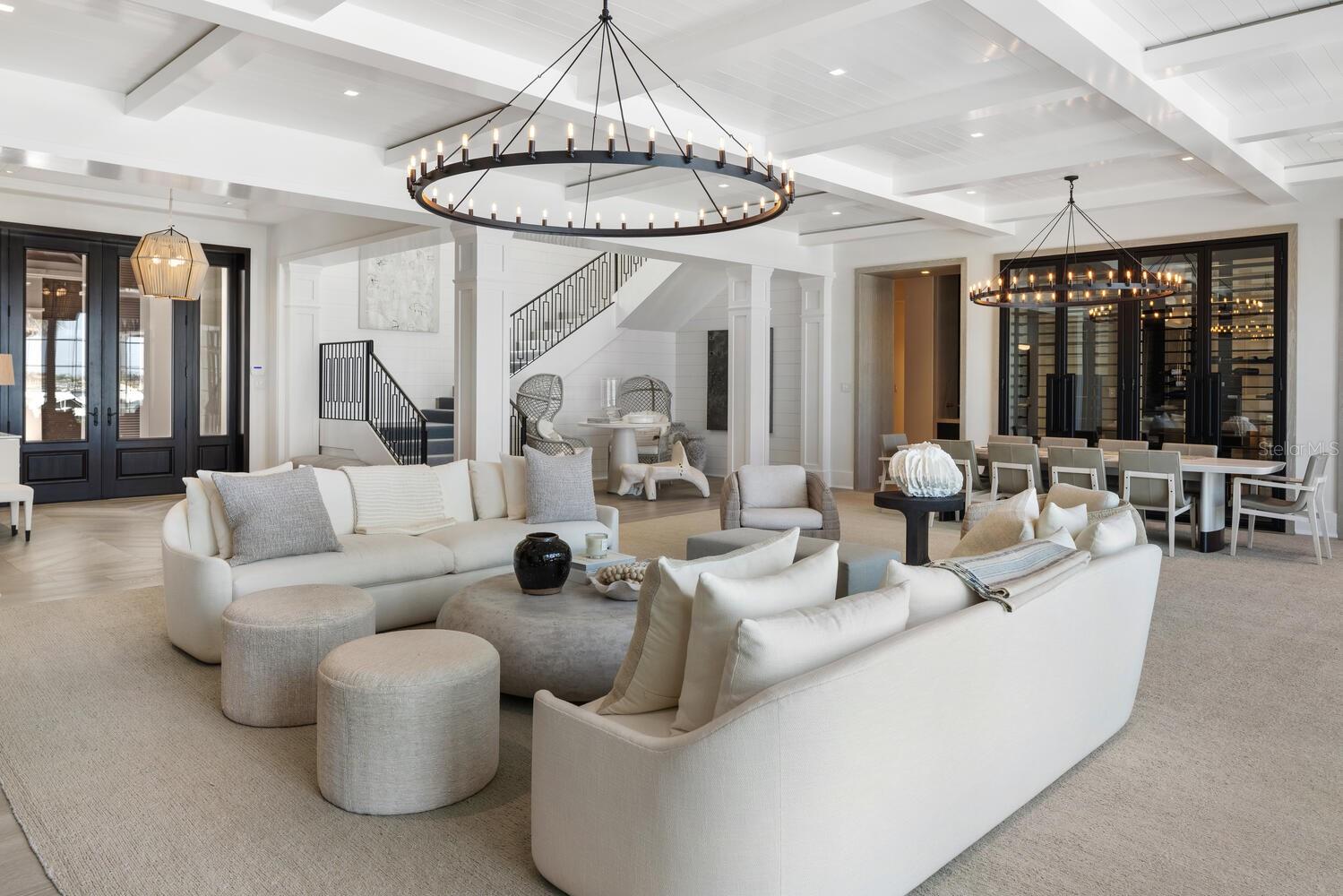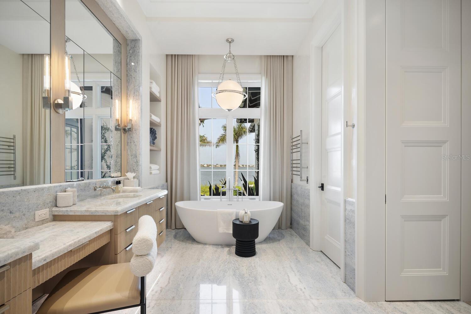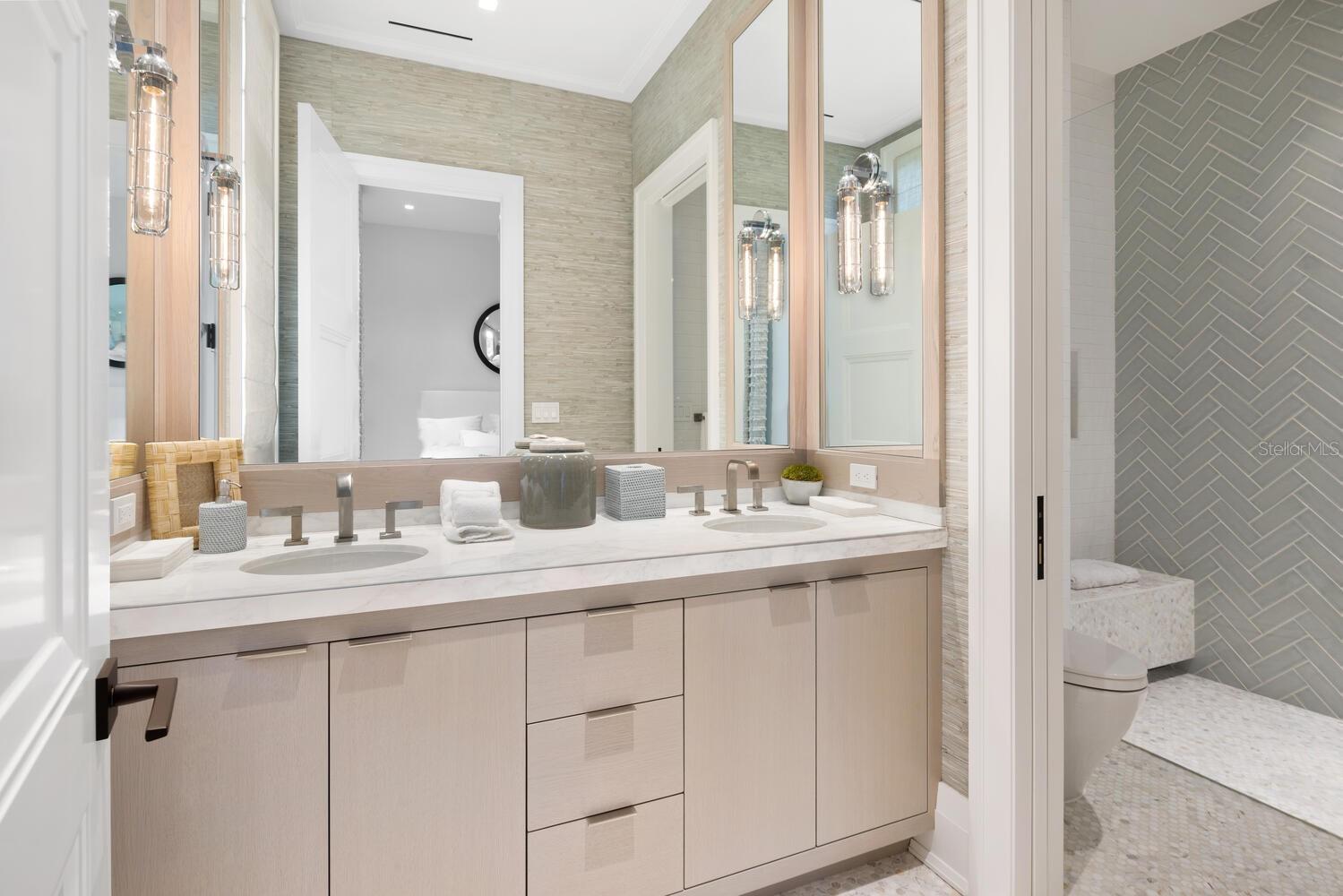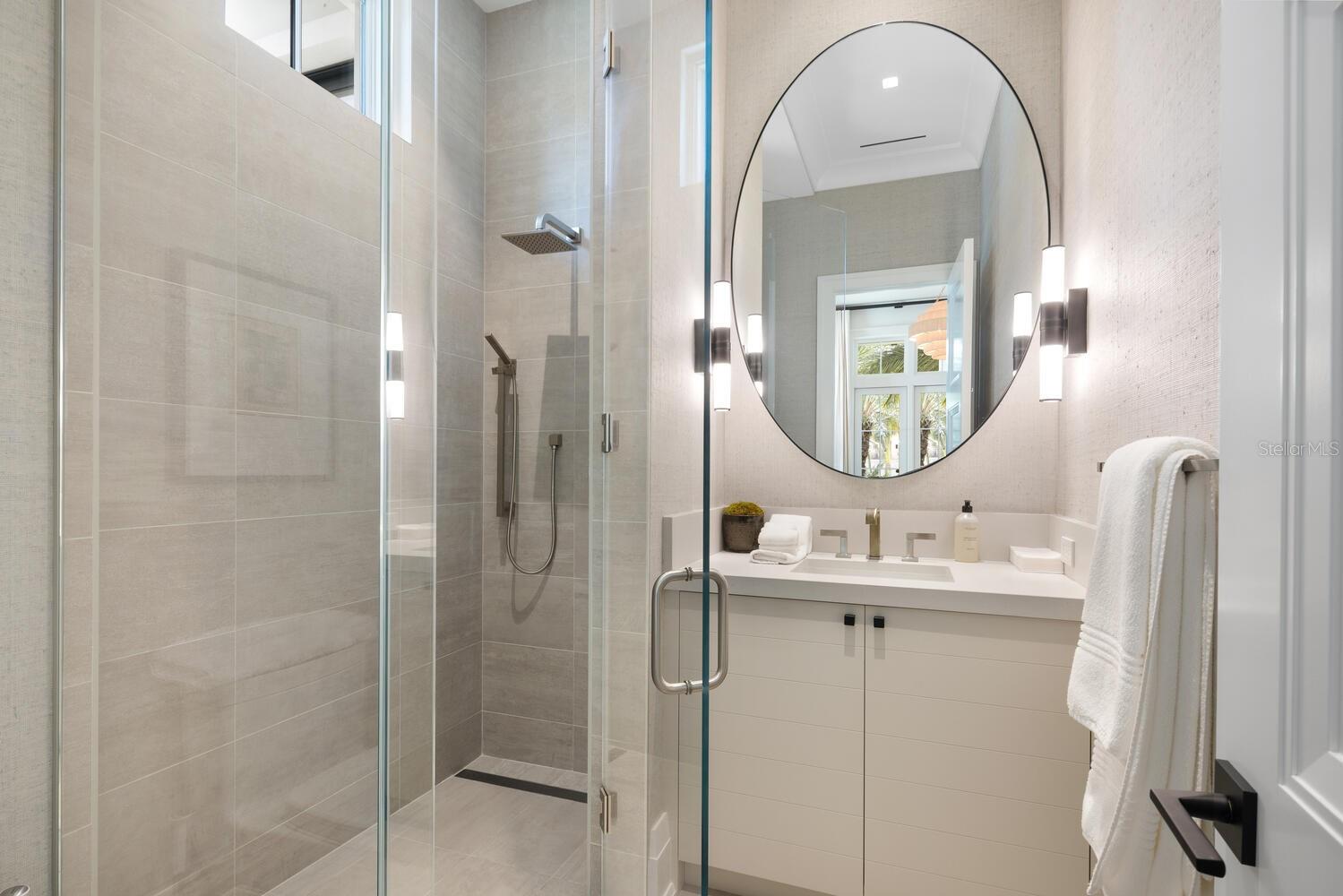 Exceptional in every aspect, this magnificent custom bayfront estate in Sarasota's coveted Harbor Acres Estate Section showcases superb craftsmanship, state-of-the-art technology, breathtaking vistas and fabulous amenities. Situated on nearly one acre with 144 feet of bay frontage, the 11,275-square-foot home boasts sophisticated, comfortable living spaces, primarily on the main floor, and mesmerizing views of Sarasota Bay, the Ringling Bridge and downtown. The modern British West Indies-style residence has 8 en-suite bedrooms and 4 powder bathrooms. Completed in 2022, the home was designed by Stofft Cooney Architects and masterfully built in 2 years by Perrone Construction. The meticulously curated estate is perfect for casual gatherings or large-scale soirees. European White Oak Engineered hardwood flooring flows throughout both levels, where architectural ceilings and enchanting light fixtures abound and multiple terraces offer awe-inspiring views. Wolf Design Group of Atlanta masterfully designed the interior. The kitchen, bar and primary bathroom design by Matthew Quinn of Atlanta-based Design Galleria. The remarkably landscaped grounds were designed by Stephen Hazeltine. The stucco and stone accent home features a raised pile foundation, hurricane impact windows and doors, screened covered porch with motorized bug screens and hurricane shutters, and a whole-house generator. Elba White stone steps ascend to an impressive entry pavilion. Inside, refined living spaces await for the entire family, including a voluminous formal living/dining room with fireplace, quartzite feature wall and floor-to-ceiling windows with captivating water views. The 8,200-SF-plus main level also has a dazzling gourmet kitchen, family room, mudroom, playroom, clubroom, gym, primary suite and expansive guest wing. The kitchen showcases an elegant La Cornue range and hood, Sub-Zero appliances and quartzite countertops, with an adjacent scullery, stylish breakfast nook and family room. An enormous temperature-controlled wine display separates the kitchen and formal dining room. The sizable clubroom is ideal for movie and game nights, with a bar and entertainment areas, plus French doors to a bayfront terrace. Elba White stone tile adorns the extensive outdoor space, which offers a kitchen with a Kalamazoo grill, dining and gathering areas, and an overflow pool with spa, sun shelf and fire bowls with automated lighting. A 27,000-lb. high-speed boat lift and 4,500-lb. dual Jet Ski lift with aluminum-framed platform are convenient for launching your waterway adventures. The primary suite features an opulent bathroom with blue quartzite countertops and flooring, massive closet and dressing room, second walk-in closet, morning bar, study and bayfront terrace. The generous guest wing has three en-suite bedrooms, lounge area, patio and a private outdoor entrance. The nearly 3,100-SF second level has a second primary suite, and three guest suites. A large lounge area with a balcony is perfect for savoring the stunning panoramas. Other notable highlights include a Crestron home automation system, motorized drapery/shades, home theater speaker system in the family room and clubroom, Lutron lighting system, whole house generator and automated mosquito spraying system. This waterfront masterpiece is just south of downtown's dining, shopping and cultural arts, walkable to Southside Village's restaurants and shops, and a short drive to pristine beaches.