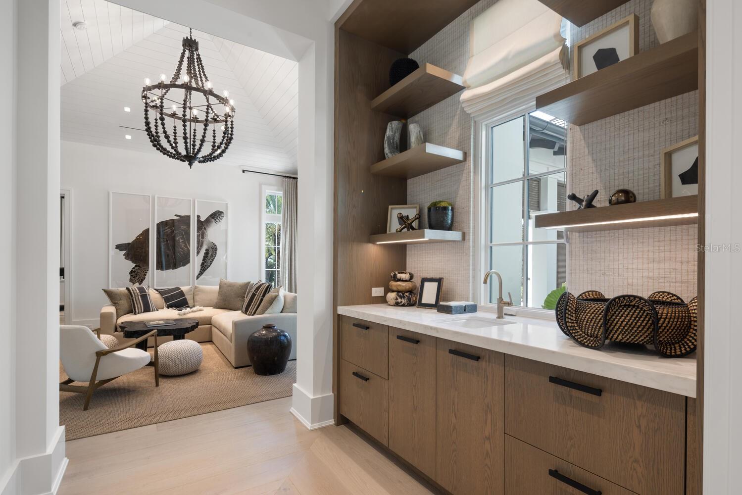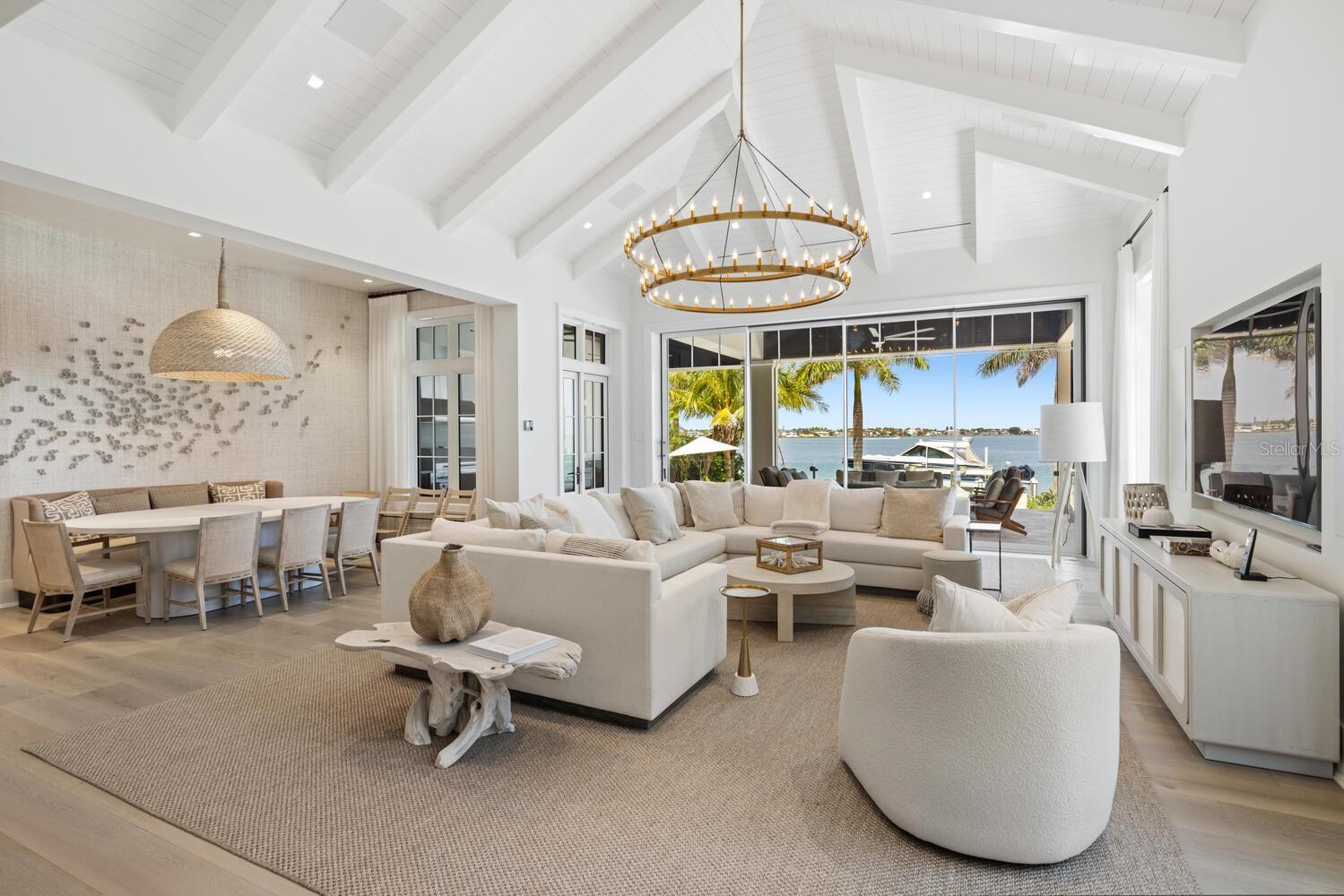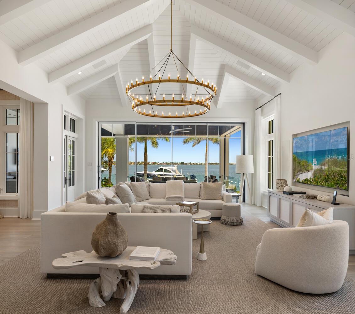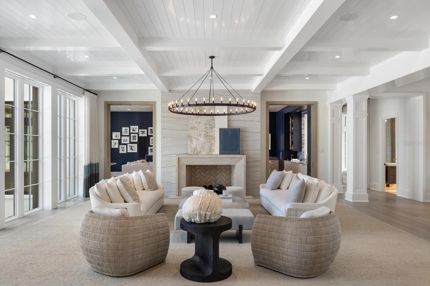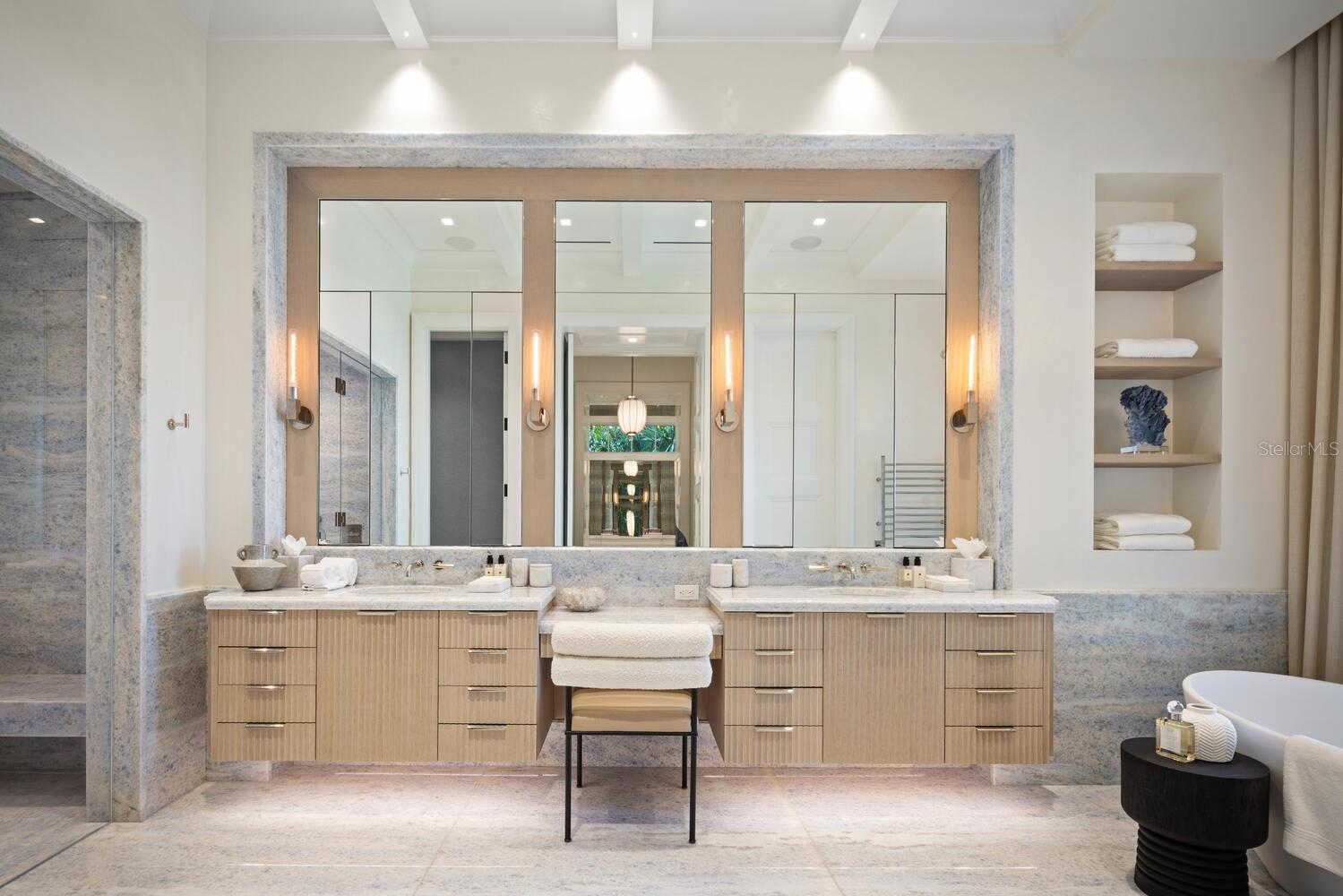 Exceptional in every aspect, this magnificent custom bayfront estate in Sarasota's coveted Harbor Acres Estate Section showcases superb craftsmanship, state-of-the-art technology, breathtaking vistas and fabulous amenities. Situated on nearly one acre with 144 feet of bay frontage, the 11,275-square-foot home boasts sophisticated, comfortable living spaces, primarily on the main floor, and mesmerizing views of Sarasota Bay, the Ringling Bridge and downtown. The modern British West Indies-style residence has 8 en-suite bedrooms and 4 powder bathrooms. Completed in 2022, the home was designed by Stofft Cooney Architects and masterfully built in 2 years by Perrone Construction. The meticulously curated estate is perfect for casual gatherings or large-scale soirees. European White Oak Engineered hardwood flooring flows throughout both levels, where architectural ceilings and enchanting light fixtures abound and multiple terraces offer awe-inspiring views. Wolf Design Group of Atlanta masterfully designed the interior. The kitchen, bar and primary bathroom design by Matthew Quinn of Atlanta-based Design Galleria. The remarkably landscaped grounds were designed by Stephen Hazeltine. The stucco and stone accent home features a raised pile foundation, hurricane impact windows and doors, screened covered porch with motorized bug screens and hurricane shutters, and a whole-house generator. Elba White stone steps ascend to an impressive entry pavilion. Inside, refined living spaces await for the entire family, including a voluminous formal living/dining room with fireplace, quartzite feature wall and floor-to-ceiling windows with captivating water views. The 8,200-SF-plus main level also has a dazzling gourmet kitchen, family room, mudroom, playroom, clubroom, gym, primary suite and expansive guest wing. The kitchen showcases an elegant La Cornue range and hood, Sub-Zero appliances and quartzite countertops, with an adjacent scullery, stylish breakfast nook and family room. An enormous temperature-controlled wine display separates the kitchen and formal dining room. The sizable clubroom is ideal for movie and game nights, with a bar and entertainment areas, plus French doors to a bayfront terrace. Elba White stone tile adorns the extensive outdoor space, which offers a kitchen with a Kalamazoo grill, dining and gathering areas, and an overflow pool with spa, sun shelf and fire bowls with automated lighting. A 27,000-lb. high-speed boat lift and 4,500-lb. dual Jet Ski lift with aluminum-framed platform are convenient for launching your waterway adventures. The primary suite features an opulent bathroom with blue quartzite countertops and flooring, massive closet and dressing room, second walk-in closet, morning bar, study and bayfront terrace. The generous guest wing has three en-suite bedrooms, lounge area, patio and a private outdoor entrance. The nearly 3,100-SF second level has a second primary suite, and three guest suites. A large lounge area with a balcony is perfect for savoring the stunning panoramas. Other notable highlights include a Crestron home automation system, motorized drapery/shades, home theater speaker system in the family room and clubroom, Lutron lighting system, whole house generator and automated mosquito spraying system. This waterfront masterpiece is just south of downtown's dining, shopping and cultural arts, walkable to Southside Village's restaurants and shops, and a short drive to pristine beaches.