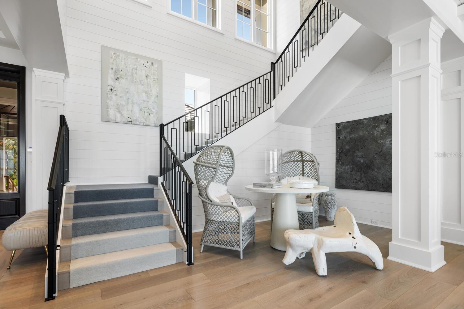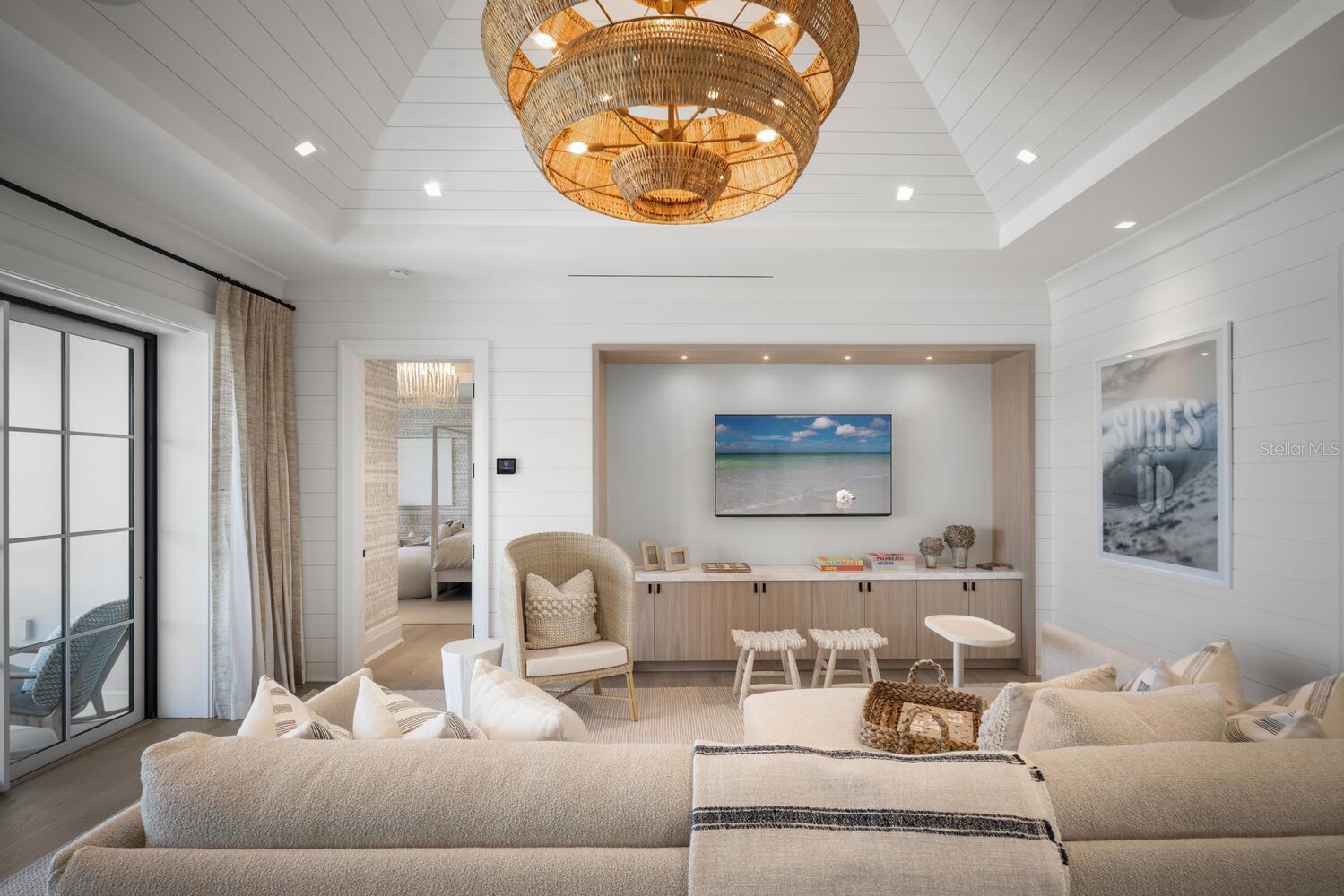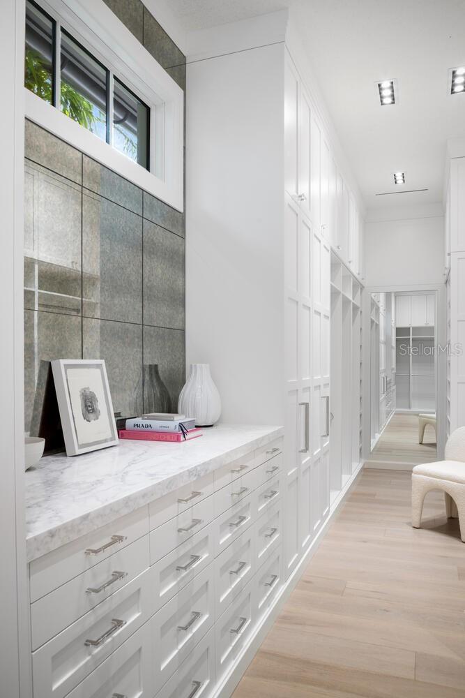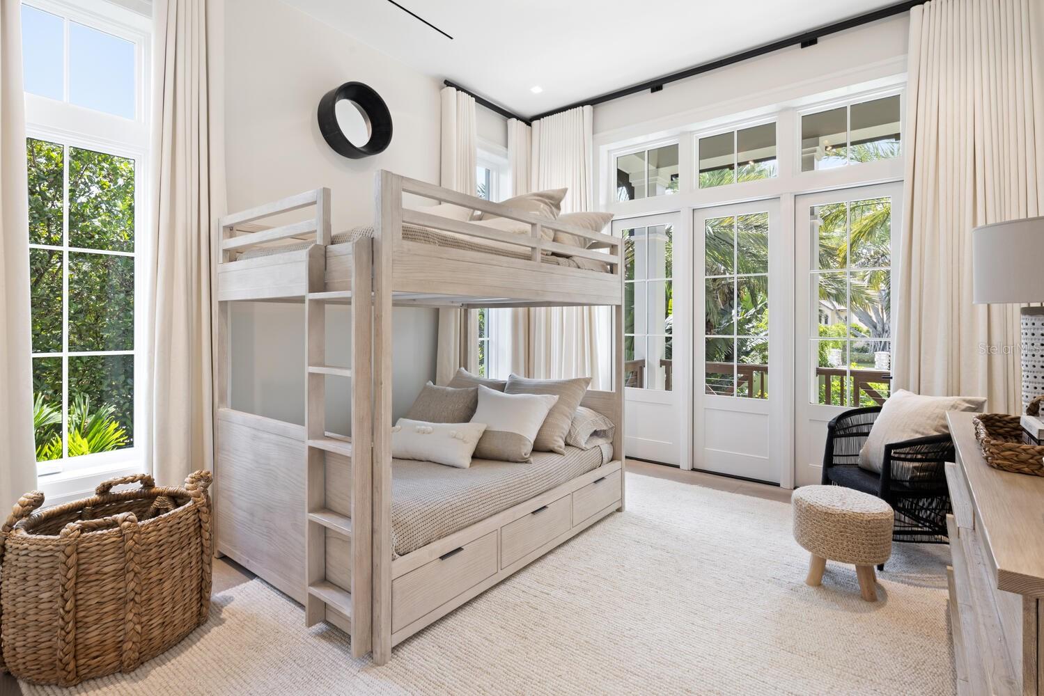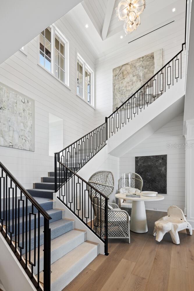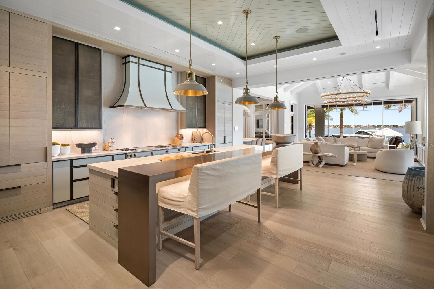 Exceptional in every aspect, this magnificent custom bayfront estate in Sarasota's coveted Harbor Acres Estate Section showcases superb craftsmanship, state-of-the-art technology, breathtaking vistas and fabulous amenities. Situated on nearly one acre with 144 feet of bay frontage, the 11,275-square-foot home boasts sophisticated, comfortable living spaces, primarily on the main floor, and mesmerizing views of Sarasota Bay, the Ringling Bridge and downtown. The modern British West Indies-style residence has 8 en-suite bedrooms and 4 powder bathrooms. Completed in 2022, the home was designed by Stofft Cooney Architects and masterfully built in 2 years by Perrone Construction. The meticulously curated estate is perfect for casual gatherings or large-scale soirees. European White Oak Engineered hardwood flooring flows throughout both levels, where architectural ceilings and enchanting light fixtures abound and multiple terraces offer awe-inspiring views. Wolf Design Group of Atlanta masterfully designed the interior. The kitchen, bar and primary bathroom design by Matthew Quinn of Atlanta-based Design Galleria. The remarkably landscaped grounds were designed by Stephen Hazeltine. The stucco and stone accent home features a raised pile foundation, hurricane impact windows and doors, screened covered porch with motorized bug screens and hurricane shutters, and a whole-house generator. Elba White stone steps ascend to an impressive entry pavilion. Inside, refined living spaces await for the entire family, including a voluminous formal living/dining room with fireplace, quartzite feature wall and floor-to-ceiling windows with captivating water views. The 8,200-SF-plus main level also has a dazzling gourmet kitchen, family room, mudroom, playroom, clubroom, gym, primary suite and expansive guest wing. The kitchen showcases an elegant La Cornue range and hood, Sub-Zero appliances and quartzite countertops, with an adjacent scullery, stylish breakfast nook and family room. An enormous temperature-controlled wine display separates the kitchen and formal dining room. The sizable clubroom is ideal for movie and game nights, with a bar and entertainment areas, plus French doors to a bayfront terrace. Elba White stone tile adorns the extensive outdoor space, which offers a kitchen with a Kalamazoo grill, dining and gathering areas, and an overflow pool with spa, sun shelf and fire bowls with automated lighting. A 27,000-lb. high-speed boat lift and 4,500-lb. dual Jet Ski lift with aluminum-framed platform are convenient for launching your waterway adventures. The primary suite features an opulent bathroom with blue quartzite countertops and flooring, massive closet and dressing room, second walk-in closet, morning bar, study and bayfront terrace. The generous guest wing has three en-suite bedrooms, lounge area, patio and a private outdoor entrance. The nearly 3,100-SF second level has a second primary suite, and three guest suites. A large lounge area with a balcony is perfect for savoring the stunning panoramas. Other notable highlights include a Crestron home automation system, motorized drapery/shades, home theater speaker system in the family room and clubroom, Lutron lighting system, whole house generator and automated mosquito spraying system. This waterfront masterpiece is just south of downtown's dining, shopping and cultural arts, walkable to Southside Village's restaurants and shops, and a short drive to pristine beaches.