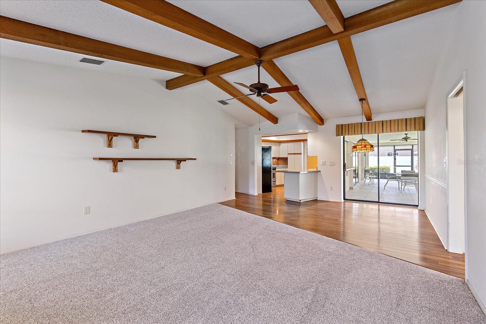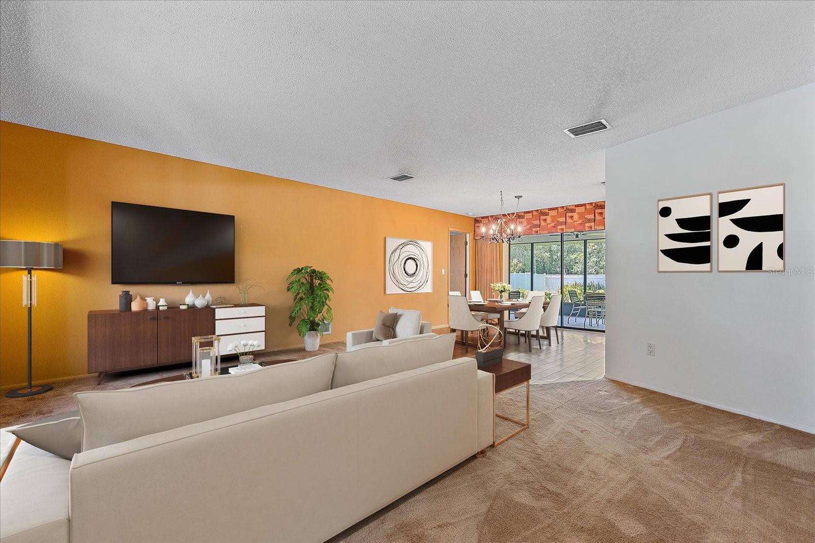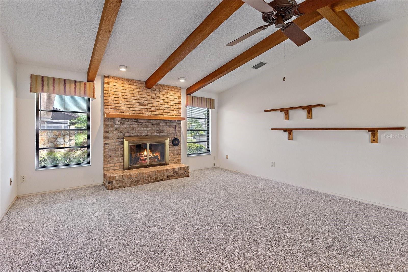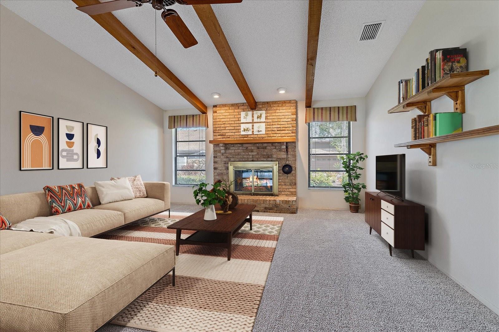 Come explore this 3 bedroom 2 bath home in the hidden gem of Center Gate Estates! This home is perfectly situated on a spacious 0.34-acre lot, offering both space and privacy. Boasting a fenced-in backyard, this property is ideal for those who appreciate outdoor living and yard space. There is a 2-car garage and screened in patio, along with recently refreshed landscaping and mulch on the property. Inside you will find a family room featuring a woodburning fireplace and vaulted ceiling with wood beams. New carpeting is found in the family room as well as the primary bedroom. There is a breakfast nook off the family room connected to the kitchen. With plenty of cabinet and counter space, cooking will be a breeze, there is also a window for extra light overlooking the screened in patio. The formal living room is bathed in natural light, creating a relaxing space where you can unwind after a long day. There is also a formal dining space with sliding glass doors leading out to the patio overlooking the spacious backyard. The primary bedroom offers an en-suite bathroom and walk-in closet. Two additional bedrooms are located on the opposite side of the home, with a spare bathroom conveniently nearby. There is a large laundry room with a closet. One of the highlights of this property is the expansive fenced-in backyard. The lot provides plenty of room for outdoor activities, pets, and family fun. This home features a newer roof and HVAC unit, so no worries on those major items! Center Gate Estates offers low HOA fees, a prime location, providing easy access to shopping, dining, entertainment, and I-75.