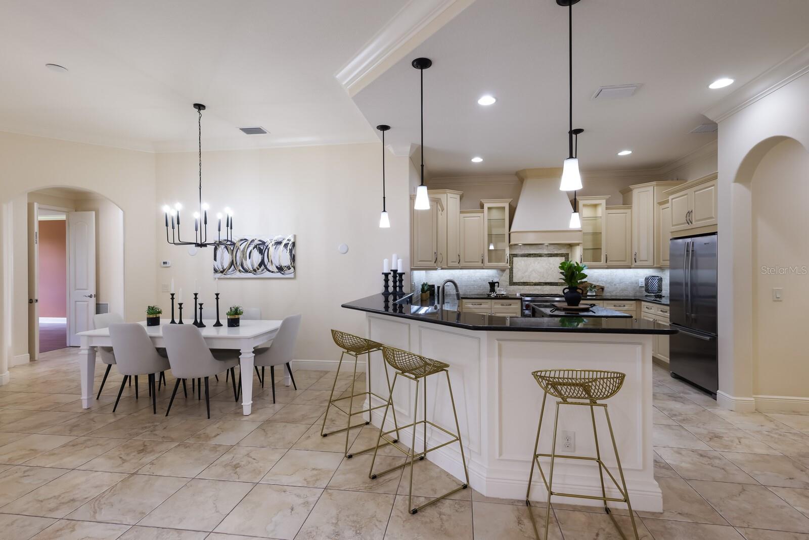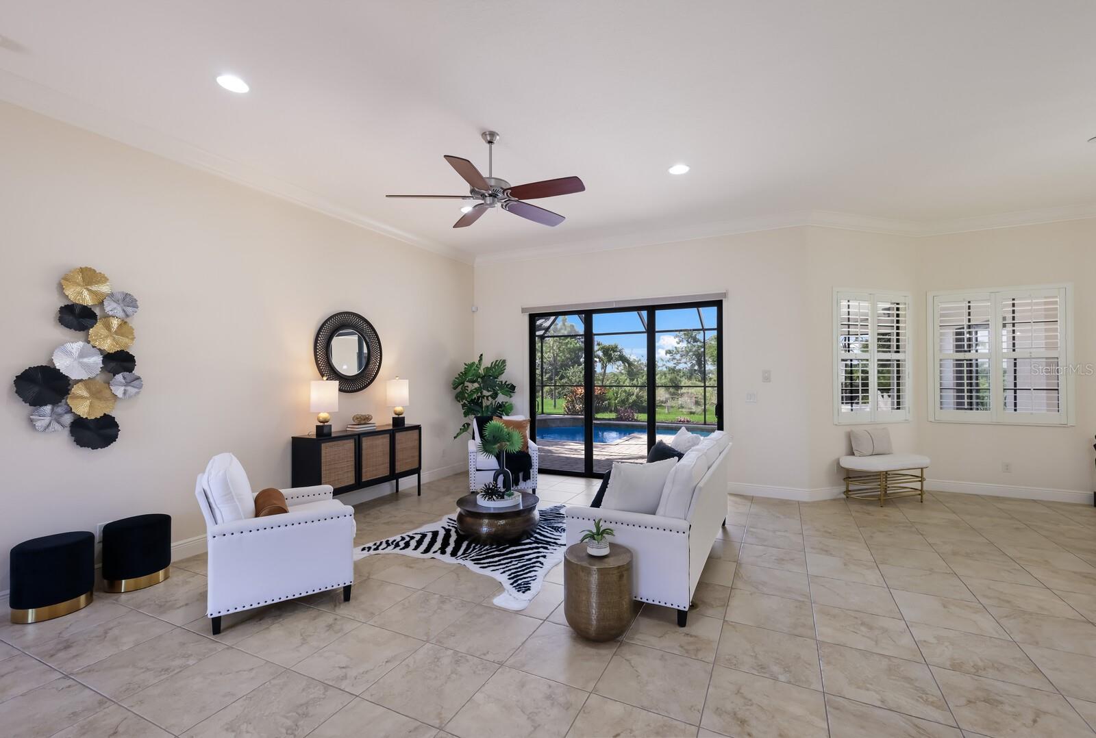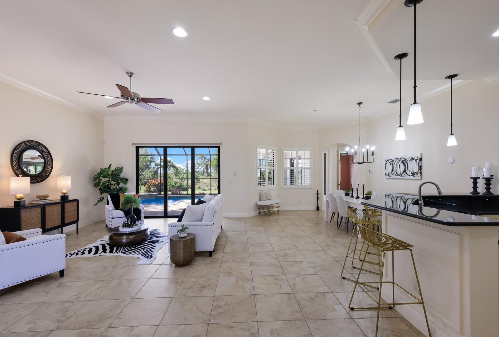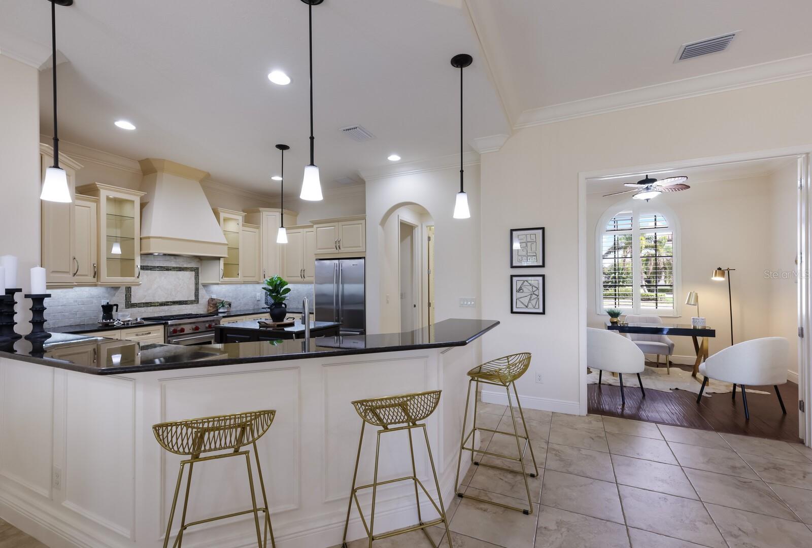 Welcome to the epitome of luxury living in Lakewood Ranch's prestigious Country Club East! This magnificent John Cannon custom home is nestled within the highly sought-after gated golf course community, offering an unparalleled blend of elegance, comfort, and exclusivity. Located in the maintenance-free enclave of Haddington Cove, this residence boasts the ultimate combination of serenity and sophistication. Nestled near a tranquil cul-de-sac, this 2588 square foot abode features 3 bedrooms and 3 full bathrooms, PLUS an office/den and large bonus room, complete with plumbing for a wet bar, ensuring ample space for both privacy and entertainment. Step inside and be greeted by the inviting open great room floor plan, where tall ceilings and exquisite crown molding create an atmosphere of grandeur. The heart of the home, the kitchen, is a culinary masterpiece with its solid wood cabinetry, stainless steel appliances, and a convenient center island that invites social interaction and gourmet creations. Step outside to your own private oasis - a HEATED SALT WATER POOL framed by an enclosed paver lanai overlooking an expansive preserve view. With two covered sections, this lanai is the perfect setting for relaxation and entertainment alike. The lanai is even plumbed with gas for an outdoor kitchen, catering to your every desire. No detail has been overlooked in ensuring your safety and comfort, as evidenced by the IMPACT HURRICANE GLASS throughout the home and a WHOLE HOUSE GENERAC GENERATOR. The generously sized primary bedroom suite offers a private entrance to the lanai, while providing ample space for a seating area and two walk in closets. The primary bath is a sanctuary of indulgence, featuring dual sinks, a luxurious tub, and a spacious walk-in shower. Practicality meets luxury with the inclusion of a TANKLESS WATER HEATER, and BRAND NEW WASHER AND DRYER. Your lifestyle is further enhanced by the amenities within Country Club East, including the exclusive resident-only entertainment amenity center, The Retreat. Here, a resort-style pool, state-of-the-art fitness center, outdoor kitchen, and community gathering area await your enjoyment. Beyond your oasis, the world of Lakewood Ranch unfolds, offering the prestigious Lakewood Ranch Golf & Country Club, Waterside Place, A-rated schools, parks, upscale shopping, delectable dining, and captivating entertainment and renowned gulf beaches - all within close proximity.