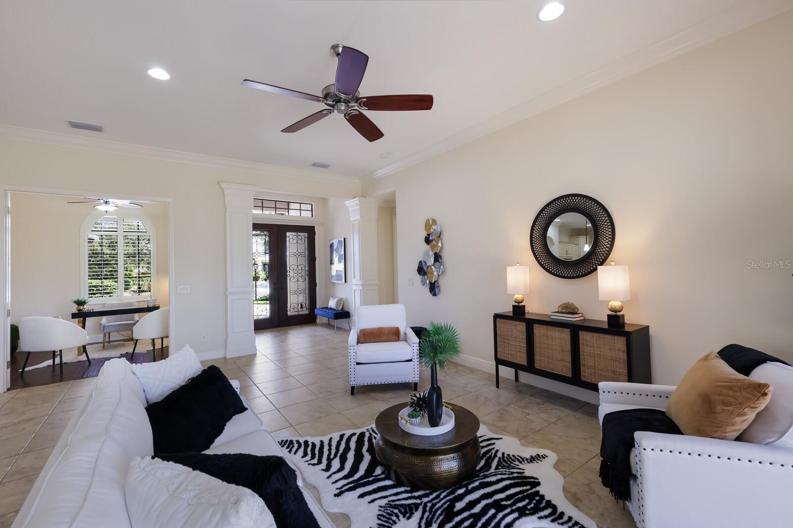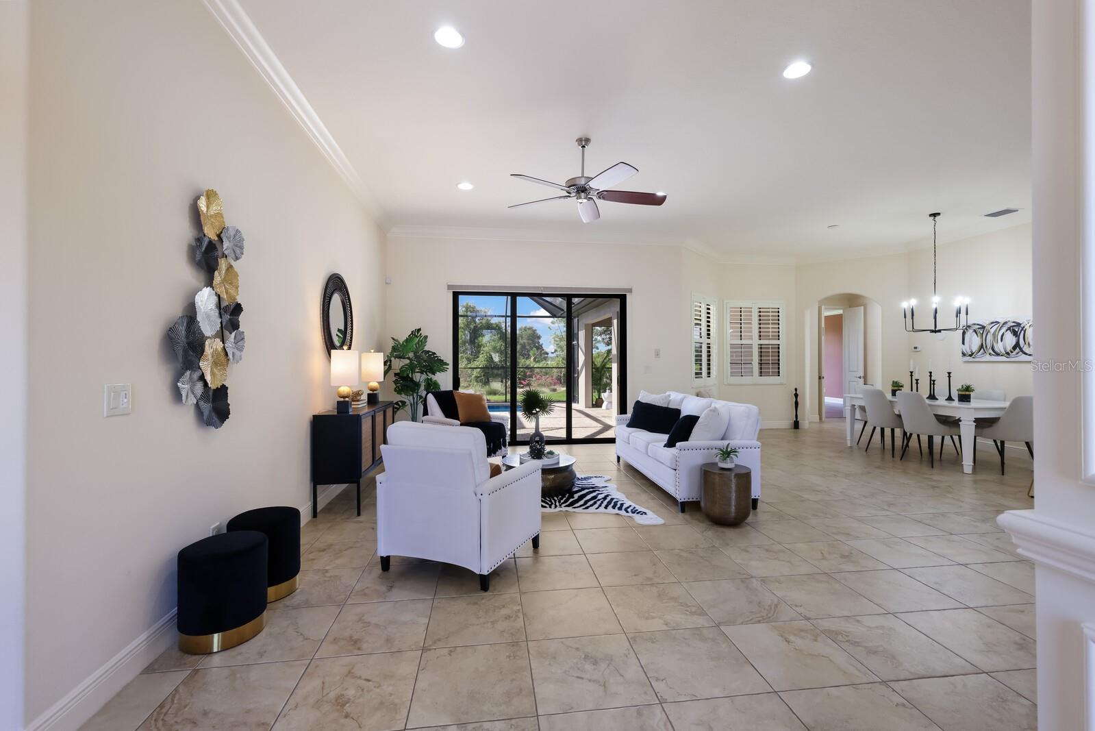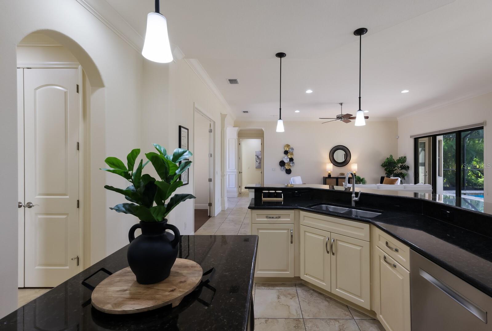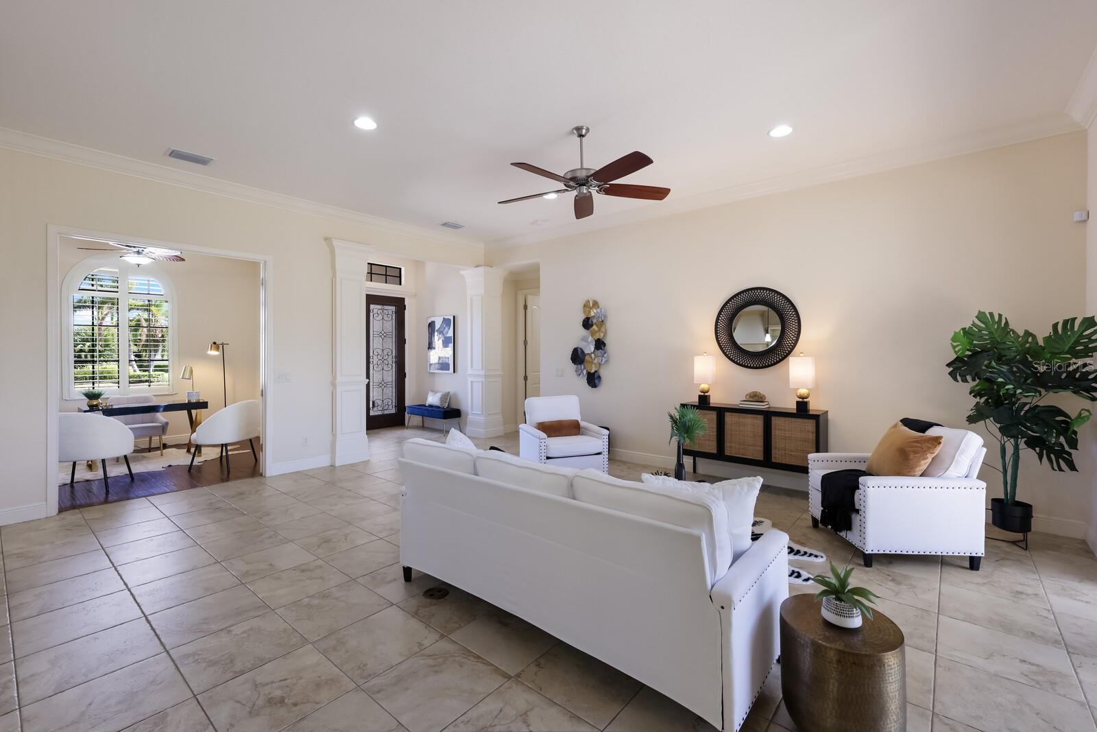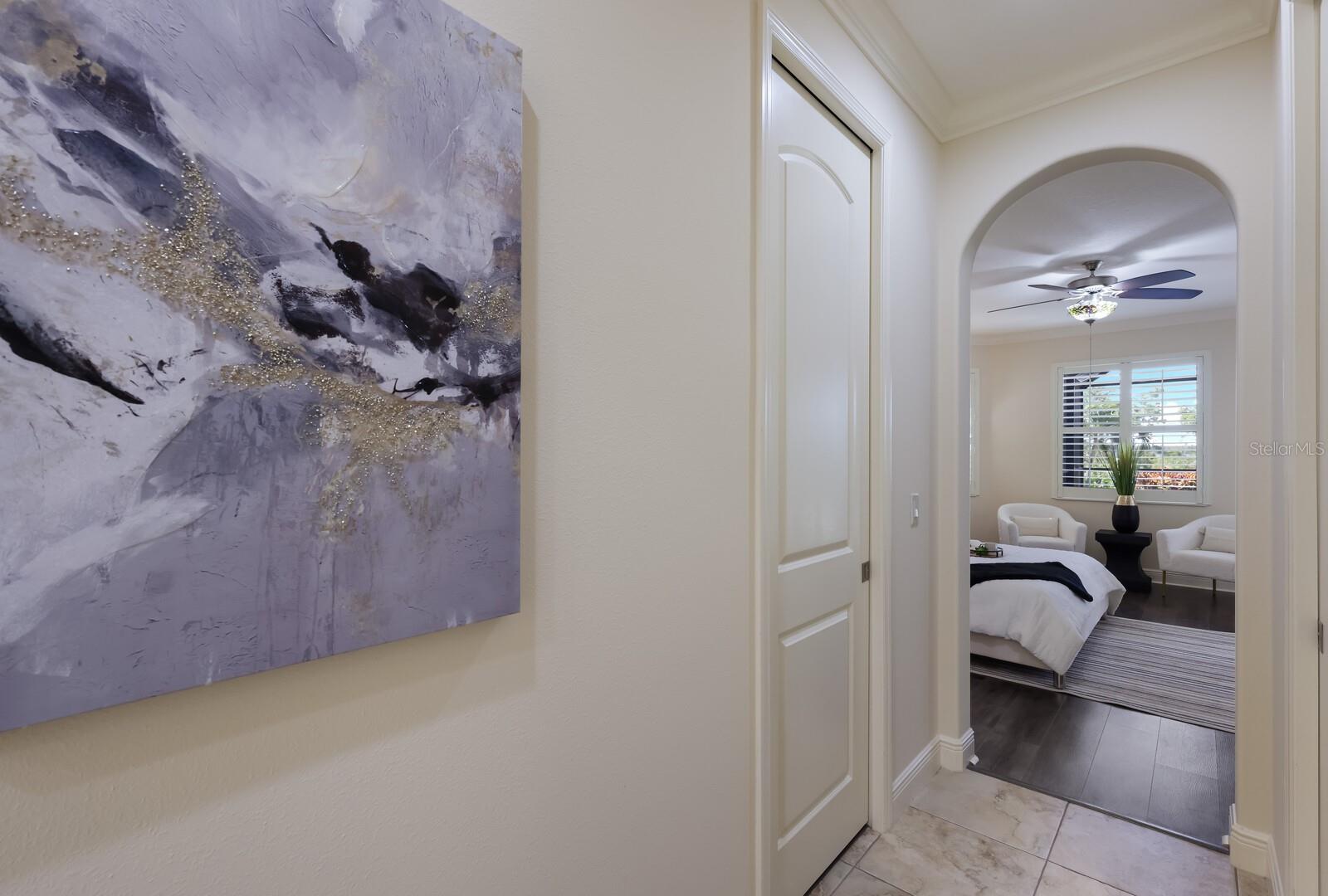 Welcome to the epitome of luxury living in Lakewood Ranch's prestigious Country Club East! This magnificent John Cannon custom home is nestled within the highly sought-after gated golf course community, offering an unparalleled blend of elegance, comfort, and exclusivity. Located in the maintenance-free enclave of Haddington Cove, this residence boasts the ultimate combination of serenity and sophistication. Nestled near a tranquil cul-de-sac, this 2588 square foot abode features 3 bedrooms and 3 full bathrooms, PLUS an office/den and large bonus room, complete with plumbing for a wet bar, ensuring ample space for both privacy and entertainment. Step inside and be greeted by the inviting open great room floor plan, where tall ceilings and exquisite crown molding create an atmosphere of grandeur. The heart of the home, the kitchen, is a culinary masterpiece with its solid wood cabinetry, stainless steel appliances, and a convenient center island that invites social interaction and gourmet creations. Step outside to your own private oasis - a HEATED SALT WATER POOL framed by an enclosed paver lanai overlooking an expansive preserve view. With two covered sections, this lanai is the perfect setting for relaxation and entertainment alike. The lanai is even plumbed with gas for an outdoor kitchen, catering to your every desire. No detail has been overlooked in ensuring your safety and comfort, as evidenced by the IMPACT HURRICANE GLASS throughout the home and a WHOLE HOUSE GENERAC GENERATOR. The generously sized primary bedroom suite offers a private entrance to the lanai, while providing ample space for a seating area and two walk in closets. The primary bath is a sanctuary of indulgence, featuring dual sinks, a luxurious tub, and a spacious walk-in shower. Practicality meets luxury with the inclusion of a TANKLESS WATER HEATER, and BRAND NEW WASHER AND DRYER. Your lifestyle is further enhanced by the amenities within Country Club East, including the exclusive resident-only entertainment amenity center, The Retreat. Here, a resort-style pool, state-of-the-art fitness center, outdoor kitchen, and community gathering area await your enjoyment. Beyond your oasis, the world of Lakewood Ranch unfolds, offering the prestigious Lakewood Ranch Golf & Country Club, Waterside Place, A-rated schools, parks, upscale shopping, delectable dining, and captivating entertainment and renowned gulf beaches - all within close proximity.