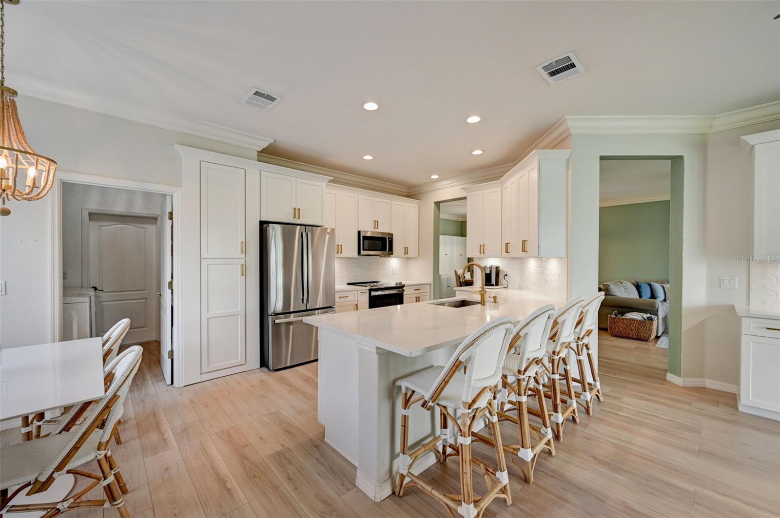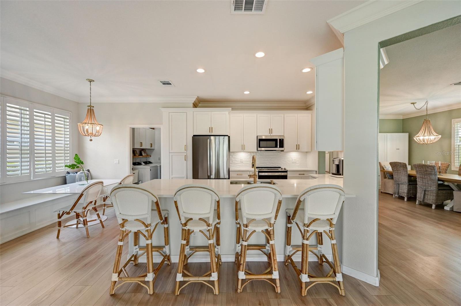 Welcome to your dream home in the highly coveted Stoneybrook of Venice community! This rare gem and magnificent property that offers an unrivaled opportunity to experience the best of Florida living. This property has a NEW ROOF and has been completely remodeled downstairs. New plank flooring throughout the entire downstairs, new stylish kitchen cabinets with gold accents. Brand new appliances, custom built floor to ceiling beverage bar is the star of the show! All bedrooms are upstairs. Custom crown molding and custom accent walls. As you step onto the enormous back lanai, prepare to be awestruck by the breathtaking views that stretch as far as the eye can see. The home boasts four spacious bedrooms and two and a half bathrooms, with a generous total living area of 2,644 square feet. Built in 2004, it combines modern elegance with timeless charm.The layout is both practical and versatile, two inviting living rooms, as well as a formal dining room downstairs. Additional highlights include a convenient three-car garage, perfect for storing your vehicles and belongings, and a private balcony off the master suite, where you can savor your morning coffee while taking in the picturesque surroundings. Nestled in a peaceful cul-de-sac, this residence offers the perfect blend of serenity and family-friendly living.But the allure of Stoneybrook at Venice doesn't end at your doorstep. The community boasts an array of amenities designed to enhance your quality of life. Sports enthusiasts will rejoice at the abundance of options, from tennis and volleyball courts to basketball and pickleball courts - there's something for everyone. You can cool off in the resort-style pool and spa or break a sweat in the 24-hour fitness center. Families will appreciate the playgrounds and gazebo, while the skating rink provides unique entertainment.Stoneybrook at Venice truly fosters a sense of community with numerous social activities that will help you build lasting friendships with your neighbors. And the location couldn't be more ideal! Just minutes from I-75, you'll have easy access to all that Venice has to offer. Enjoy a short car ride to multiple stunning beaches, including a dog-friendly one. Golf enthusiasts will relish the nearby golf courses, and shoppers can explore a variety of retail options. Delectable dining experiences, world-class fishing, nature trails, parks, and the Atlanta Braves MLB Spring Training stadium are all within your reach.This is a unique opportunity to own a piece of paradise. Don't miss out on making this beautiful waterfront home in Stoneybrook at Venice your very own. Schedule a showing today and embark on a new chapter of Florida living!