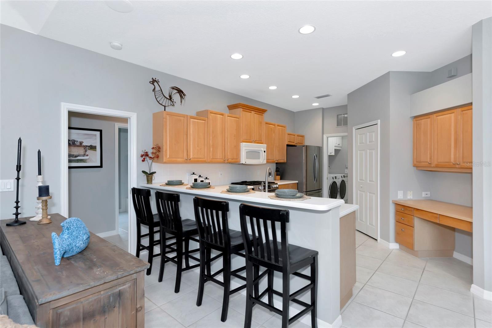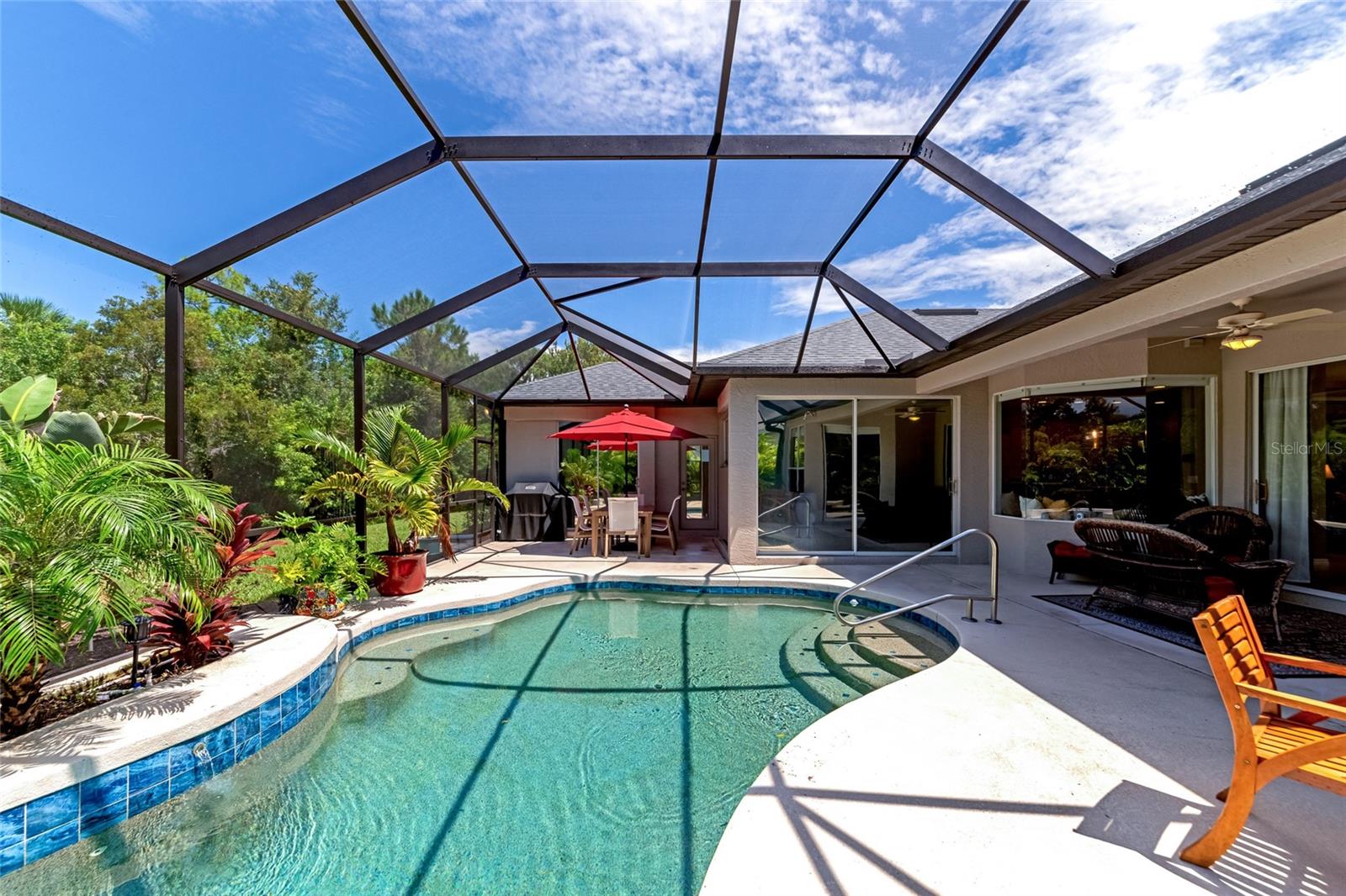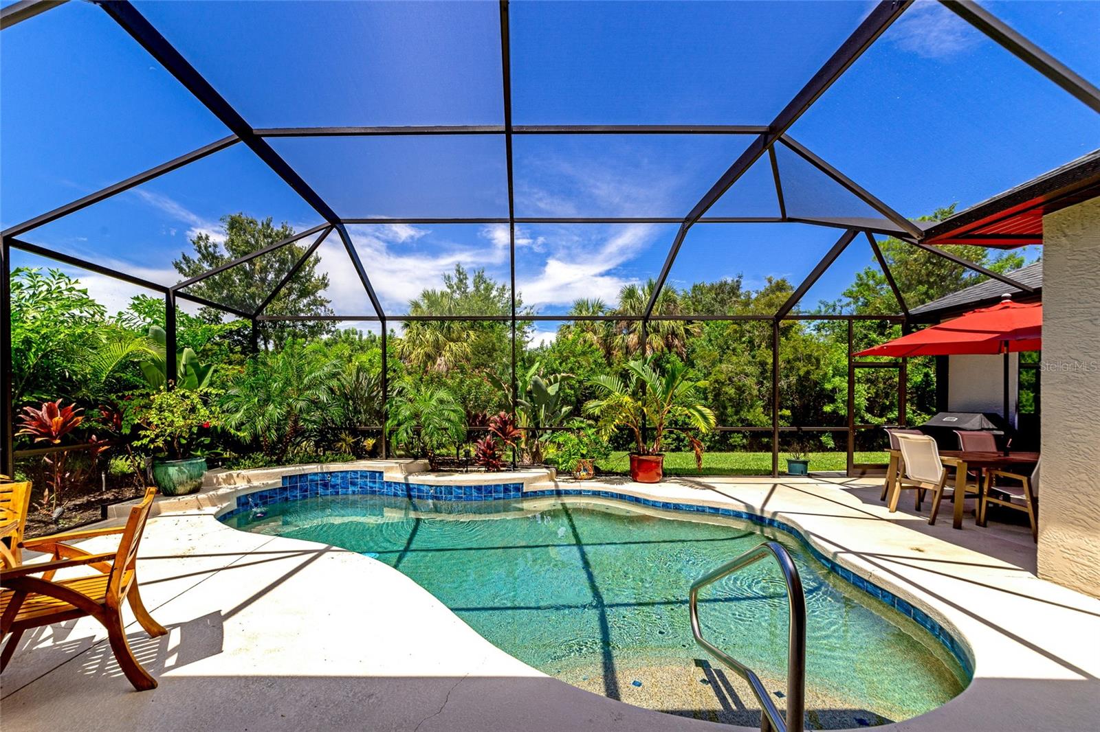 Mid-listing renovation complete! New kitchen to include white solid-wood cabinetry w/soft close drawers & doors, Calcutta quartz counters, pro-grade pull down faucet, designer tile backsplash, stainless steel vented hood, re-designed coffee bar, and stainless steel built-in microwave. New master bath to include solid wood cabinetry w/soft close drawers & doors, new faucets, Calcutta quartz counters, tiled walk-in shower w/ herringbone-designed floor, new tile surround for jetted tub and new toilet. Two new guest bathrooms to include solid-wood cabinetry w/soft close drawers & doors, Calcutta quartz counters, new faucets, and new toilets. Discover the pinnacle of move-in ready luxury living in this exquisite 4-bedroom, 3-bathroom masterpiece tucked away in the highly sought-after Riverwalk Oaks section of Lakewood Ranch. Ideally situated just moments from the vibrant shopping and dining destinations of Lakewood Ranch Main Street, Waterside, and University Town Center, this impeccably maintained home harmoniously combines elegance, seclusion, and modern conveniences. Immaculately kept, gently-used with just two owners, this home can be lived in straightaway without the need for immediate renovations. A new roof and gutters, installed in 2022, provide peace of mind, while the natural gas range and water heater deliver efficiency and convenience. The pool, a true centerpiece, has undergone a modern transformation with a Pebble-Tec surface and a 2021 pool heater. Additional enhancements include a freshly repainted pool cage and re-screening, a whole-house vacuum system, AC and air handler with humidity control (2016), new kitchen appliances (2020), and new light gray paint inside and out.Step inside to experience a world of comfort and sophistication within the thoughtfully designed open and split floor plan that prioritizes privacy for all. The expansive owner's suite exudes opulence, featuring an expansive bathroom, not one but two walk-in closets, and ample space to craft your personal sanctuary. Three additional generously-proportioned bedrooms and two full baths provide abundant accommodation for your family and guests.Indulge in the ultimate outdoor oasis, as sliding glass doors seamlessly unite the indoors with your private tropical paradise. The sprawling pool area, surrounded by luscious foliage, sets the stage for unforgettable outdoor gatherings and serene relaxation. Immerse yourself in the refreshing waters of the generously-sized pool or bask in the warm embrace of the sun while being enveloped with privacy--a peaceful retreat right in your own backyard.The Riverwalk Oaks community offers the added benefit of a minimal annual HOA fee and spacious lots that grant you the luxury of generous spacing between neighbors. This residence, situated on a commanding 0.26-acre lot, is perfectly complemented by its serene backdrop of mature trees and the absence of rear neighbors, with a permanent preserve area. Flood Zone X, with no need for extra flood insurance.This extraordinary Lee Wetherington-built residence stands as a testament to refined living and contemporary comfort, offering a fusion of enduring design and modern amenities. Don't let this rare opportunity slip through your fingers--make this meticulously maintained and renovated property your own today.