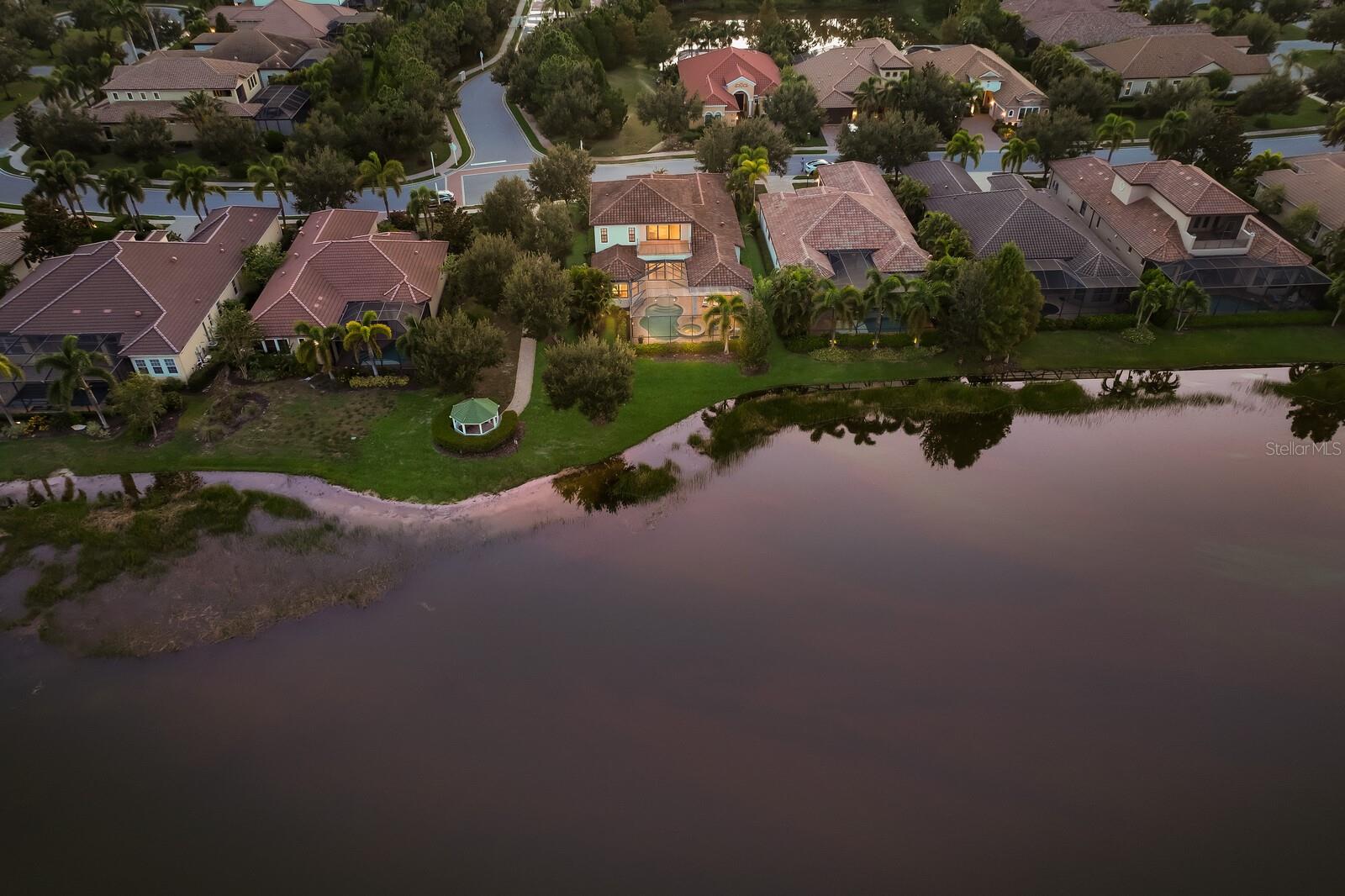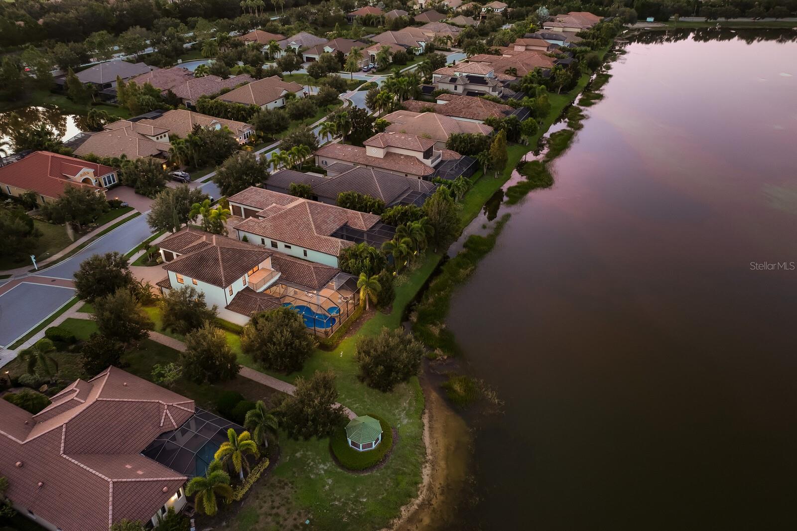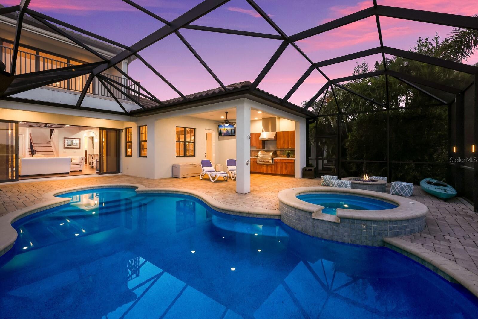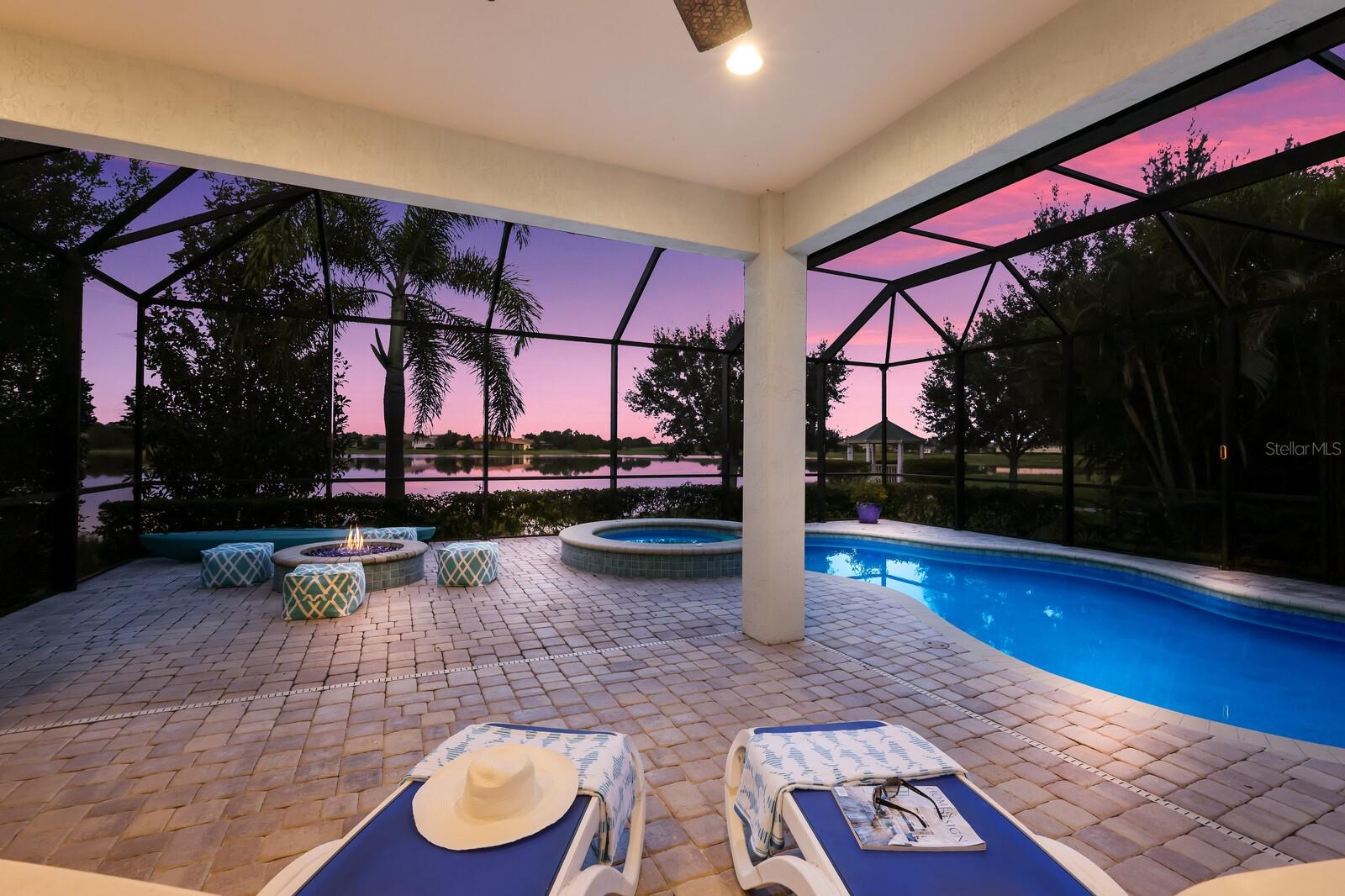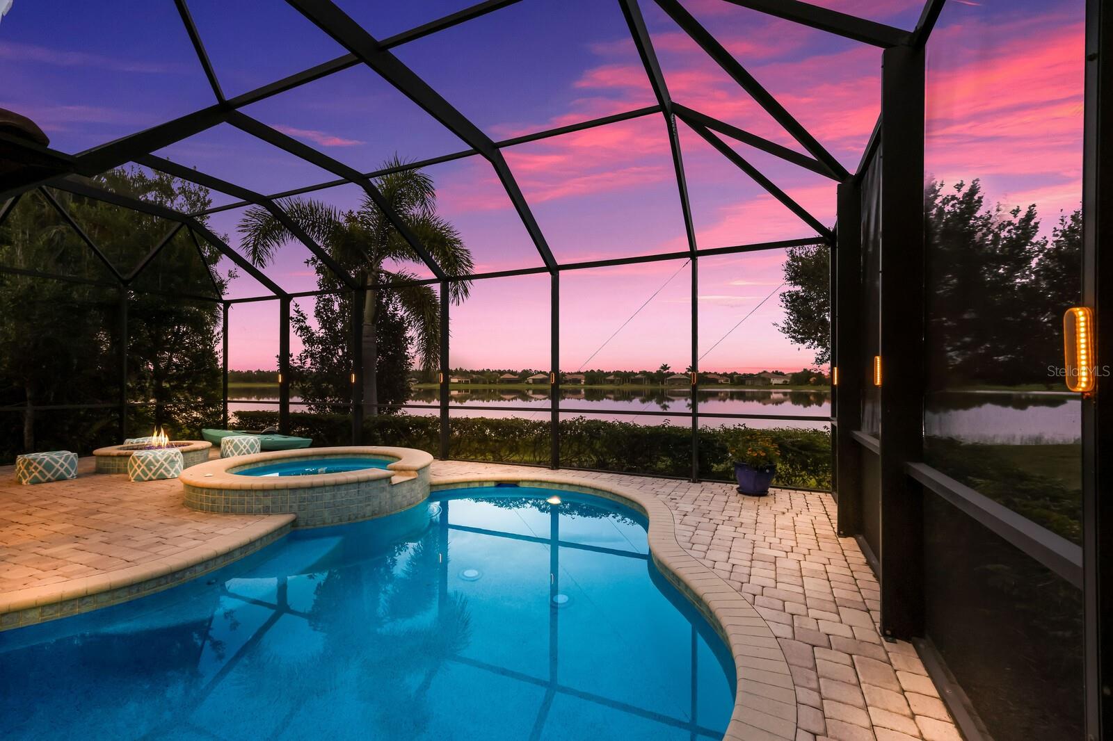 This stunning custom built John Cannon home is located in one of the most desirable sub-divisions located in Country Club East and nationally acclaimed Lakewood Ranch. The enhanced 3400+ square feet 2 story Baylin model features engineered wood throughout, four bedrooms, three and half baths and a side-facing 3- car garage. The home is situated on the largest lake in Country Club East. The fully screened lanai contains a heated saltwater pool and spa, outdoor hot/cold shower, gas firepit, and a well-equipped summer kitchen with a Wolf gas grill, which is great for outdoor entertainment. You will love the magnificent lake view as you enjoy your morning coffee. Inside, a spacious downstairs master bedroom offers a French door to the lanai and a tray ceiling with 2 walk in closets, and an additional custom-built in shoe closet. The master bath features 2 separate vanities, one with a make-up vanity, soaking tub and walk in shower. The "great room" adjoins a kitchen highlighted by wood cabinetry, wolf appliances, subzero refrigerator, granite counters, and a quartz island with a walk-in pantry, dry bar and wine fridge. The dinette area in the kitchen supplements a more formal dining room. A large office is complemented by custom-built in floor to ceiling shelving and cork flooring. A discerning buyer will appreciate the guest downstairs bedroom with ensuite bathroom and walk-in closet. The 2nd floor offers two large bedrooms, full bath, bonus room with built in cabinetry and a balcony that overlooks the beautiful lake view. Other features include impact glass windows and doors, whole house generator, tankless water heater, zoned HVAC systems, in-wall pest tubes, crown molding throughout, solid 8' doors, beam ceiling in the great room, and "pocket" sliding doors. The downstairs laundry room features a built-in ironing board closet, clothing rack and utility sink. The garage has custom built-in cabinetry in addition to an EV charging plug. Country Club East provides residents gated-community living, three community pools, fitness center, community club house, and is close to world-class shopping, Tampa International and Sarasota/Bradenton Airports are conveniently located. Close by you will find ample dining opportunities at Lakewood Ranch Main Street, Waterside Place, and downtown Sarasota. Siesta Key Beach, St. Armands Circle, and Longboat Key are nearby. Room Feature: Linen Closet In Bath (Primary Bedroom).