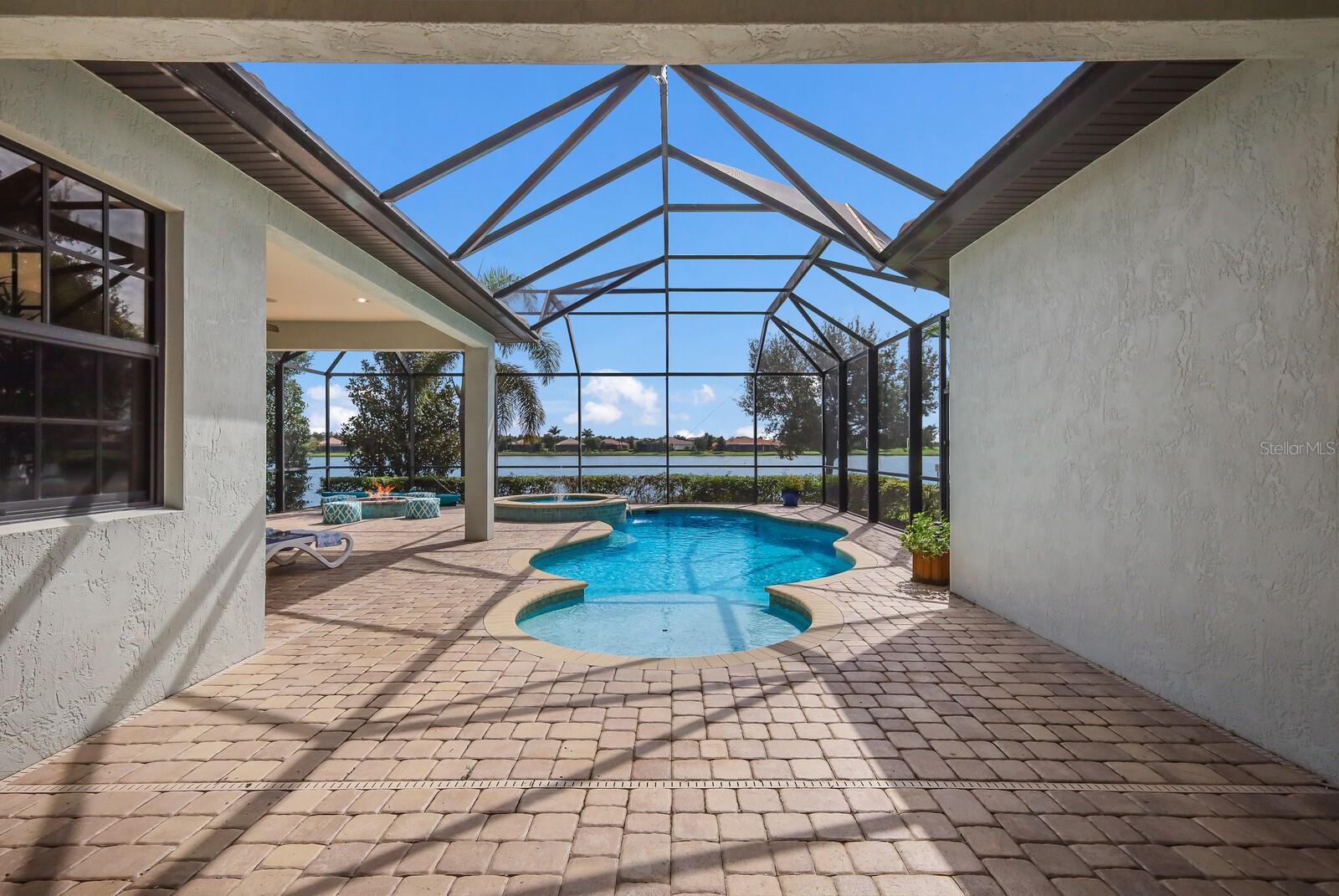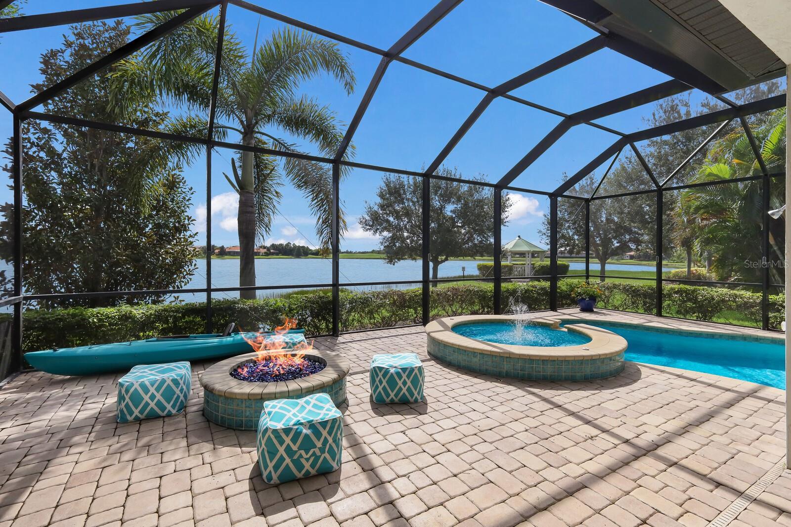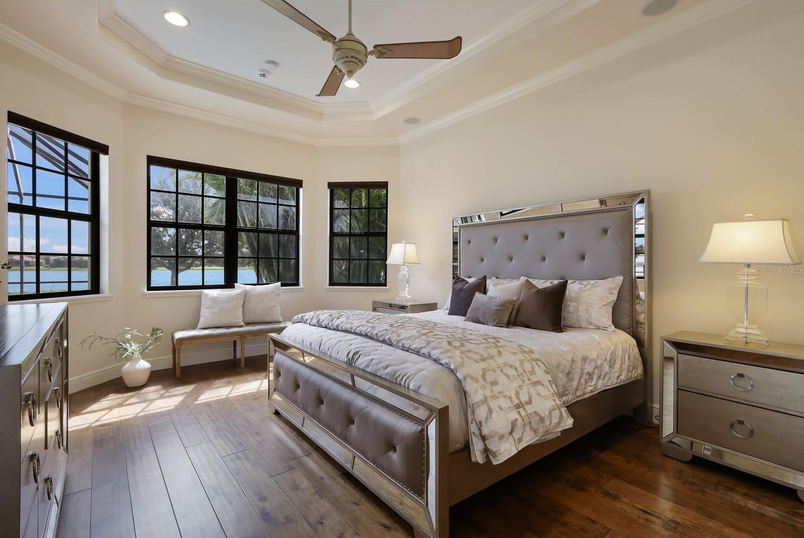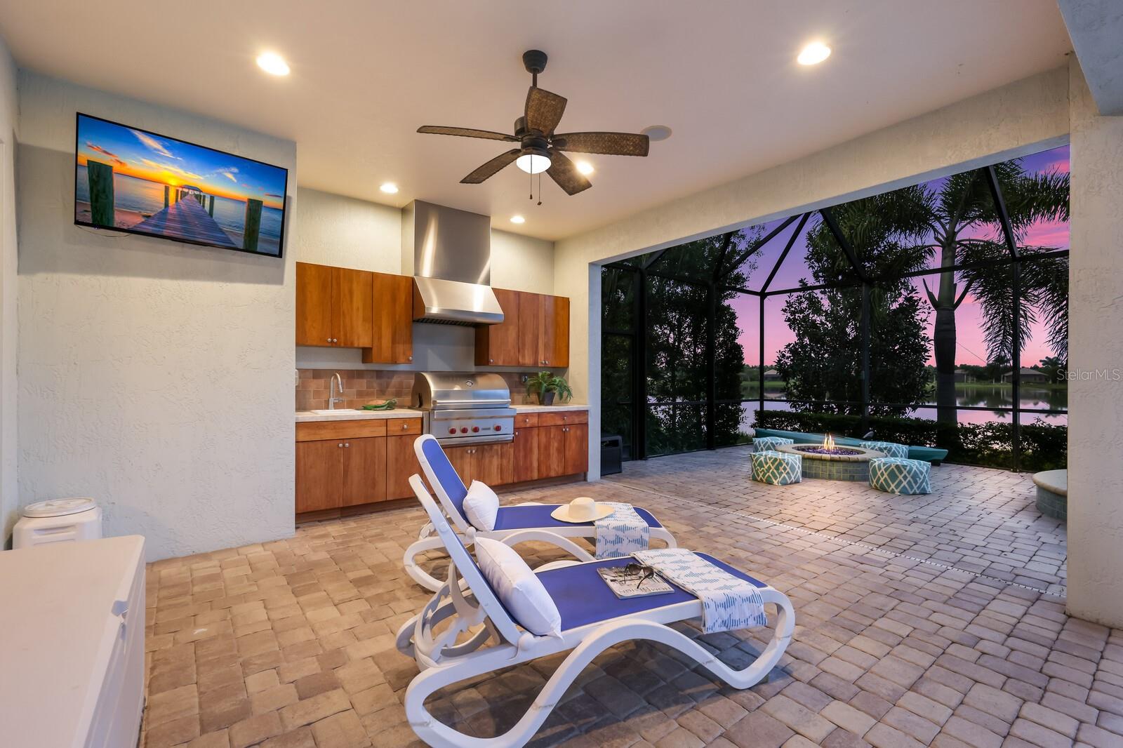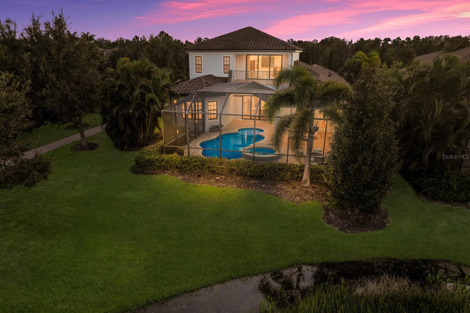 This stunning custom built John Cannon home is located in one of the most desirable sub-divisions located in Country Club East and nationally acclaimed Lakewood Ranch. The enhanced 3400+ square feet 2 story Baylin model features engineered wood throughout, four bedrooms, three and half baths and a side-facing 3- car garage. The home is situated on the largest lake in Country Club East. The fully screened lanai contains a heated saltwater pool and spa, outdoor hot/cold shower, gas firepit, and a well-equipped summer kitchen with a Wolf gas grill, which is great for outdoor entertainment. You will love the magnificent lake view as you enjoy your morning coffee. Inside, a spacious downstairs master bedroom offers a French door to the lanai and a tray ceiling with 2 walk in closets, and an additional custom-built in shoe closet. The master bath features 2 separate vanities, one with a make-up vanity, soaking tub and walk in shower. The "great room" adjoins a kitchen highlighted by wood cabinetry, wolf appliances, subzero refrigerator, granite counters, and a quartz island with a walk-in pantry, dry bar and wine fridge. The dinette area in the kitchen supplements a more formal dining room. A large office is complemented by custom-built in floor to ceiling shelving and cork flooring. A discerning buyer will appreciate the guest downstairs bedroom with ensuite bathroom and walk-in closet. The 2nd floor offers two large bedrooms, full bath, bonus room with built in cabinetry and a balcony that overlooks the beautiful lake view. Other features include impact glass windows and doors, whole house generator, tankless water heater, zoned HVAC systems, in-wall pest tubes, crown molding throughout, solid 8' doors, beam ceiling in the great room, and "pocket" sliding doors. The downstairs laundry room features a built-in ironing board closet, clothing rack and utility sink. The garage has custom built-in cabinetry in addition to an EV charging plug. Country Club East provides residents gated-community living, three community pools, fitness center, community club house, and is close to world-class shopping, Tampa International and Sarasota/Bradenton Airports are conveniently located. Close by you will find ample dining opportunities at Lakewood Ranch Main Street, Waterside Place, and downtown Sarasota. Siesta Key Beach, St. Armands Circle, and Longboat Key are nearby. Room Feature: Linen Closet In Bath (Primary Bedroom).