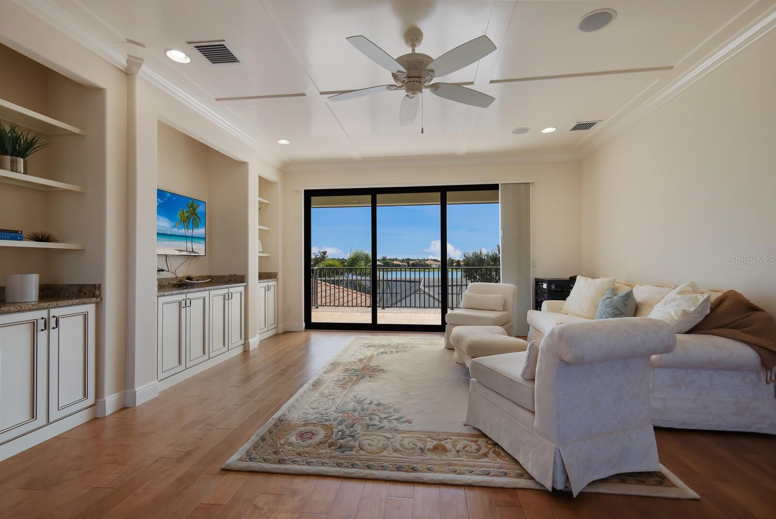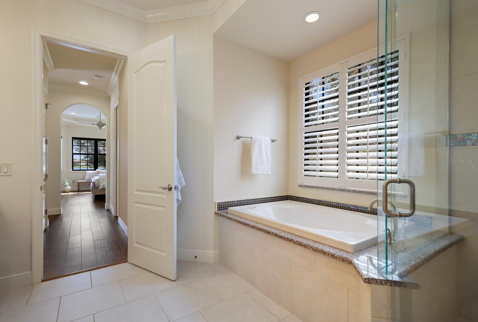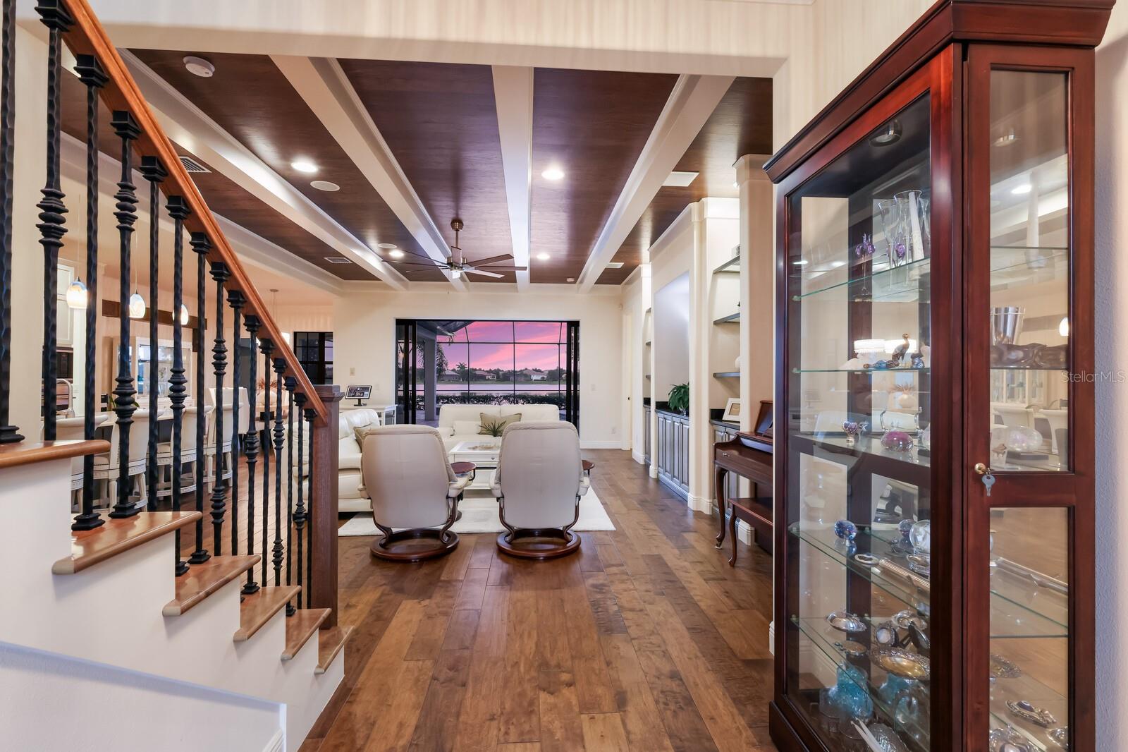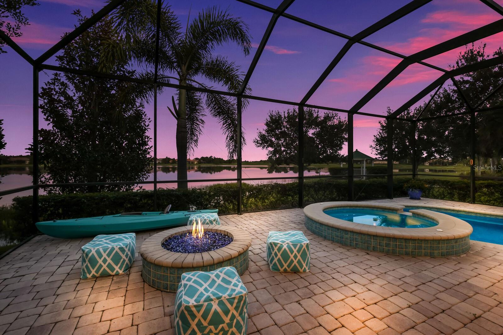 This stunning custom built John Cannon home is located in one of the most desirable sub-divisions located in Country Club East and nationally acclaimed Lakewood Ranch. The enhanced 3400+ square feet 2 story Baylin model features engineered wood throughout, four bedrooms, three and half baths and a side-facing 3- car garage. The home is situated on the largest lake in Country Club East. The fully screened lanai contains a heated saltwater pool and spa, outdoor hot/cold shower, gas firepit, and a well-equipped summer kitchen with a Wolf gas grill, which is great for outdoor entertainment. You will love the magnificent lake view as you enjoy your morning coffee. Inside, a spacious downstairs master bedroom offers a French door to the lanai and a tray ceiling with 2 walk in closets, and an additional custom-built in shoe closet. The master bath features 2 separate vanities, one with a make-up vanity, soaking tub and walk in shower. The "great room" adjoins a kitchen highlighted by wood cabinetry, wolf appliances, subzero refrigerator, granite counters, and a quartz island with a walk-in pantry, dry bar and wine fridge. The dinette area in the kitchen supplements a more formal dining room. A large office is complemented by custom-built in floor to ceiling shelving and cork flooring. A discerning buyer will appreciate the guest downstairs bedroom with ensuite bathroom and walk-in closet. The 2nd floor offers two large bedrooms, full bath, bonus room with built in cabinetry and a balcony that overlooks the beautiful lake view. Other features include impact glass windows and doors, whole house generator, tankless water heater, zoned HVAC systems, in-wall pest tubes, crown molding throughout, solid 8' doors, beam ceiling in the great room, and "pocket" sliding doors. The downstairs laundry room features a built-in ironing board closet, clothing rack and utility sink. The garage has custom built-in cabinetry in addition to an EV charging plug. Country Club East provides residents gated-community living, three community pools, fitness center, community club house, and is close to world-class shopping, Tampa International and Sarasota/Bradenton Airports are conveniently located. Close by you will find ample dining opportunities at Lakewood Ranch Main Street, Waterside Place, and downtown Sarasota. Siesta Key Beach, St. Armands Circle, and Longboat Key are nearby. Room Feature: Linen Closet In Bath (Primary Bedroom).