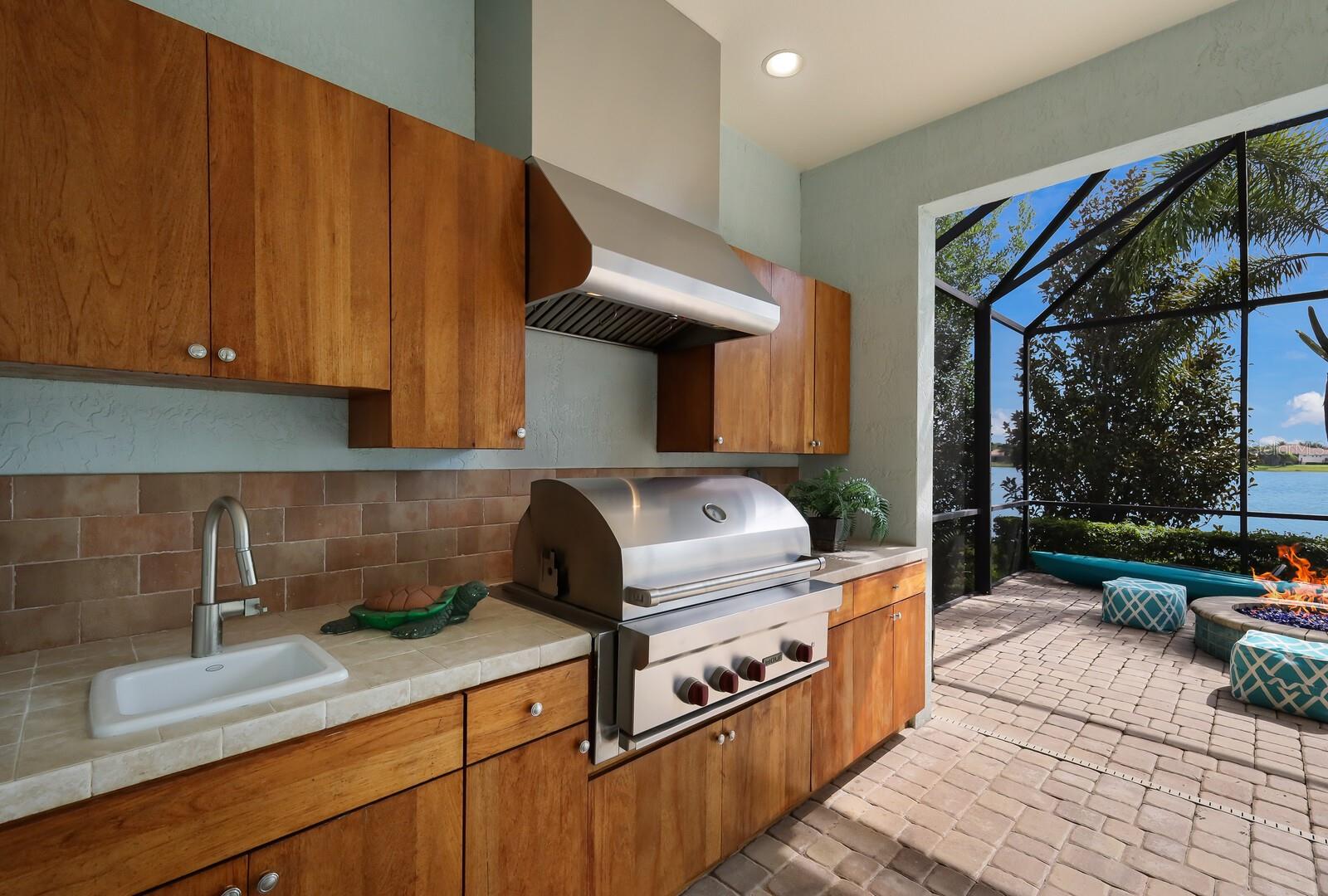 - Exterior: Irrigation System, Outdoor Grill, Outdoor Kitchen, Outdoor Shower, Rain Gutters, Sidewalk, Sliding Doors