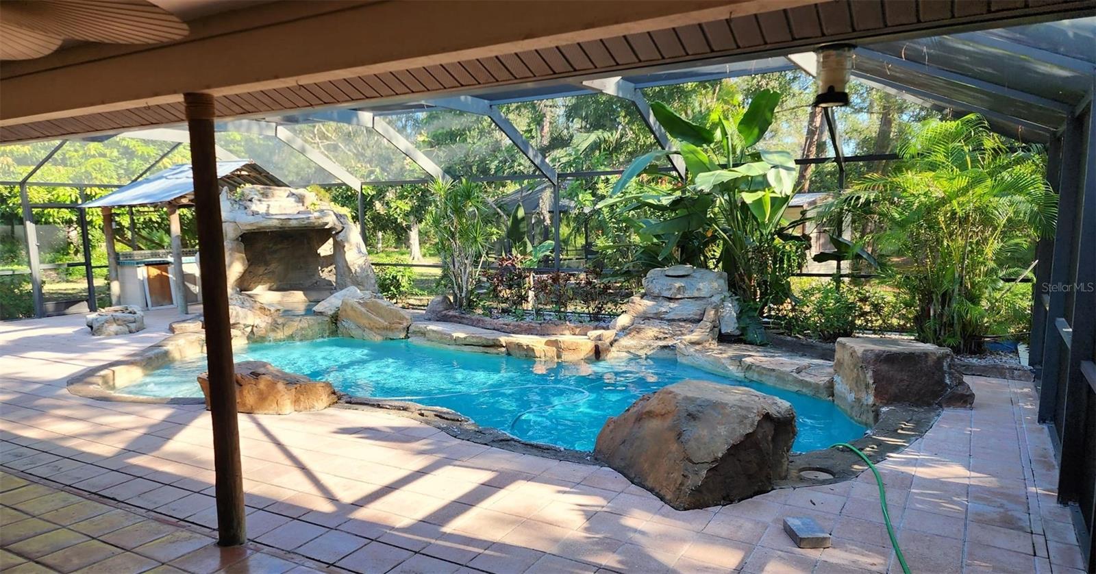REDUCED PRICE in Venice Acres!!! Large parcels and low HOA's, they just don't build them like this anymore. With an oustanding piece of property (1.5 acres), this can be the one you'll want to keep forever. Room for kids and pets to play, detached out building and more. Besides great curb appeal, this property has a very private backyard going almost 400 ft. deep! 392 ft on the east, 380 ft. on the west, and a survey PDF is attached or available upon request. A 3/2 pool home, w/oversized (24x20) "Air Conditioned" 2 car Garage! The attached garage has it's own ac unit, and there is a pic of the air vent and garage a/c unit. This home has a Icynene insulated attic, and is also equipped and connected to a "Whole House - Diesel Generator". Neither one of these upgrades are cheap, but these sellers went the extra mile. Now, the pool area. Designed as a Tropical Paradise, with cave, waterfall, boulders and greenery. A 50 x28 pool cage, with an additional 38x10 covered area and 28x12 pool. A working waterfall flows over the cave and into the spa, and behind that is an outdoor kitchen too. Much of this home is original and liveable as you see it, but if you have the time, vision, talent and/or resources to update, this could be a forever home many of us dream of. This is not a weekend fixer upper, but a home worth taking your time on. Some visual defects include.. popcorn ceilings (stained), lower garage door panel rusted, minor trim repair, some fixtures to replace, outdoor kitchen needs some love, no refrigerator, painting etc. But it's not all bad. Newer items include, Roof, gutters, one pool pump, and garage door opener assembly. Positives are a full concrete circular drive plus pavers, hurricane shutters, generator, air conditioned garage, large lanai and more. I'm not going to make you read about flooring, room sizes, closets etc., because if your serious, you'll see it in person when you visit the home. There is still a larger area of the back yard that could be opened up if you choose, or leave green for privacy. Just don't miss, or under-estimate how far back it goes. Also, there is a 25x14 detached screened unit with pavered floor behind the house for many uses such as a green house, picnic area, pets, kids, evening gatherings etc. Heck, you could probably do an overnight camp-out in there :) There is a mini fish pond in there which you could leave, delete, or replace with a small firepit maybe, you choose!. A 7x6 storage shed is connected to the rear of this also, which has full electric and would be a good place for yard tools, small AC, mini fridge and more! This is a home someone can be proud of, and in time it can be so much more. Schedule a showing and see what you envision, but I'm sure you won't be the only one, so don't think about it to long. Thanks for looking!PLEASE READ! HOME BEING SOLD "AS-IS". Print this acknowledgement on the offer... THIS SALE WILL BE SUBJECT TO GUARDIANSHIP COURT REVIEW AND APPROVAL. Two attachments, the As-Is rider and Mold rider must accompany offer, along with proof of funds and/or pre-approval.