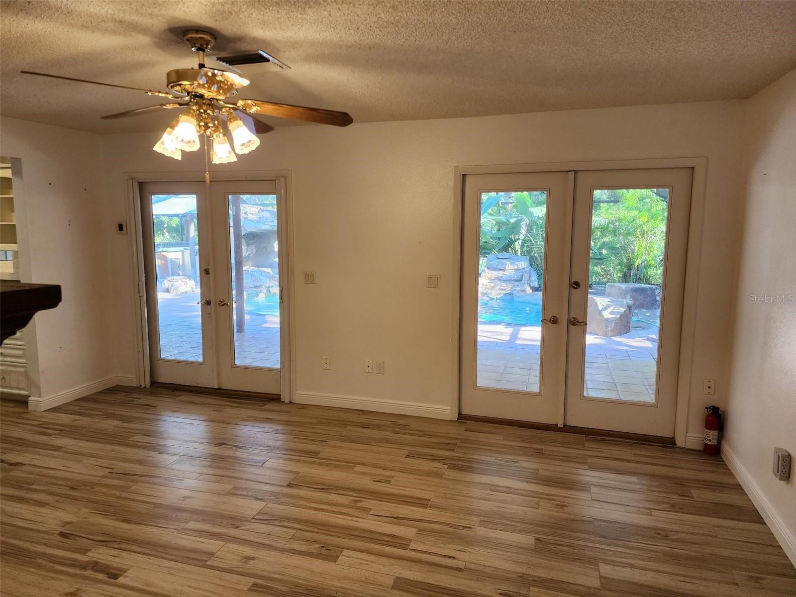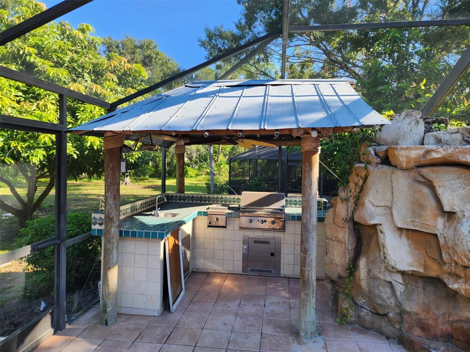 - Exterior: French Doors, Hurricane Shutters, Irrigation System, Outdoor Kitchen, Rain Gutters