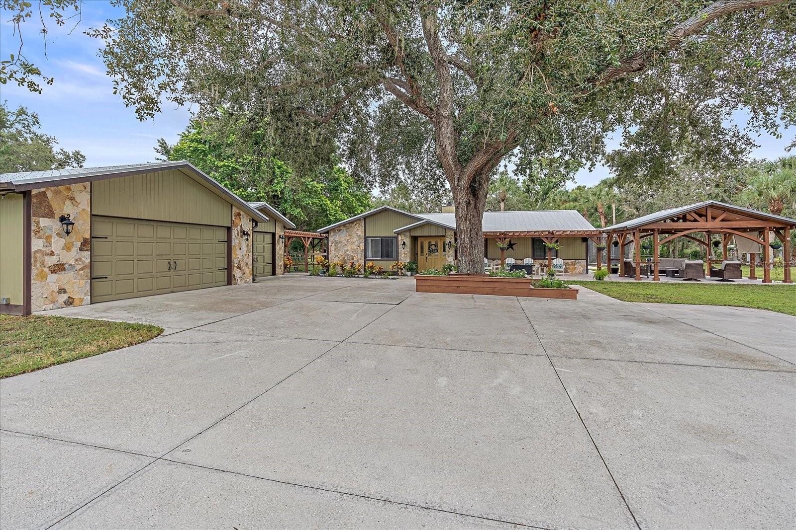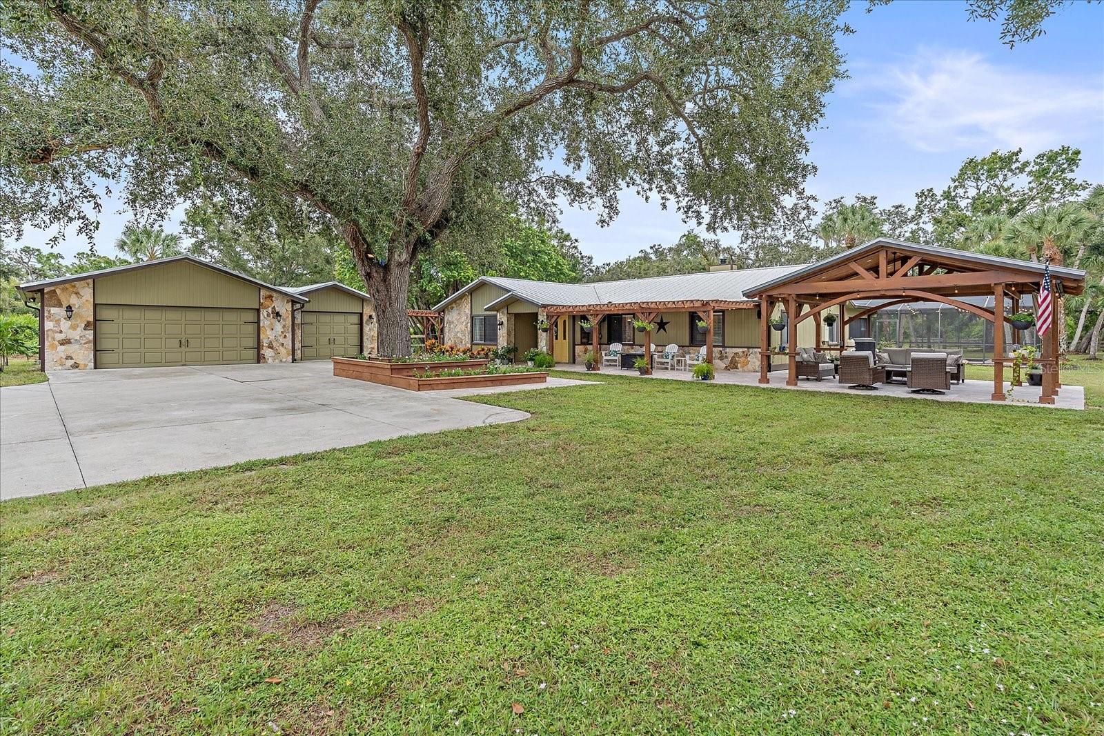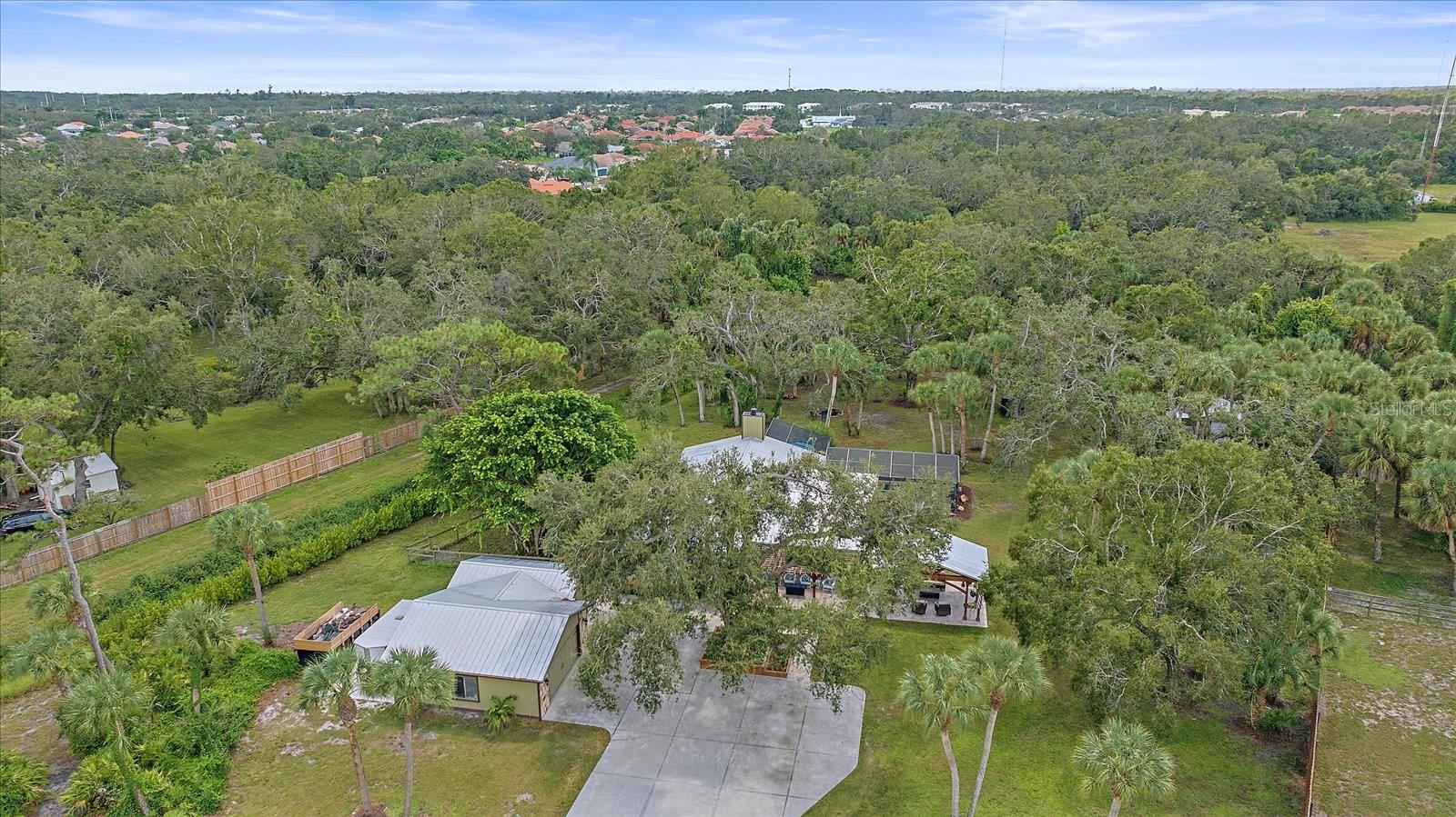 BACK ON MARKET - Due to financing/NOT appraisal. One of a kind, 3-acre horse property located in the heart of Venice that will blow you away. Feel the cares subside gliding down the palm bordered drive to the private compound accentuated by grand oaks. Notice the immaculate landscape and hardscape that really sets this home apart from average. The uniqueness of the property is evidenced the minute you see the timbered pergola providing the perfect place for entertaining family and friends. Relax watching the game, laugh at the "kids" singing Karaoke or just feel the serenity of the evening in the country yet just minutes from everything including the beach. Entering the home, appreciate the open floorplan where your entertaining can continue as guests mingle from the dining room to the kitchen and two separate living areas. When the chill of February hits, appreciate the corner stone wood burning fireplace. The kitchen is designed with the chef in mind. New cabinetry with more than enough room for any cook's tools. The stainless-steel appliances feature a double oven, farmhouse sink and extraordinary granite which make cooking a breeze. A separate "formal" dining room can make those holiday meals a joy with enough room for everyone to sit at the adult table. The main suite features a full spa-like bathroom with designer tile and dual sinks. Another unique feature is that the main bathroom opens to the home's mechanical room and provides a very convenient location for the laundry. Two bedrooms are split from the main suite and allow privacy for family or guests. There is a fourth bedroom that is convenient for use as an office or playroom. The yard and grounds are the showstopper for this home. In addition to the main pergola additional seating and entertaining areas are by the front door. A third pergola allows for more private intimate meetings. Of course, there is a fire pit, stable, butterfly screened garden, chicken coops, stable, and utility shed. Relax in the fully remodeled salt-water pool. The 3-car garage provides ample room for toys, cars, workshop or even an office. Speaking of toys, park the boat or RV, there's plenty of room. Venice Acres is a couple of minutes from the Jacaranda circle with its shopping areas and minutes from I-75. The home is 15 minutes from Venice Beach, 10 minutes from downtown and the Island of Venice with its unique shops and restaurants and 9 minutes to the new Sarasota Memorial Hospital in Venice.