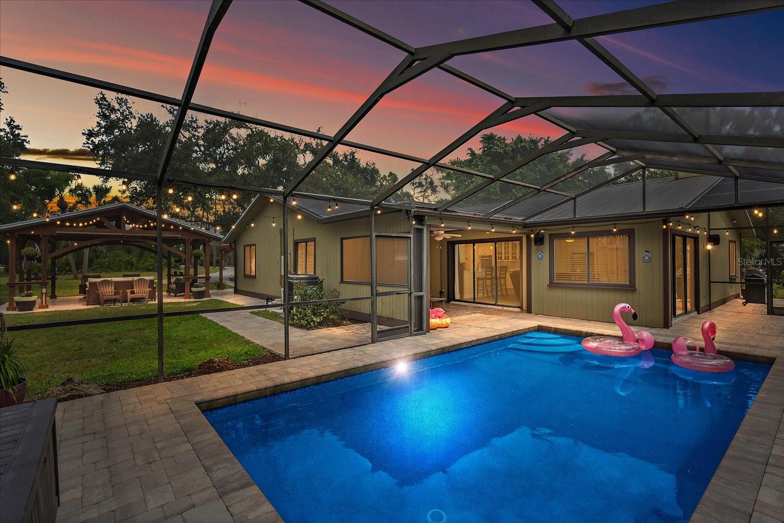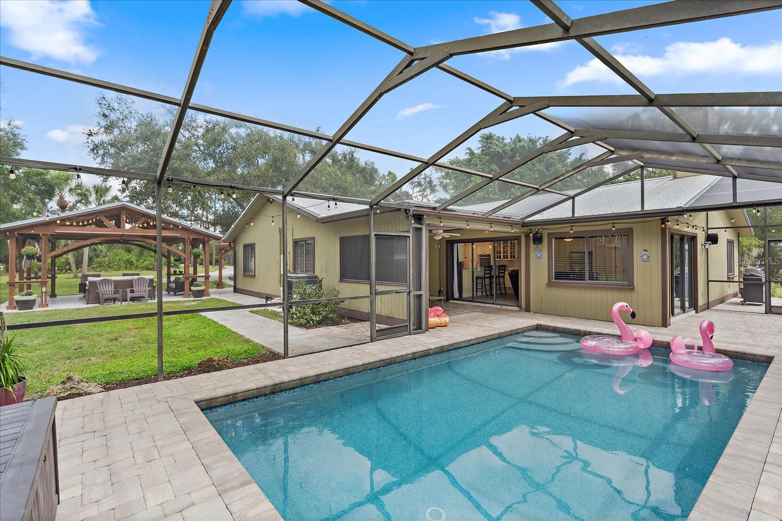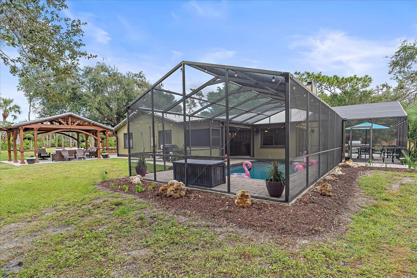BACK ON MARKET - Due to financing/NOT appraisal. One of a kind, 3-acre horse property located in the heart of Venice that will blow you away. Feel the cares subside gliding down the palm bordered drive to the private compound accentuated by grand oaks. Notice the immaculate landscape and hardscape that really sets this home apart from average. The uniqueness of the property is evidenced the minute you see the timbered pergola providing the perfect place for entertaining family and friends. Relax watching the game, laugh at the "kids" singing Karaoke or just feel the serenity of the evening in the country yet just minutes from everything including the beach. Entering the home, appreciate the open floorplan where your entertaining can continue as guests mingle from the dining room to the kitchen and two separate living areas. When the chill of February hits, appreciate the corner stone wood burning fireplace. The kitchen is designed with the chef in mind. New cabinetry with more than enough room for any cook's tools. The stainless-steel appliances feature a double oven, farmhouse sink and extraordinary granite which make cooking a breeze. A separate "formal" dining room can make those holiday meals a joy with enough room for everyone to sit at the adult table. The main suite features a full spa-like bathroom with designer tile and dual sinks. Another unique feature is that the main bathroom opens to the home's mechanical room and provides a very convenient location for the laundry. Two bedrooms are split from the main suite and allow privacy for family or guests. There is a fourth bedroom that is convenient for use as an office or playroom. The yard and grounds are the showstopper for this home. In addition to the main pergola additional seating and entertaining areas are by the front door. A third pergola allows for more private intimate meetings. Of course, there is a fire pit, stable, butterfly screened garden, chicken coops, stable, and utility shed. Relax in the fully remodeled salt-water pool. The 3-car garage provides ample room for toys, cars, workshop or even an office. Speaking of toys, park the boat or RV, there's plenty of room. Venice Acres is a couple of minutes from the Jacaranda circle with its shopping areas and minutes from I-75. The home is 15 minutes from Venice Beach, 10 minutes from downtown and the Island of Venice with its unique shops and restaurants and 9 minutes to the new Sarasota Memorial Hospital in Venice.