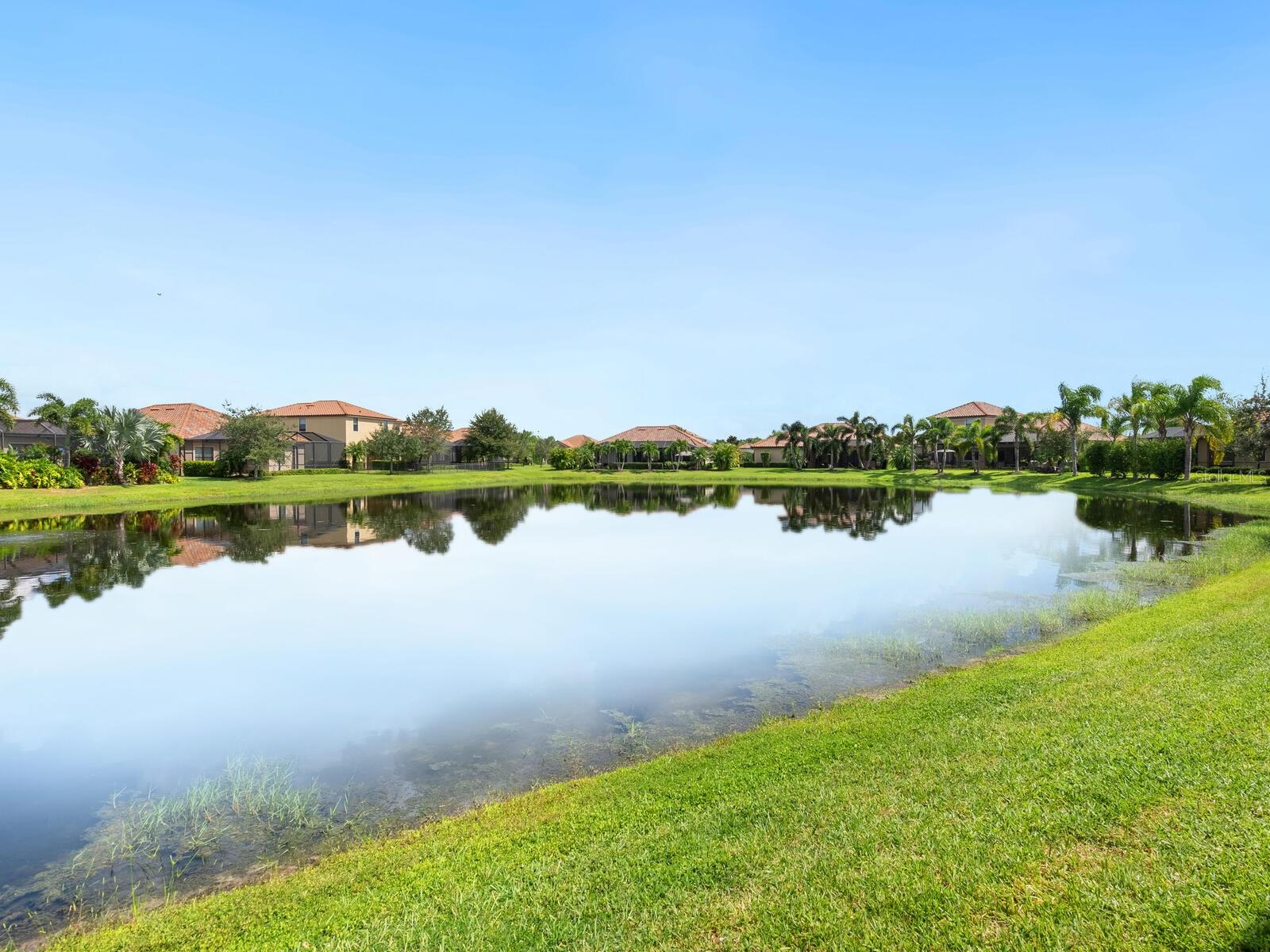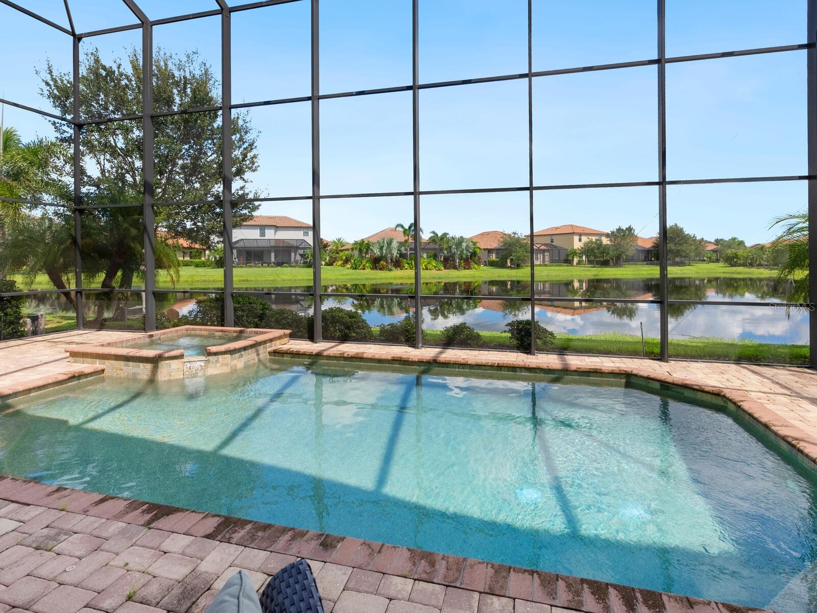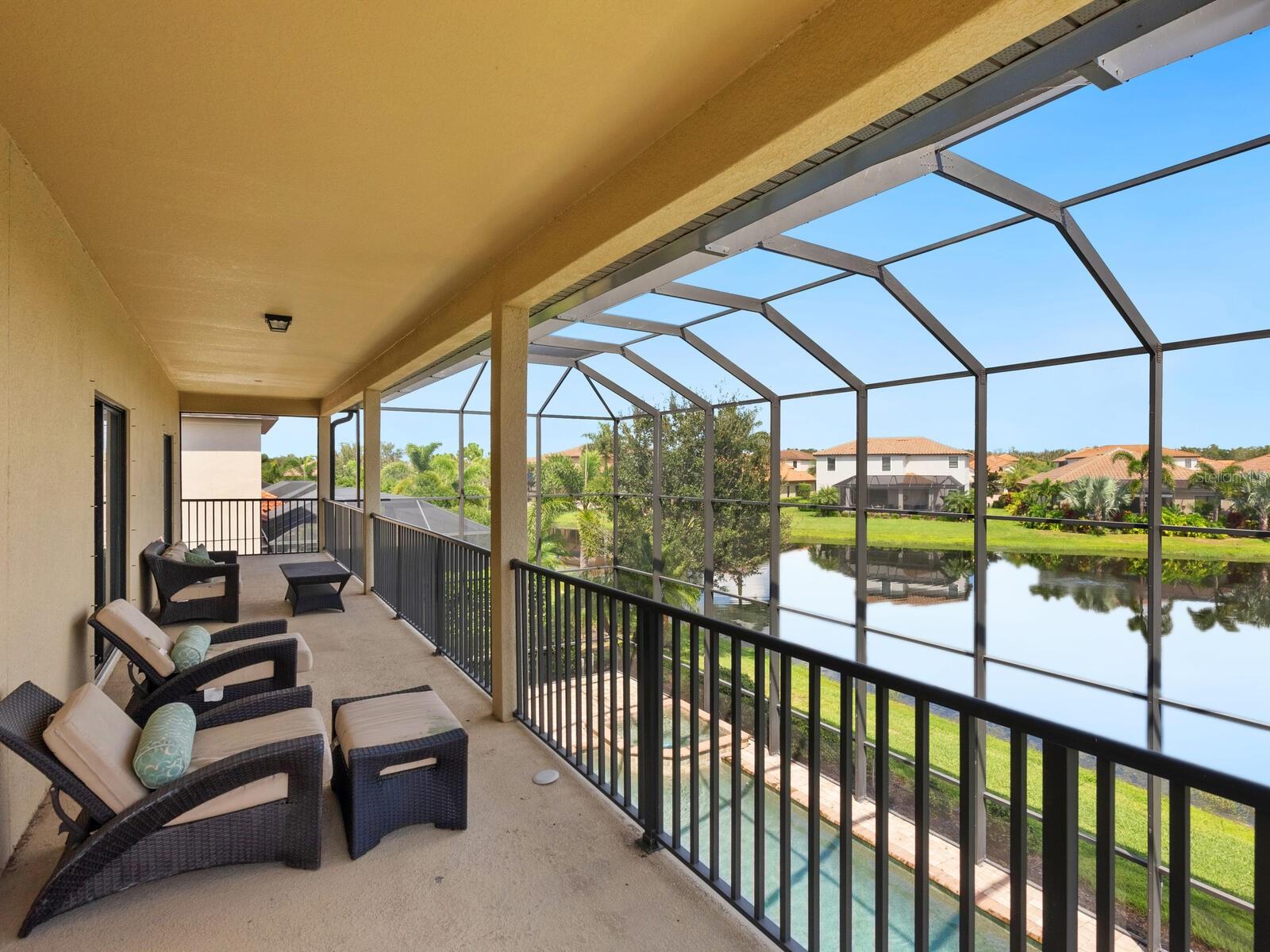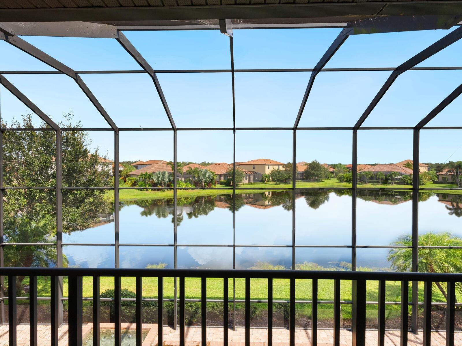Under contract-accepting backup offers. The current price is below the appraised value. The Chapel Hill floorplan is one of the most sought-after homes in Bridgewater. With close to 4,000 square feet, there is room for everyone in the family to have their privacy. This home offers five bedrooms, four baths, a loft area, a huge bonus room, and a THREE-car garage. The formal living room has built-in storage cabinets while the family room boasts a 55" Samsung mounted TV with a "Stealth Coverart" and a surround sound system installed by Integrity Sound ($14,000 system) which will stay. The kitchen is equipped with granite countertops, 42" wood cabinetry, gas stove, wall oven and microwave, breakfast bar, stainless steel appliances, and a large pantry. The guest suite on the first floor includes a Murphy bed and a private bath. A built-in storage cabinet and a folding table are nice bonuses in the laundry room. The primary bedroom on the second floor boasts his and her closets and a spacious bathroom with a soaking tub and walk-in shower. Enjoy beautiful sunsets on the balcony overlooking the gorgeous water view beyond the sliding glass doors. Bedrooms three and five also have glass sliders that open to the balcony. The owners removed a linen closet to create an ensuite for bedroom four. The loft is affectionately known as the "reading nook" area with a built-in twin bed with bookshelves. Your family will love the 324 square foot bonus room with a gorgeous entertainment center that will convey. A huge plus to this home is the oversized three-car garage with tons of storage along the back wall, three lockers perfect for your family, five overhead bicycle racks, two overhead storage spaces for paddleboards, a tankless gas water heater, and still room for three cars. A brand new AC system was installed in 9/23. The outdoor area features a large screened-in pool, spa, and spacious paver lanai perfect for entertaining. Bridgewater is a beautiful, gated maintenance-free community and only minutes away from the new Lakewood Ranch Preparatory Academy. Come see what makes this home so special.