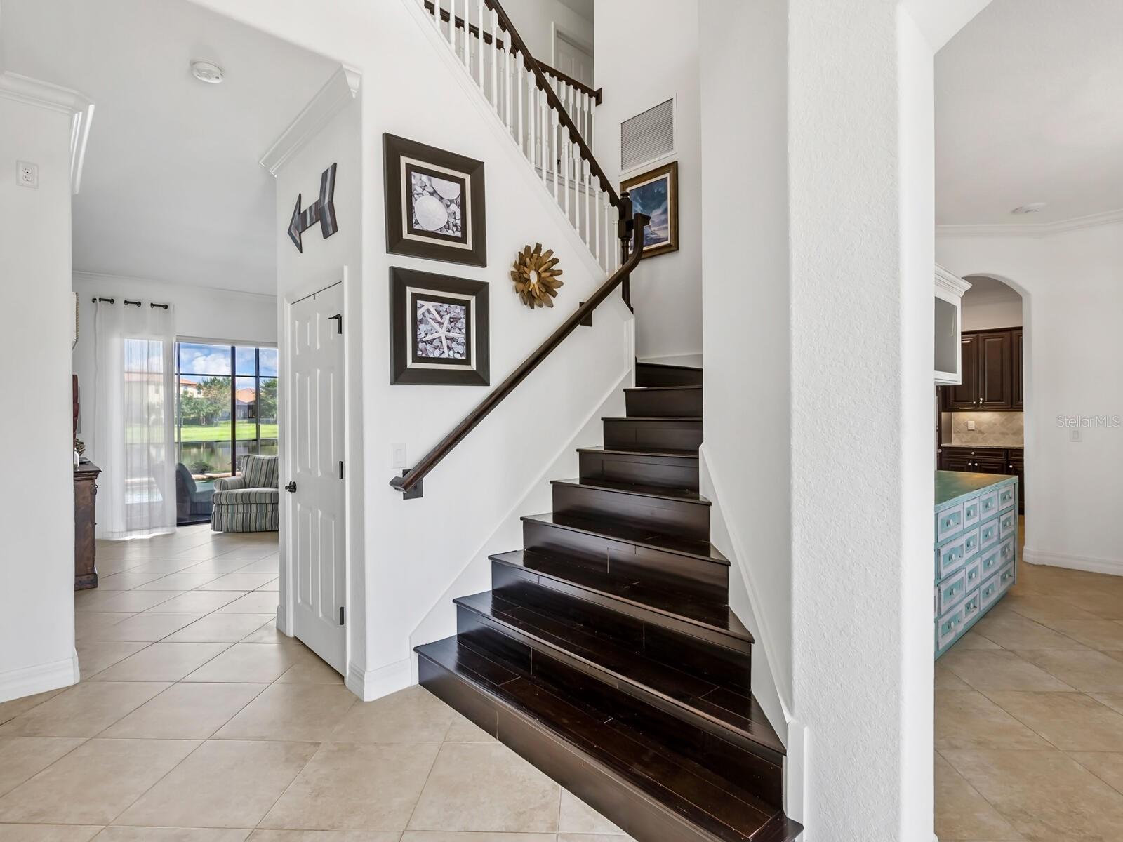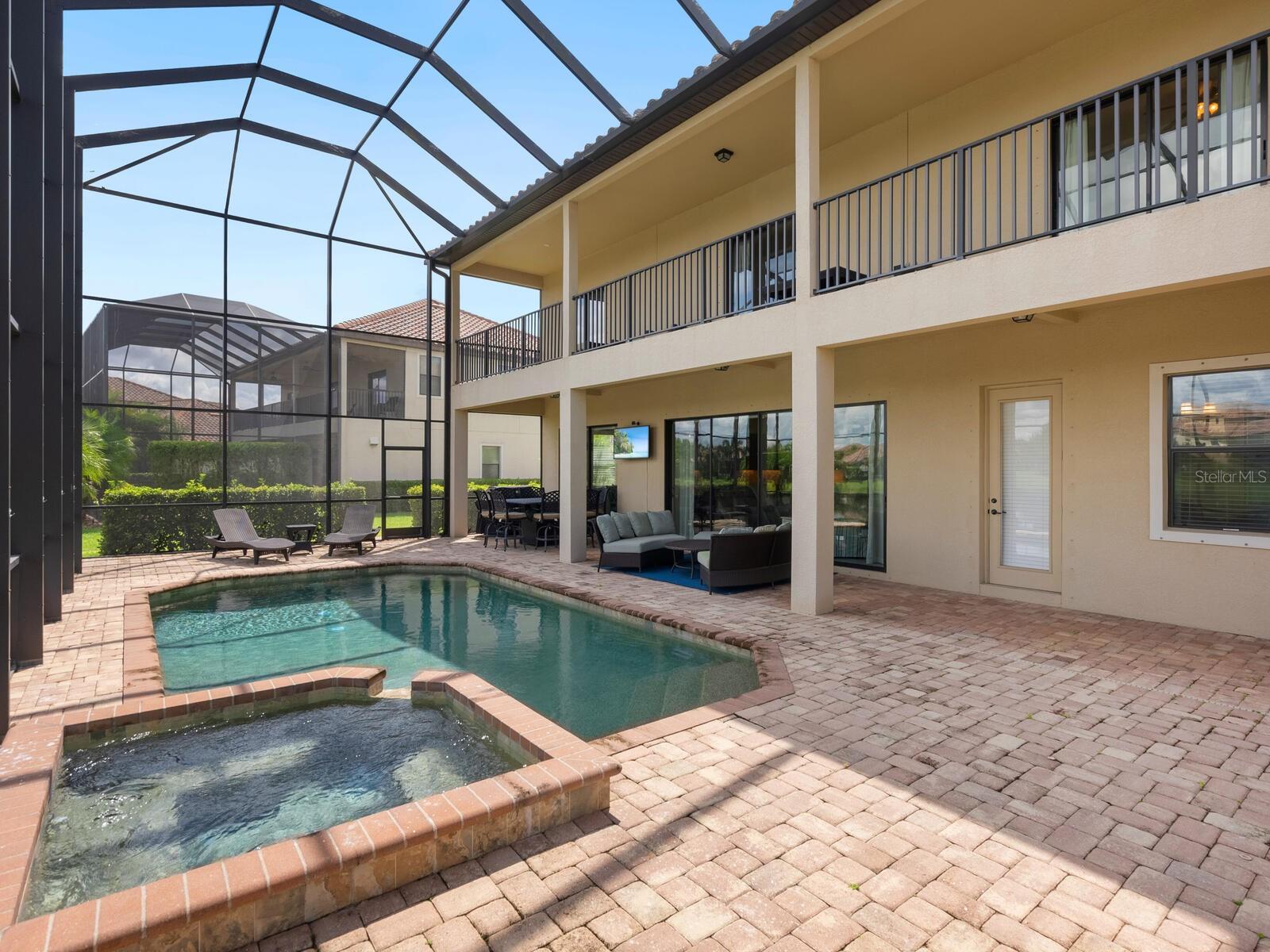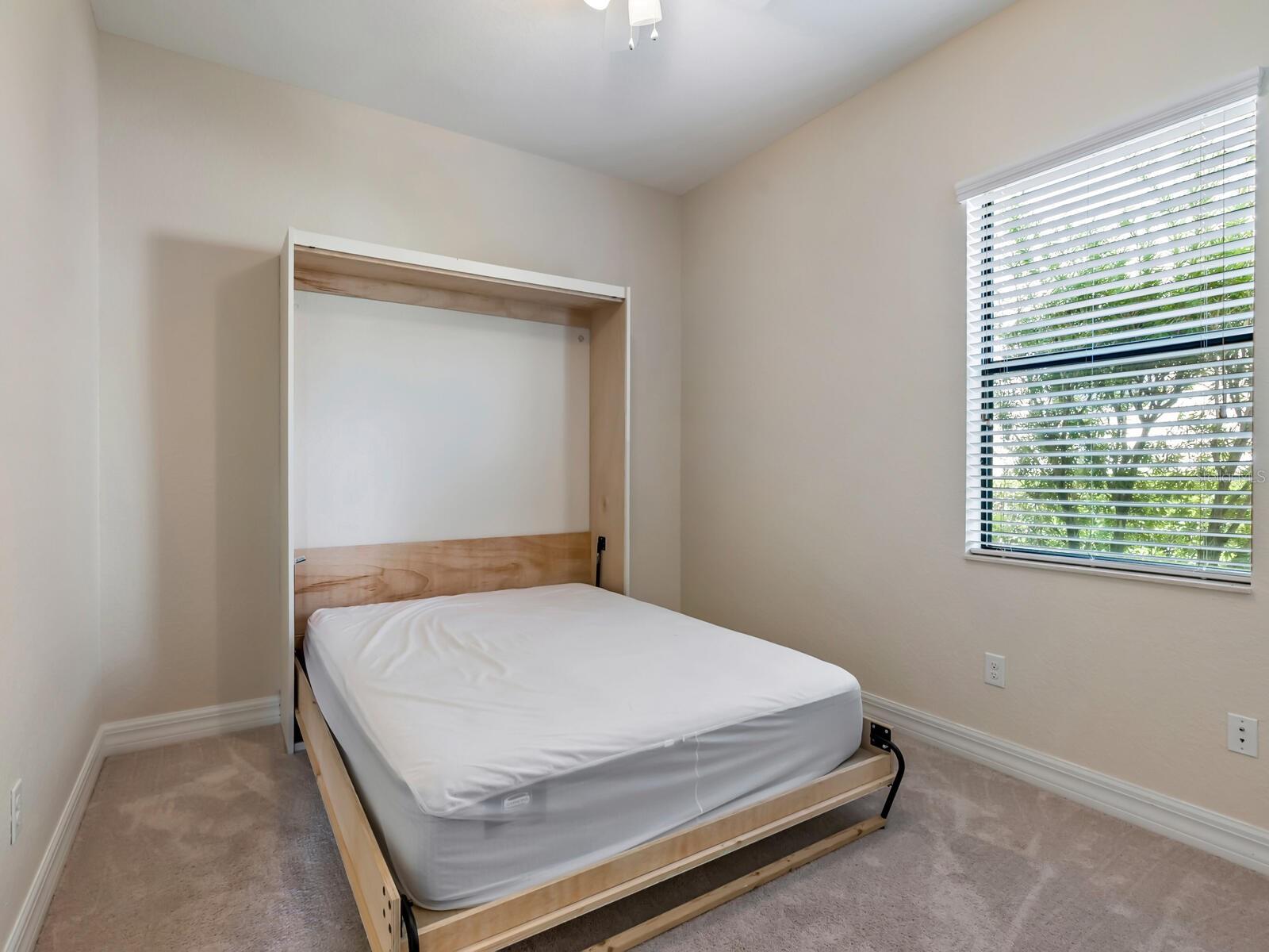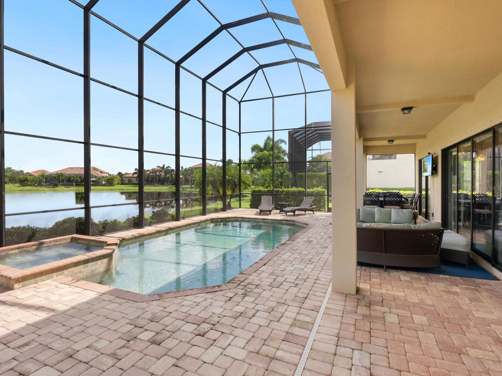 Under contract-accepting backup offers. The current price is below the appraised value. The Chapel Hill floorplan is one of the most sought-after homes in Bridgewater. With close to 4,000 square feet, there is room for everyone in the family to have their privacy. This home offers five bedrooms, four baths, a loft area, a huge bonus room, and a THREE-car garage. The formal living room has built-in storage cabinets while the family room boasts a 55" Samsung mounted TV with a "Stealth Coverart" and a surround sound system installed by Integrity Sound ($14,000 system) which will stay. The kitchen is equipped with granite countertops, 42" wood cabinetry, gas stove, wall oven and microwave, breakfast bar, stainless steel appliances, and a large pantry. The guest suite on the first floor includes a Murphy bed and a private bath. A built-in storage cabinet and a folding table are nice bonuses in the laundry room. The primary bedroom on the second floor boasts his and her closets and a spacious bathroom with a soaking tub and walk-in shower. Enjoy beautiful sunsets on the balcony overlooking the gorgeous water view beyond the sliding glass doors. Bedrooms three and five also have glass sliders that open to the balcony. The owners removed a linen closet to create an ensuite for bedroom four. The loft is affectionately known as the "reading nook" area with a built-in twin bed with bookshelves. Your family will love the 324 square foot bonus room with a gorgeous entertainment center that will convey. A huge plus to this home is the oversized three-car garage with tons of storage along the back wall, three lockers perfect for your family, five overhead bicycle racks, two overhead storage spaces for paddleboards, a tankless gas water heater, and still room for three cars. A brand new AC system was installed in 9/23. The outdoor area features a large screened-in pool, spa, and spacious paver lanai perfect for entertaining. Bridgewater is a beautiful, gated maintenance-free community and only minutes away from the new Lakewood Ranch Preparatory Academy. Come see what makes this home so special.