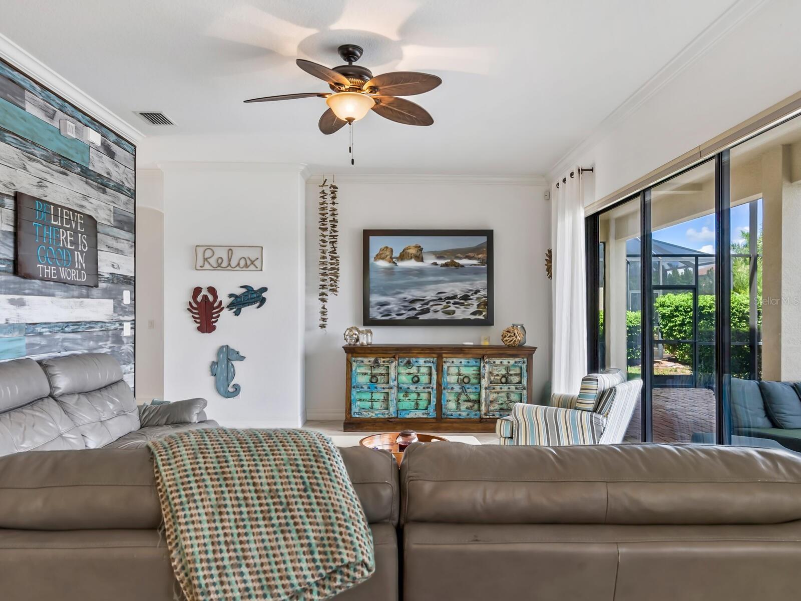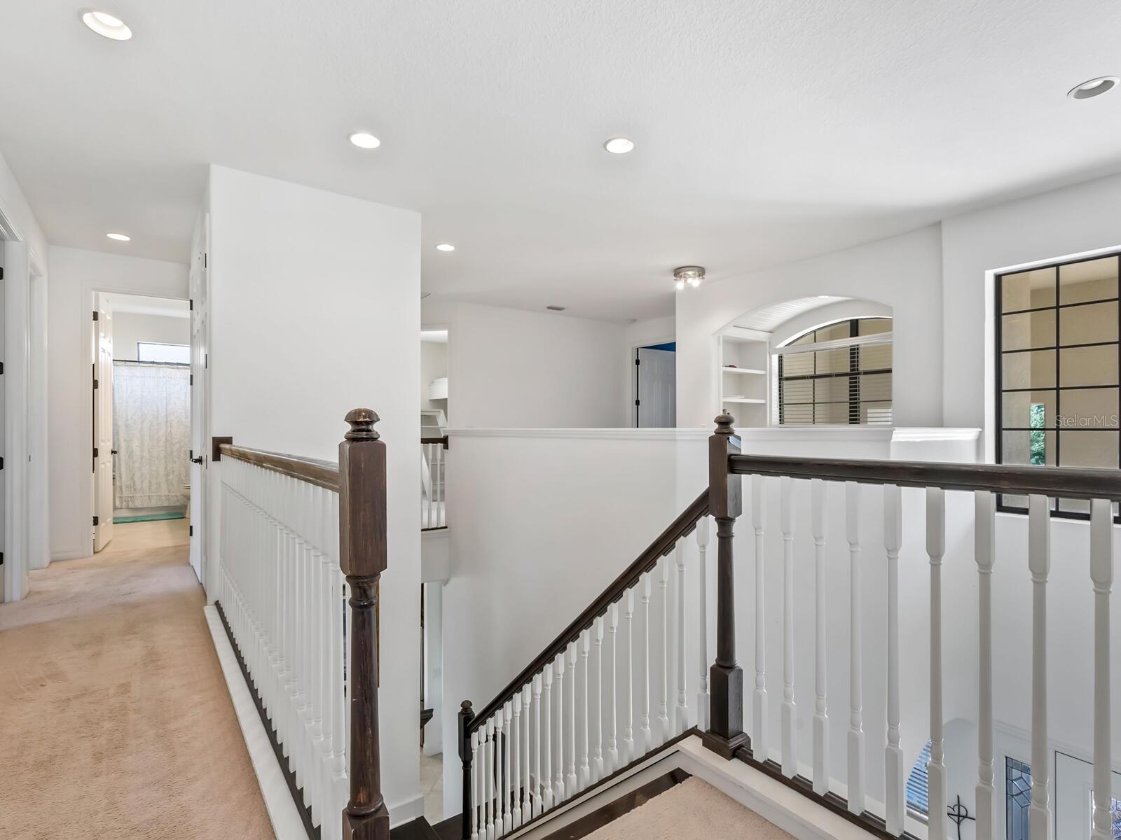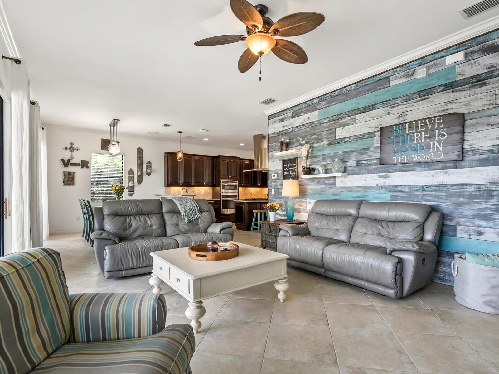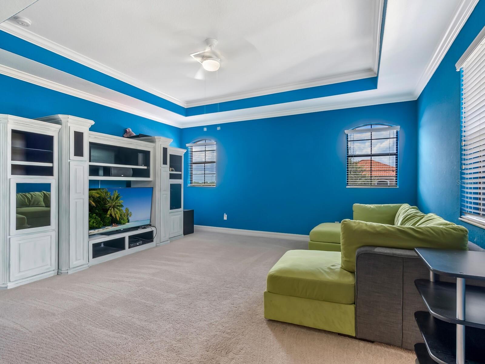 Under contract-accepting backup offers. The current price is below the appraised value. The Chapel Hill floorplan is one of the most sought-after homes in Bridgewater. With close to 4,000 square feet, there is room for everyone in the family to have their privacy. This home offers five bedrooms, four baths, a loft area, a huge bonus room, and a THREE-car garage. The formal living room has built-in storage cabinets while the family room boasts a 55" Samsung mounted TV with a "Stealth Coverart" and a surround sound system installed by Integrity Sound ($14,000 system) which will stay. The kitchen is equipped with granite countertops, 42" wood cabinetry, gas stove, wall oven and microwave, breakfast bar, stainless steel appliances, and a large pantry. The guest suite on the first floor includes a Murphy bed and a private bath. A built-in storage cabinet and a folding table are nice bonuses in the laundry room. The primary bedroom on the second floor boasts his and her closets and a spacious bathroom with a soaking tub and walk-in shower. Enjoy beautiful sunsets on the balcony overlooking the gorgeous water view beyond the sliding glass doors. Bedrooms three and five also have glass sliders that open to the balcony. The owners removed a linen closet to create an ensuite for bedroom four. The loft is affectionately known as the "reading nook" area with a built-in twin bed with bookshelves. Your family will love the 324 square foot bonus room with a gorgeous entertainment center that will convey. A huge plus to this home is the oversized three-car garage with tons of storage along the back wall, three lockers perfect for your family, five overhead bicycle racks, two overhead storage spaces for paddleboards, a tankless gas water heater, and still room for three cars. A brand new AC system was installed in 9/23. The outdoor area features a large screened-in pool, spa, and spacious paver lanai perfect for entertaining. Bridgewater is a beautiful, gated maintenance-free community and only minutes away from the new Lakewood Ranch Preparatory Academy. Come see what makes this home so special.