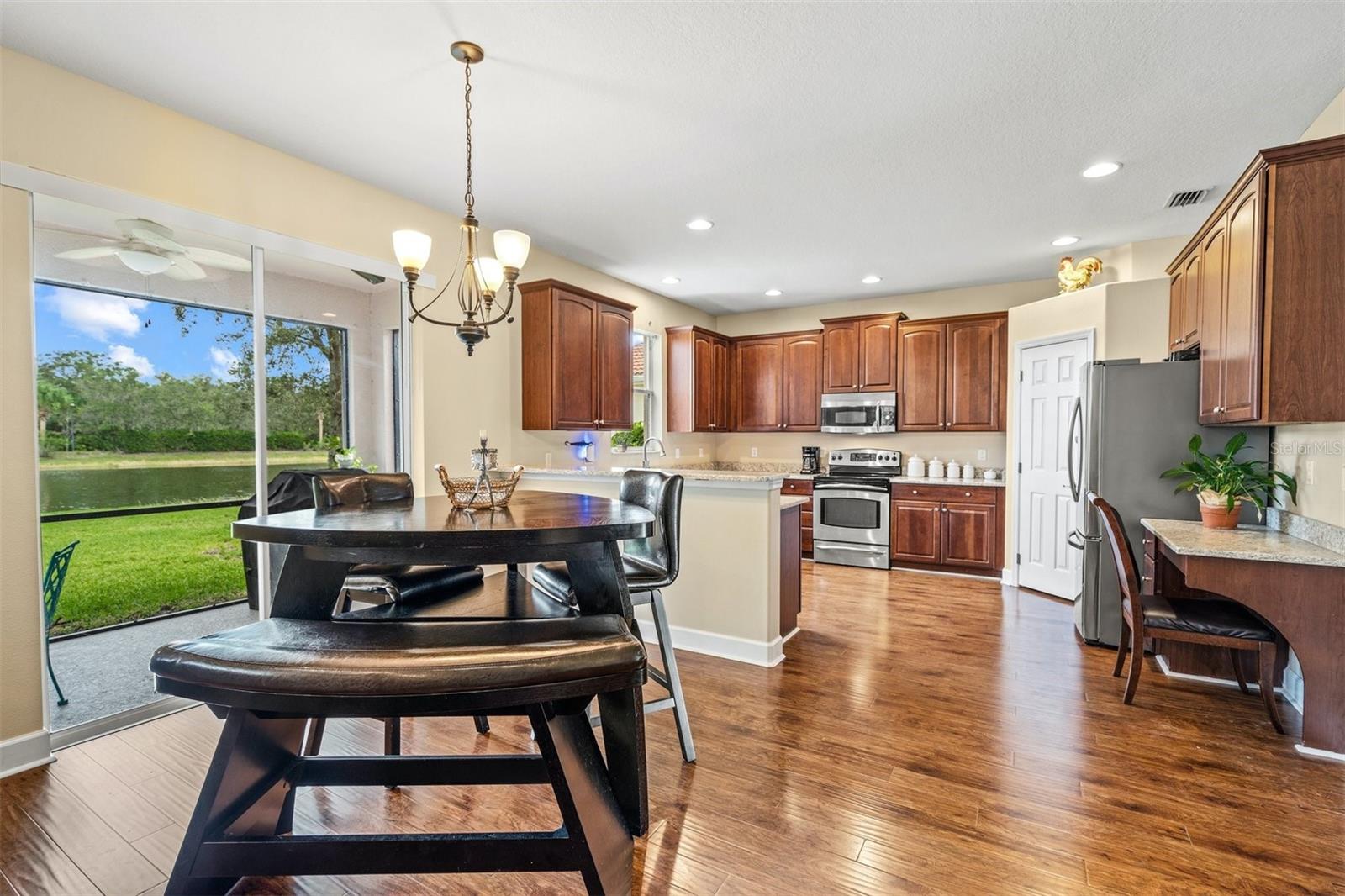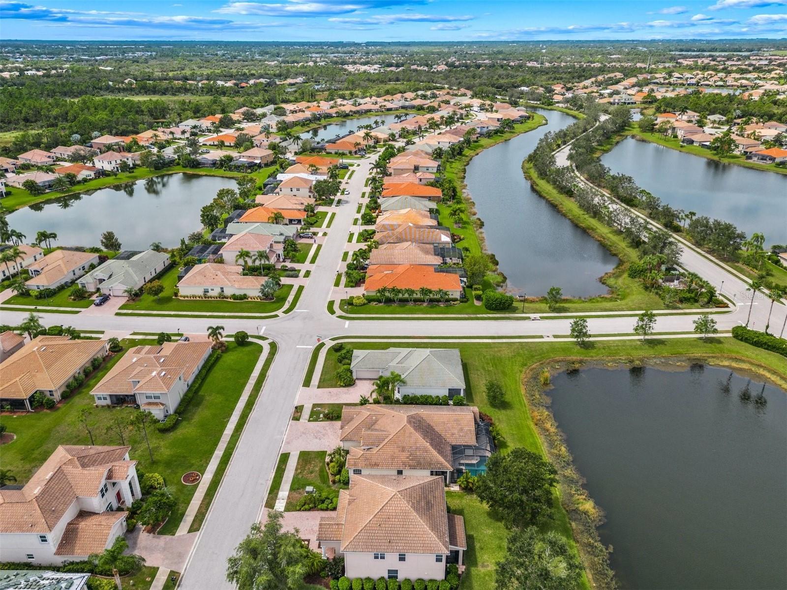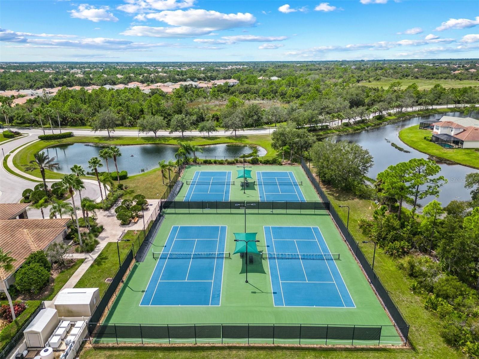 The intelligent design is as striking as its beauty in this four-bedroom, three-and-a-half-bath plus 13x9 den/sitting area in upper-level owners suite. The stunning home is in sought-after gated Stoneybrook at Venice. Fabulous floor plan, with all living spaces on first level: Living, dining, kitchen, family and bath. The second level encompasses the bedrooms and 3 baths. Owners suite with dual walk in closets, dual sinks, tub and shower. Inviting curb appeal, paver drive, with charming front porch, intricate architectural details, lush landscaping. Wrap yourself in luxury in a sophisticated and modern space with clean lines, boasting high ceilings, wood laminate flooring on main living areas. Outstanding features include trim molding, impressive lighting, brilliantly designed gourmet kitchen with abundant cabinetry, quartz countertops, breakfast bar, stainless steel appliances. There is a kitchen desk and walk in pantry. The family/kitchen area has sliders to the rear screened-in lanai for a seamless transition to outdoor, tranquil living overlooking a sparkling lake and park like setting. On a practical note: 2 ACs one replaced in 2015 and 2022. Stoneybrook at Venice has so much to offer: an incredible community with a variety of activities, including pickle ball, tennis, gym, basketball, beach volleyball, community pool, splash park, ball park, playground and Clubhouse. A stellar, convenient location near world-class beaches, downtown Venice, Wellen Park, Cool Today Park, shopping, restaurants and A-rated schools, including Pineview, Taylor Ranch, Venice Middle and High.