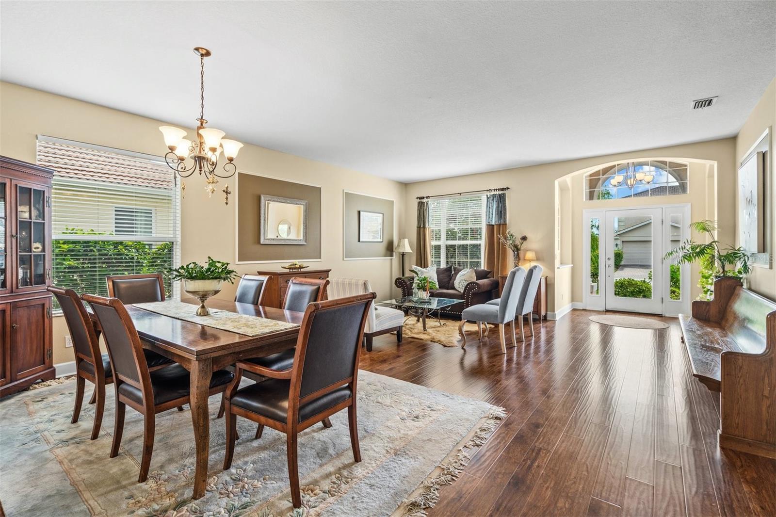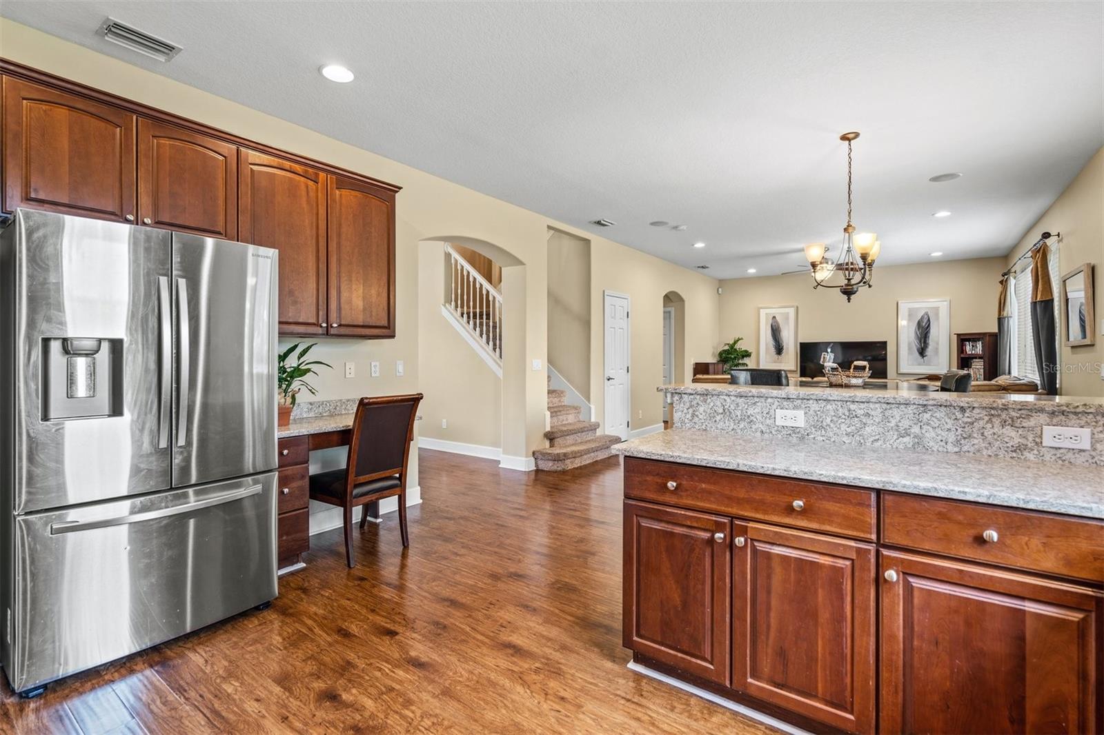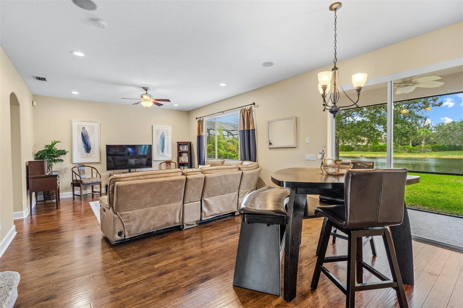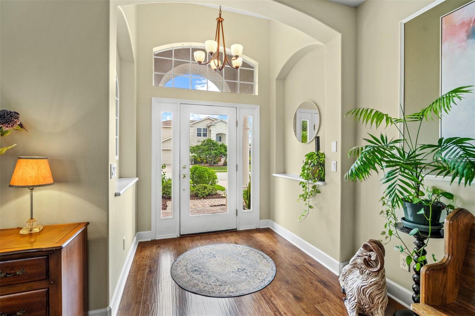 The intelligent design is as striking as its beauty in this four-bedroom, three-and-a-half-bath plus 13x9 den/sitting area in upper-level owners suite. The stunning home is in sought-after gated Stoneybrook at Venice. Fabulous floor plan, with all living spaces on first level: Living, dining, kitchen, family and bath. The second level encompasses the bedrooms and 3 baths. Owners suite with dual walk in closets, dual sinks, tub and shower. Inviting curb appeal, paver drive, with charming front porch, intricate architectural details, lush landscaping. Wrap yourself in luxury in a sophisticated and modern space with clean lines, boasting high ceilings, wood laminate flooring on main living areas. Outstanding features include trim molding, impressive lighting, brilliantly designed gourmet kitchen with abundant cabinetry, quartz countertops, breakfast bar, stainless steel appliances. There is a kitchen desk and walk in pantry. The family/kitchen area has sliders to the rear screened-in lanai for a seamless transition to outdoor, tranquil living overlooking a sparkling lake and park like setting. On a practical note: 2 ACs one replaced in 2015 and 2022. Stoneybrook at Venice has so much to offer: an incredible community with a variety of activities, including pickle ball, tennis, gym, basketball, beach volleyball, community pool, splash park, ball park, playground and Clubhouse. A stellar, convenient location near world-class beaches, downtown Venice, Wellen Park, Cool Today Park, shopping, restaurants and A-rated schools, including Pineview, Taylor Ranch, Venice Middle and High.