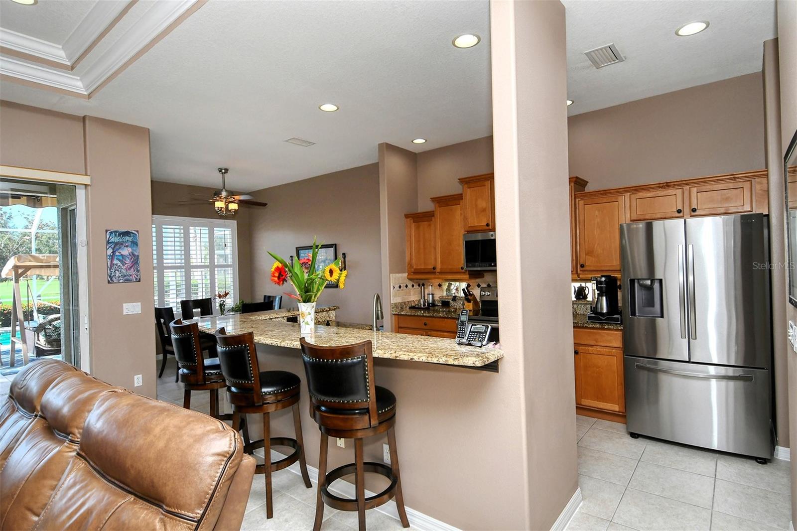 You will not want to miss this gorgeous property! Nestled at the back of a private cul-de-sac in Heritage Oaks Golf & Country Club, this rarely available Doral model Patio Home is being sold Turn-Key Furnished and features phenomenal golf and water views, a large lanai with heated swimming pool and spa, and a brand new tile roof (2023). With 2 bedrooms, 2 bathrooms, and a den/study, the property features almost 1,800 square feet of living space and more than enough room to host friends and family. The property features many spectacular updates including: double tray ceilings with crown molding, granite countertops and stainless steel appliances in the kitchen, beautiful laminate wood flooring in the den and guest bedroom, luxurious plantation shutters on all windows, and a powered awning on the lanai to provide a plentiful amount of shade during those hot Florida summer days. In addition, a brand new washer and dryer were installed in 2023. The open floor plan layout is great for entertaining, as the kitchen features open sight lines directly to the rear facing lanai and pool area. The split bedroom layout is also very functional, as it gives guests and family total privacy. Spend mornings or evenings on the large private lanai taking in the wonderful views and the abundance of wildlife that call this certified Audubon Neighborhood their home. Heritage Oaks is known for its pristine 18-hole golf course, har-tru tennis courts, fitness center, 24-hour security, an impressive clubhouse with 2 restaurants including the sensational 19th Hole Lounge, 5 heated swimming pools, and a calendar of events packed with activities. Come take a look at this amazing property, as it will not last long!
