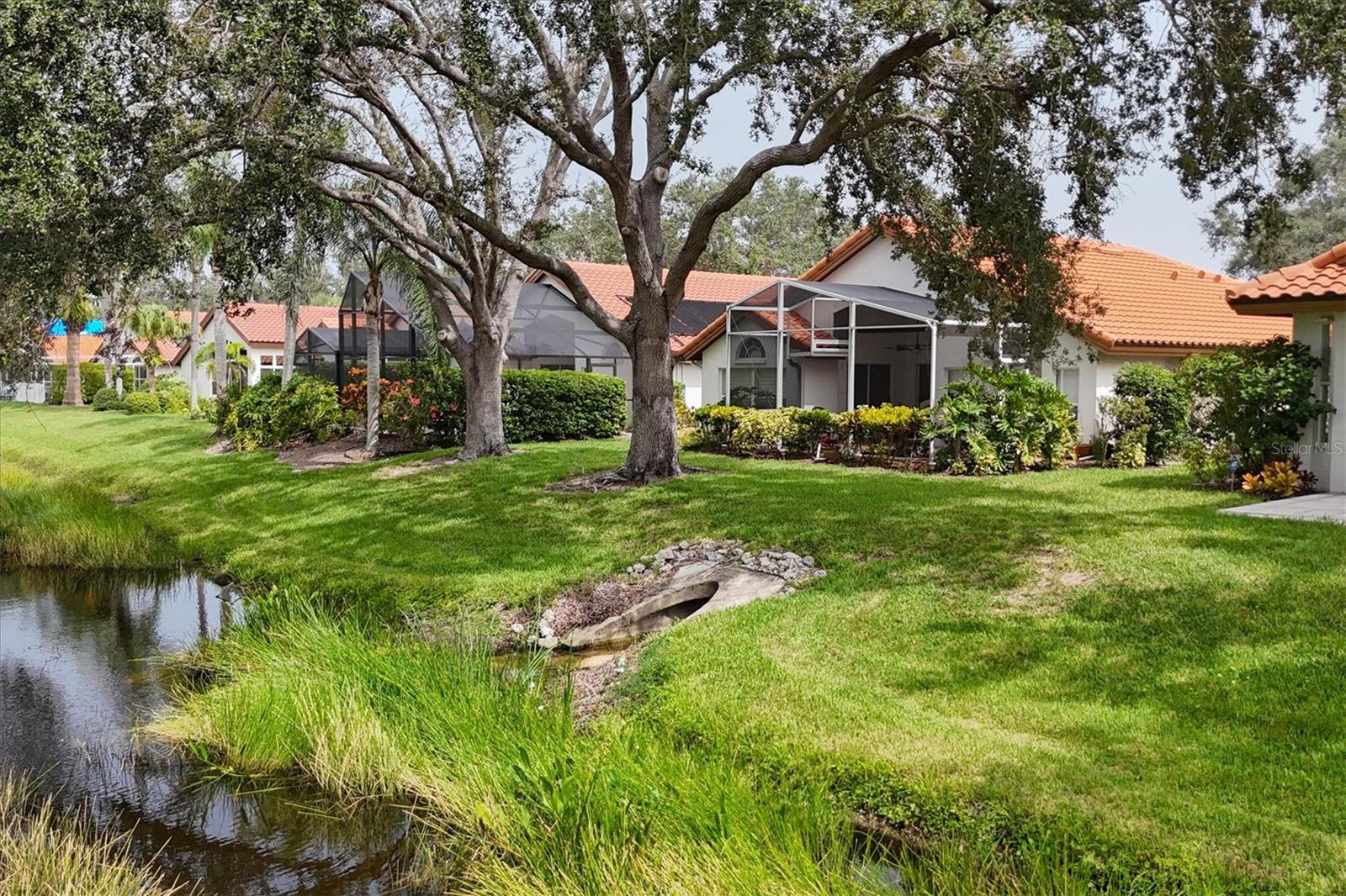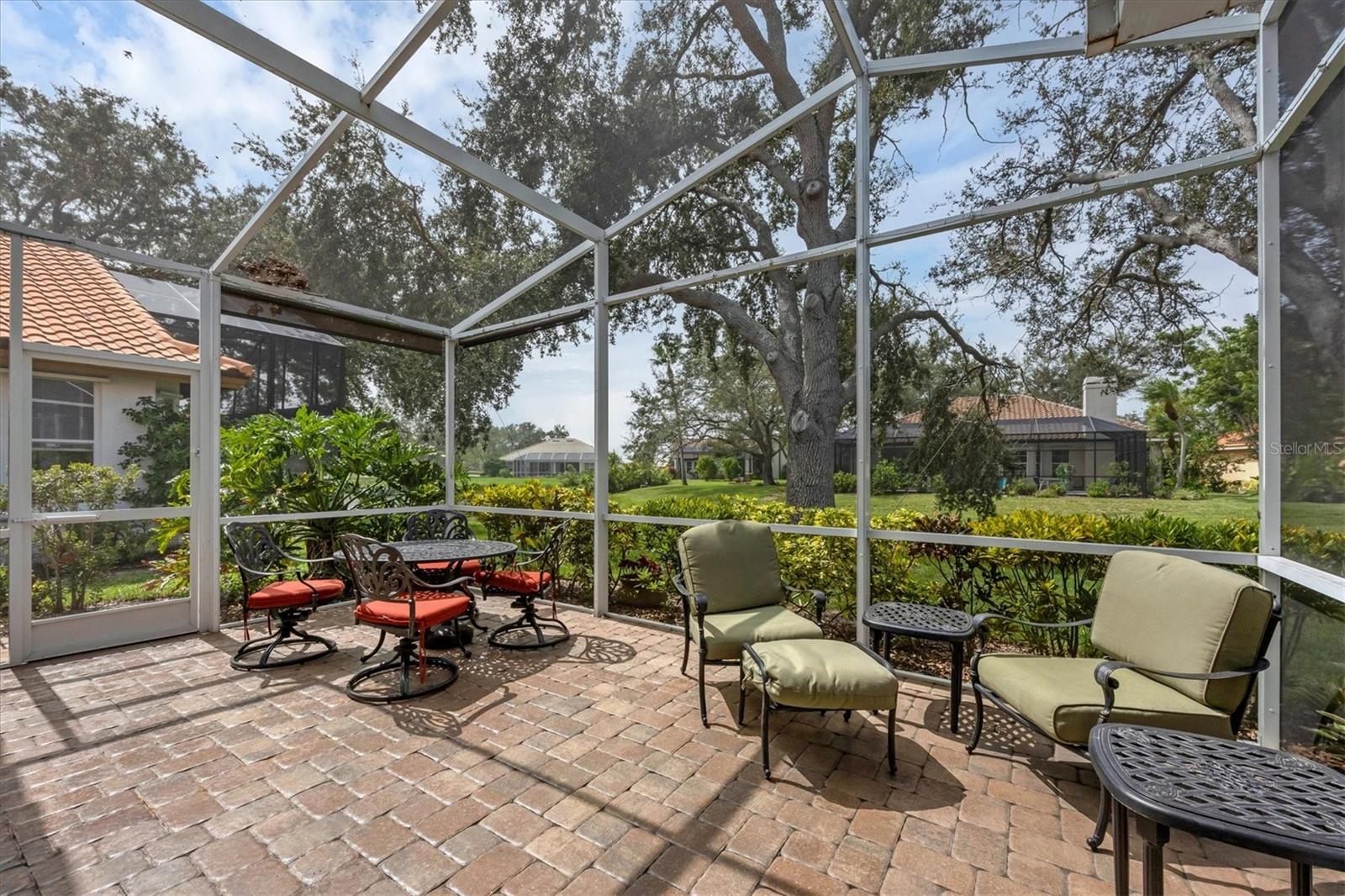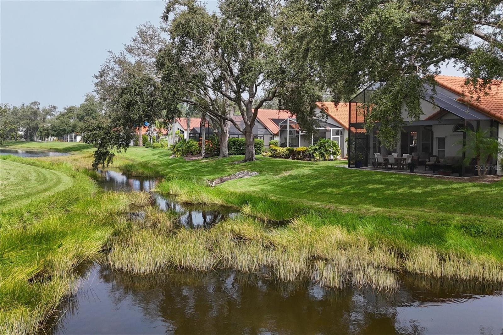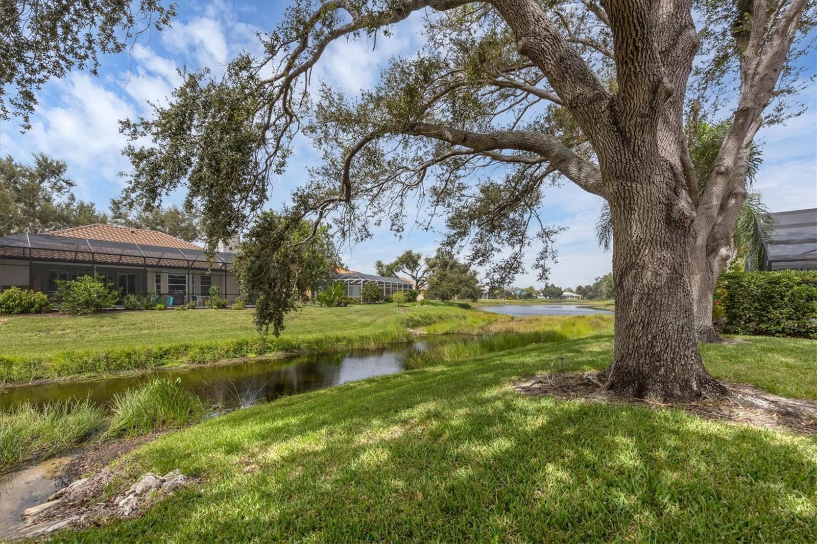 RARELY AVAILABLE, this highly sought-after Grand Traverse floor plan with 1848 square feet, is well-appointed and beautifully turnkey-furnished! This charming home features 3 bedrooms, 3 full baths, and a two-car garage. Centrally located, this home is nestled in the enclave at The Patio Homes of Chestnut Creek, with LOW HOA FEES & NO CDD FEES! Mature trees and lush landscaping, maintenance-free, the community offers a beautiful large swimming pool, tennis courts, shuffleboard, and a clubhouse. Who could ask for anything more, in a quiet little neighborhood like this?! Privacy split plan, with two en-suite large bedrooms and a third guest bedroom located towards the front of the home. High vaulted ceilings, an open plan, a fabulous kitchen with tons of cabinet space, sliding glass doors by the breakfast nook, granite, and stainless steel appliances that look brand new! Extremely well-maintained, Move-In Ready, and the owners can close very quickly. Gorgeous mature oaks, peaceful setting, sunkissed water views of the pond, as well as other spectacular lakes to see, enjoying walks around Chestnut Creek.Numerous improvements/updates in this home... re-plumbed in 2006, HVAC was installed in 2015, the tile roof in 2017, and the beautiful paver brick driveway and walkways were installed in 2020. Granite countertops in the kitchen and all bathrooms, porcelain tile, and laminate flooring. No carpet means fewer concerns for anyone with allergies in the family or any pets). More features and bonuses to mention are the plantation shutters, the owner's suite has sliding glass door access to the patio, a fully equipped kitchen that includes pots, pans, dishes, glasses, small appliances, and more! Highly desirable waterfront views on this premium lot, from the back of the upgraded extended screened caged lanai (2015) and paver brick patio with ample space to take in the Florida sunshine! This is exciting news for all those, looking for a gorgeous outdoor living space to spread out, with patio furniture and a grill included, to entertain your guests. Start your mornings with a nice cup of coffee and wind down in the evenings with a glass of wine in your hand. Live your best life ever, the Florida Lifestyle! Just over 10 minutes to Historic Downtown Venice, close to I-75, a quick drive to the Gulf coast beaches, marina, Venice Jetty in Nokomis, art galleries, restaurants, parks, shopping, festivals/events, and other fun places to go and explore!