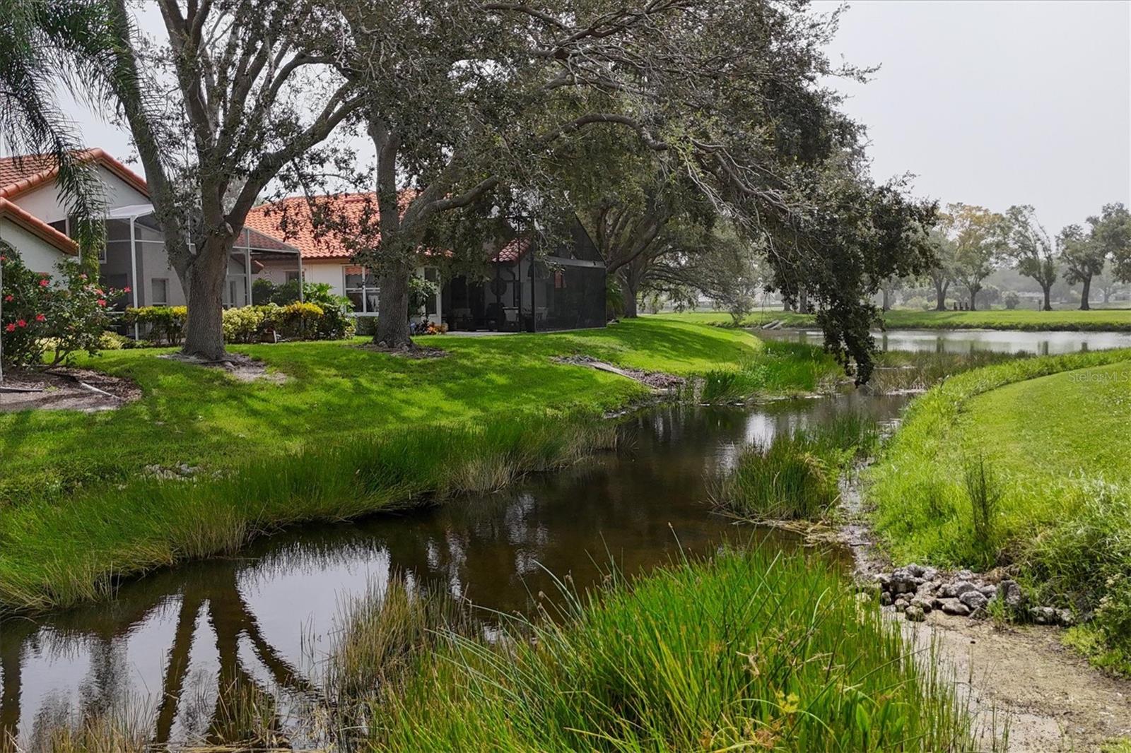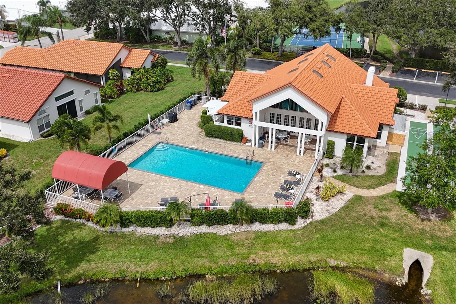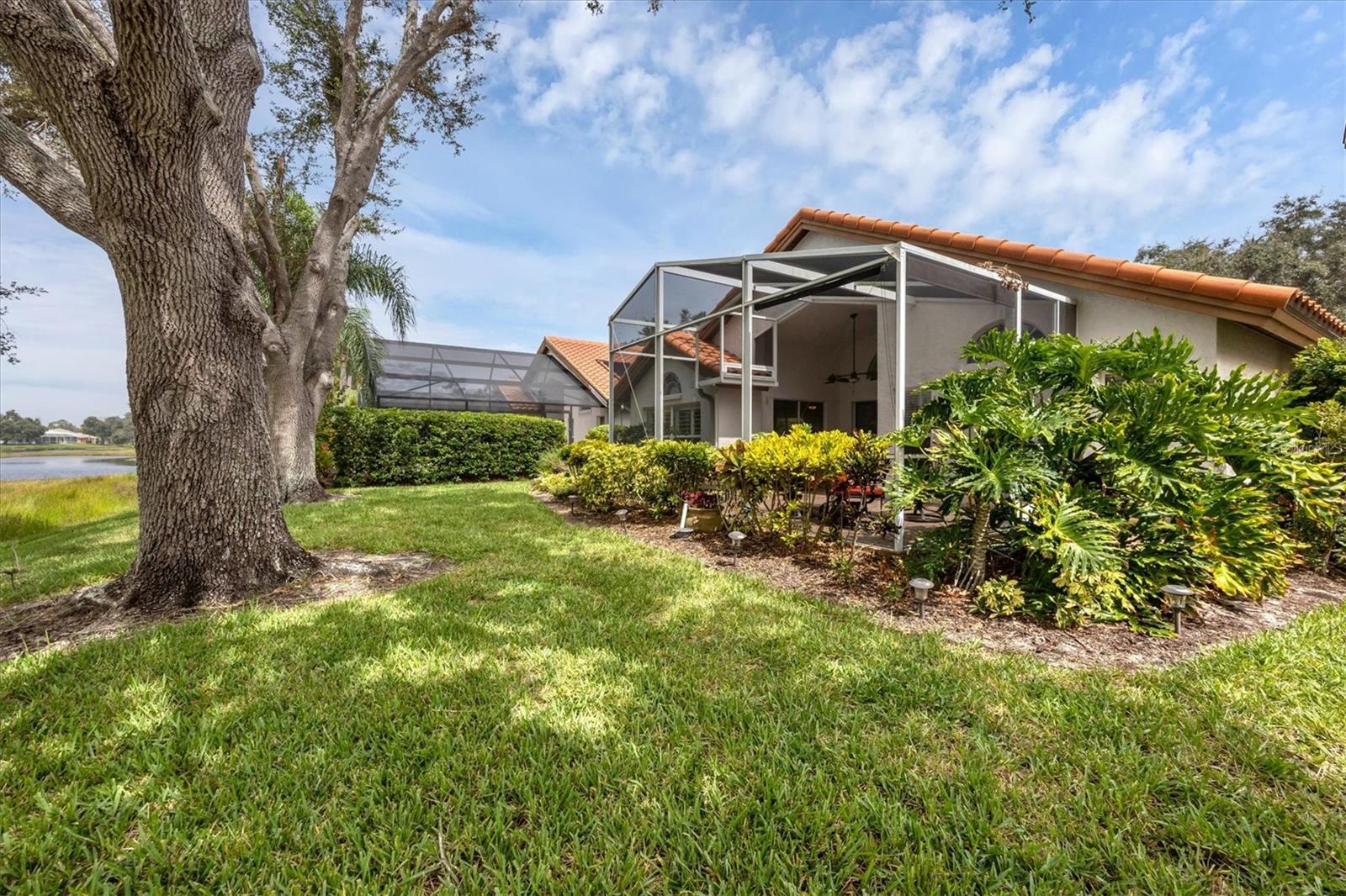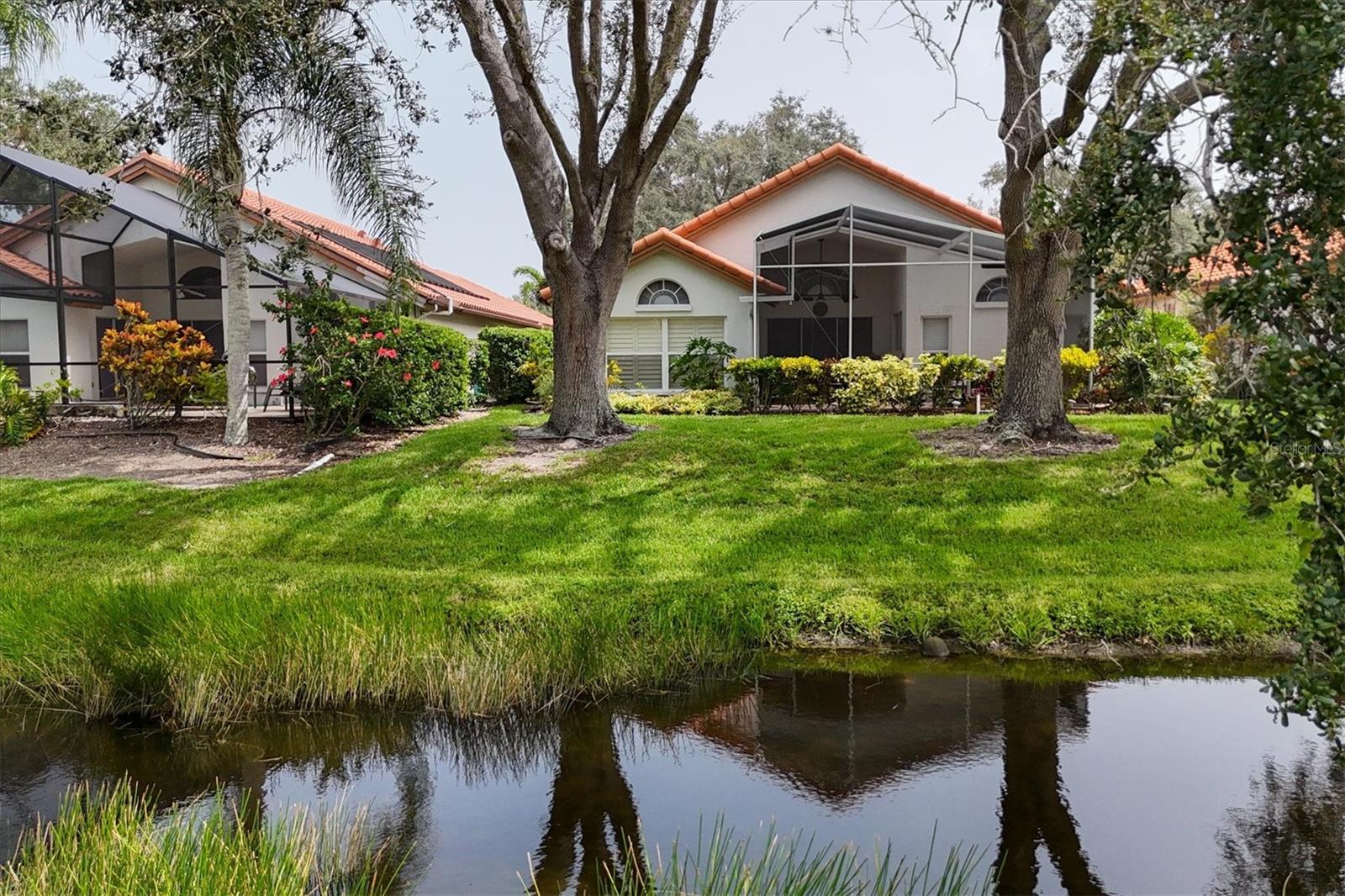 RARELY AVAILABLE, this highly sought-after Grand Traverse floor plan with 1848 square feet, is well-appointed and beautifully turnkey-furnished! This charming home features 3 bedrooms, 3 full baths, and a two-car garage. Centrally located, this home is nestled in the enclave at The Patio Homes of Chestnut Creek, with LOW HOA FEES & NO CDD FEES! Mature trees and lush landscaping, maintenance-free, the community offers a beautiful large swimming pool, tennis courts, shuffleboard, and a clubhouse. Who could ask for anything more, in a quiet little neighborhood like this?! Privacy split plan, with two en-suite large bedrooms and a third guest bedroom located towards the front of the home. High vaulted ceilings, an open plan, a fabulous kitchen with tons of cabinet space, sliding glass doors by the breakfast nook, granite, and stainless steel appliances that look brand new! Extremely well-maintained, Move-In Ready, and the owners can close very quickly. Gorgeous mature oaks, peaceful setting, sunkissed water views of the pond, as well as other spectacular lakes to see, enjoying walks around Chestnut Creek.Numerous improvements/updates in this home... re-plumbed in 2006, HVAC was installed in 2015, the tile roof in 2017, and the beautiful paver brick driveway and walkways were installed in 2020. Granite countertops in the kitchen and all bathrooms, porcelain tile, and laminate flooring. No carpet means fewer concerns for anyone with allergies in the family or any pets). More features and bonuses to mention are the plantation shutters, the owner's suite has sliding glass door access to the patio, a fully equipped kitchen that includes pots, pans, dishes, glasses, small appliances, and more! Highly desirable waterfront views on this premium lot, from the back of the upgraded extended screened caged lanai (2015) and paver brick patio with ample space to take in the Florida sunshine! This is exciting news for all those, looking for a gorgeous outdoor living space to spread out, with patio furniture and a grill included, to entertain your guests. Start your mornings with a nice cup of coffee and wind down in the evenings with a glass of wine in your hand. Live your best life ever, the Florida Lifestyle! Just over 10 minutes to Historic Downtown Venice, close to I-75, a quick drive to the Gulf coast beaches, marina, Venice Jetty in Nokomis, art galleries, restaurants, parks, shopping, festivals/events, and other fun places to go and explore!