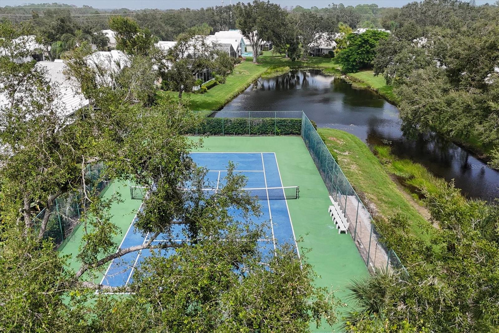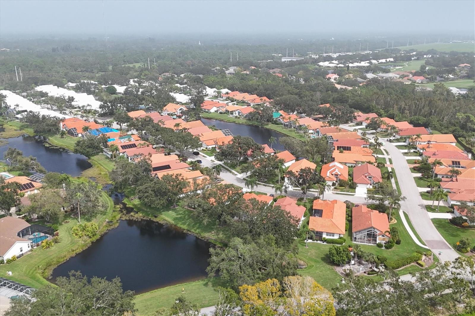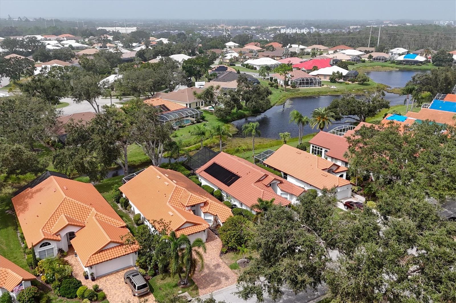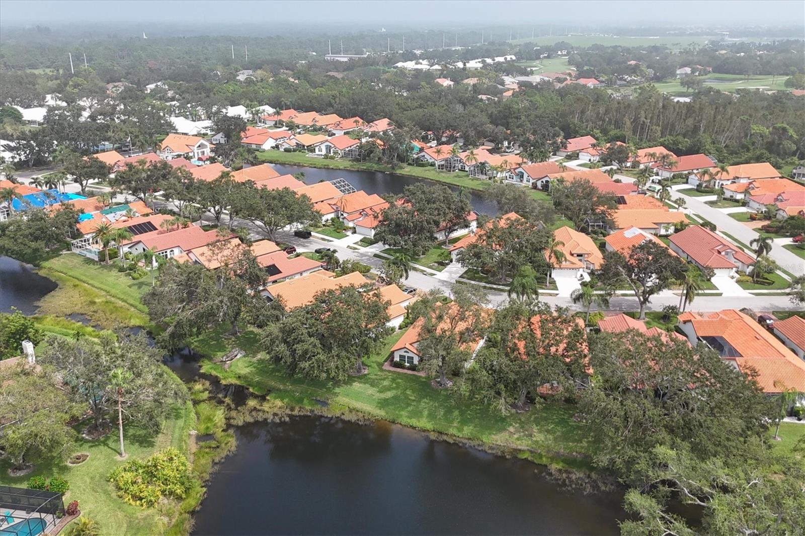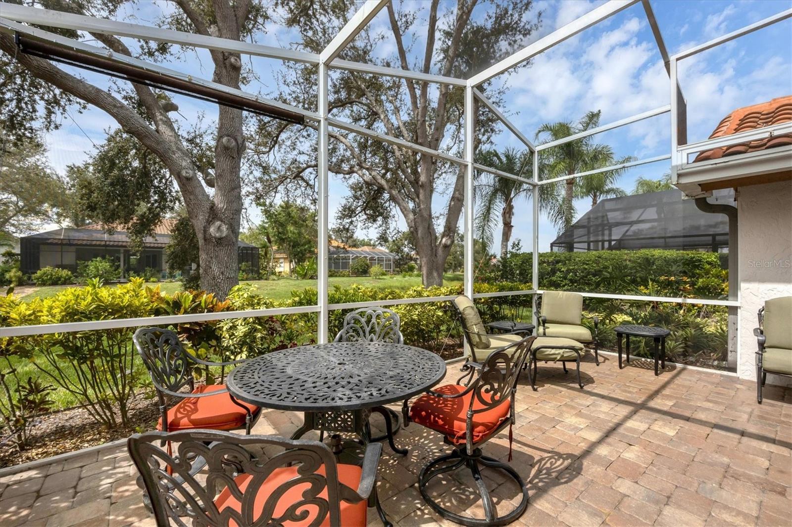RARELY AVAILABLE, this highly sought-after Grand Traverse floor plan with 1848 square feet, is well-appointed and beautifully turnkey-furnished! This charming home features 3 bedrooms, 3 full baths, and a two-car garage. Centrally located, this home is nestled in the enclave at The Patio Homes of Chestnut Creek, with LOW HOA FEES & NO CDD FEES! Mature trees and lush landscaping, maintenance-free, the community offers a beautiful large swimming pool, tennis courts, shuffleboard, and a clubhouse. Who could ask for anything more, in a quiet little neighborhood like this?! Privacy split plan, with two en-suite large bedrooms and a third guest bedroom located towards the front of the home. High vaulted ceilings, an open plan, a fabulous kitchen with tons of cabinet space, sliding glass doors by the breakfast nook, granite, and stainless steel appliances that look brand new! Extremely well-maintained, Move-In Ready, and the owners can close very quickly. Gorgeous mature oaks, peaceful setting, sunkissed water views of the pond, as well as other spectacular lakes to see, enjoying walks around Chestnut Creek.Numerous improvements/updates in this home... re-plumbed in 2006, HVAC was installed in 2015, the tile roof in 2017, and the beautiful paver brick driveway and walkways were installed in 2020. Granite countertops in the kitchen and all bathrooms, porcelain tile, and laminate flooring. No carpet means fewer concerns for anyone with allergies in the family or any pets). More features and bonuses to mention are the plantation shutters, the owner's suite has sliding glass door access to the patio, a fully equipped kitchen that includes pots, pans, dishes, glasses, small appliances, and more! Highly desirable waterfront views on this premium lot, from the back of the upgraded extended screened caged lanai (2015) and paver brick patio with ample space to take in the Florida sunshine! This is exciting news for all those, looking for a gorgeous outdoor living space to spread out, with patio furniture and a grill included, to entertain your guests. Start your mornings with a nice cup of coffee and wind down in the evenings with a glass of wine in your hand. Live your best life ever, the Florida Lifestyle! Just over 10 minutes to Historic Downtown Venice, close to I-75, a quick drive to the Gulf coast beaches, marina, Venice Jetty in Nokomis, art galleries, restaurants, parks, shopping, festivals/events, and other fun places to go and explore!