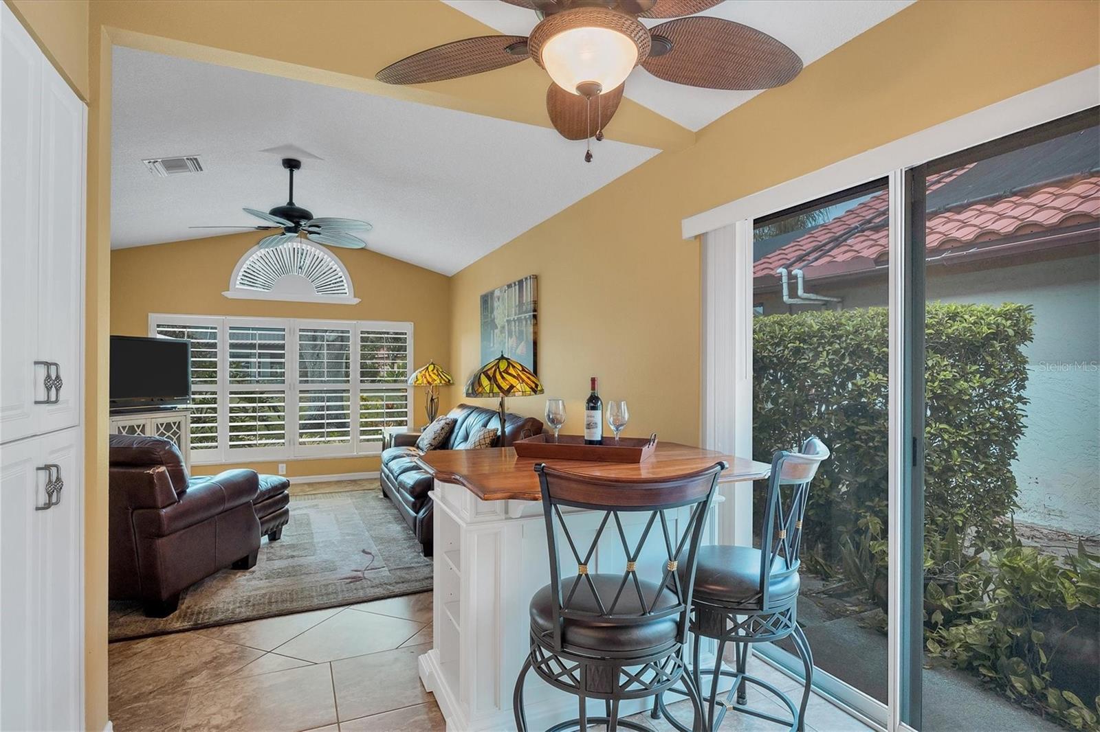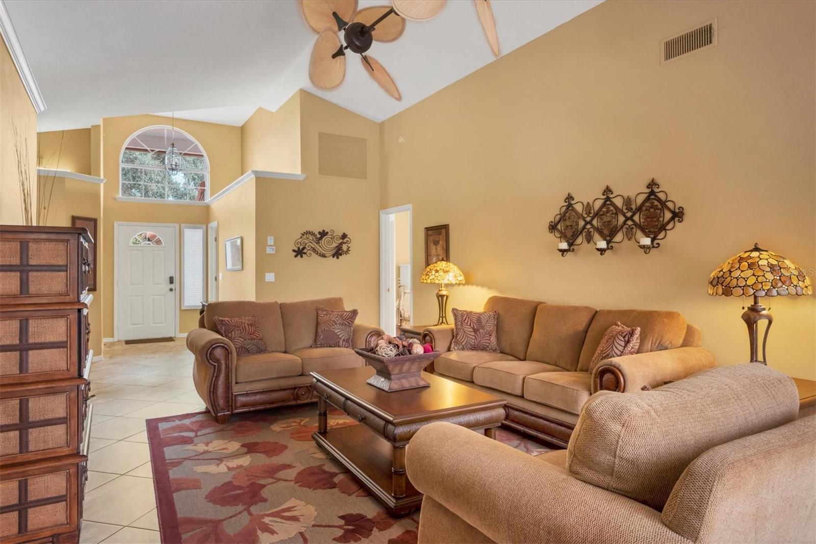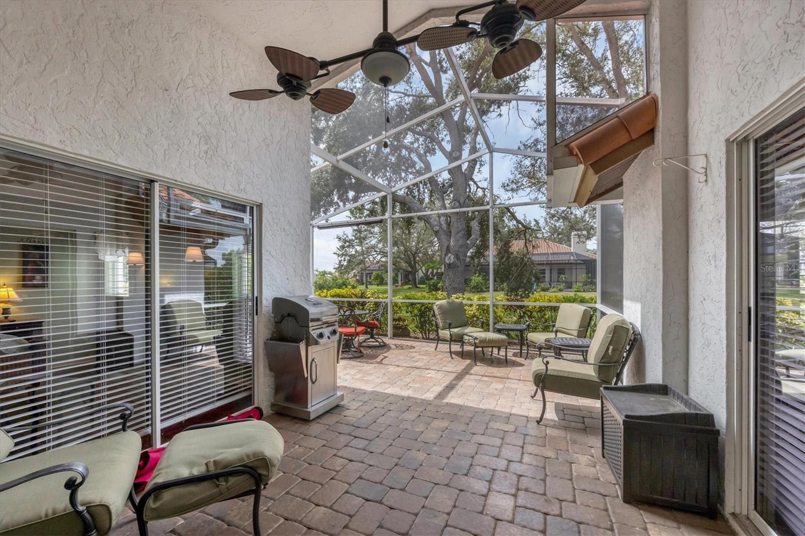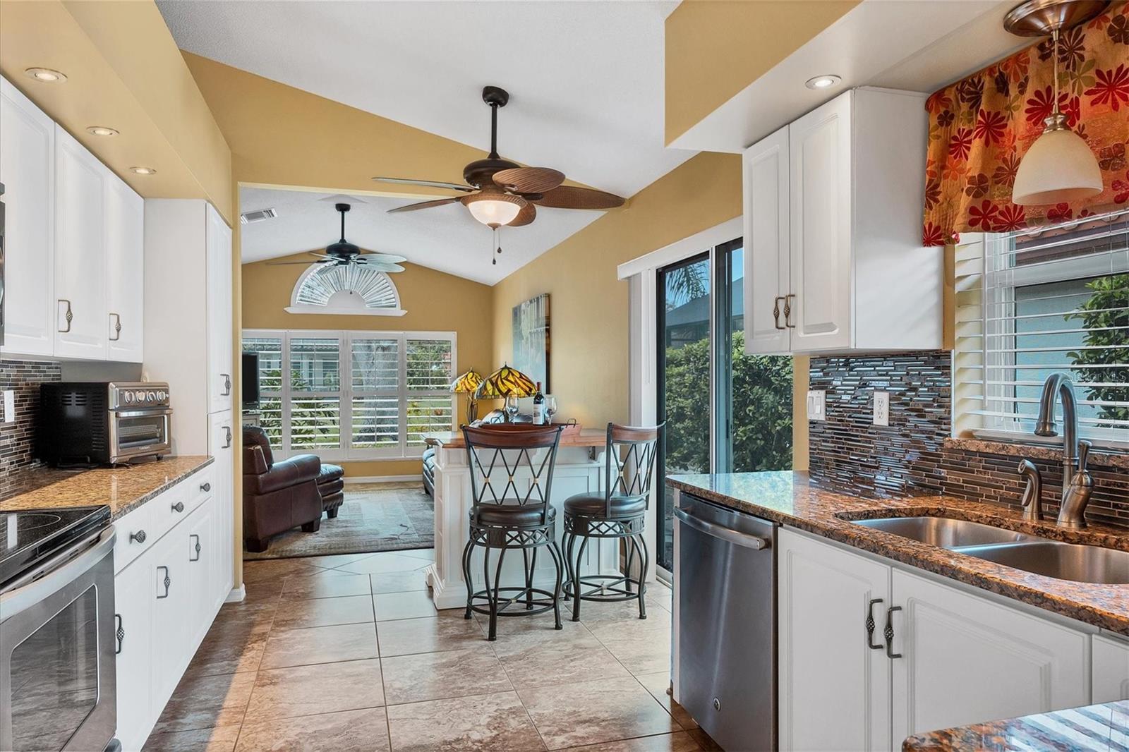 RARELY AVAILABLE, this highly sought-after Grand Traverse floor plan with 1848 square feet, is well-appointed and beautifully turnkey-furnished! This charming home features 3 bedrooms, 3 full baths, and a two-car garage. Centrally located, this home is nestled in the enclave at The Patio Homes of Chestnut Creek, with LOW HOA FEES & NO CDD FEES! Mature trees and lush landscaping, maintenance-free, the community offers a beautiful large swimming pool, tennis courts, shuffleboard, and a clubhouse. Who could ask for anything more, in a quiet little neighborhood like this?! Privacy split plan, with two en-suite large bedrooms and a third guest bedroom located towards the front of the home. High vaulted ceilings, an open plan, a fabulous kitchen with tons of cabinet space, sliding glass doors by the breakfast nook, granite, and stainless steel appliances that look brand new! Extremely well-maintained, Move-In Ready, and the owners can close very quickly. Gorgeous mature oaks, peaceful setting, sunkissed water views of the pond, as well as other spectacular lakes to see, enjoying walks around Chestnut Creek.Numerous improvements/updates in this home... re-plumbed in 2006, HVAC was installed in 2015, the tile roof in 2017, and the beautiful paver brick driveway and walkways were installed in 2020. Granite countertops in the kitchen and all bathrooms, porcelain tile, and laminate flooring. No carpet means fewer concerns for anyone with allergies in the family or any pets). More features and bonuses to mention are the plantation shutters, the owner's suite has sliding glass door access to the patio, a fully equipped kitchen that includes pots, pans, dishes, glasses, small appliances, and more! Highly desirable waterfront views on this premium lot, from the back of the upgraded extended screened caged lanai (2015) and paver brick patio with ample space to take in the Florida sunshine! This is exciting news for all those, looking for a gorgeous outdoor living space to spread out, with patio furniture and a grill included, to entertain your guests. Start your mornings with a nice cup of coffee and wind down in the evenings with a glass of wine in your hand. Live your best life ever, the Florida Lifestyle! Just over 10 minutes to Historic Downtown Venice, close to I-75, a quick drive to the Gulf coast beaches, marina, Venice Jetty in Nokomis, art galleries, restaurants, parks, shopping, festivals/events, and other fun places to go and explore!