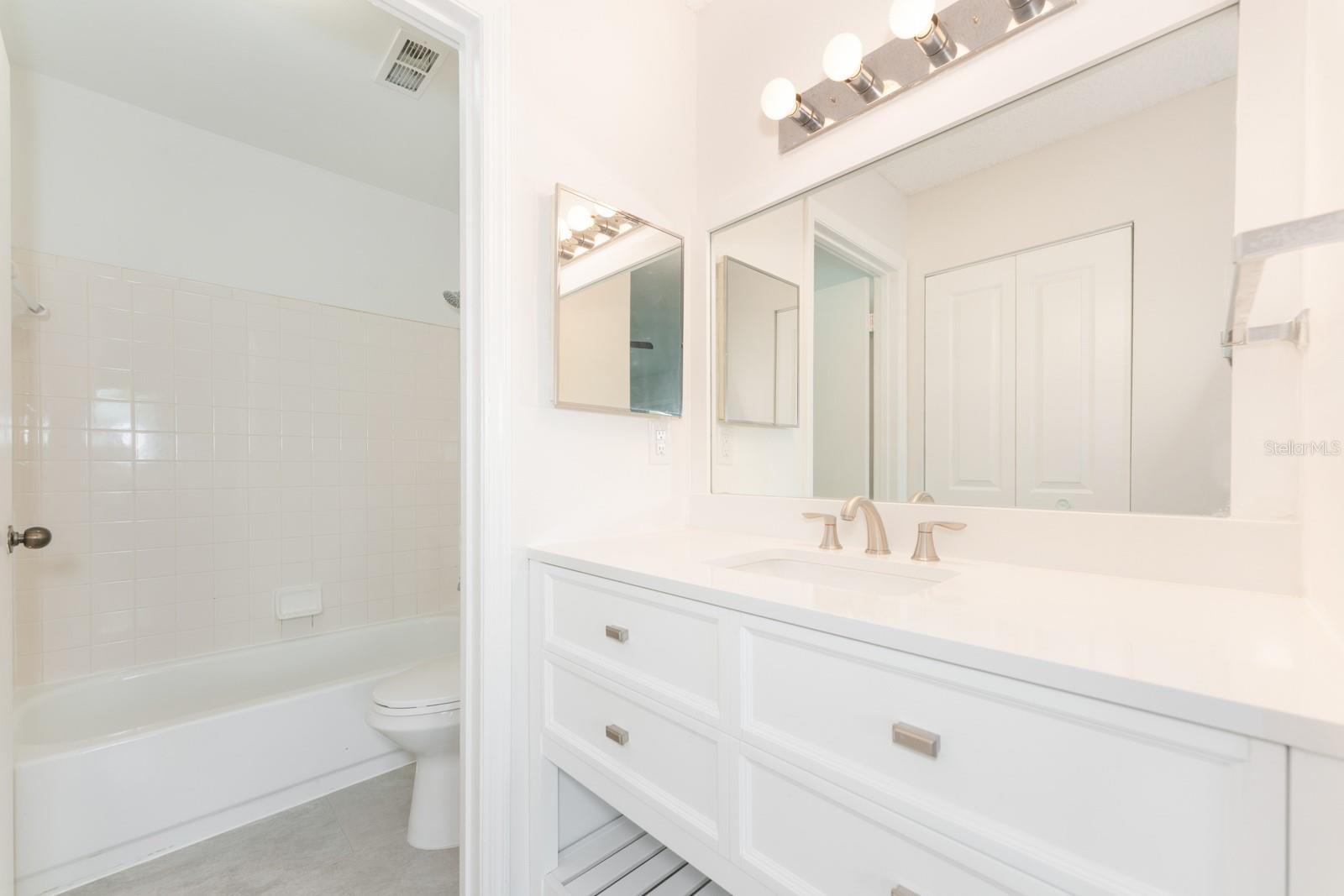 This second floor, 3 bedroom 2 bathroom condo is one of the largest floor plans available at Vintage Grand. Completely remodeled, with new ceramic tile flooring throughout, fresh paint, new bathroom vanities and kitchen countertops. Vaulted ceilings create a larger feel, and washer/dryer hall closet hookup. Storage closet on balcony. Finding a condo this large with the available amenities, beautifully landscaped and in as desirable a location. Vintage Grand has undergone a beautiful renovation; the project is near completion and in August 2024 the HOA fees will drop 42.54% to $634.98/month. The property has new energy-rated hurricane impact windows, new stucco and painted exterior, gutters, and landscaping. Crockers Lake has nature trails around it, two heated pools, spa, fitness center, tennis courts, nearby Legacy Trail for biking and nearby shopping. A redevelopment project has been approved for the Sarasota Square mall-- adding 1,200 new apartments and 500,000 square foot dining center; a pedestrian-friendly place to walk from nearby neighborhoods; which will add immense value to Vintage Grand and all nearby homes.