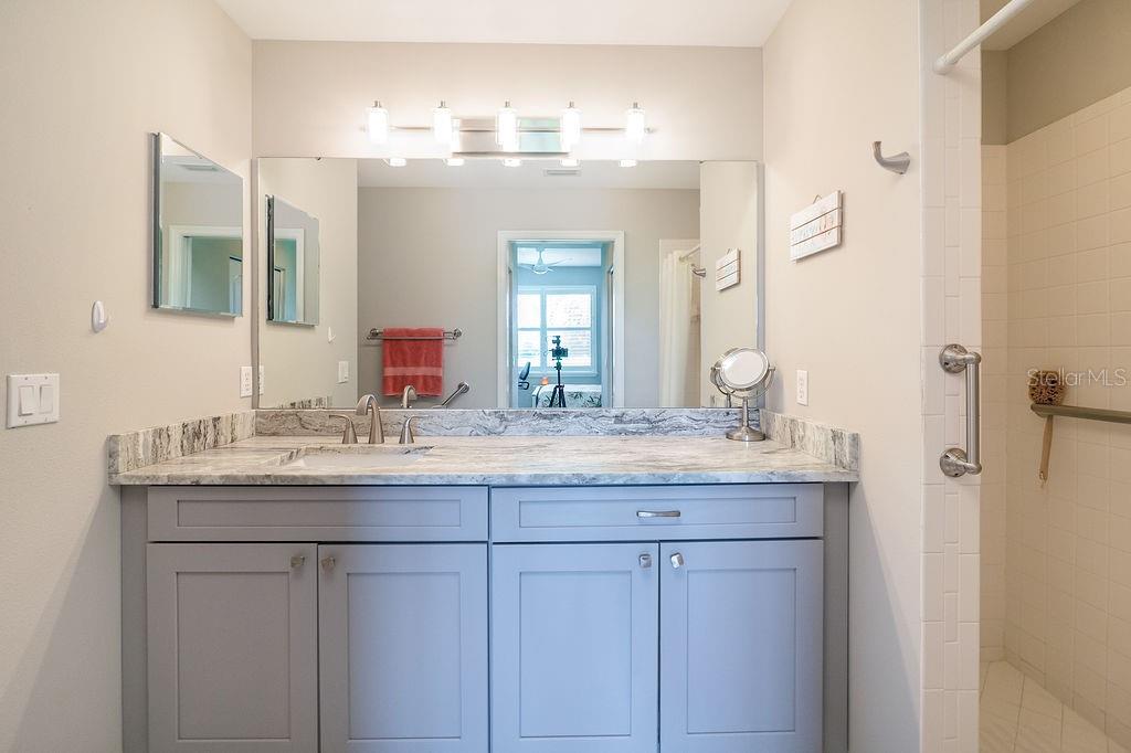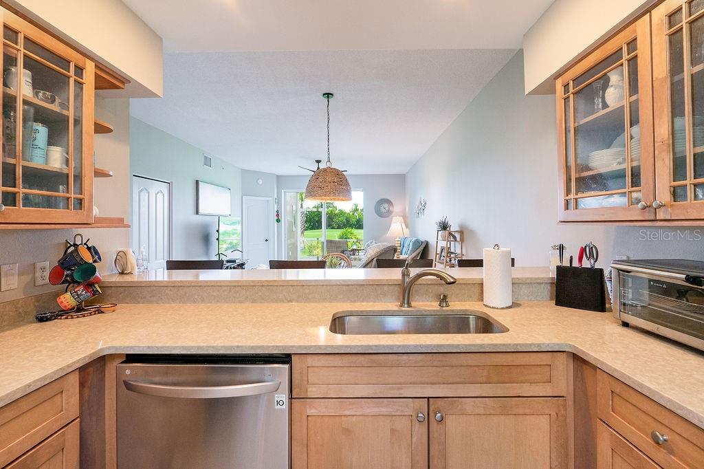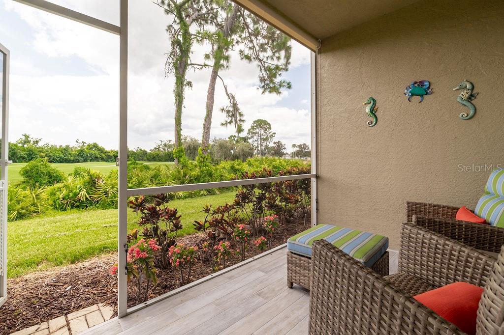 Welcome to your own slice of paradise and resort style living within the beautiful gated community of Heritage Oaks Golf & Country Club. This unique and rare first floor "Carlton" floor plan is offered fully furnished and "turn key" ready for its next residents. Upon entry through the front screened lanai, you are greeted by an updated kitchen featuring modern cabinetry, quartz countertops, stainless steel appliances, and ample storage for all your entertainment supplies. The owner's en suite overlooks the 13th hole on the golf course and includes a full bath with updated cabinetry, granite countertops as well as two walk-in closets. Neutral tiled floors flow throughout the entire home creating an open continuous feel within the unit. The dining and living rooms are illuminated by the sliding glass doors that bring sweeping views of the natural surroundings. Enjoy morning coffee and beautiful sunrises on the tiled and screened back lanai. The guest bedroom room offers guests a private hallway with access to a separate bath featuring updated cabinetry and granite countertops. A dedicated laundry room houses the washer and dryer which remain with the unit. Membership at Heritage Oaks offers extensive amenities with planned events year round, access to five heated pools, four lighted Har-Tru tennis courts, a full 18 hole golf course and a club house with restaurant and fitness center. Residents have access to fitness classes/instructors as well as a Golf Pro-Shop with experts ready to improve your golf game. Heritage Oaks is a bundled community offering its residents a sanctuary from the hustle and bustle of life. Come check out this hidden gem today!