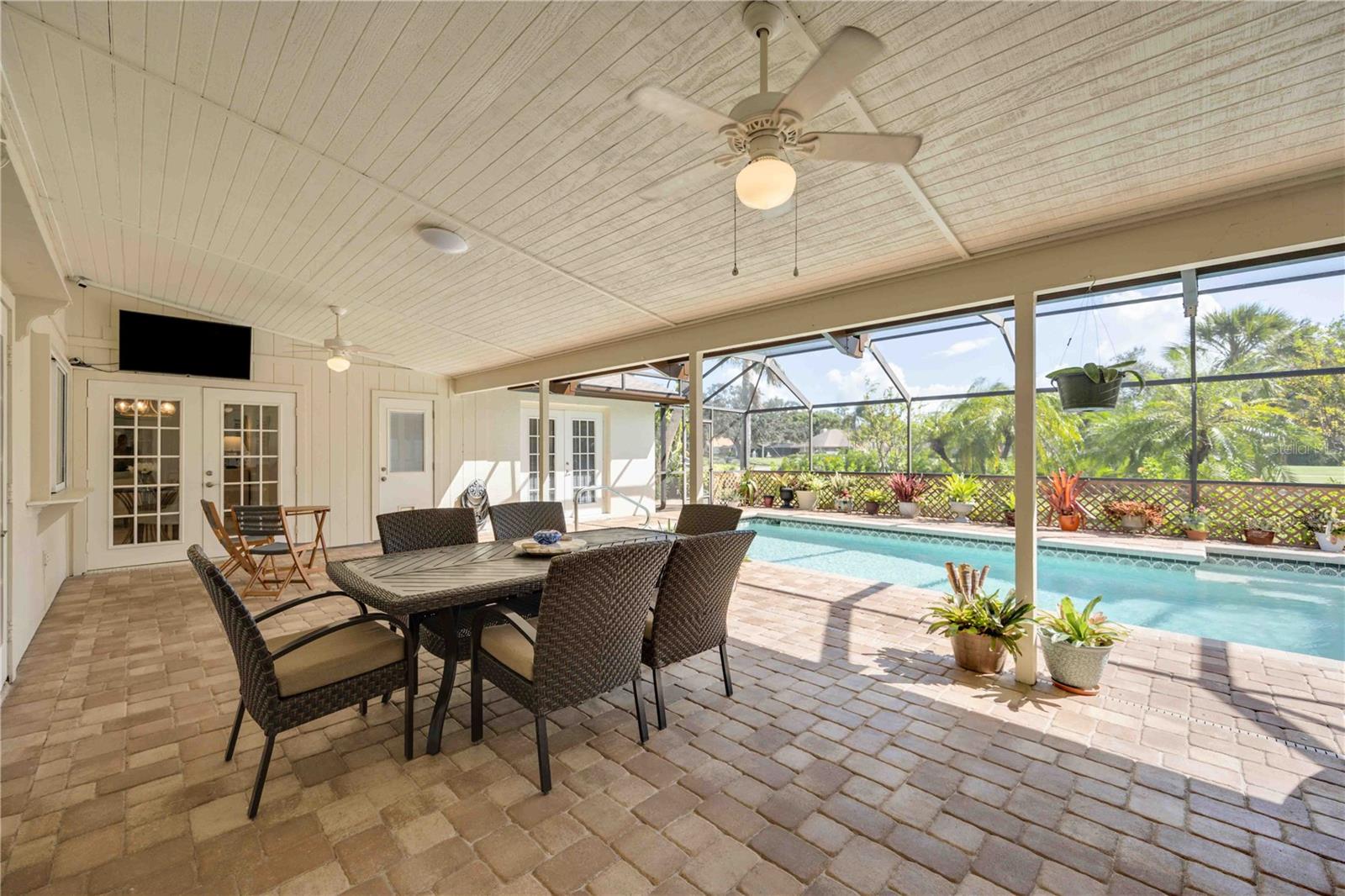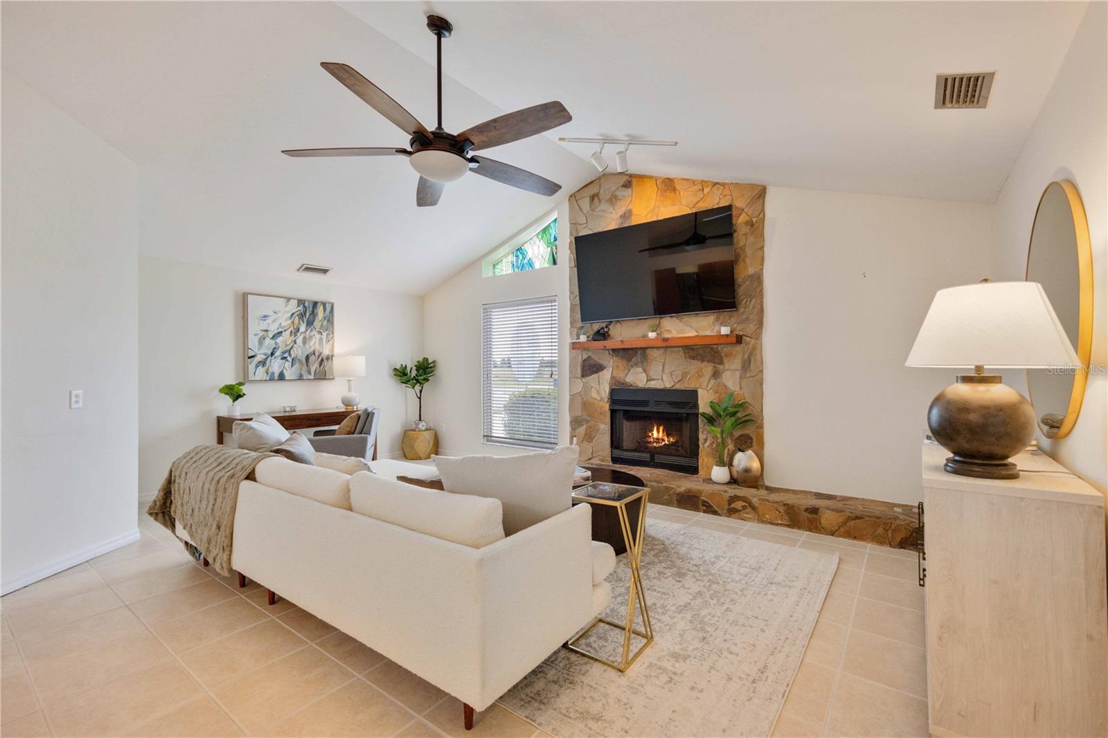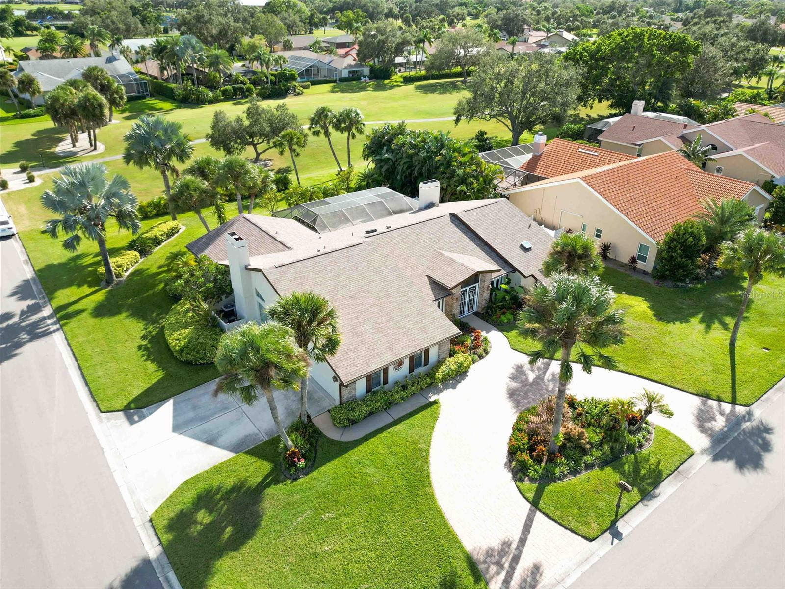 One or more photo(s) has been virtually staged. Welcome to this exquisite 3-bedroom pool home, a true gem in the prestigious Country Club of Sarasota. Situated on an oversized corner lot, this residence boasts a grand circular paver driveway and a convenient side garage entry, offering both curb appeal and practicality.As you step inside, you'll immediately be captivated by the well-thought-out floor plan. The formal living and dining area is perfect for elegant gatherings, while the spacious family room, with additional dining space adjoining the kitchen, provides a comfortable and inviting atmosphere for everyday living.One of the highlights of this home is the expansive screened-in lanai and pool deck, an ideal space for hosting friends and family while enjoying the breathtaking views of the TPC golf course. You'll appreciate the easy access to the lanai, with four sets of French doors leading from the living room, family room, and guest room.The family room boasts a stunning stone wood-burning fireplace and impressive vaulted ceilings, adding character and warmth to the space. The owner's suite is a luxurious retreat, featuring a generous walk-in closet, an updated bathroom with a walk-in shower, and a charming sitting area complete with its own fireplace. Plus, a door from the owner's suite provides direct access to the lanai and pool area, perfect for late-night swims or early-morning relaxation.The two guest rooms each offer ample walk-in closet space and share a convenient guest bathroom, which also serves as a pool bath. Additionally, there's a den that serves as a perfect home office and even has a day bed for additional guest accommodations.Residents of the Country Club of Sarasota have the option to join the tennis club and/or the TPC golf course, enjoying all the benefits of a country club lifestyle (memberships are optional). This 24/7 guard-gated community is conveniently located near Siesta Key Beach, The Legacy Trail, shopping, top-notch restaurants, and downtown Sarasota. Furthermore, the school zone has consistently received an "excellent" rating for the past three years, making it an excellent choice for families. This property also has hurricane protection.Don't miss your chance to experience this exceptional home for yourself. Schedule your private showing today and be prepared to be wowed!