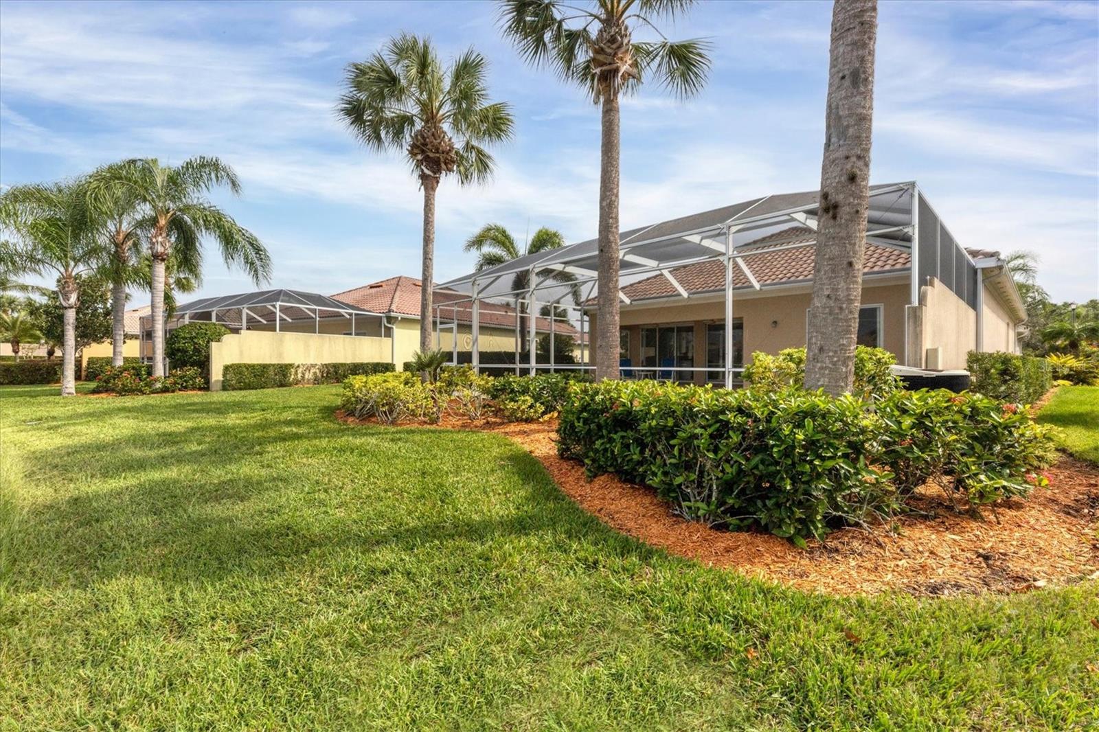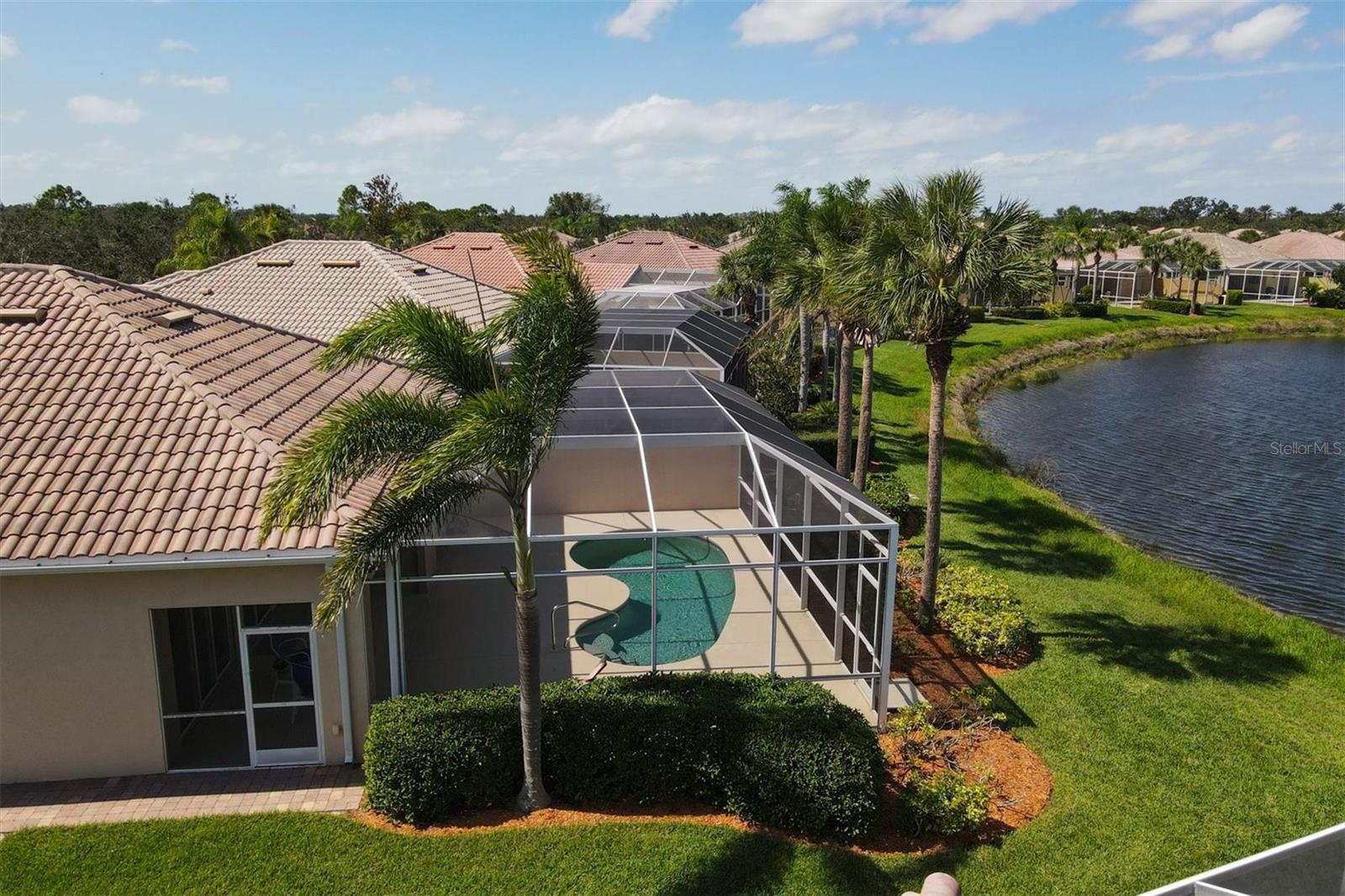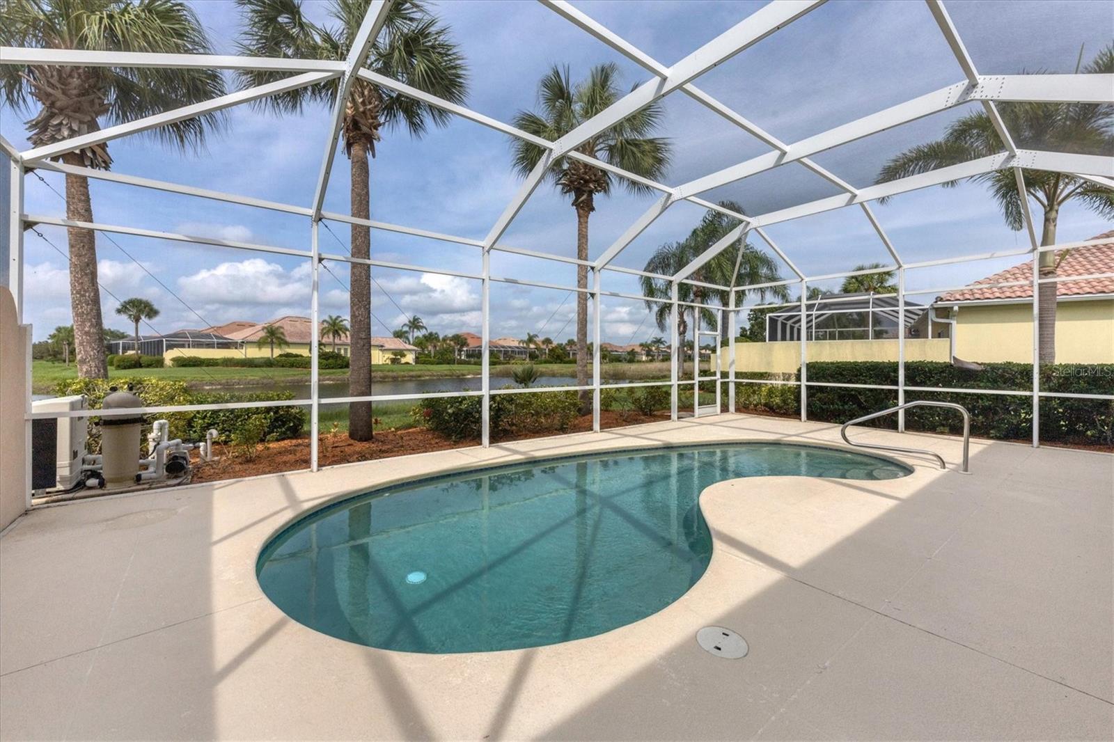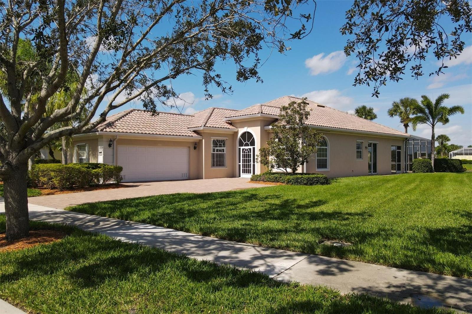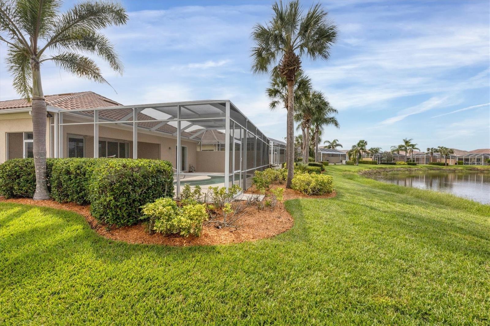 Welcome to the epitome of luxury, resort-style living in the sought after Palmer Ranch community of The Isles. This exquisite 3-bedroom, 3-bath residence, boasting an additional DEN/OFFICE, features an elegant Oakmont model design, spanning across 2008 square feet under air. This solid built home by DiVosta is secured with rebar and poured concrete making it one of the strongest builds in the area. Revel in the stunning long lake views from this PREMIUM LOT, with extra space between homes. Walk out the sliding glass doors to an impressive screened-in lanai with HEATED POOL, and sweeping tropical lake views in your own piece of private paradise to entertain and enjoy all year round. The property comes equipped with a 2-car side load garage, added security of hurricane shutters, and a pavered driveway with extra parking and walkways. The master bedroom also boasts sliding glass doors to the pool area that brings in loads of natural light, a walk-in closet and a double closet, providing generous storage space. This desirable open floor plan is tiled throughout the main living spaces, an eat-on bar in the kitchen/great room, and some of the best views in the Isles. Inside utility room has lots of cabinet space for storage, a convenient utility sink and a glass block window for more natural lighting. Home is equipped with a whole house central vacuum system. Low HOA fees include, ADT home security, cable/internet, maintenance-free grounds and the resort-like amenities, including a fitness center, heated lagoon pool, sports pavilion, tennis and pickleball courts, bocce ball, basketball court, tot lot, lakeside gazebo, and a clubhouse complete with a service kitchen and post office. Walk/bike for miles in the magnificent, landscaped grounds, of The Isles, taking in the natural beauty and wildlife in this community. Close to the Legacy Trail, and centrally located, minutes to area beaches, shopping, the arts scene, and all Sarasota and Venice has to offer! Welcome to Florida living at its finest!