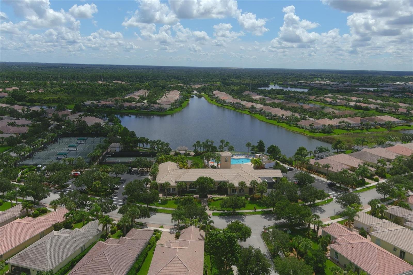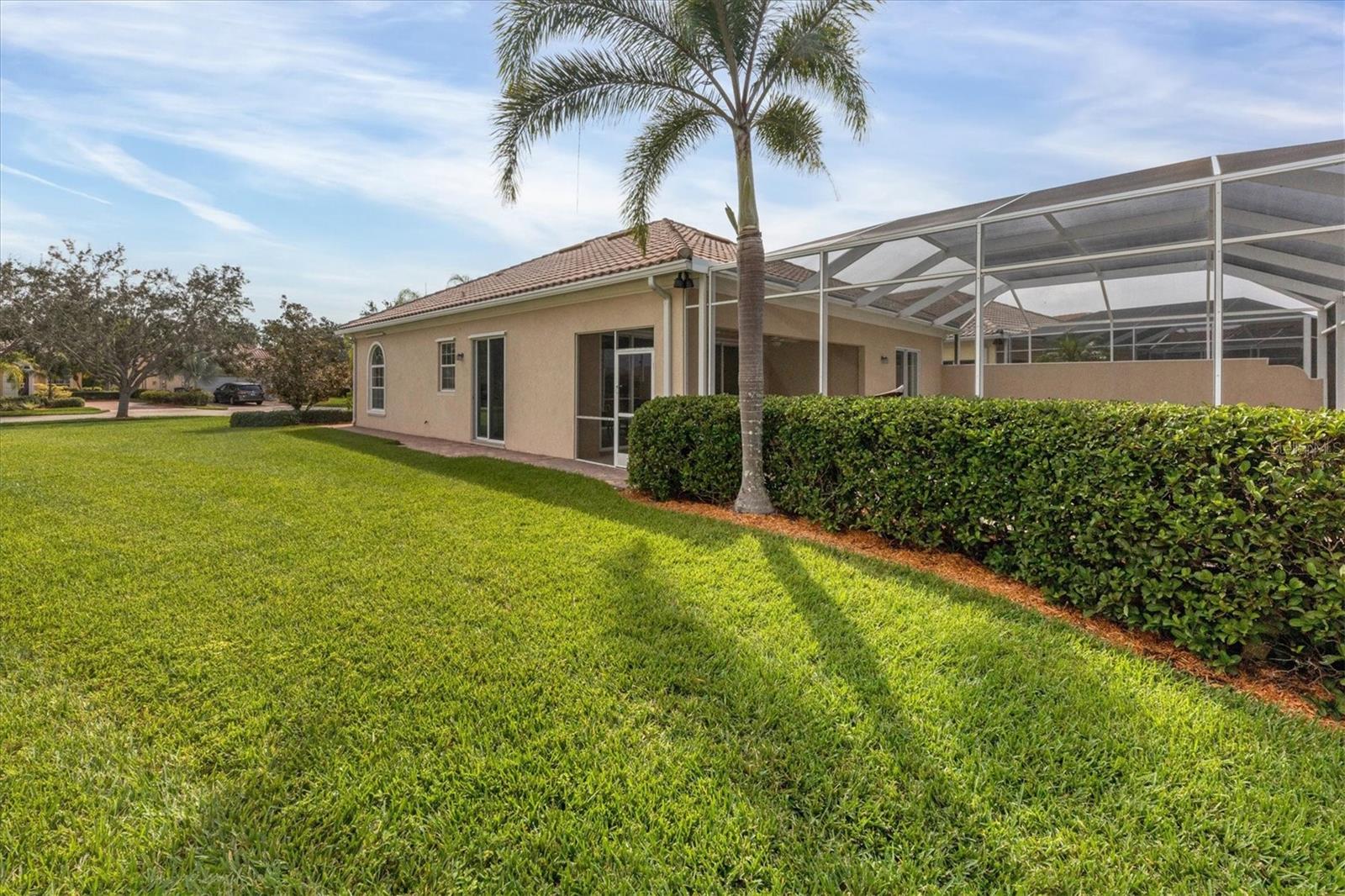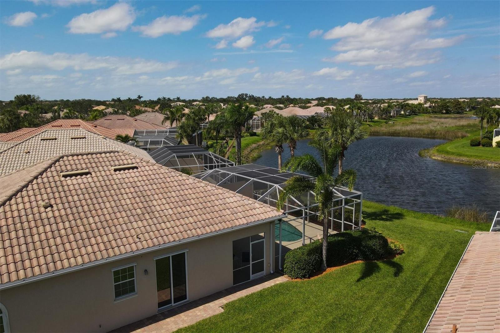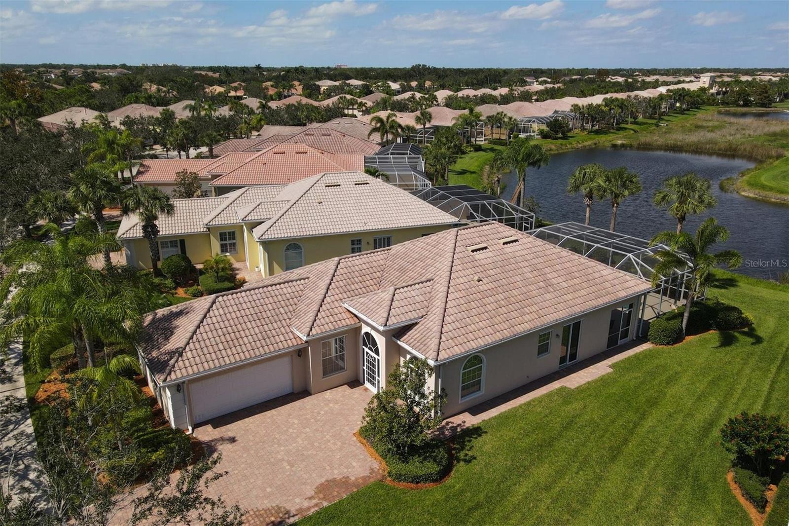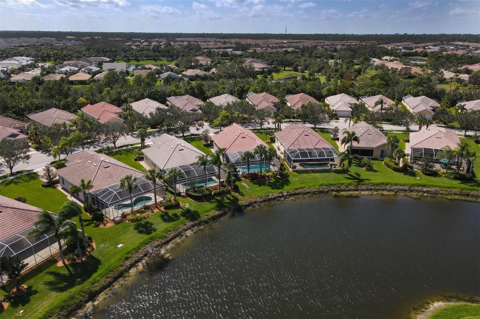 Welcome to the epitome of luxury, resort-style living in the sought after Palmer Ranch community of The Isles. This exquisite 3-bedroom, 3-bath residence, boasting an additional DEN/OFFICE, features an elegant Oakmont model design, spanning across 2008 square feet under air. This solid built home by DiVosta is secured with rebar and poured concrete making it one of the strongest builds in the area. Revel in the stunning long lake views from this PREMIUM LOT, with extra space between homes. Walk out the sliding glass doors to an impressive screened-in lanai with HEATED POOL, and sweeping tropical lake views in your own piece of private paradise to entertain and enjoy all year round. The property comes equipped with a 2-car side load garage, added security of hurricane shutters, and a pavered driveway with extra parking and walkways. The master bedroom also boasts sliding glass doors to the pool area that brings in loads of natural light, a walk-in closet and a double closet, providing generous storage space. This desirable open floor plan is tiled throughout the main living spaces, an eat-on bar in the kitchen/great room, and some of the best views in the Isles. Inside utility room has lots of cabinet space for storage, a convenient utility sink and a glass block window for more natural lighting. Home is equipped with a whole house central vacuum system. Low HOA fees include, ADT home security, cable/internet, maintenance-free grounds and the resort-like amenities, including a fitness center, heated lagoon pool, sports pavilion, tennis and pickleball courts, bocce ball, basketball court, tot lot, lakeside gazebo, and a clubhouse complete with a service kitchen and post office. Walk/bike for miles in the magnificent, landscaped grounds, of The Isles, taking in the natural beauty and wildlife in this community. Close to the Legacy Trail, and centrally located, minutes to area beaches, shopping, the arts scene, and all Sarasota and Venice has to offer! Welcome to Florida living at its finest!