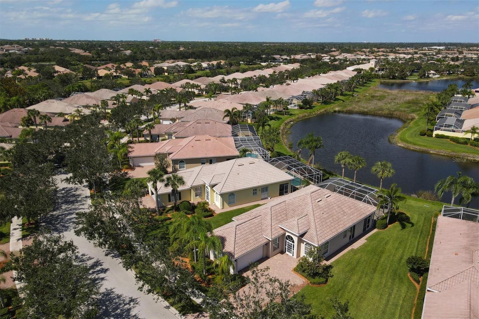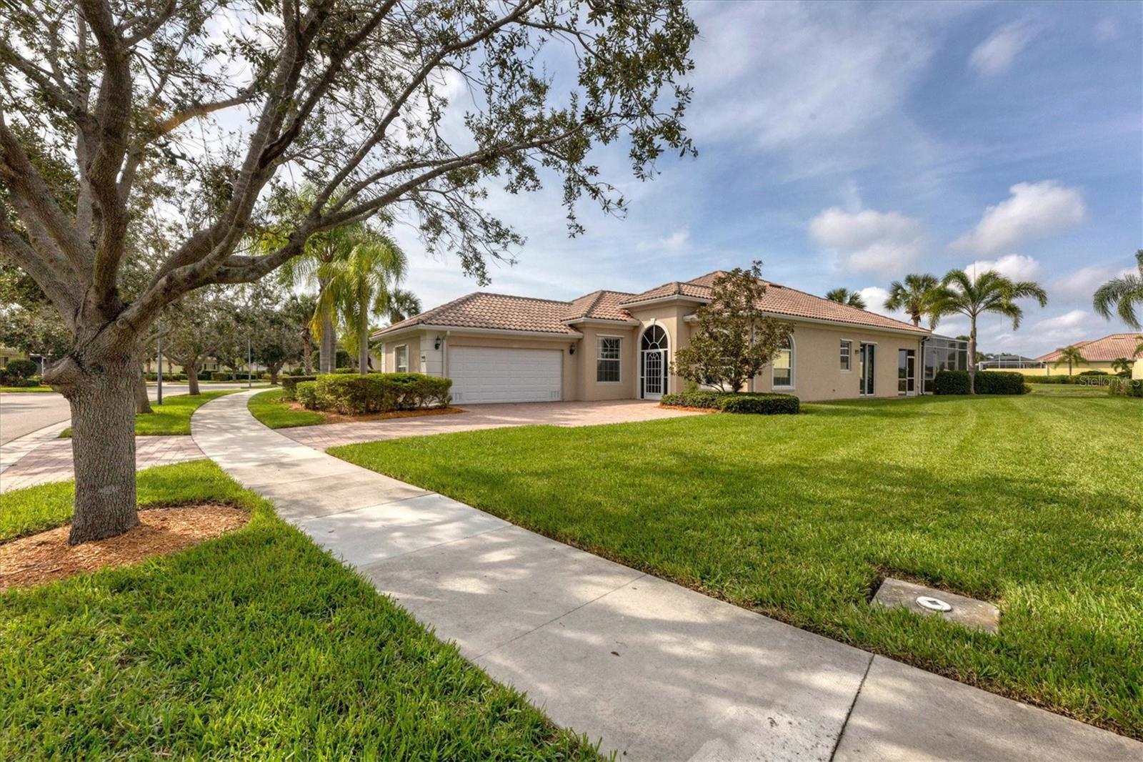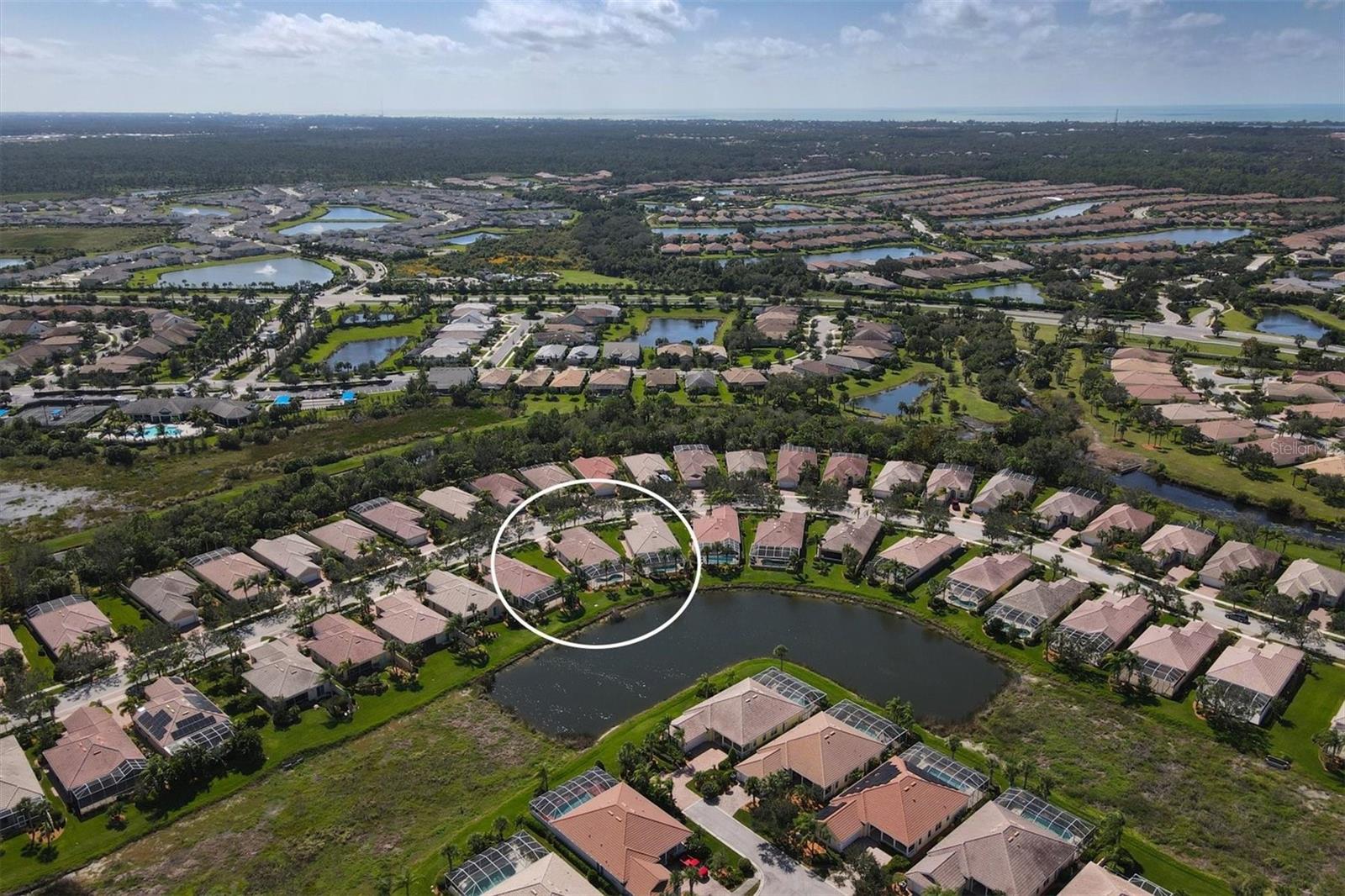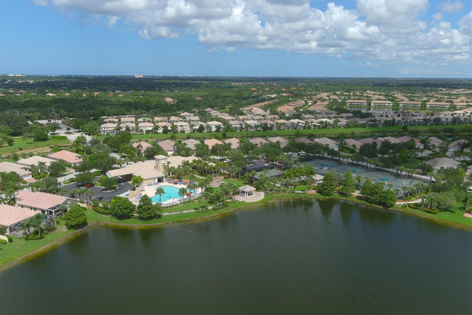 Welcome to the epitome of luxury, resort-style living in the sought after Palmer Ranch community of The Isles. This exquisite 3-bedroom, 3-bath residence, boasting an additional DEN/OFFICE, features an elegant Oakmont model design, spanning across 2008 square feet under air. This solid built home by DiVosta is secured with rebar and poured concrete making it one of the strongest builds in the area. Revel in the stunning long lake views from this PREMIUM LOT, with extra space between homes. Walk out the sliding glass doors to an impressive screened-in lanai with HEATED POOL, and sweeping tropical lake views in your own piece of private paradise to entertain and enjoy all year round. The property comes equipped with a 2-car side load garage, added security of hurricane shutters, and a pavered driveway with extra parking and walkways. The master bedroom also boasts sliding glass doors to the pool area that brings in loads of natural light, a walk-in closet and a double closet, providing generous storage space. This desirable open floor plan is tiled throughout the main living spaces, an eat-on bar in the kitchen/great room, and some of the best views in the Isles. Inside utility room has lots of cabinet space for storage, a convenient utility sink and a glass block window for more natural lighting. Home is equipped with a whole house central vacuum system. Low HOA fees include, ADT home security, cable/internet, maintenance-free grounds and the resort-like amenities, including a fitness center, heated lagoon pool, sports pavilion, tennis and pickleball courts, bocce ball, basketball court, tot lot, lakeside gazebo, and a clubhouse complete with a service kitchen and post office. Walk/bike for miles in the magnificent, landscaped grounds, of The Isles, taking in the natural beauty and wildlife in this community. Close to the Legacy Trail, and centrally located, minutes to area beaches, shopping, the arts scene, and all Sarasota and Venice has to offer! Welcome to Florida living at its finest!